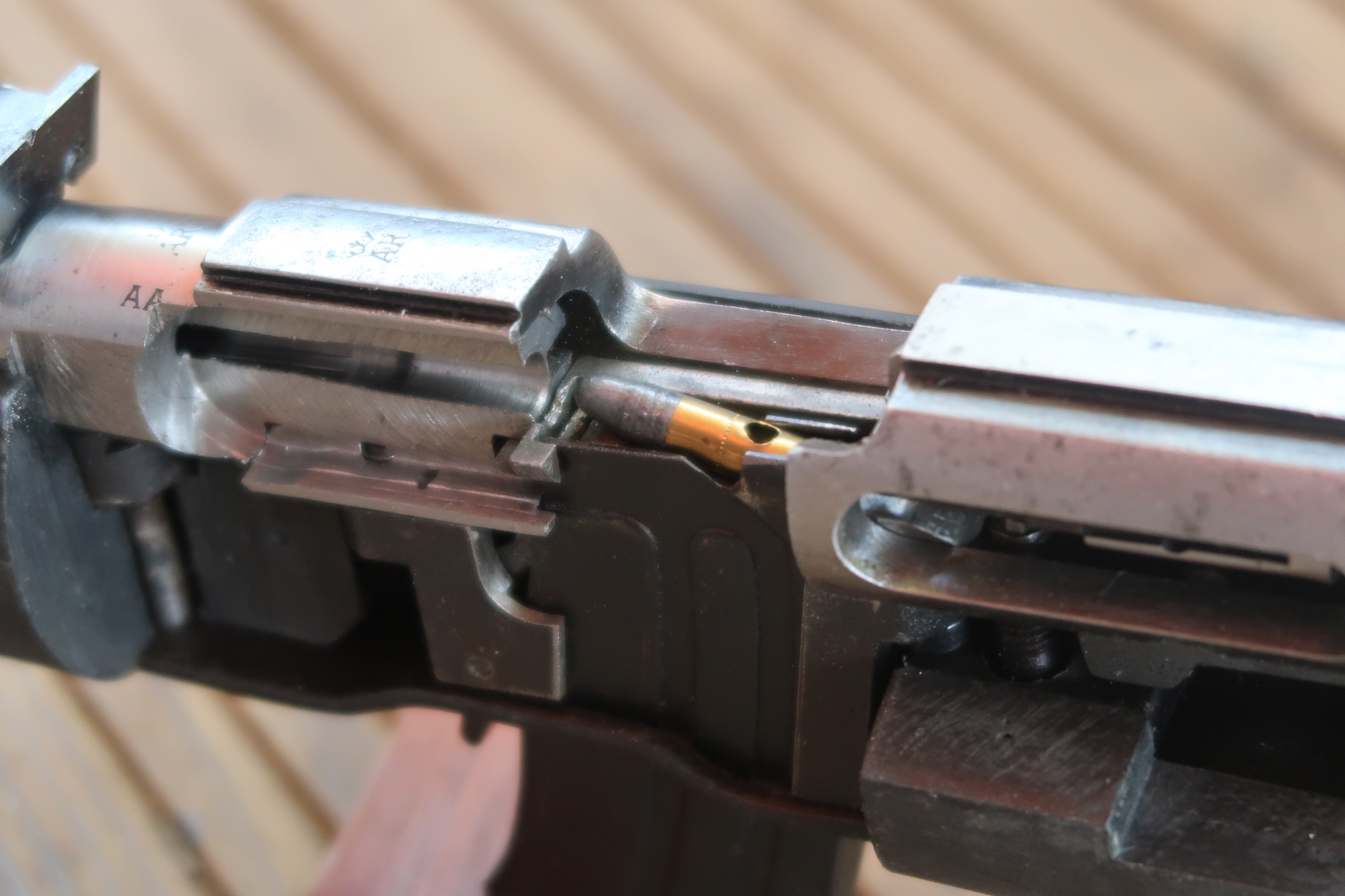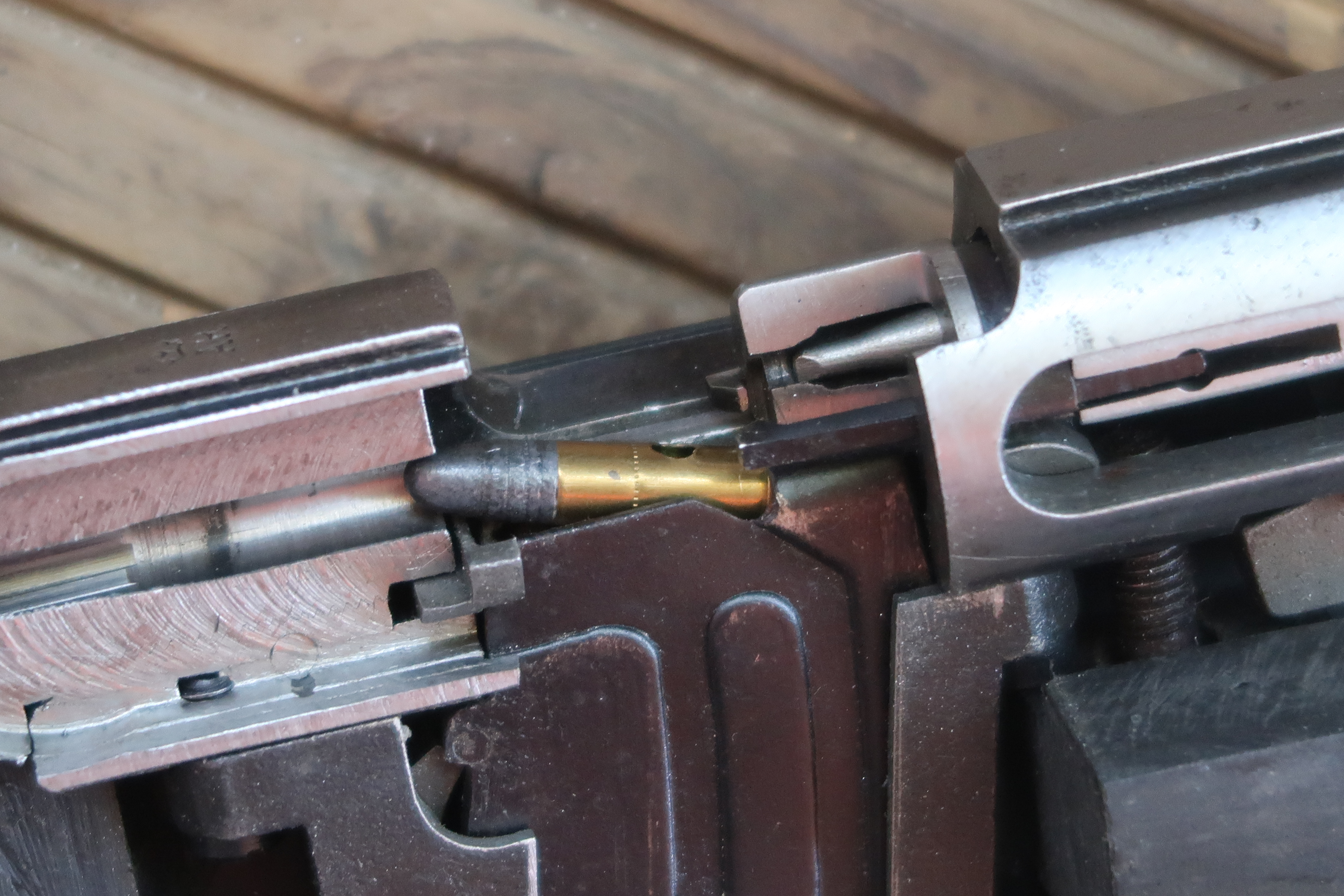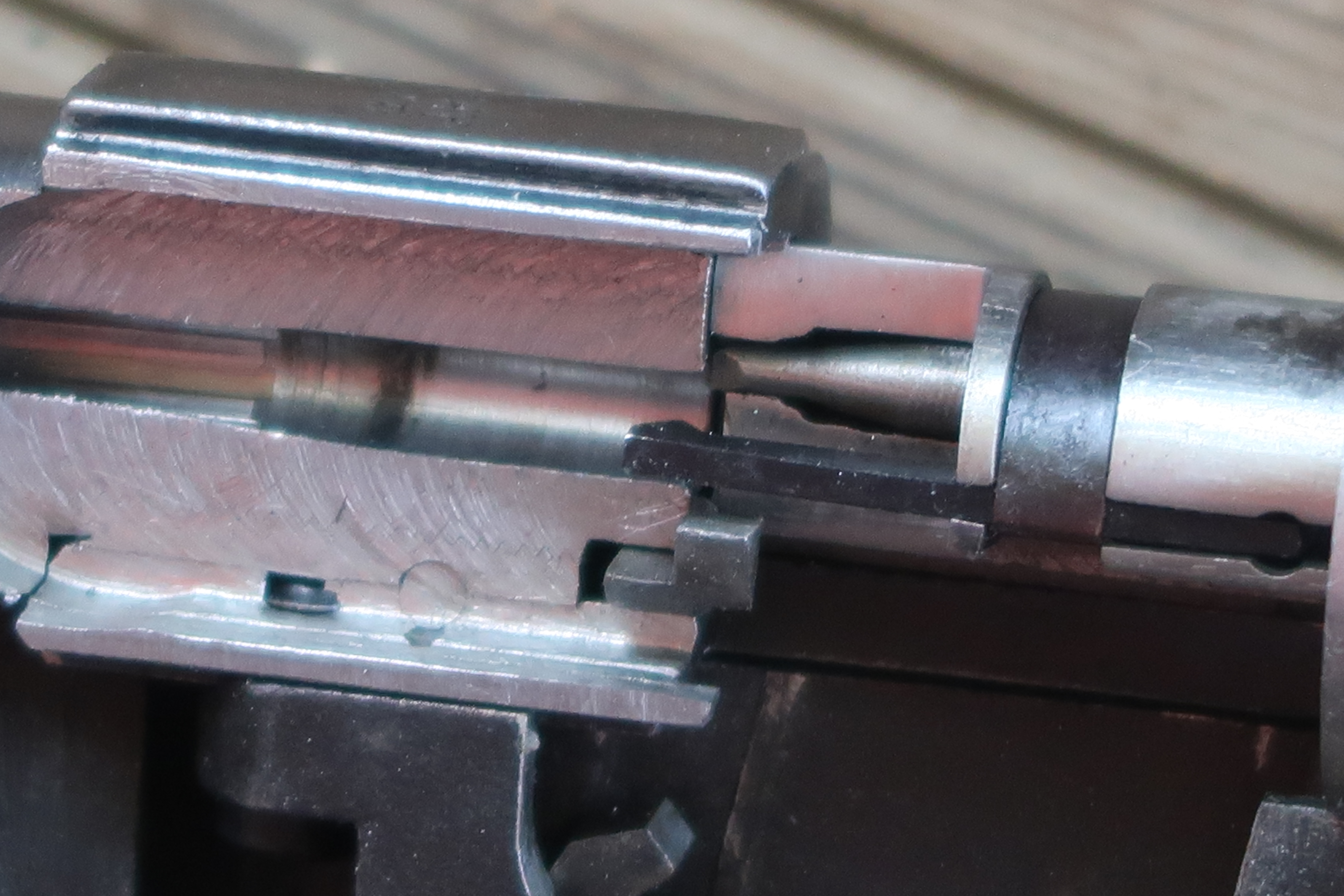 En guise d’exemple, vous trouverez ci-joint une galerie photo d’une carabine Norinco jw 15 didactique. Vous pourrez y voir certaines interactions entre les pièces, par exemple, la position de la face avant de la culasse par rapport à la face arrière du canon (chose impossible à voir sur une arme non coupée lorsque la culasse est fermée)…