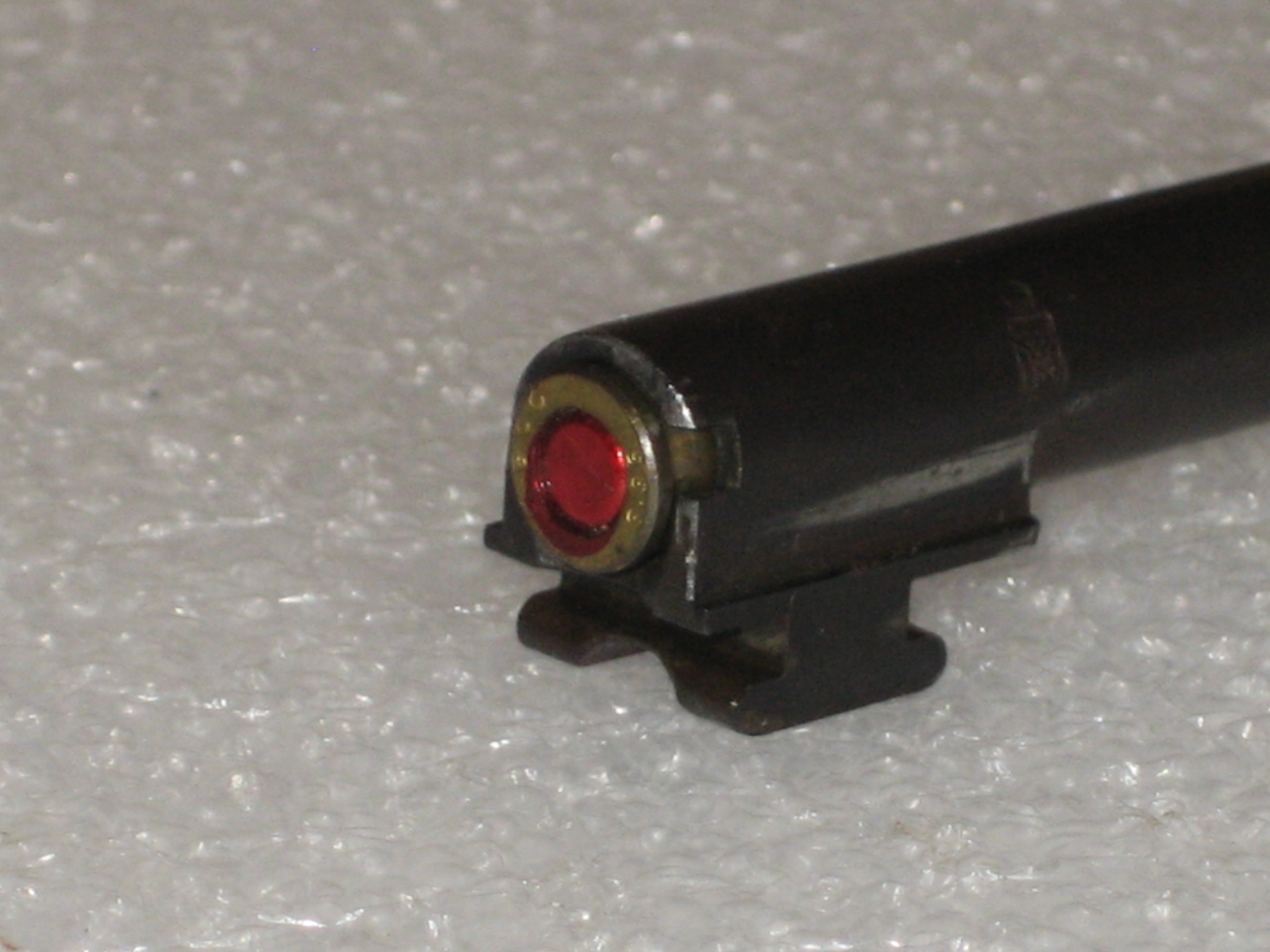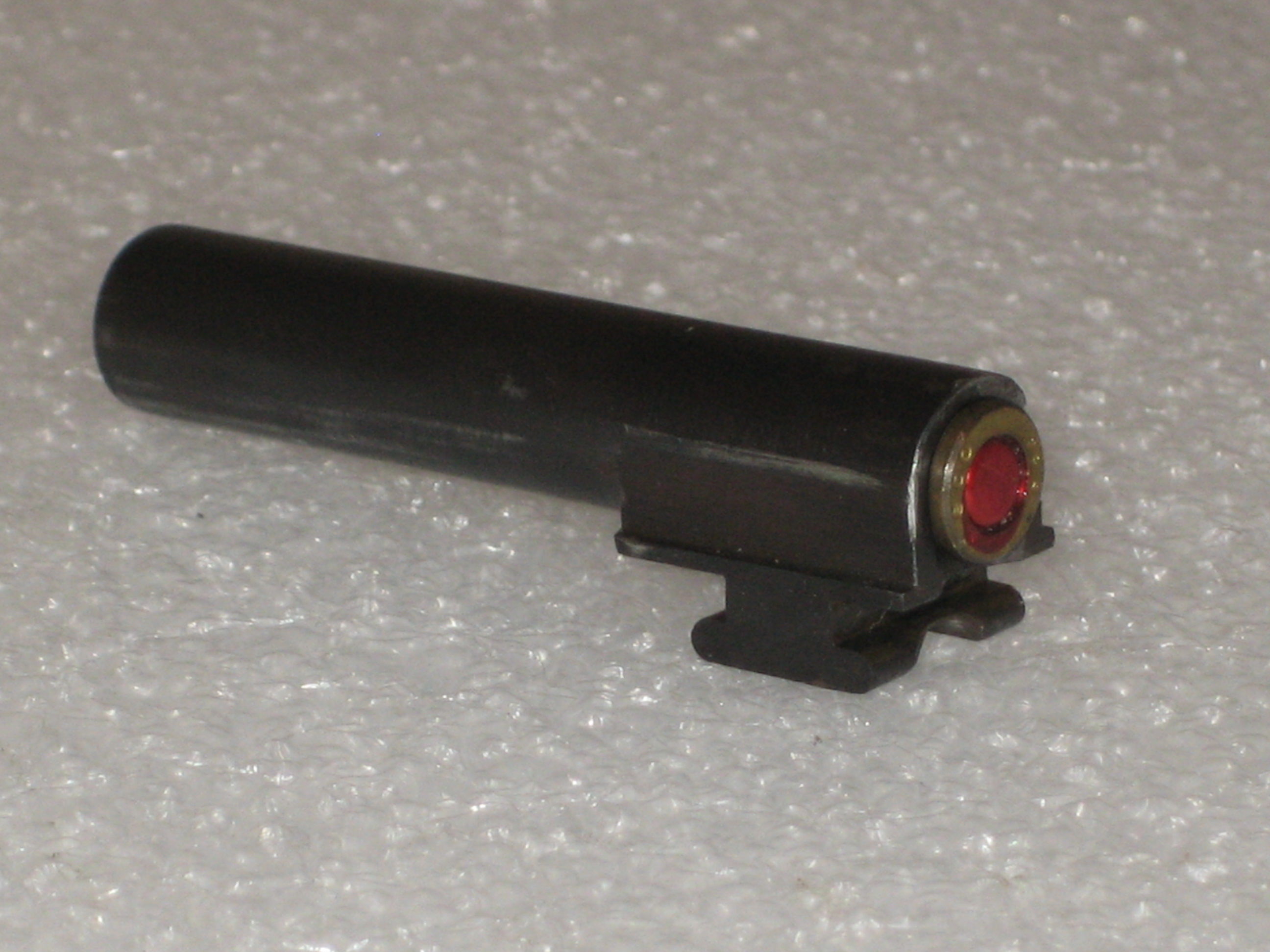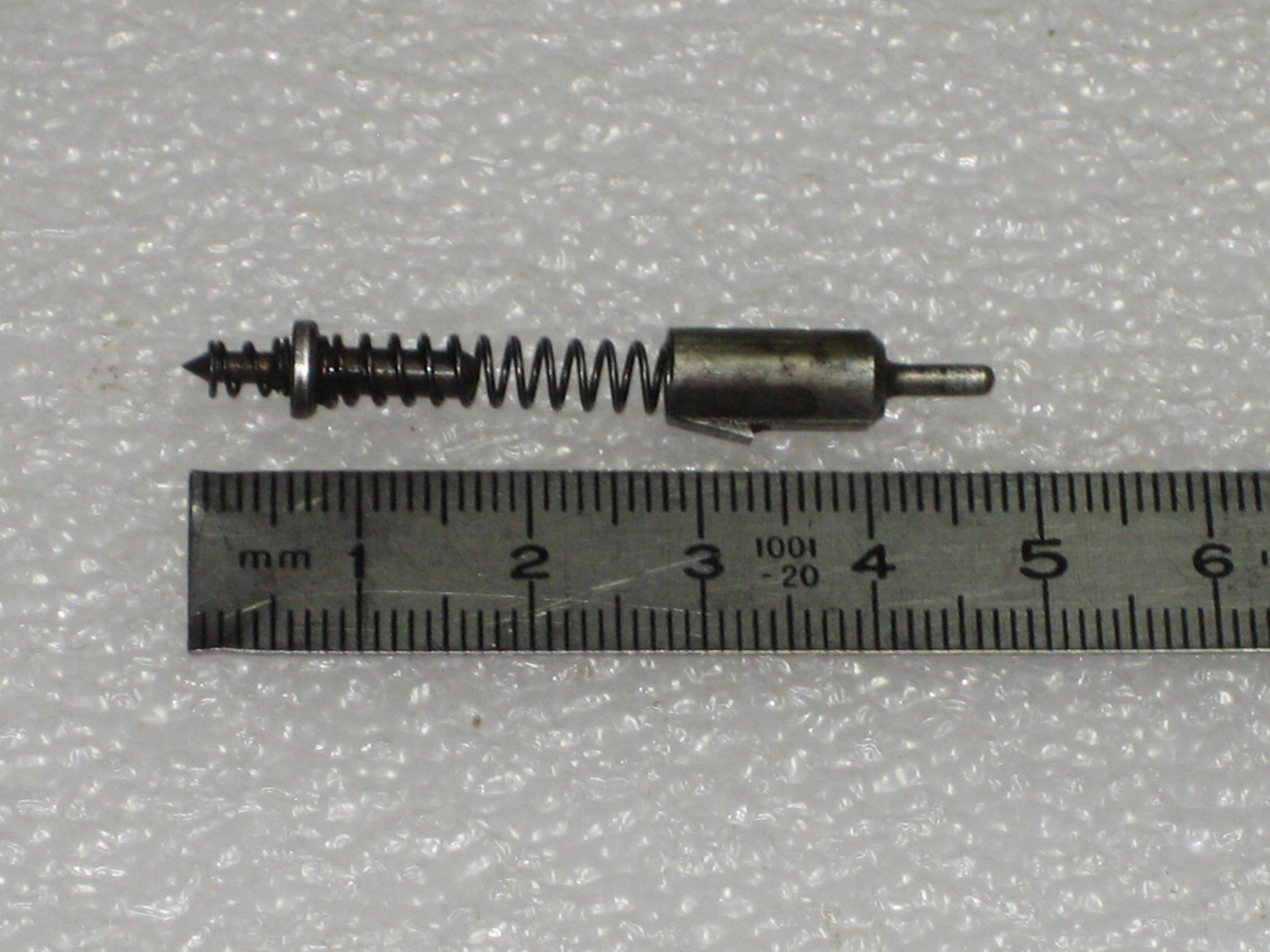 Le diamètre du corps de percuteur est : 5,96 mm. Le diamètre de la pointe de percuteur est : 2 mm. La longueur totale du percuteur est : 19,5 mm. Il serait intéressant de comparer le percuteur de la version en 6,35 mm et celui de la version en 22 short. En effet, la percussion d’une cartouche annulaire de calibre 22 short demande, pour qu’il y ait percussion, de venir frapper le bourrelet de l’étui. Dans ce cas, il semble que deux solutions se posent à nous :