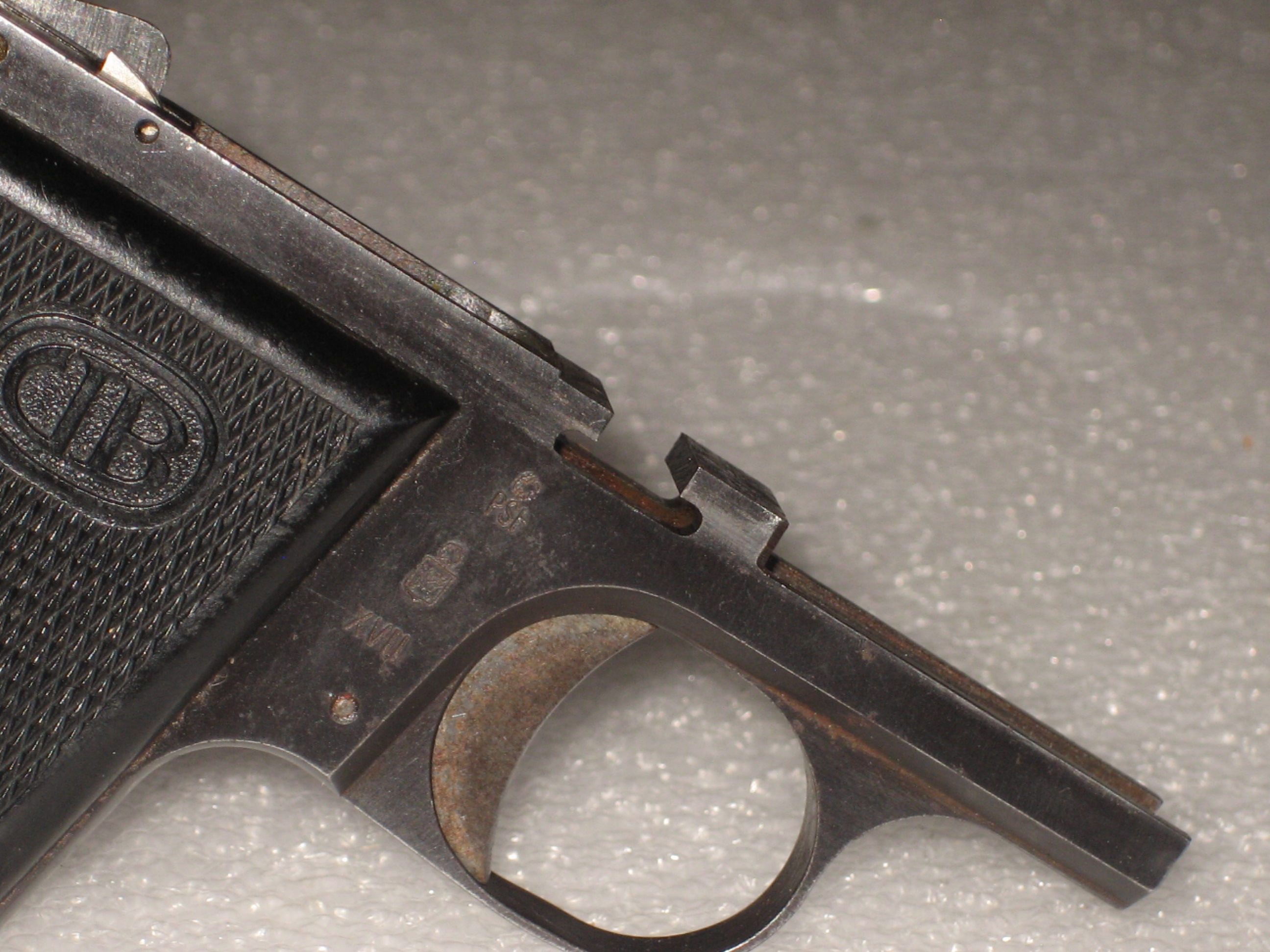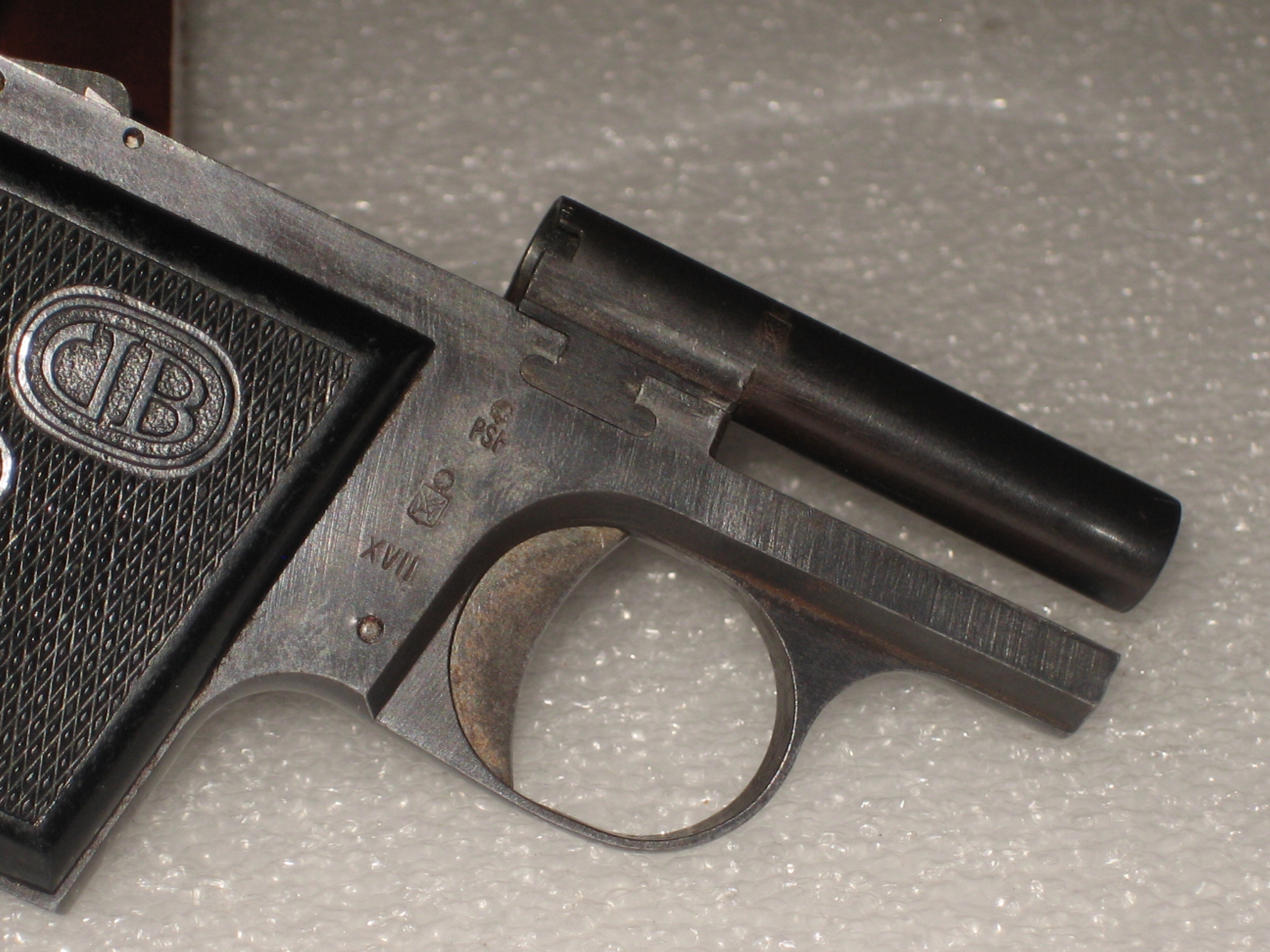 - Bernardelli Baby, vue des marquages de la culasse.