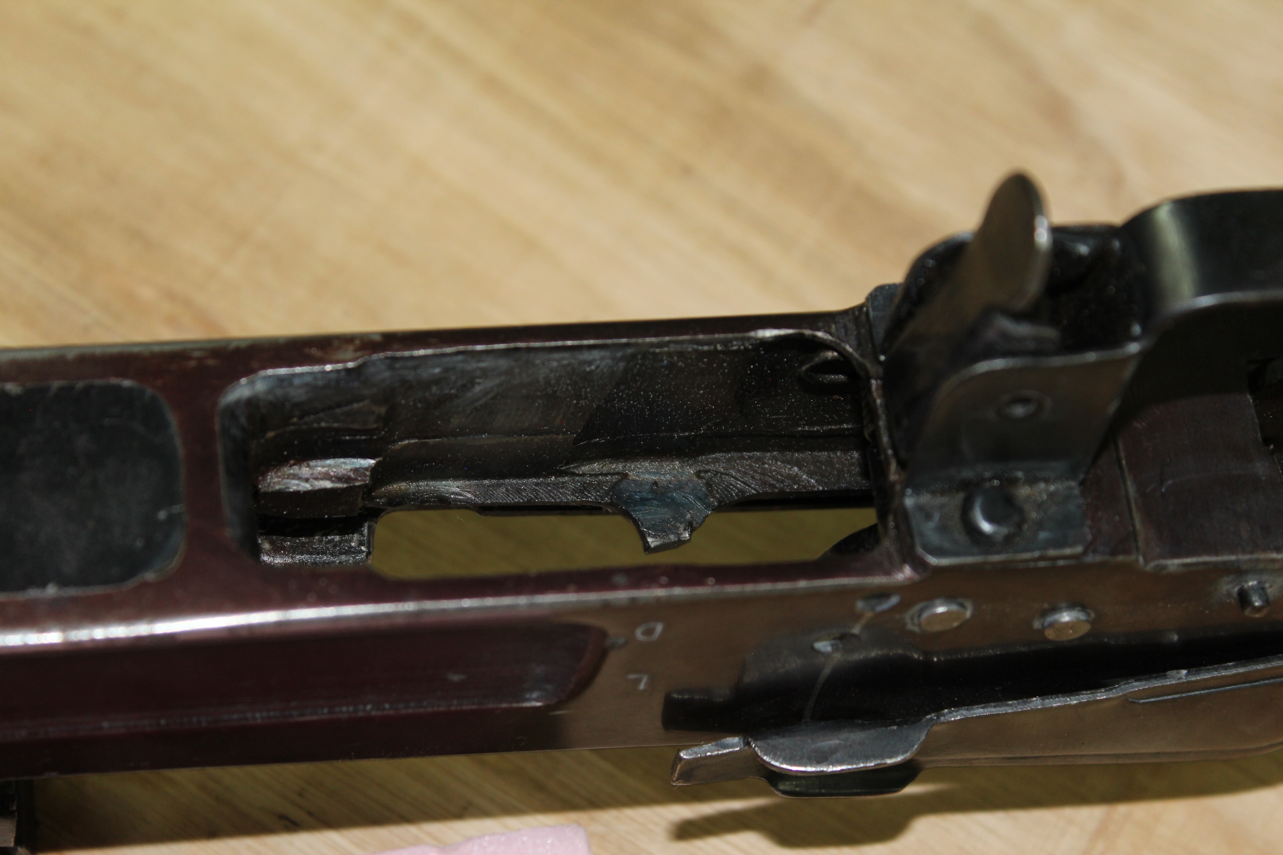 Le logement de la queue de culasse a aussi été négligé , il est brut de perçage. Qu’est ce que cela aurait couté au fabricant de percer un trou plus petit et de passer un alésoir ? Ca n’a pas été fait. La culasse a dans son logement un jeu important. Vous allez me dire que pour une Kalash ce n’est pas étonnant. Ce qui est vrai sans l’être car bien qu’il y ait du jeu dans les équivalents de l’est de l’Europe, ce jeu est bien moins important et les pièces sont parfaitement réalisées.
