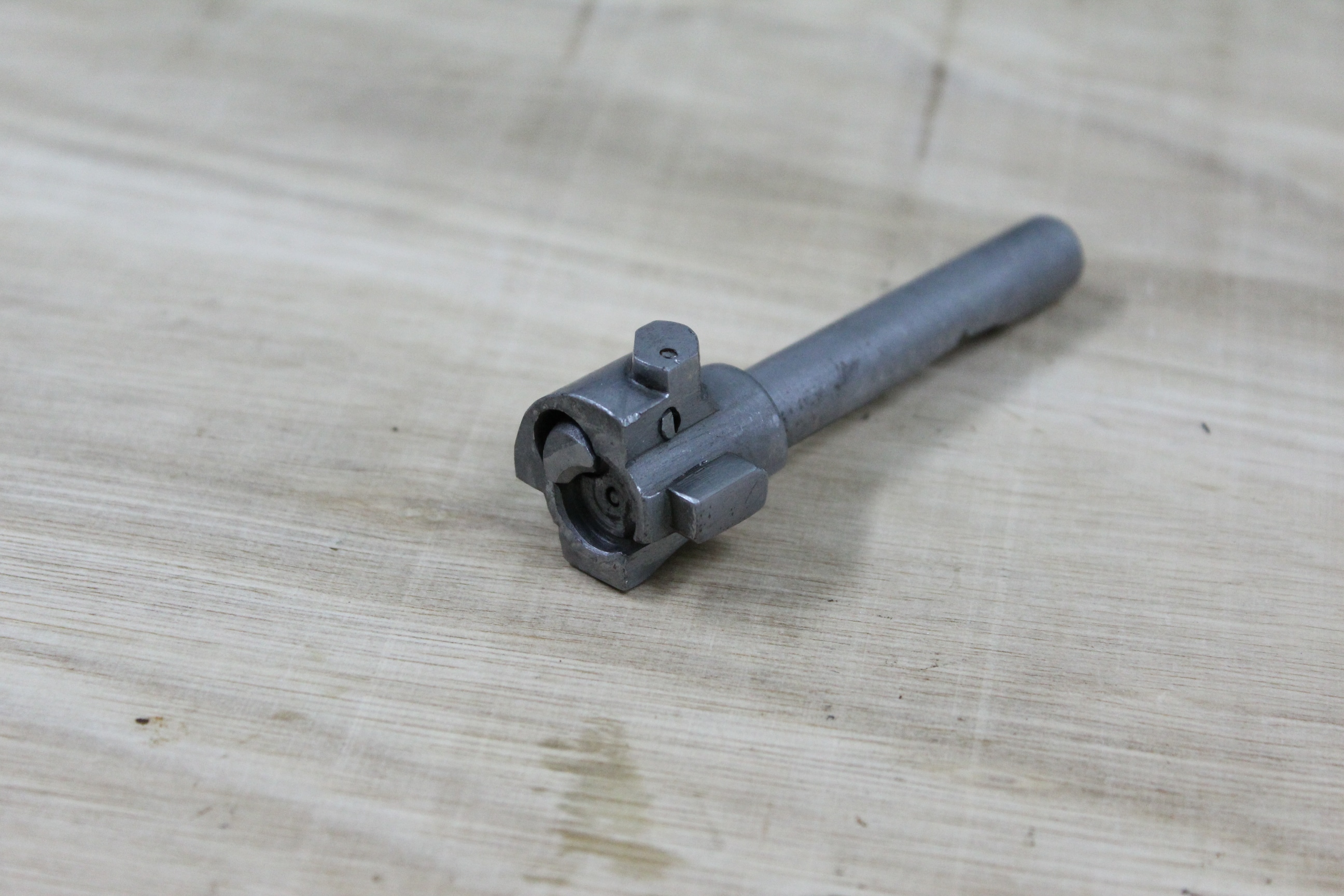 L’ensemble mobile d’une Kalashnikov est composé de la culasse, du support de la culasse avec son piston d’emprunt des gaz. Les deux pièces sont intéressantes à observer car on distingue un niveau de finition différent entre la culasse et son support. En effet, autant le support n’est pas très joli autant la culasse semble avoir une finition convenable.
