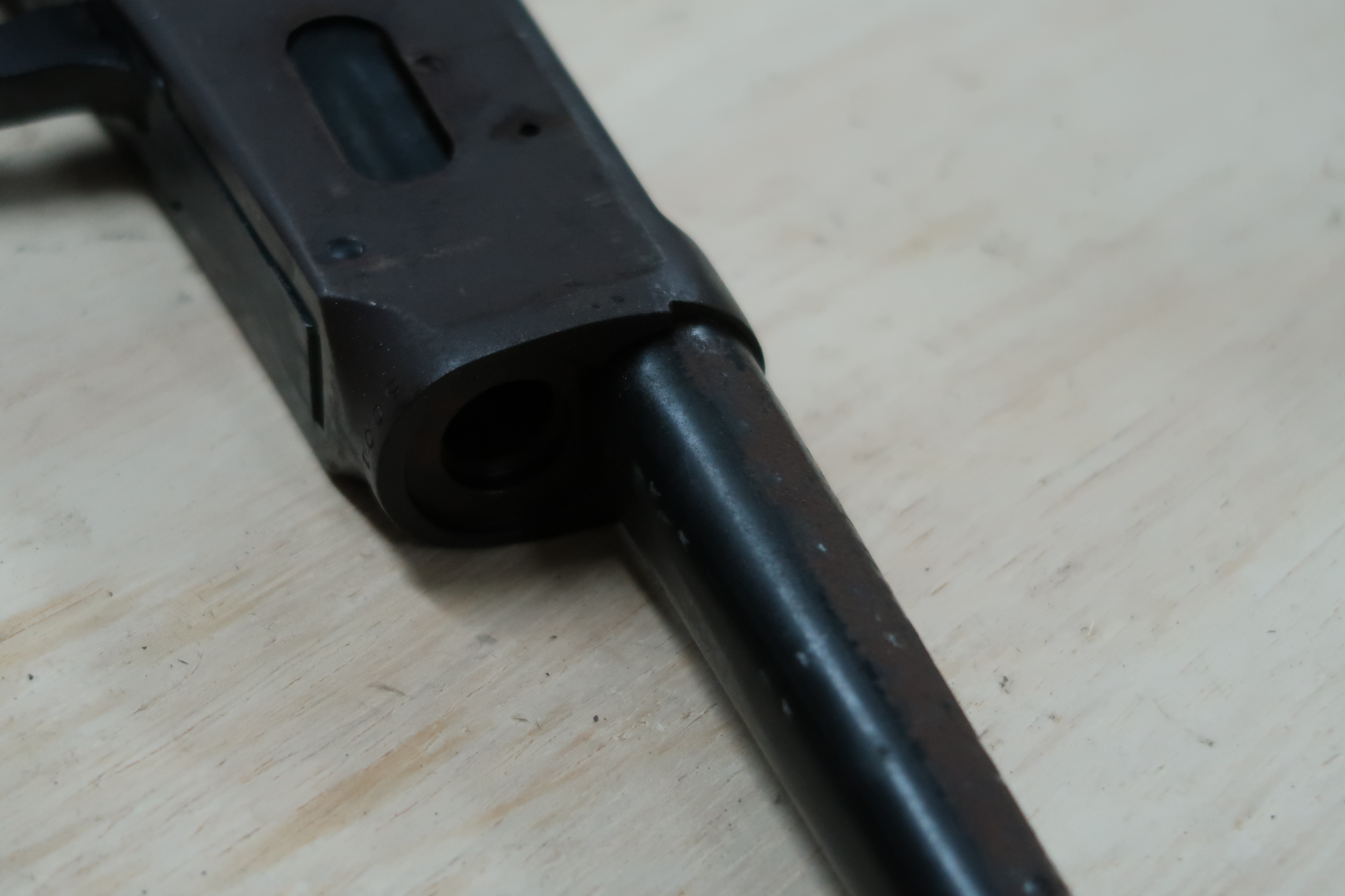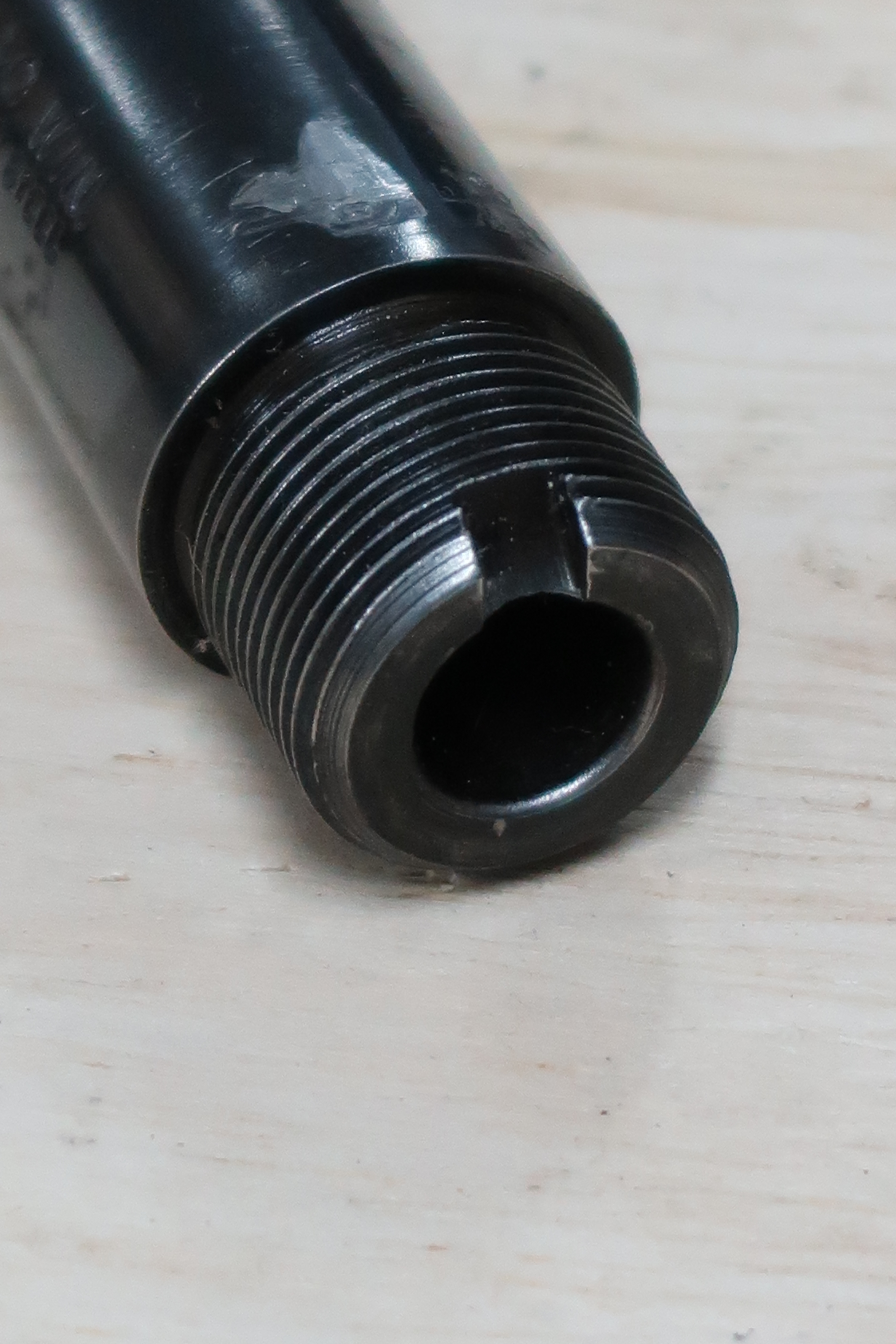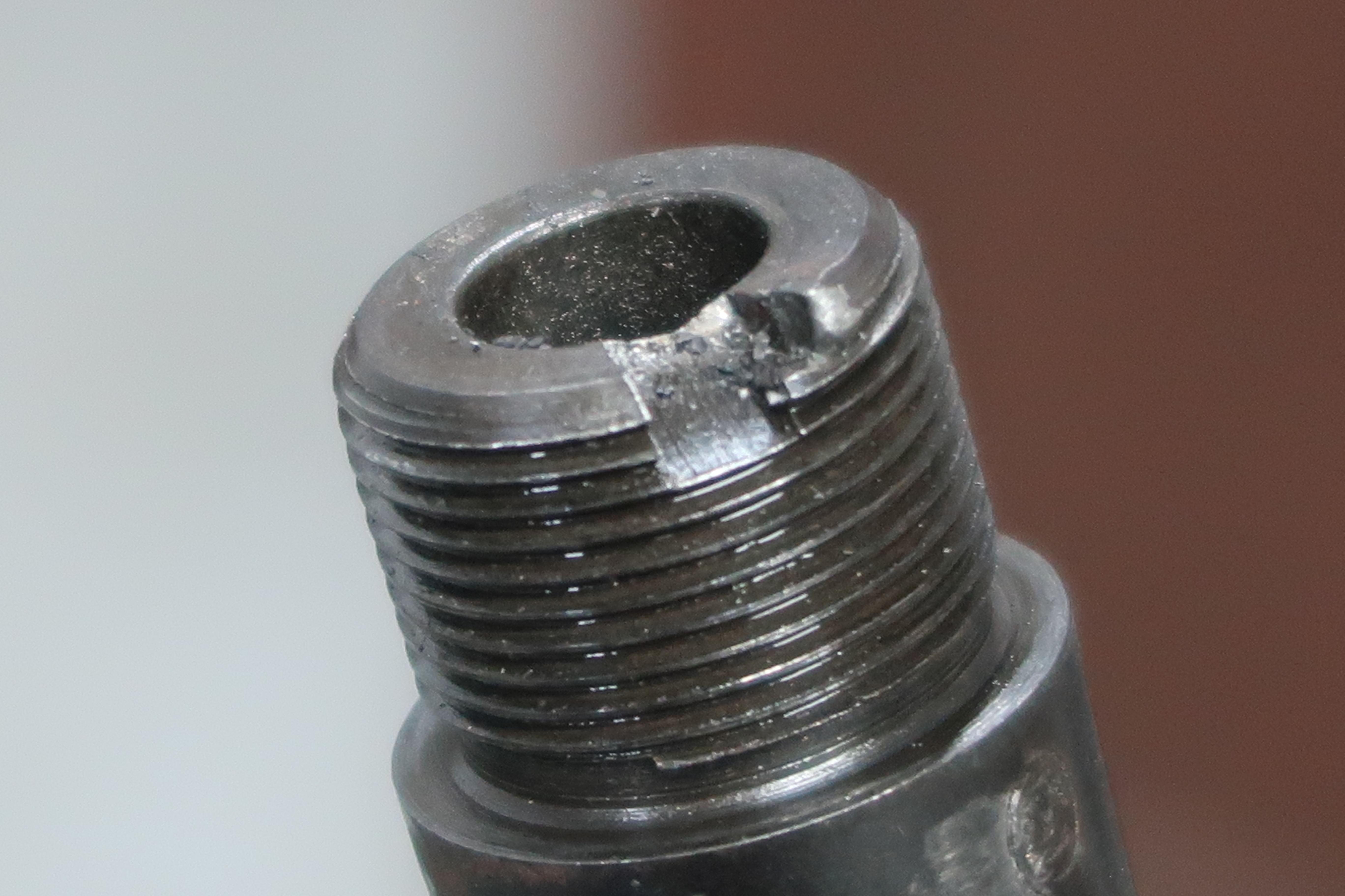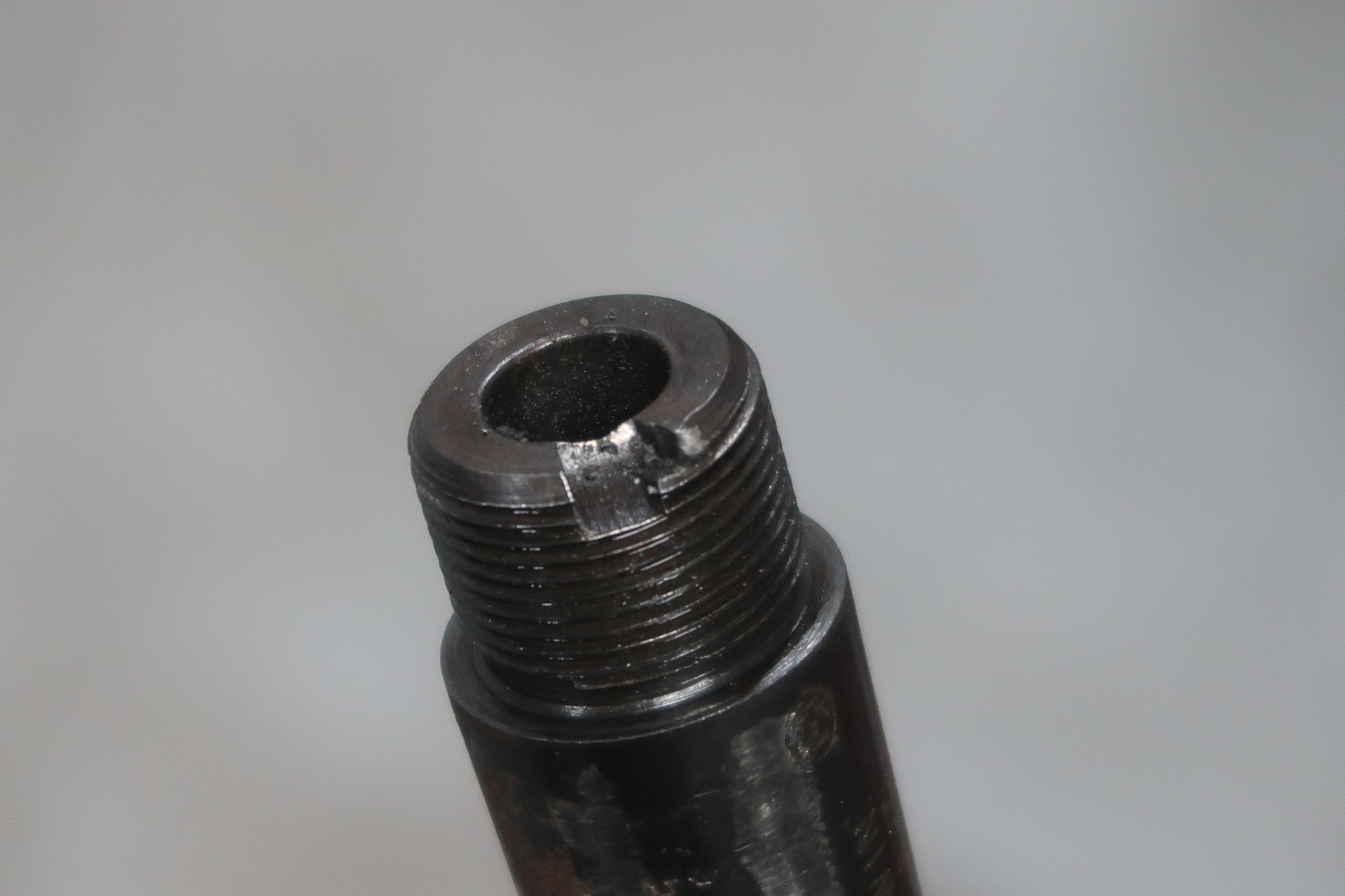 La petite bavure provoquée par l’extracteur sur le canon peut, selon son ampleur, toucher le filetage de la boite de culasse. Les photos ci-dessous montrent le résultat. Dans notre exemple, oui, la déformation est suffisante pour toucher le filetage du canon.