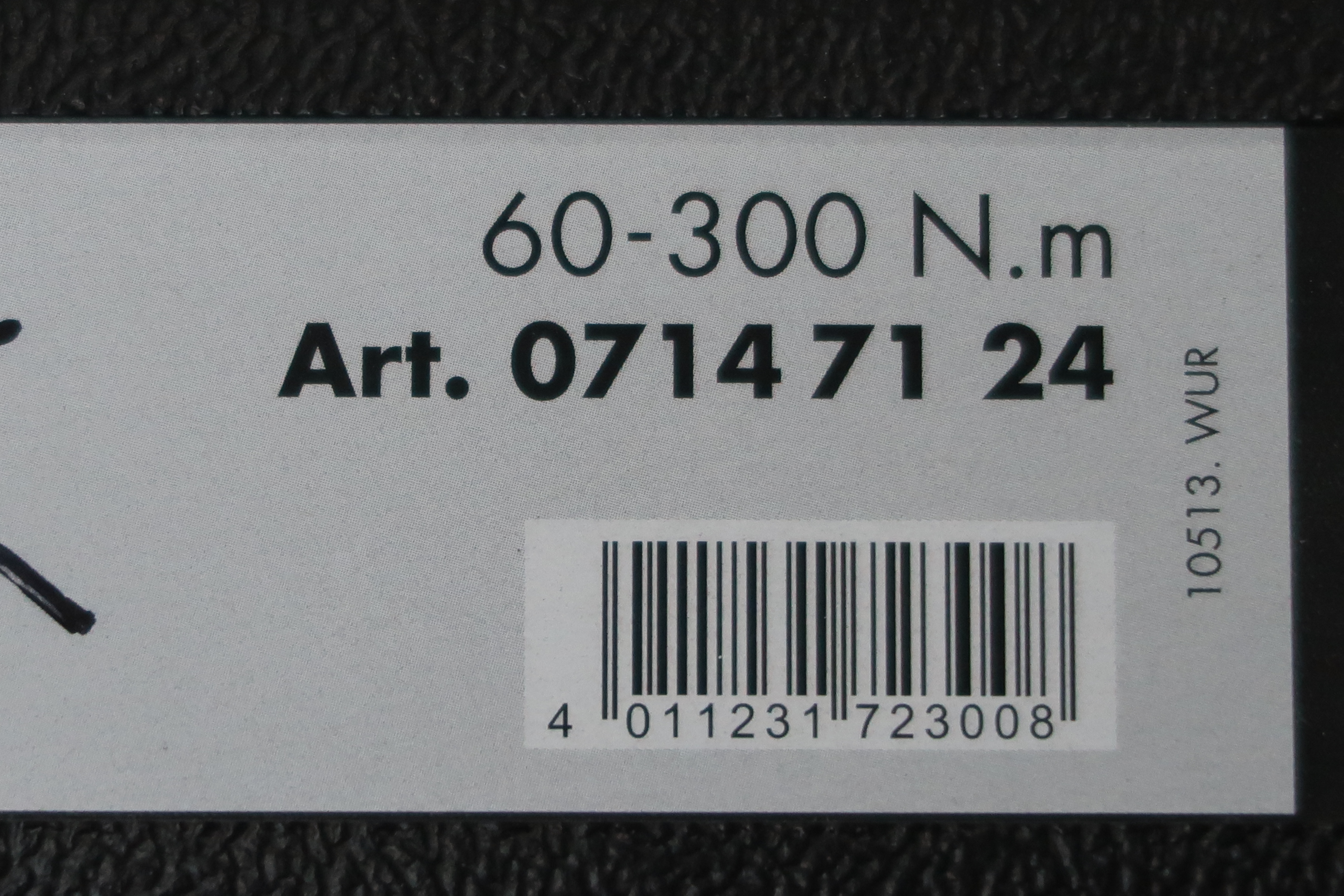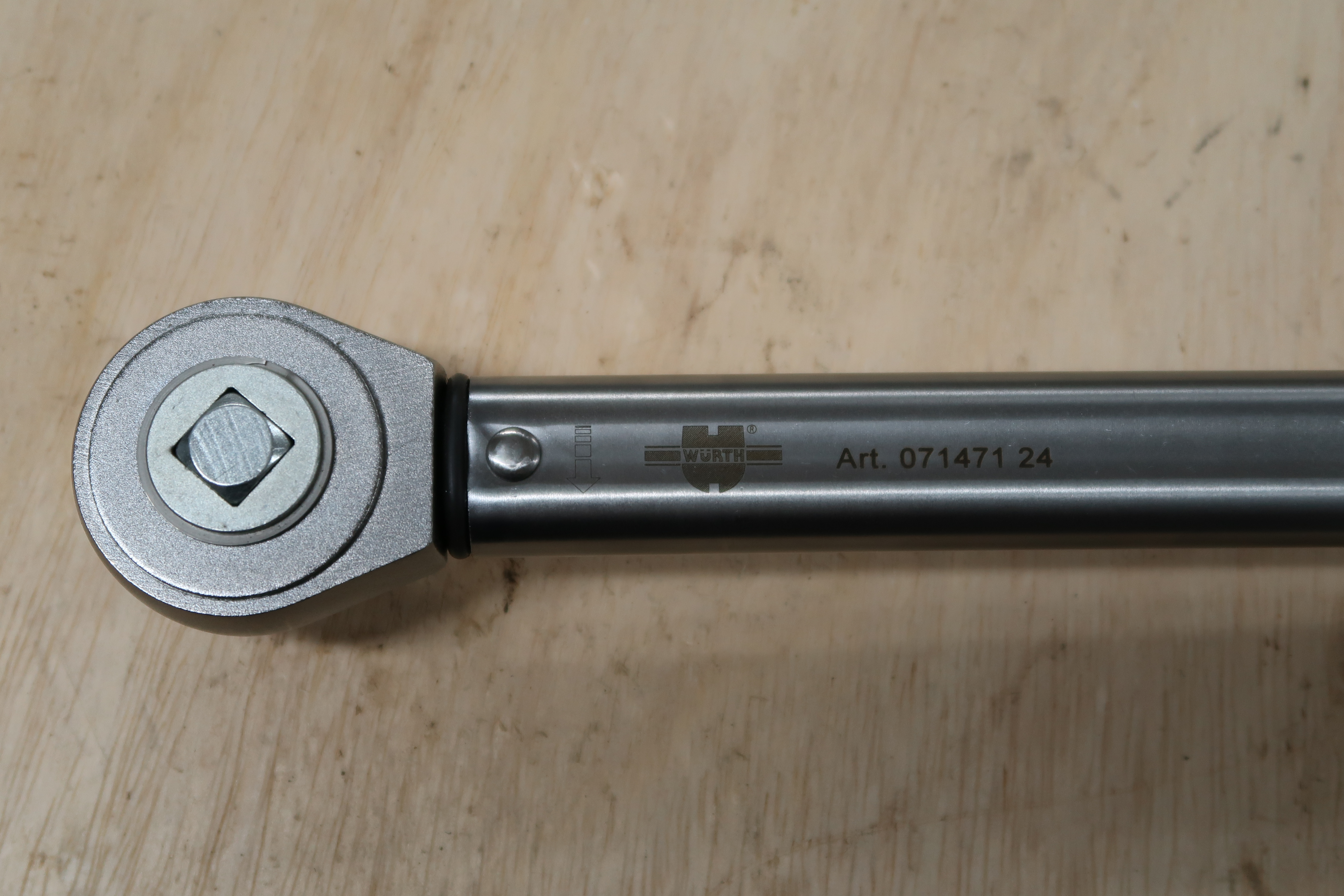 • La clé dynamométrique. Le choix s’est porté sur une clé dynamométrique de marque Wurth. Le carré fait 1/2 pouce de coté. L’éventail de la force testable est compris entre 60 et 300 N.m ;