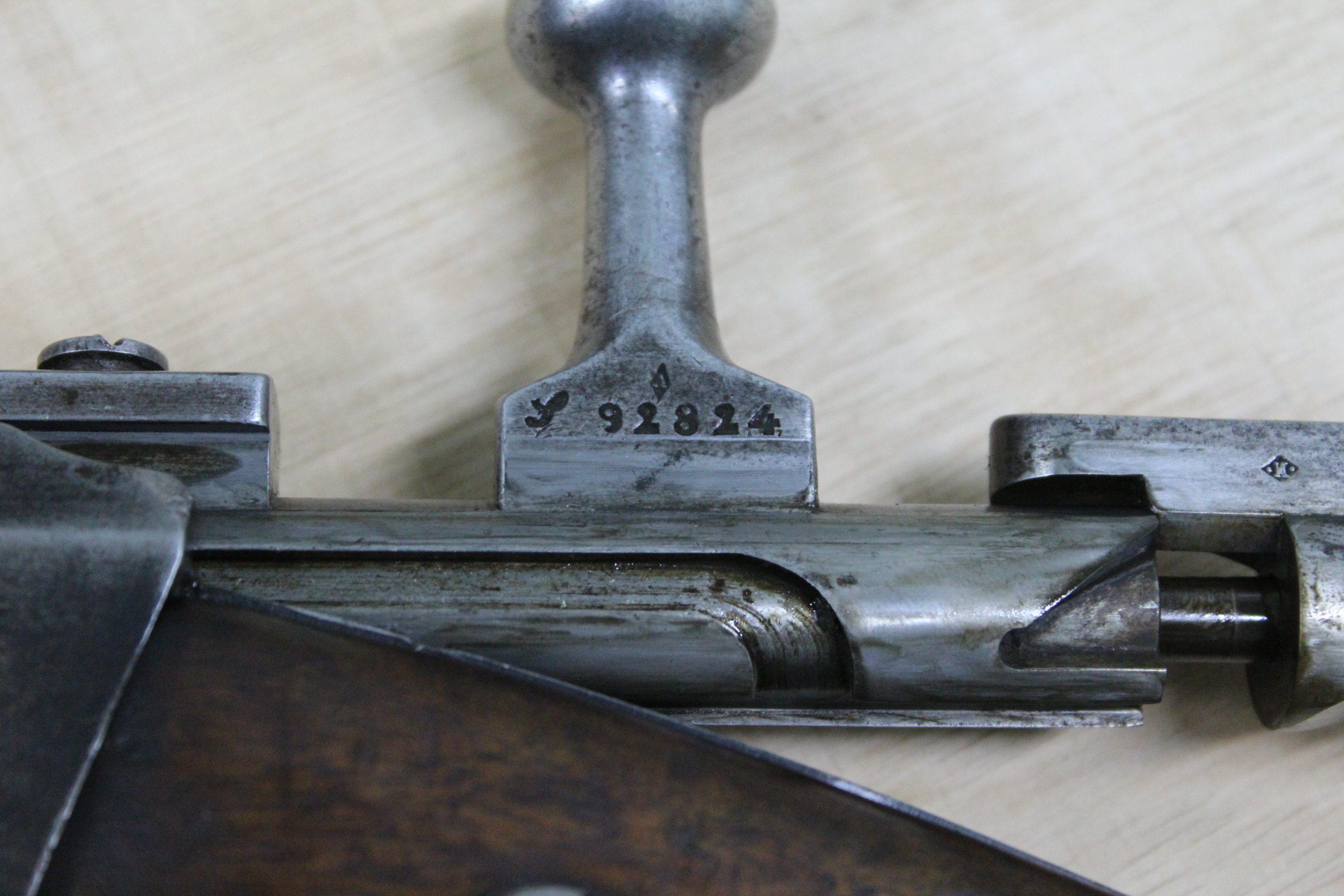 - L’emplacement du numéro de la culasse sur le fusil Lebel 1886.
