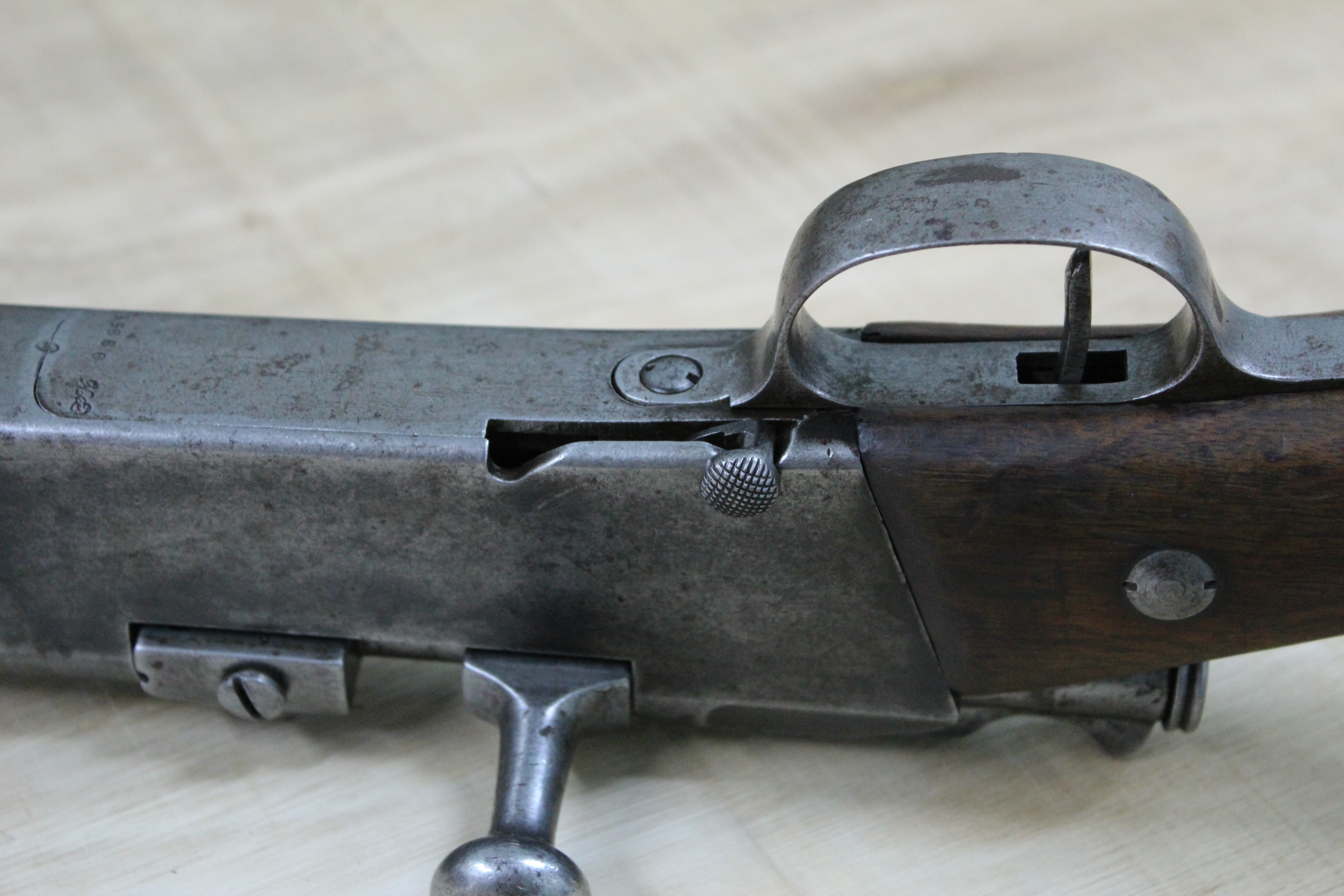 La forme de la culasse est très proche de celle du Chassepot et du Gras. Il y a comme un lien de parenté, une filiation très clair entre les trois pièces. Est ce une volonté de réemployer l’outil de production, de limiter la formation des soldats et des ouvriers, ou une résistance au changement. Cet héritage sera repris sur le fusil Berthier.