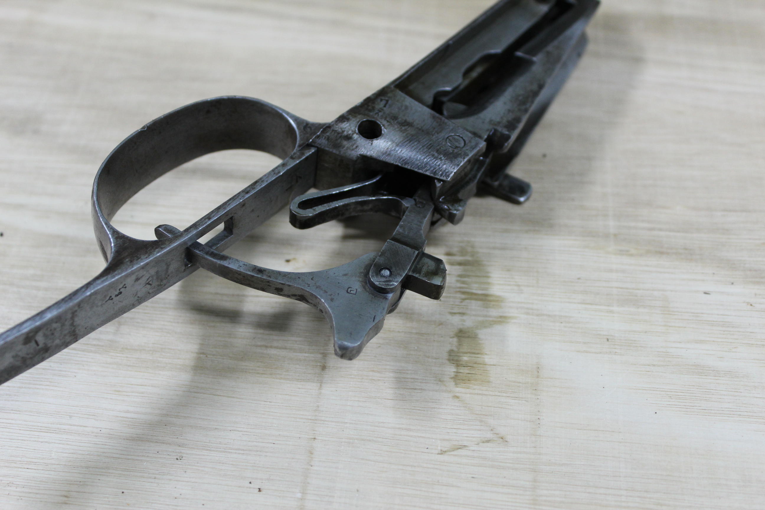 - Vue de la face gauche du mécanisme, vue des marquage de l’arme.