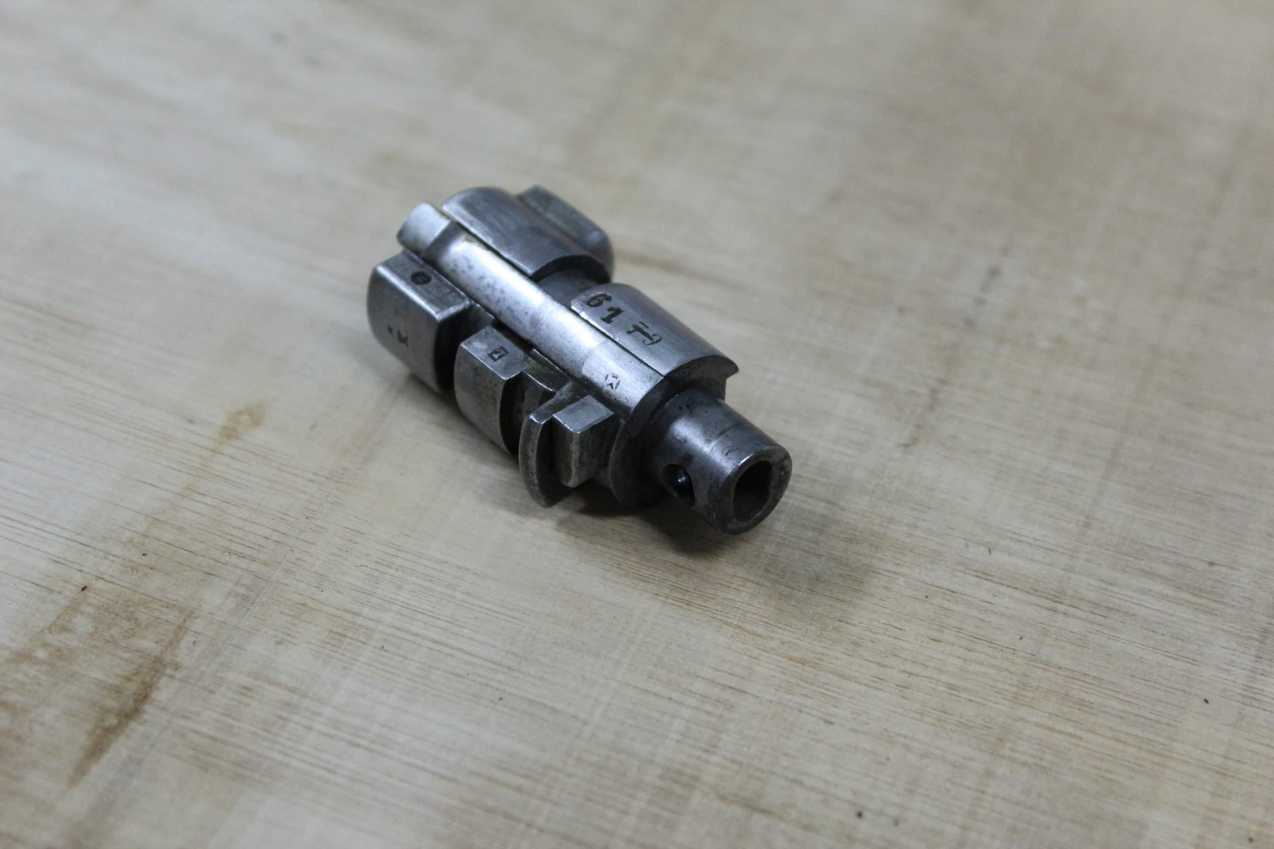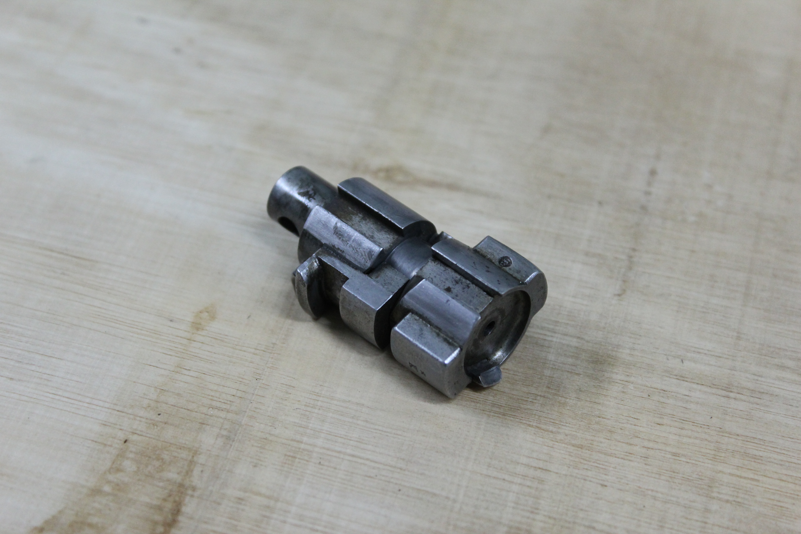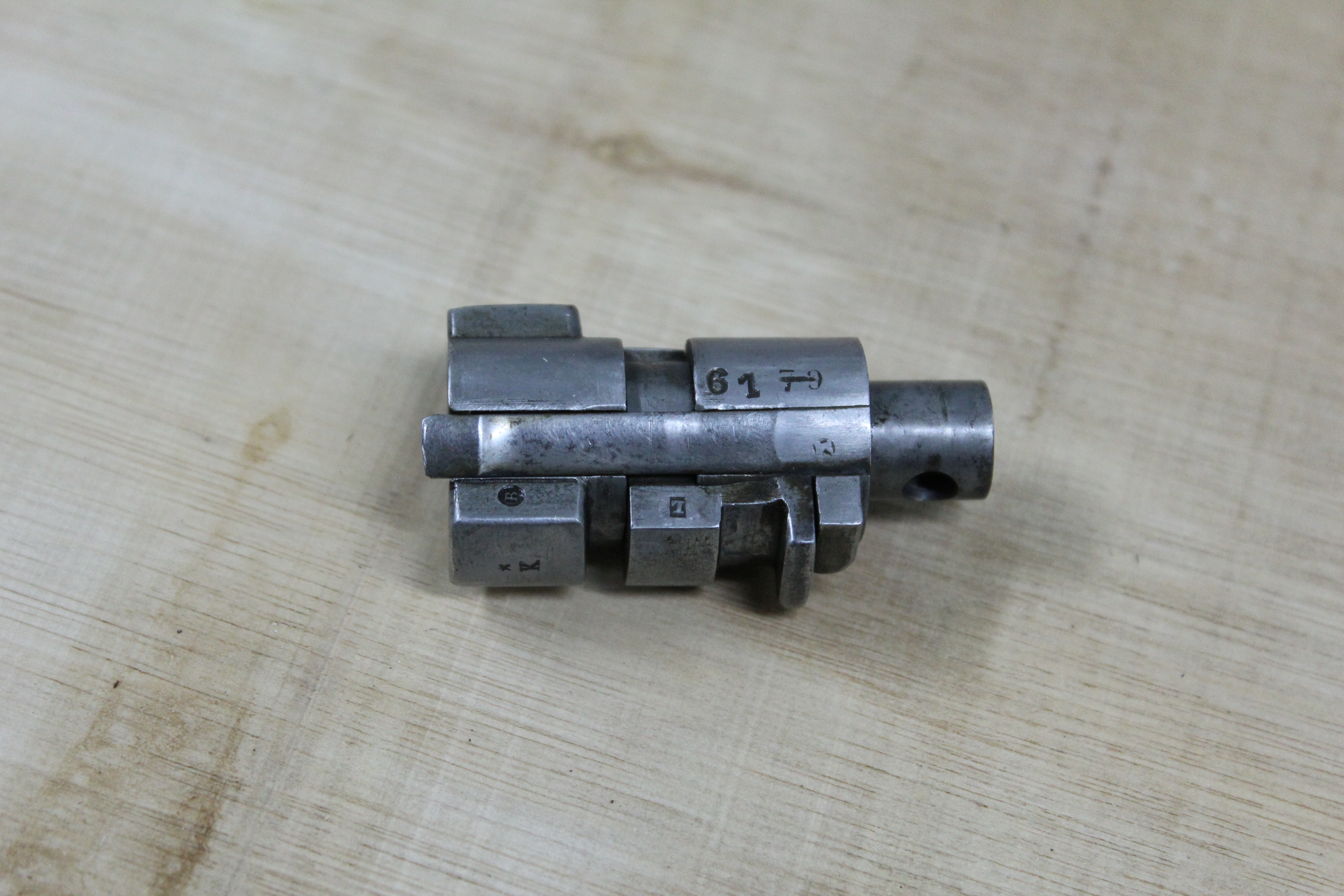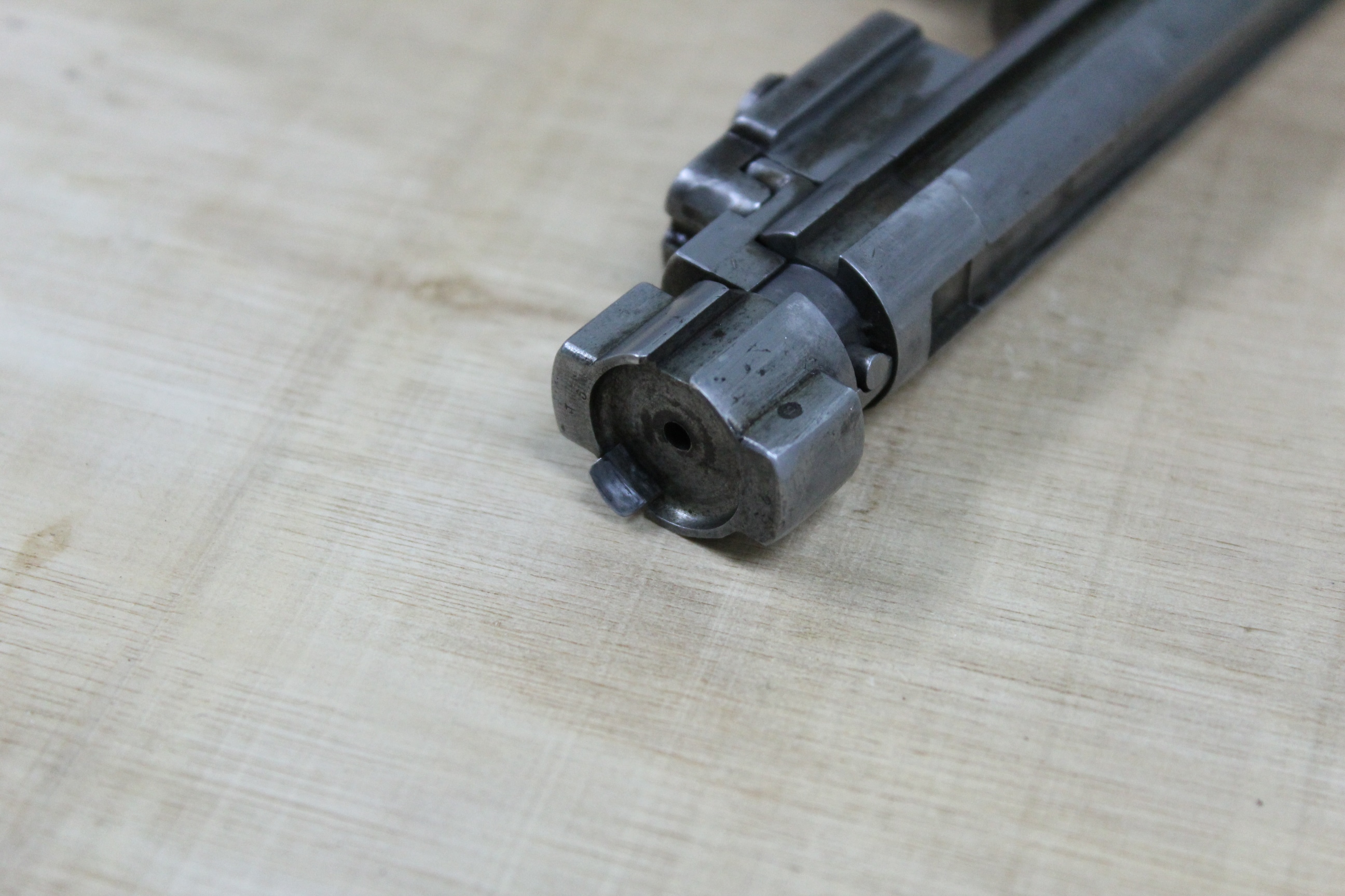 - Vue de la tête de culasse démontée de son corps. On peut y voir l’extracteur.
