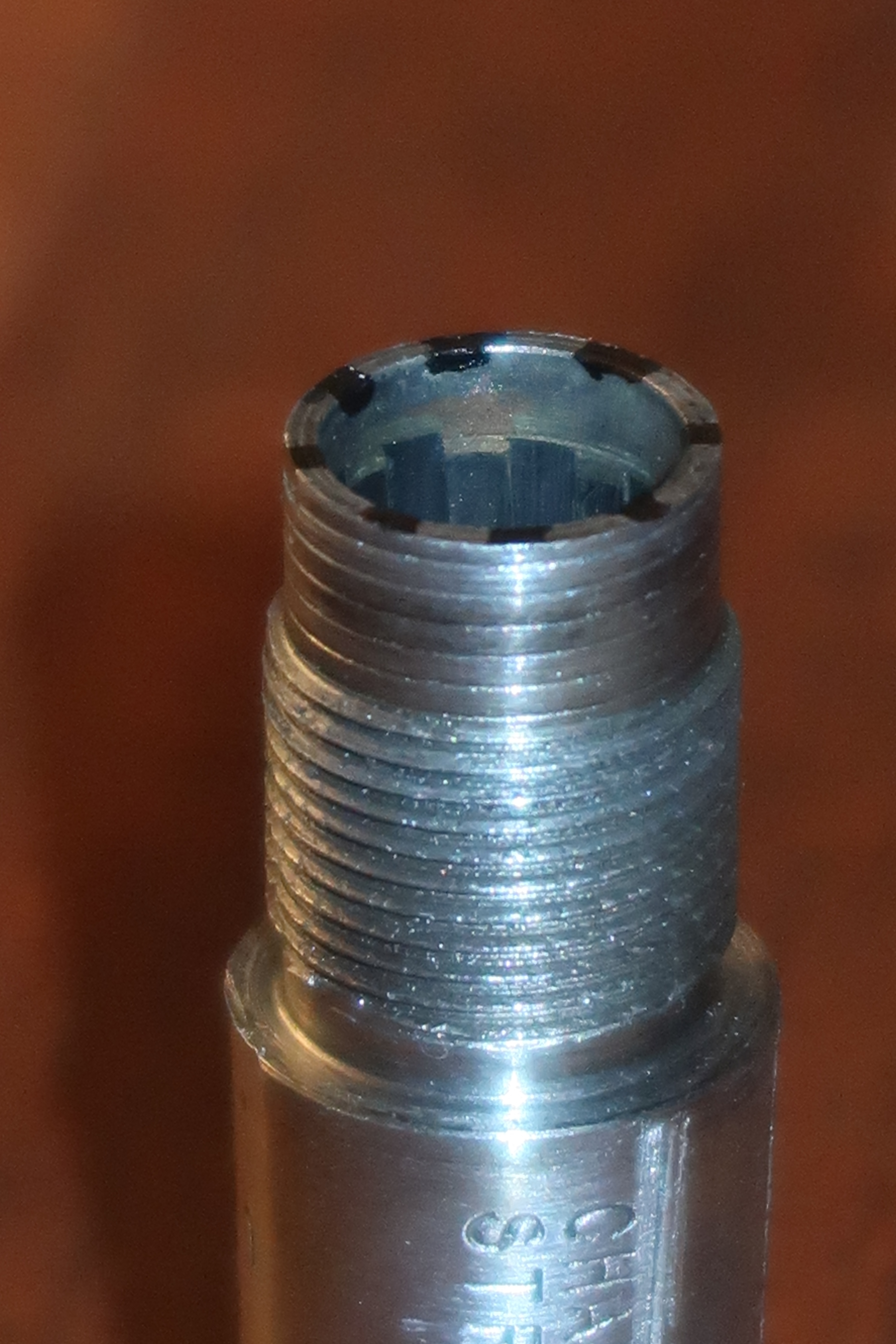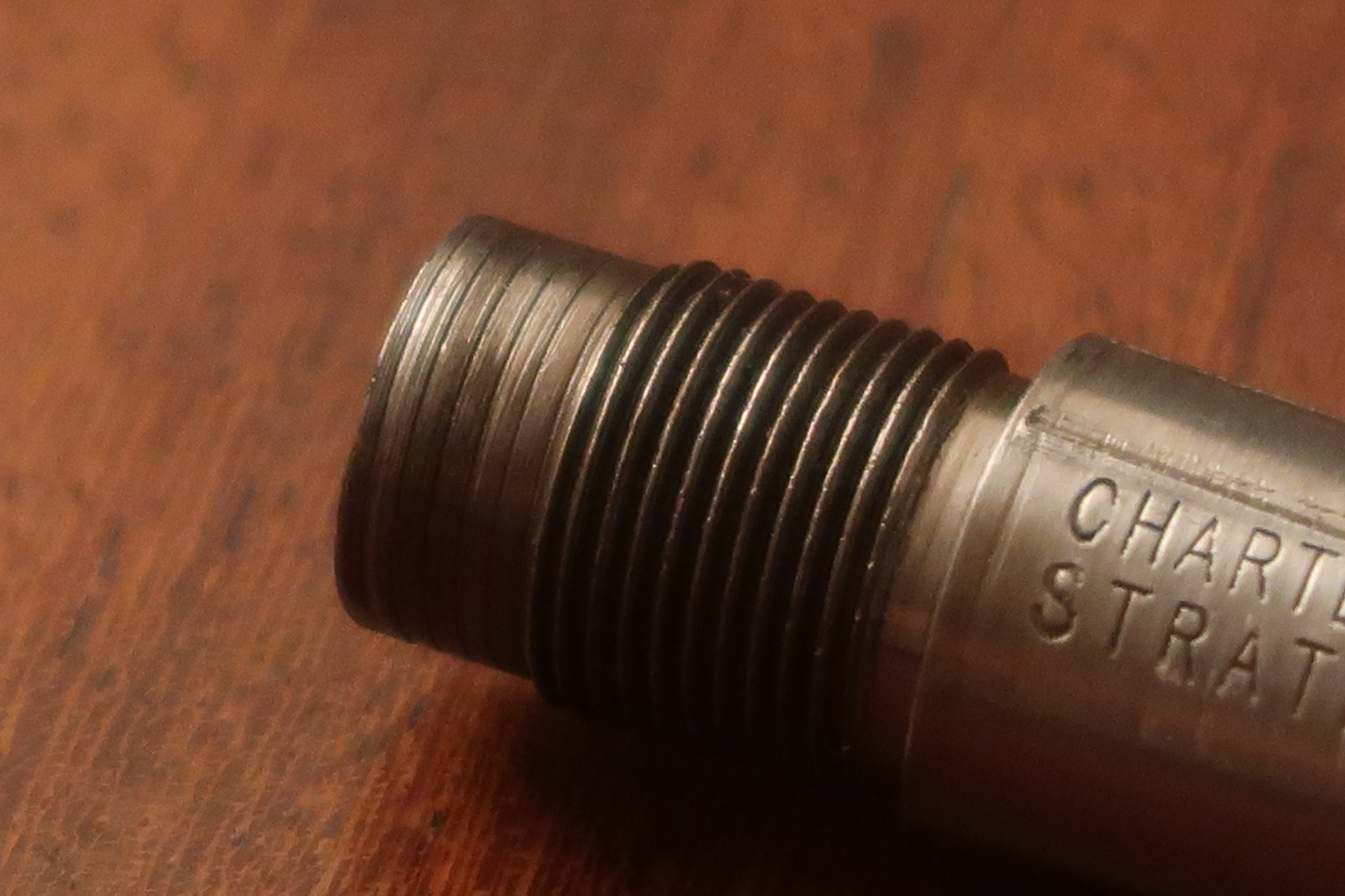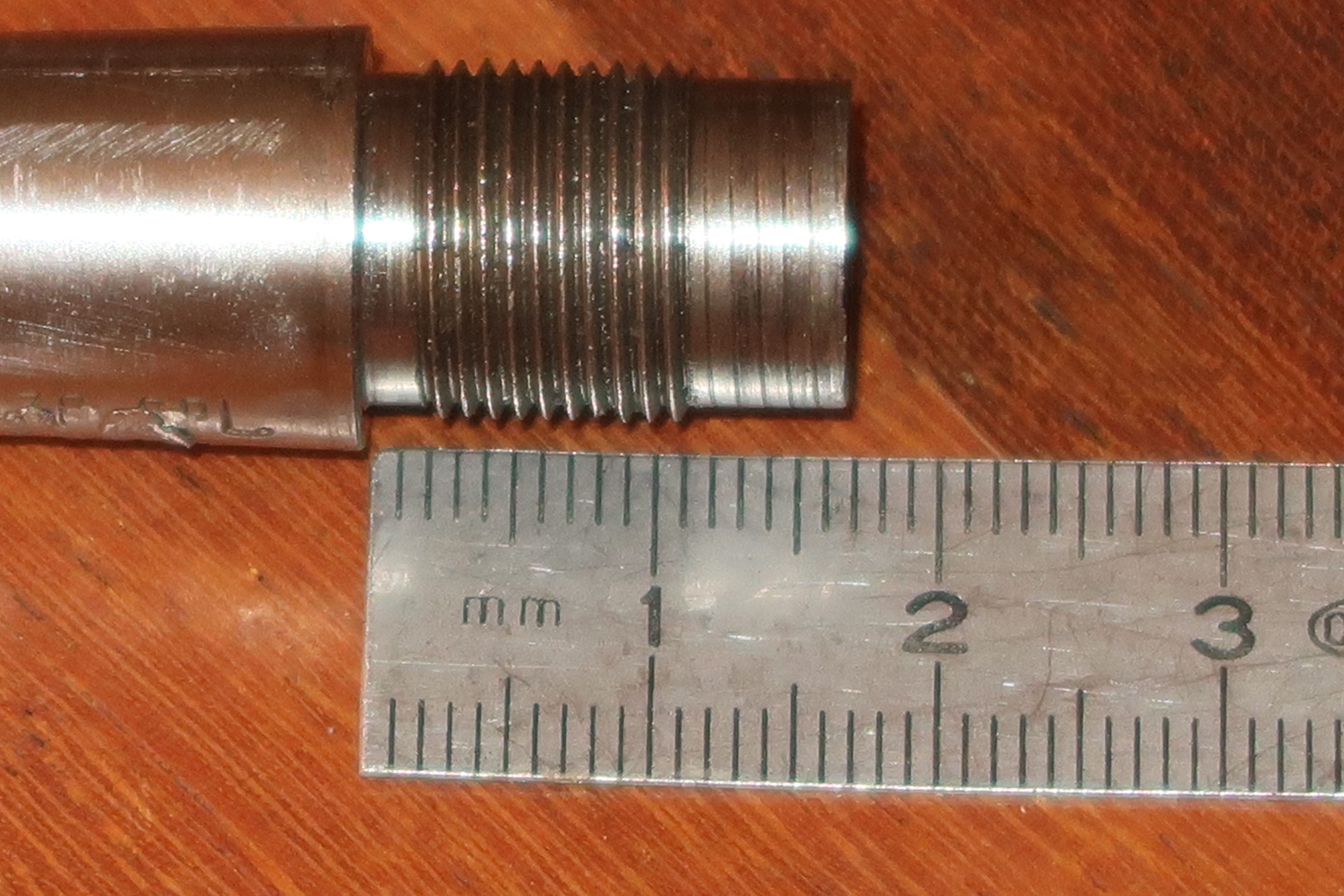 Je n’ai pas trouvé de trace de colle sur le filetage. Le canon est juste serré au couple. Par manque de temps pour me confectionner un outillage plus adapté, je n’ai pas pu définir ce dernier.
