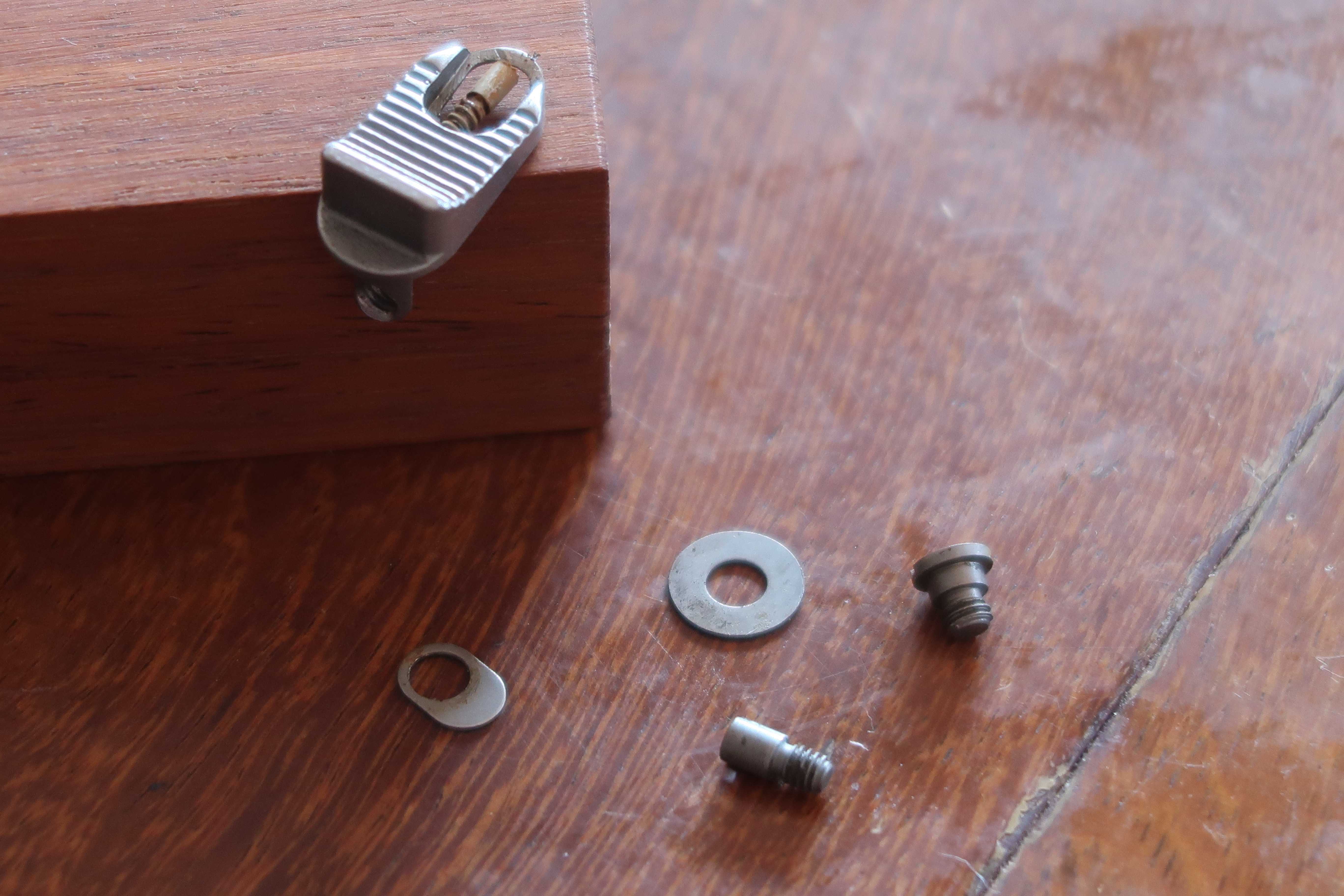 Le levier de déverrouillage du barillet est assez synthétique. Le poussoir est une pièce issue de micro-fusion.
