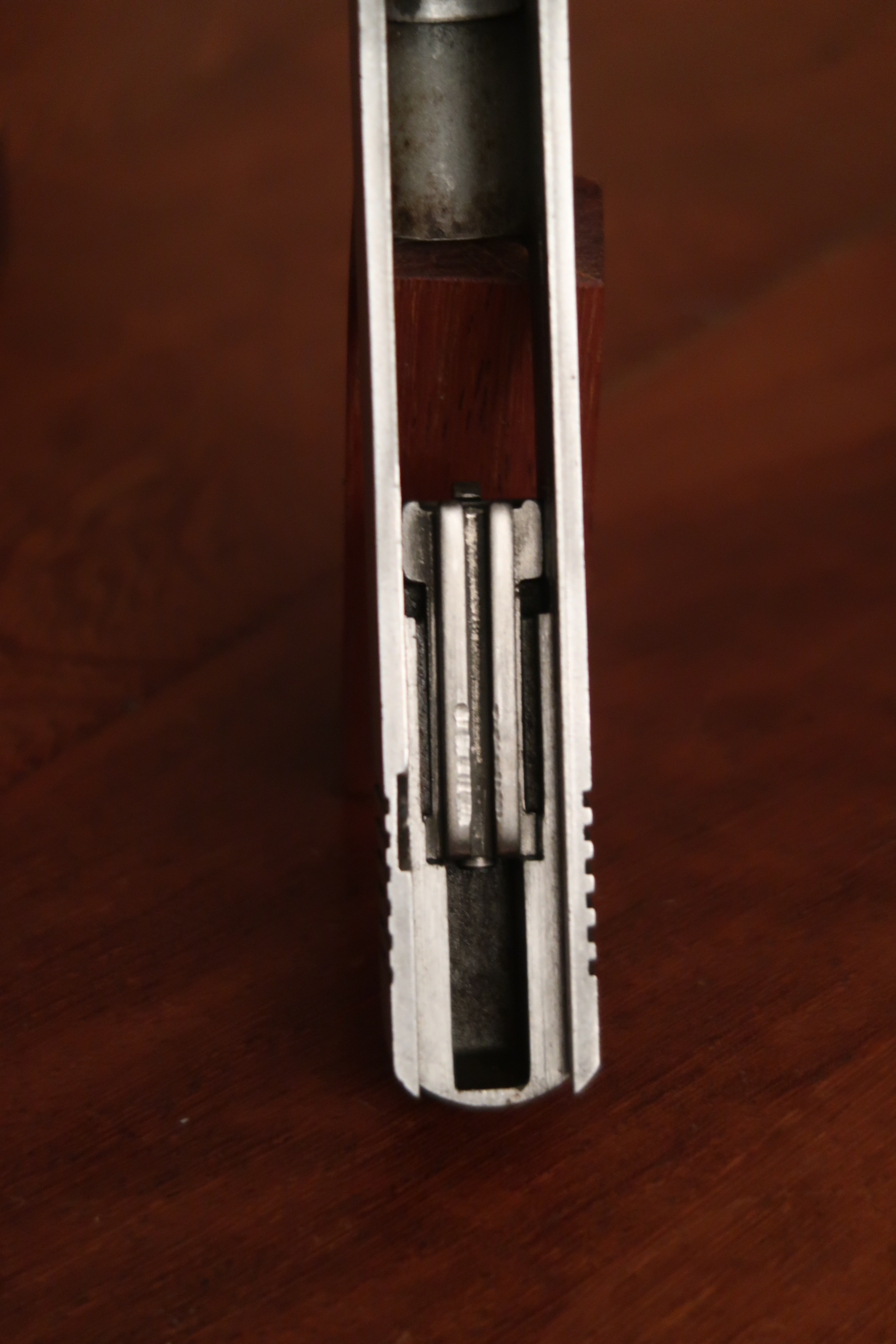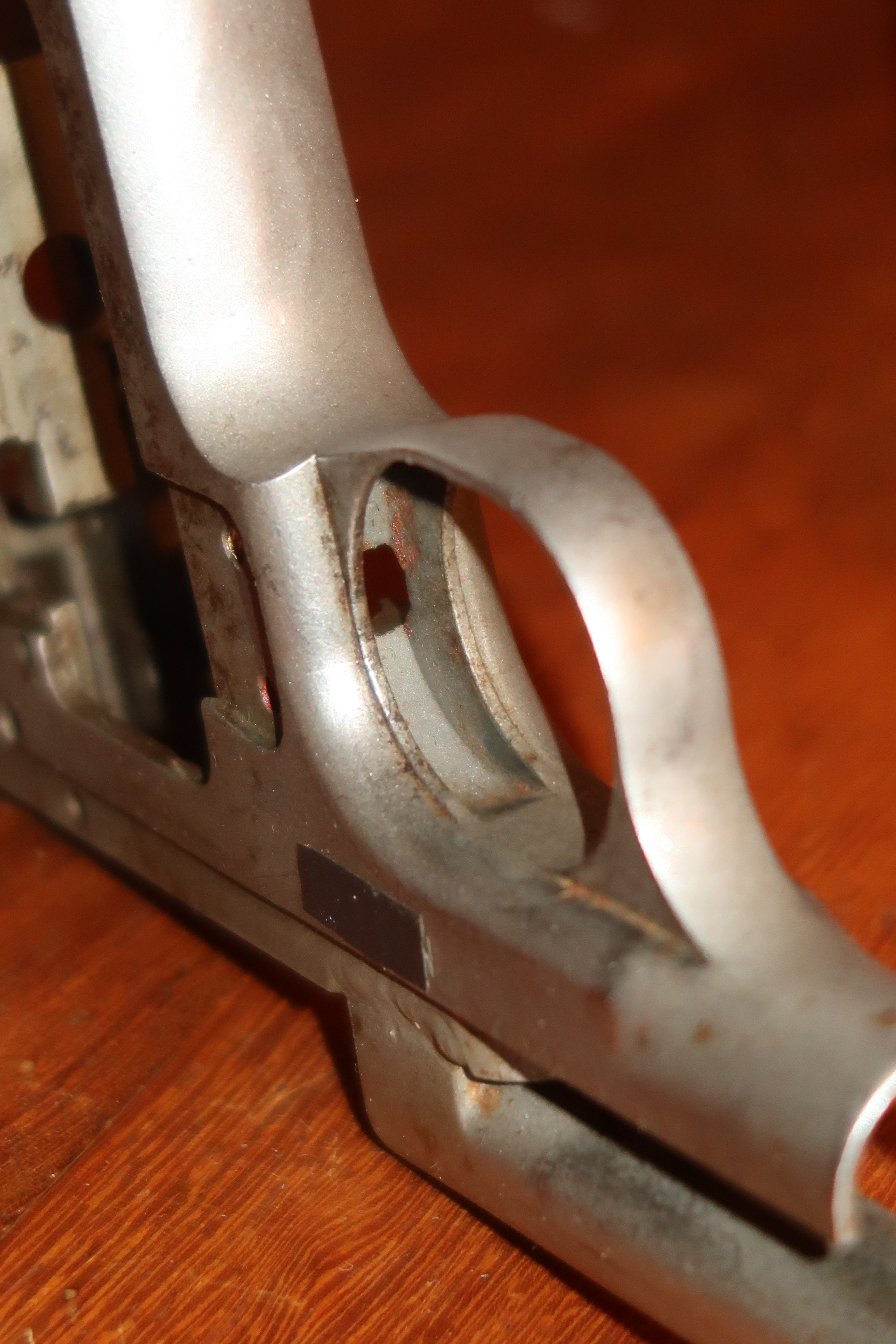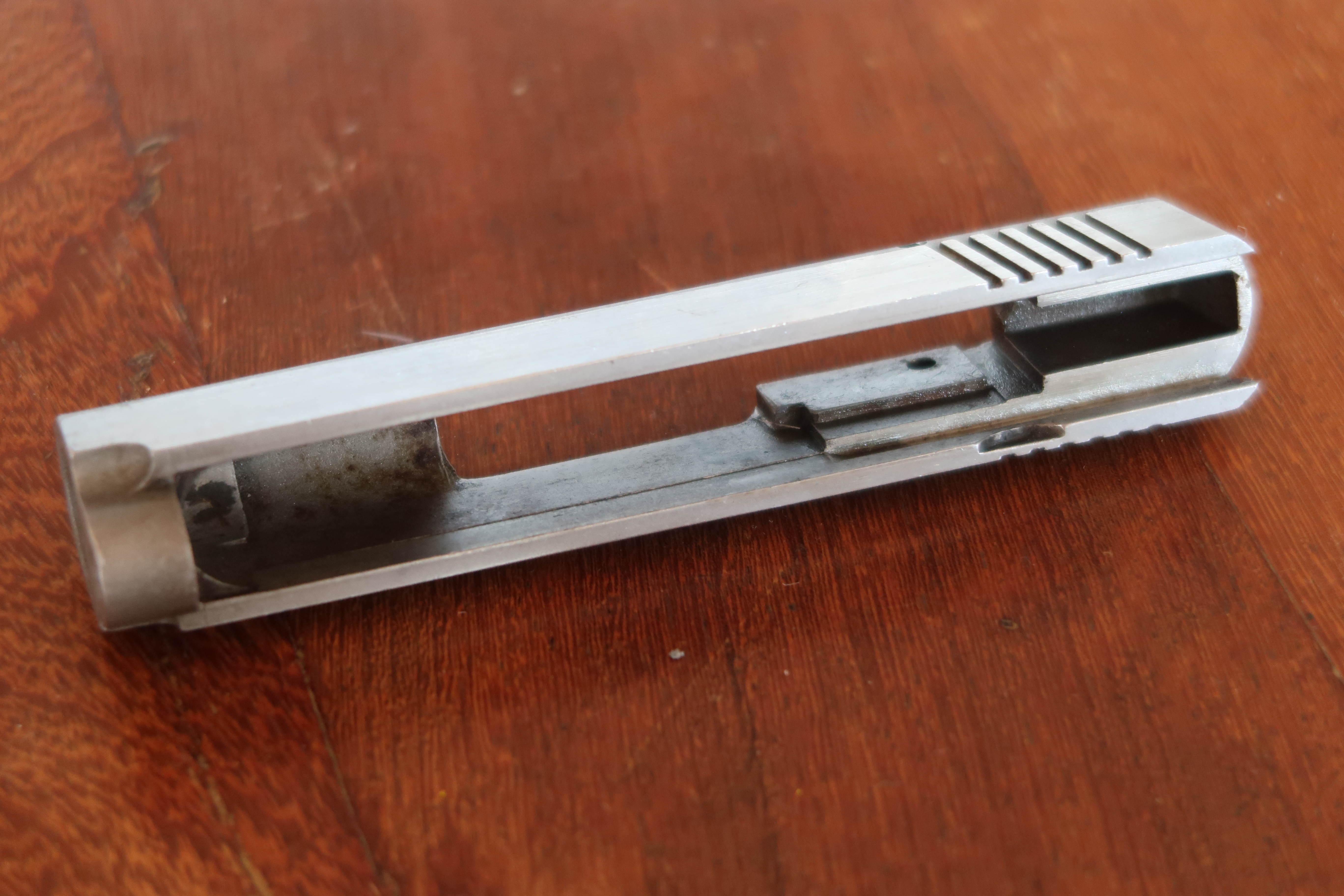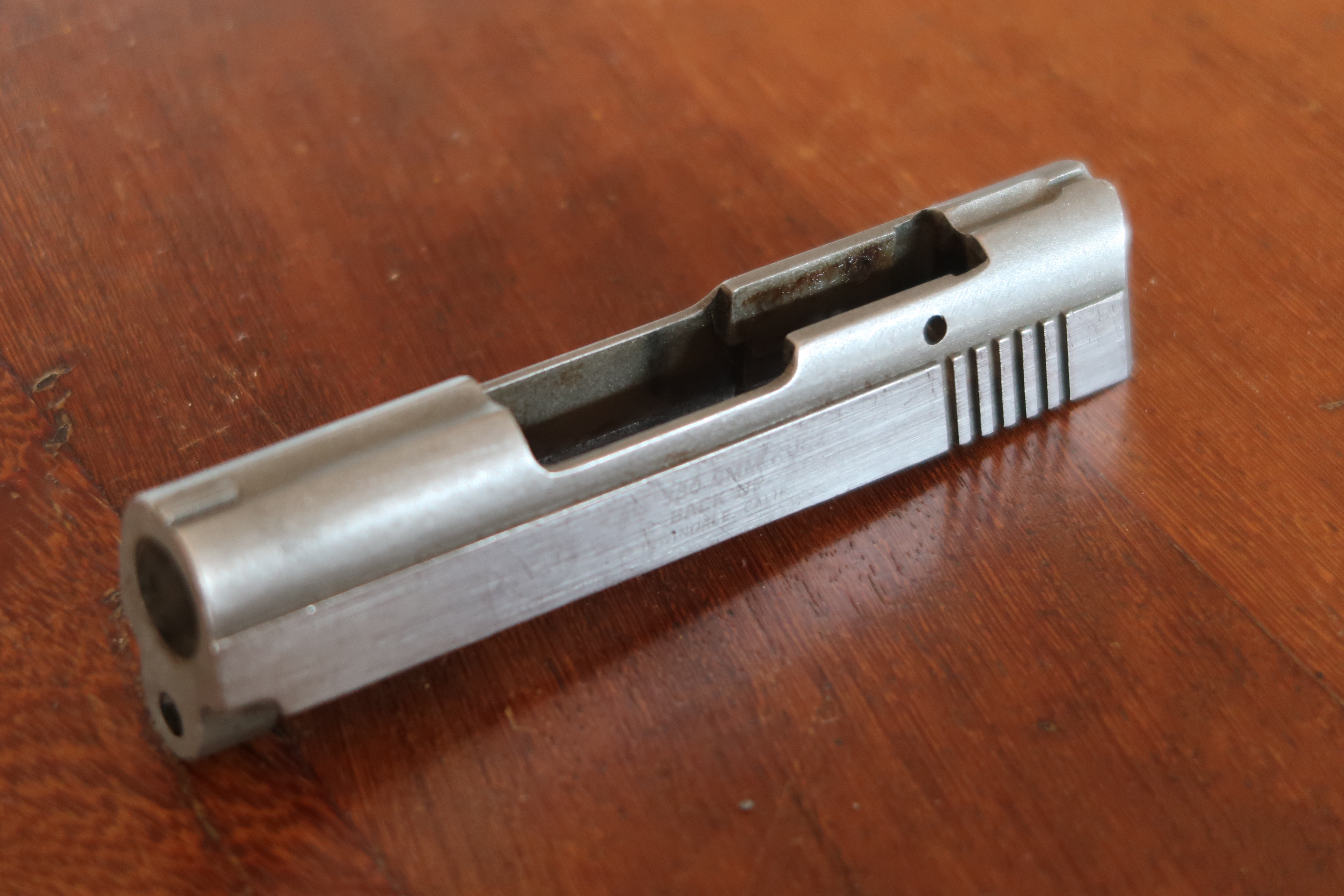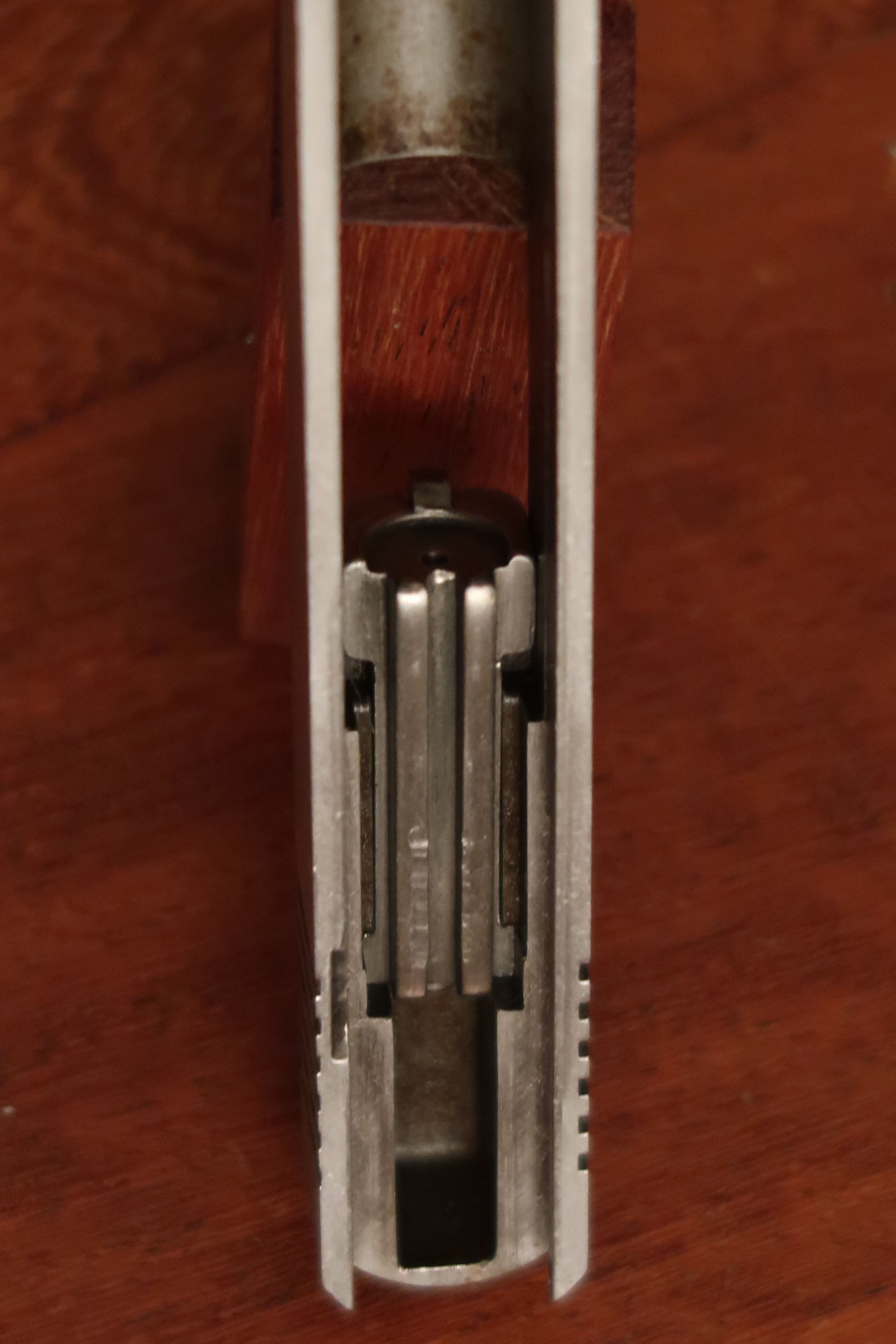 L’arme que nous avons vu ici est dans son jus. Elle n’a été que très succinctement nettoyée pour la rédaction de cet article. Elle est sensée être en acier inoxydable or on a vu sur les photos qu’une légère fleur de rouille est présente par endroit. Il aurait été aisé de sabler l’arme pour retirer cette fleur de rouille (même dans les plus petits recoins) et de lui redonner un air de jeunesse. Tout ça pour dire qu’un démontage intégrale est de temps en temps utile même si les armes sont vendues comme étant en acier inoxydable, certain de ces aciers s’oxydent. Une visite périodique en profondeur évite aussi les mauvaises surprises après l’achat ou la récupération d’une arme d’occasion.