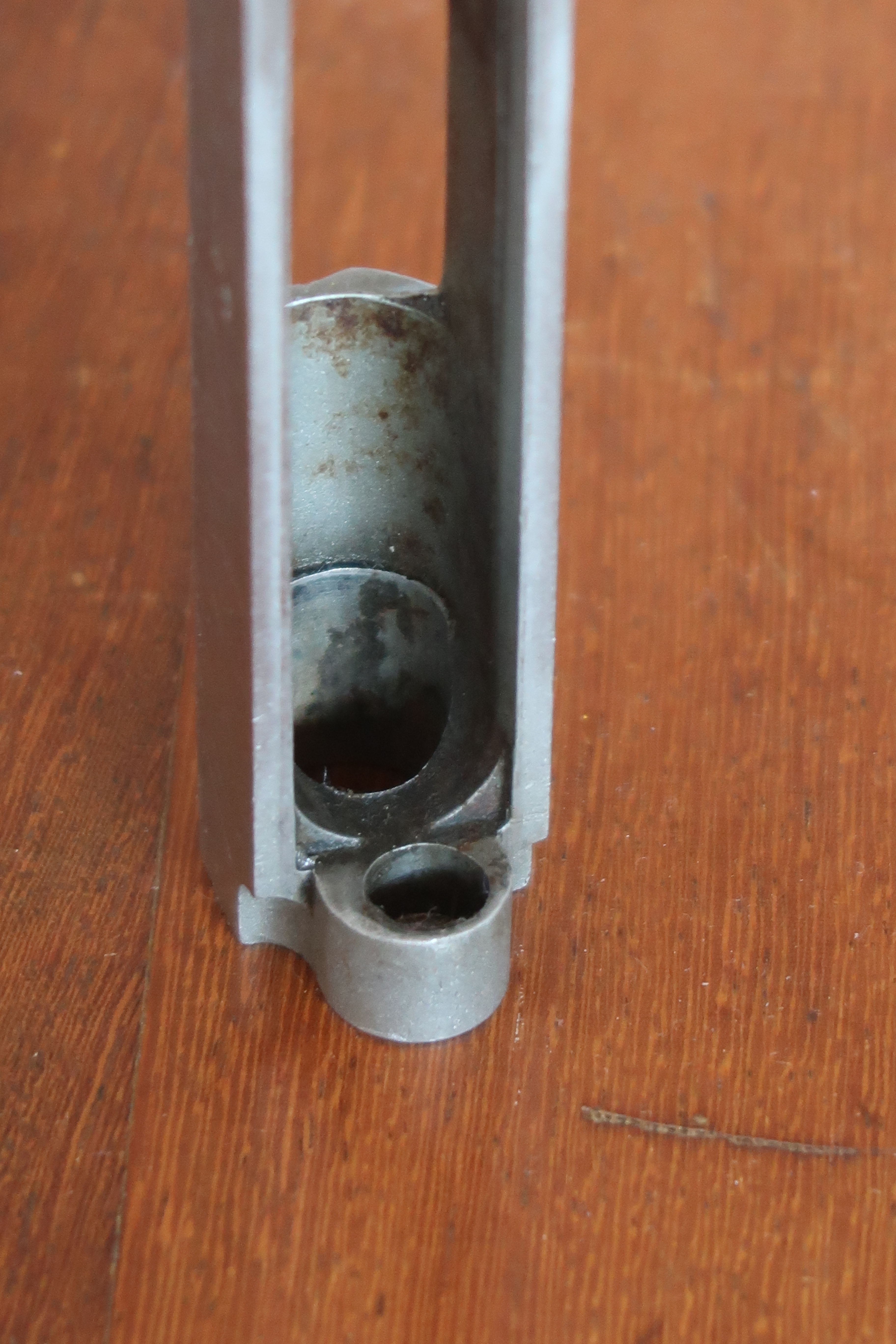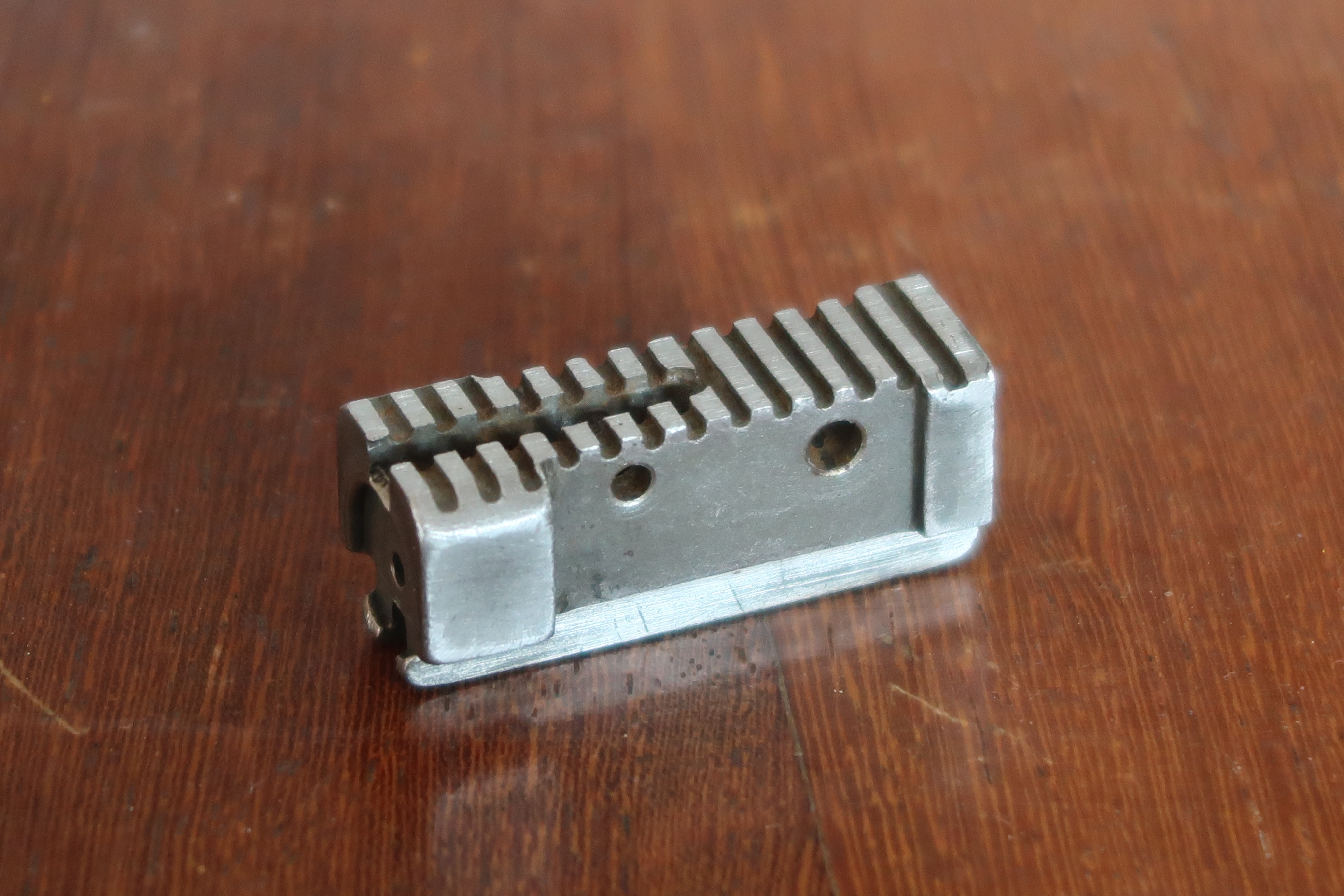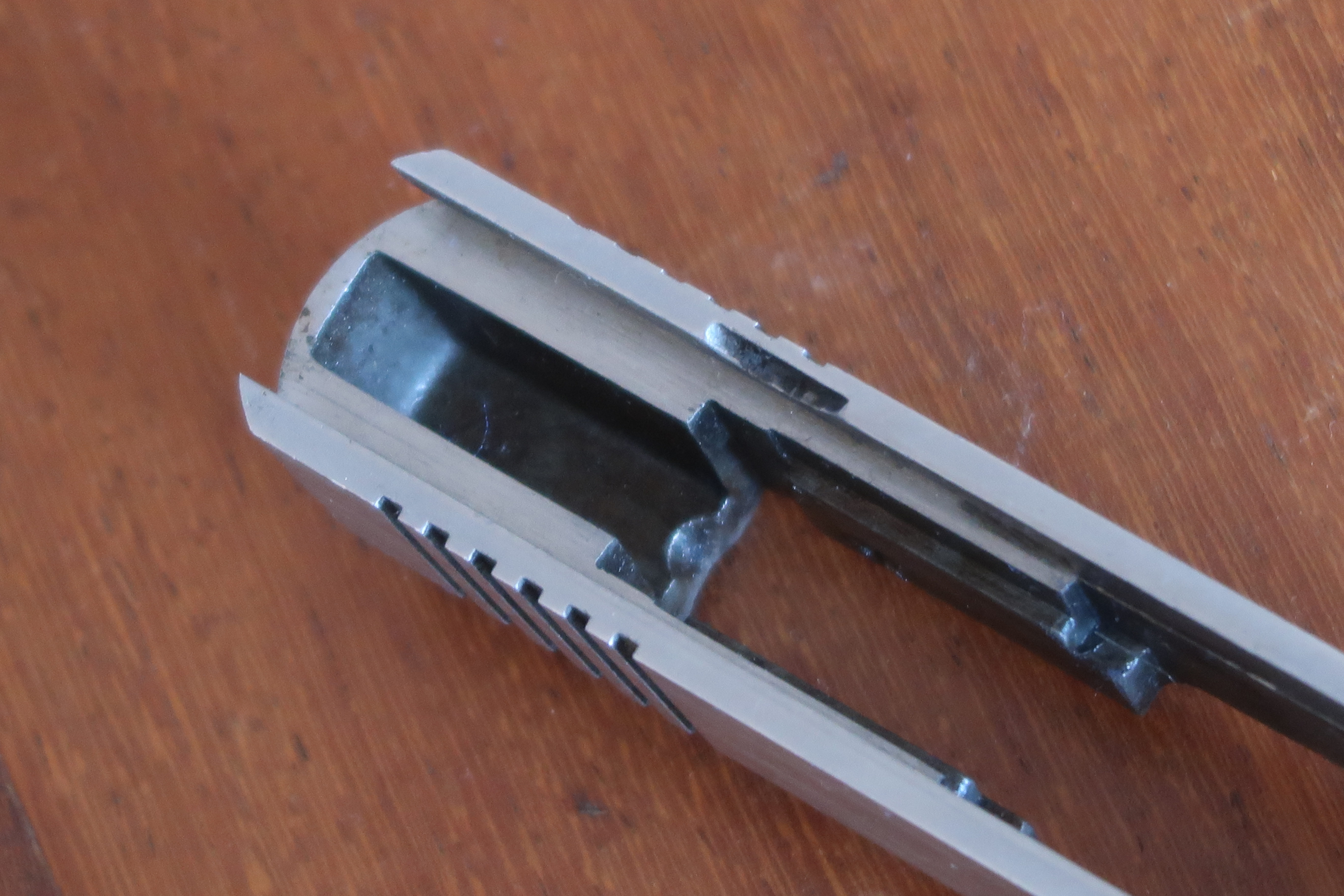 La chose importante du point de vue de la conception et qui relie cet article au précédent, c’est la culasse. Seule la culasse a suivi la voie de la simplification par la division. Celle-ci est en deux parties. Je les appellerais le corps de la culasse et la tête de culasse. (voir photos ci-dessous).