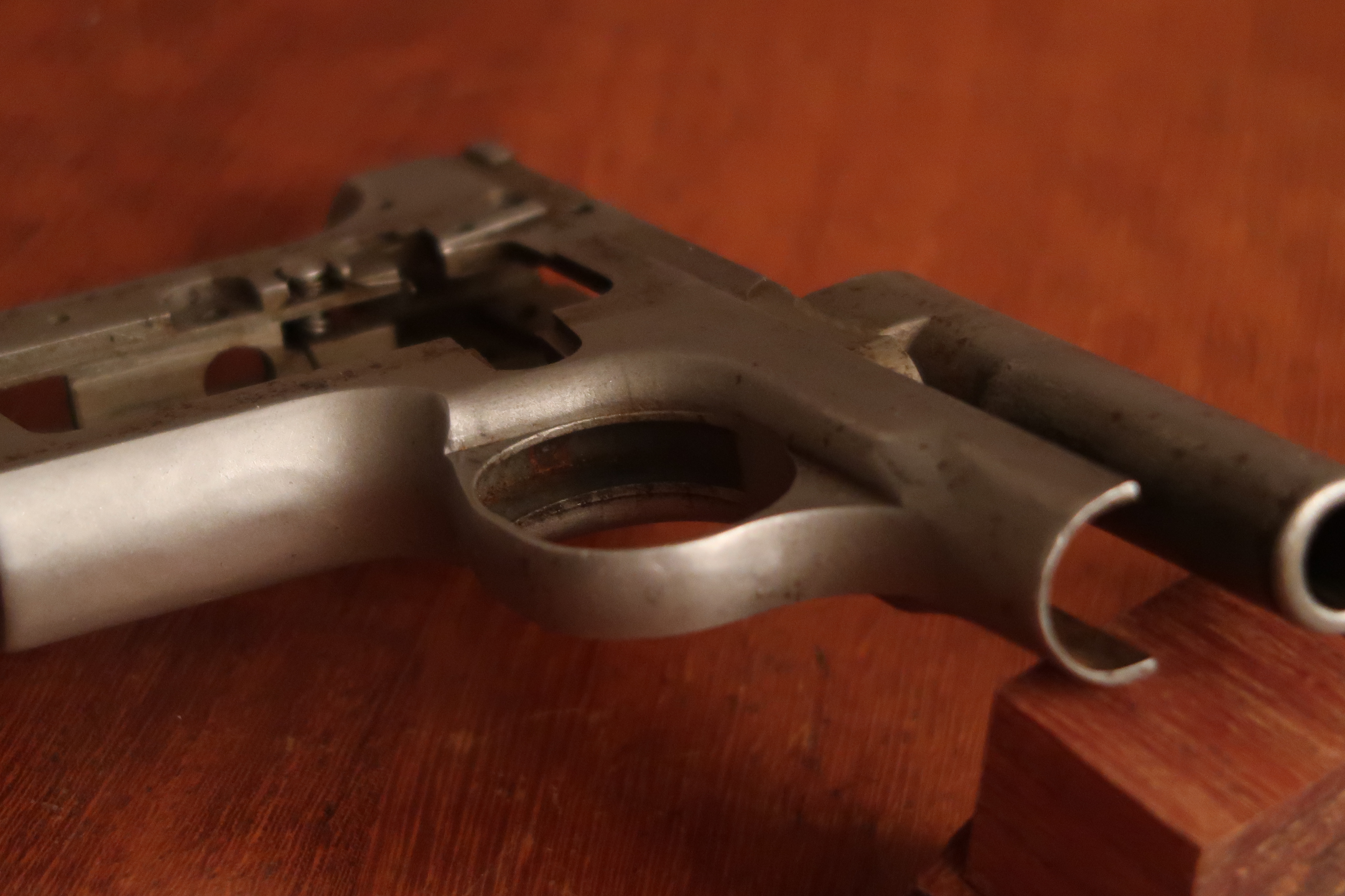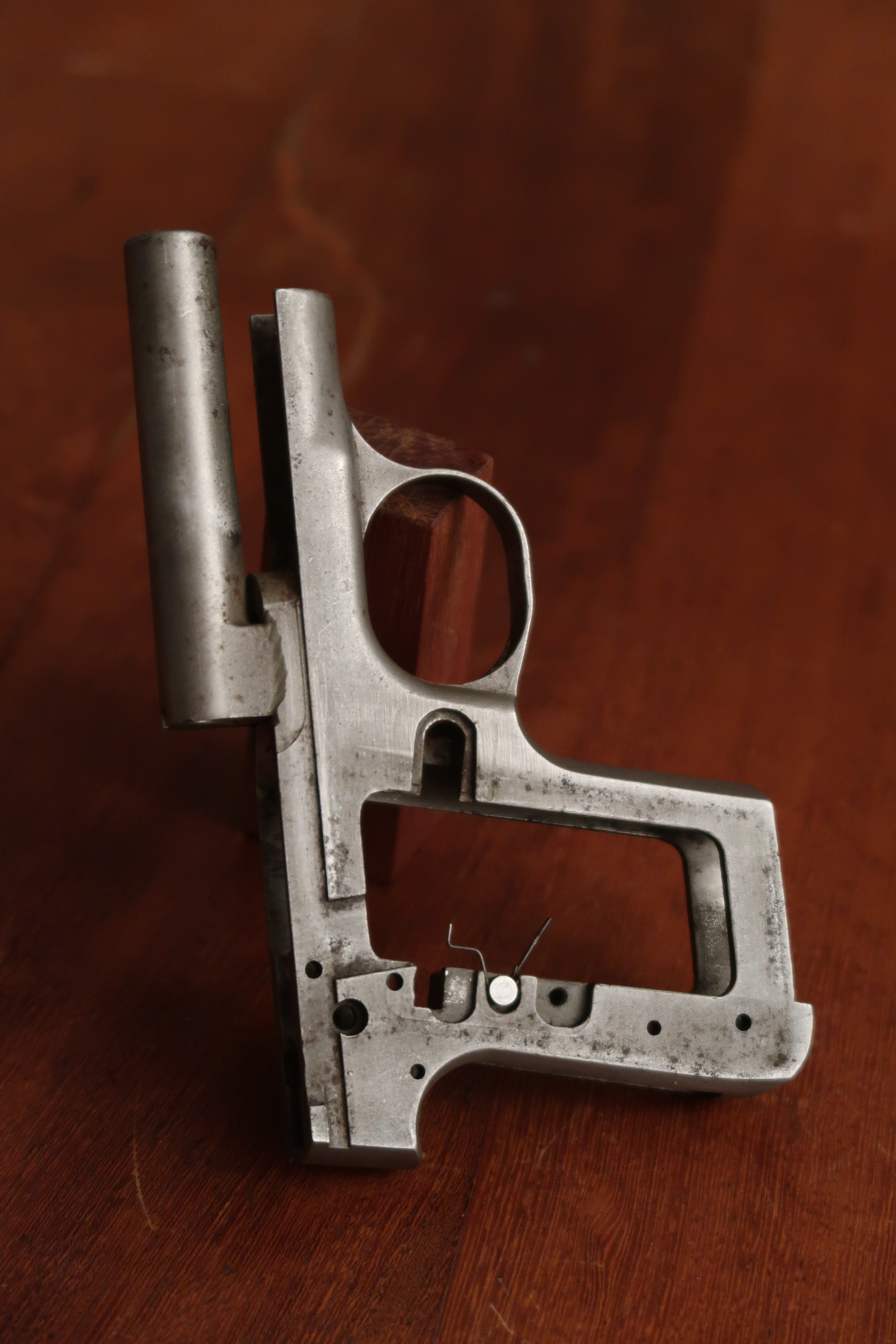 La carcasse d’un pistolet est comme celle d’un revolver, c’est une pièce maitresse qui réunit les emplacements des fonctions majeures : logement du mécanisme de détente, logement du mécanisme de gâchette, logement du marteau, logement du ressort de marteau, logement du chargeur, logement du canon, les rails de guidage de la culasse… Donc beaucoup d’usinage important sur une seule pièce qui est finalement un carrefour ou pour reprendre un mot à la mode dans le monde de l’armement contemporain : une plateforme.