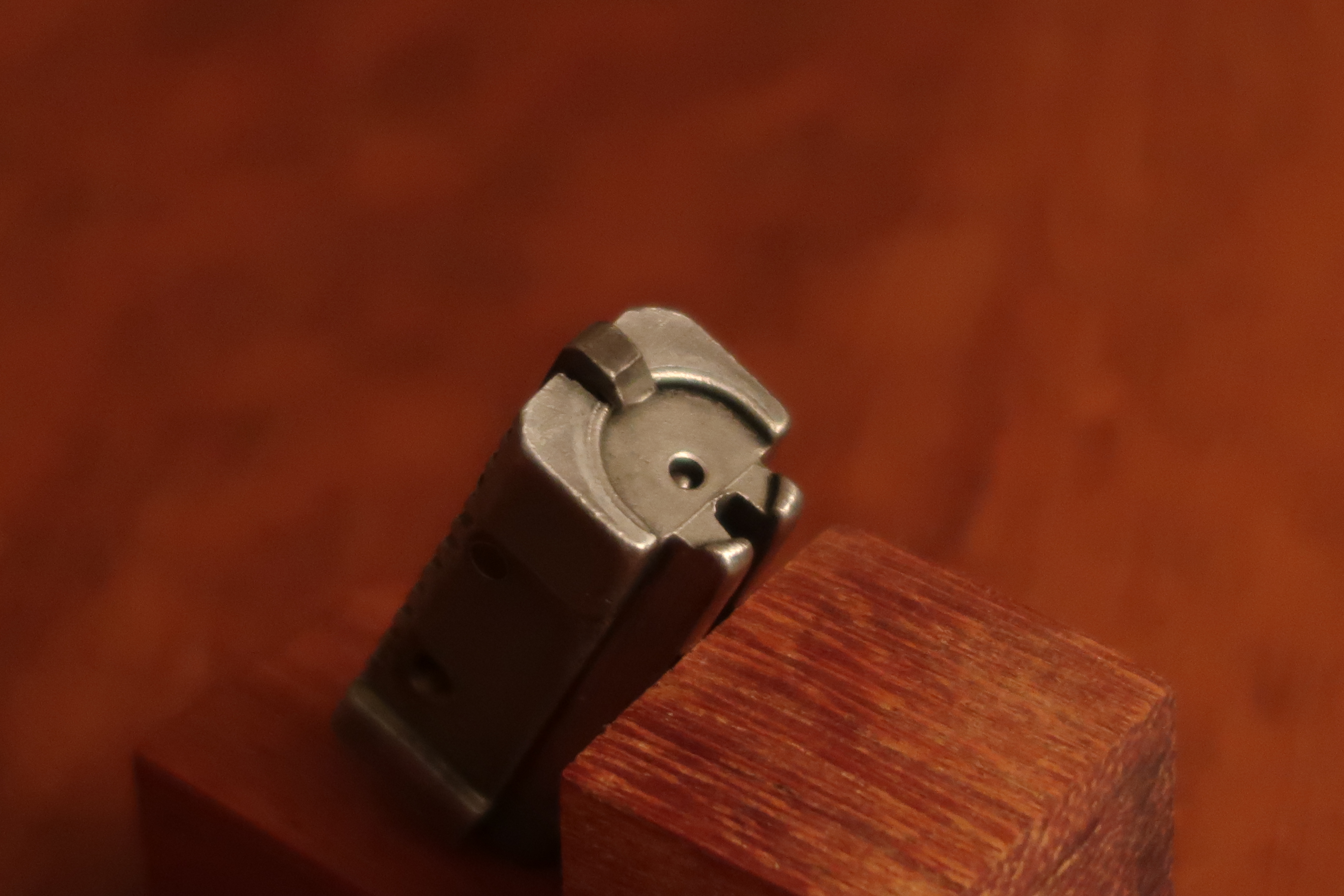 La pédale de sûreté est aussi une pièce de micro-fusion. Tout comme la barrette séparateur, les parois de la pédale sont très fines. Cela démontre la finesse de ce procédé.
