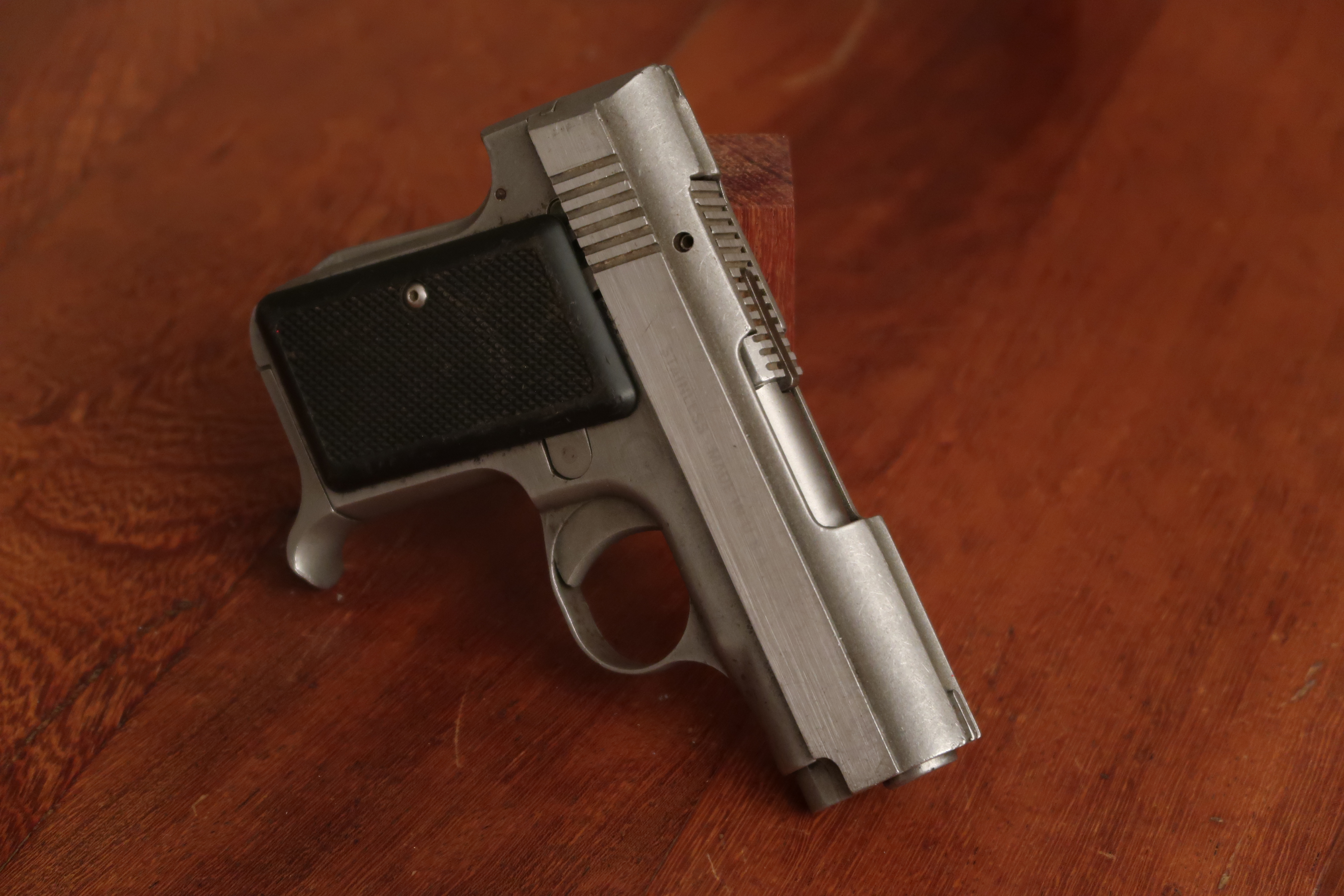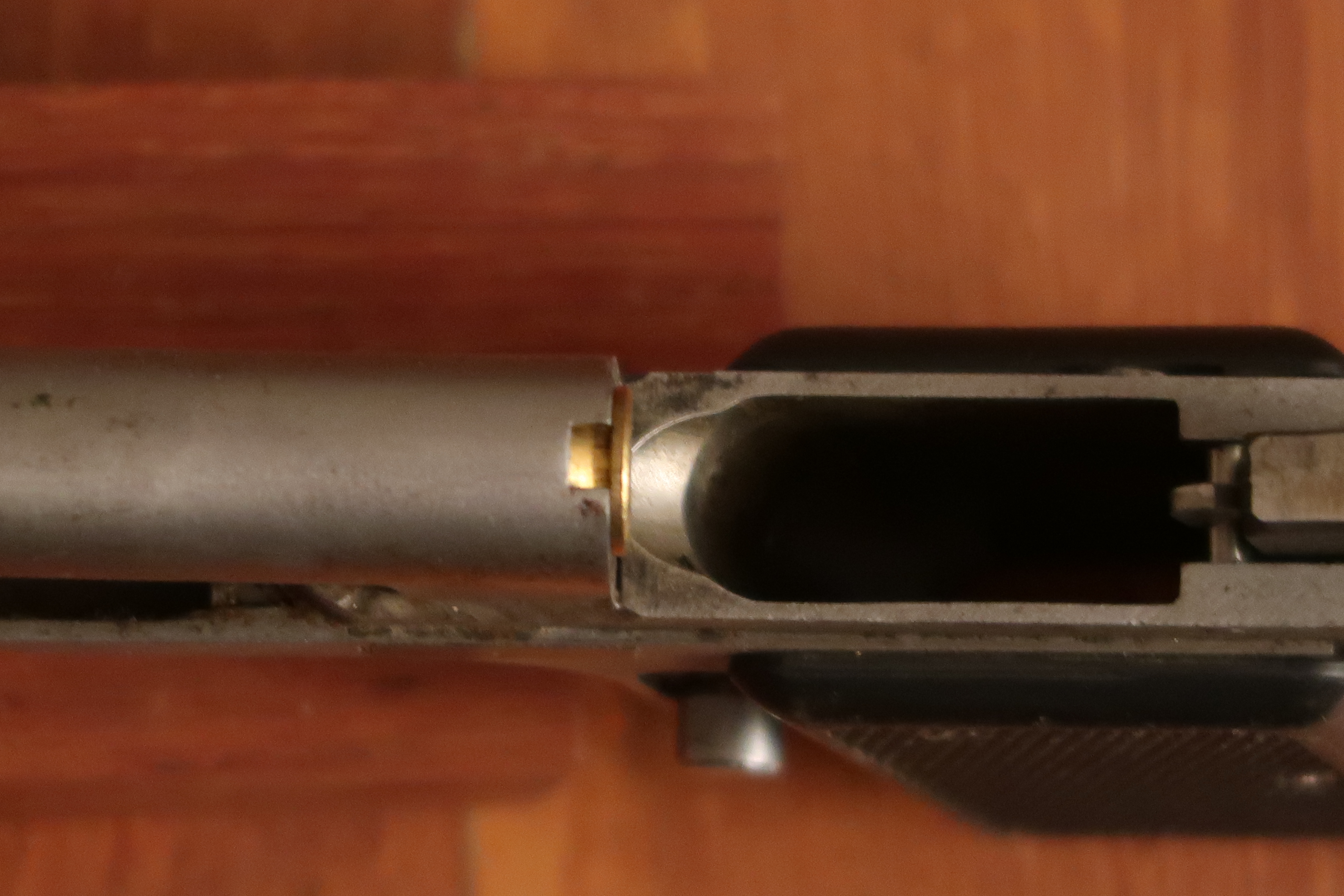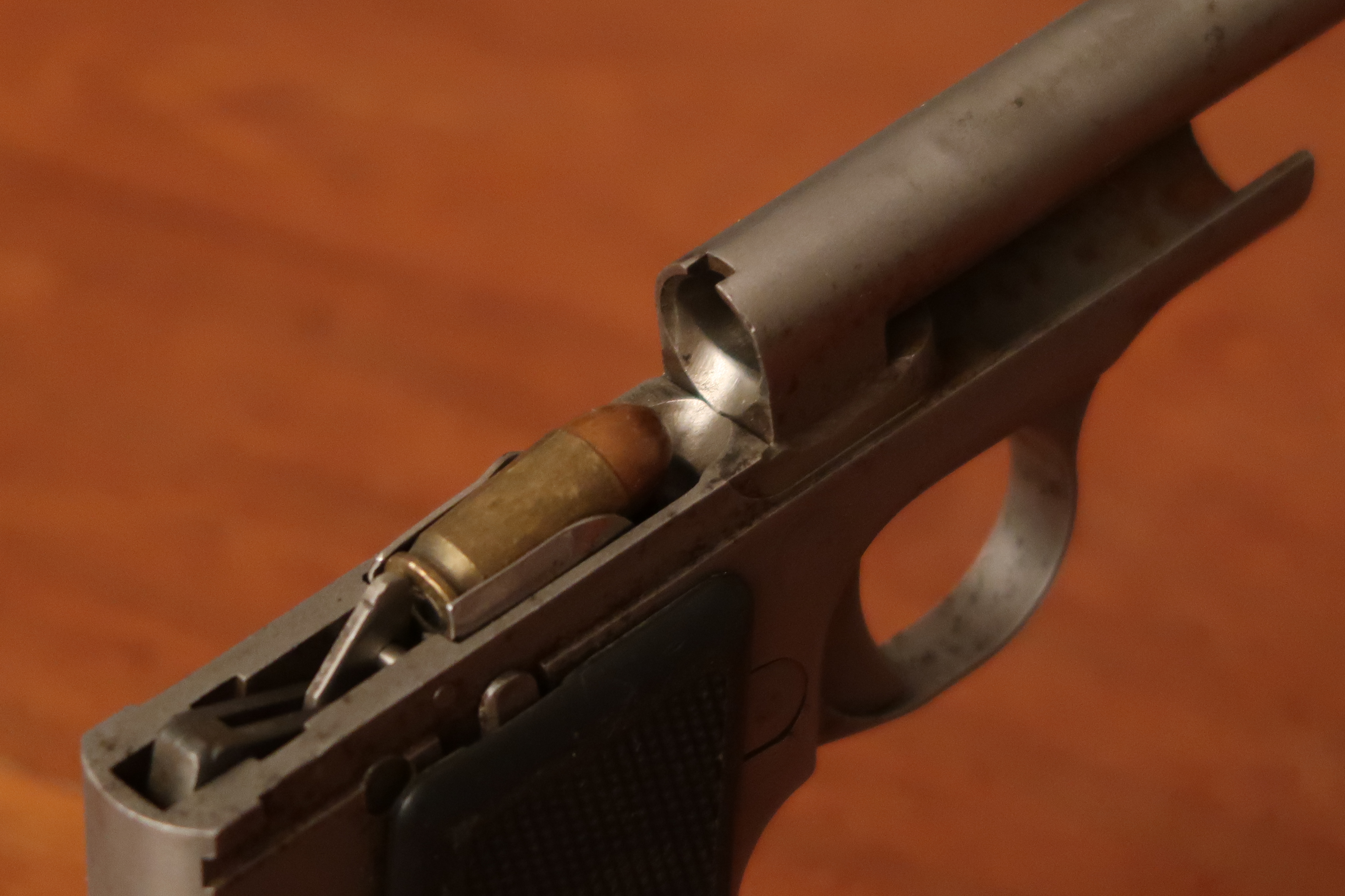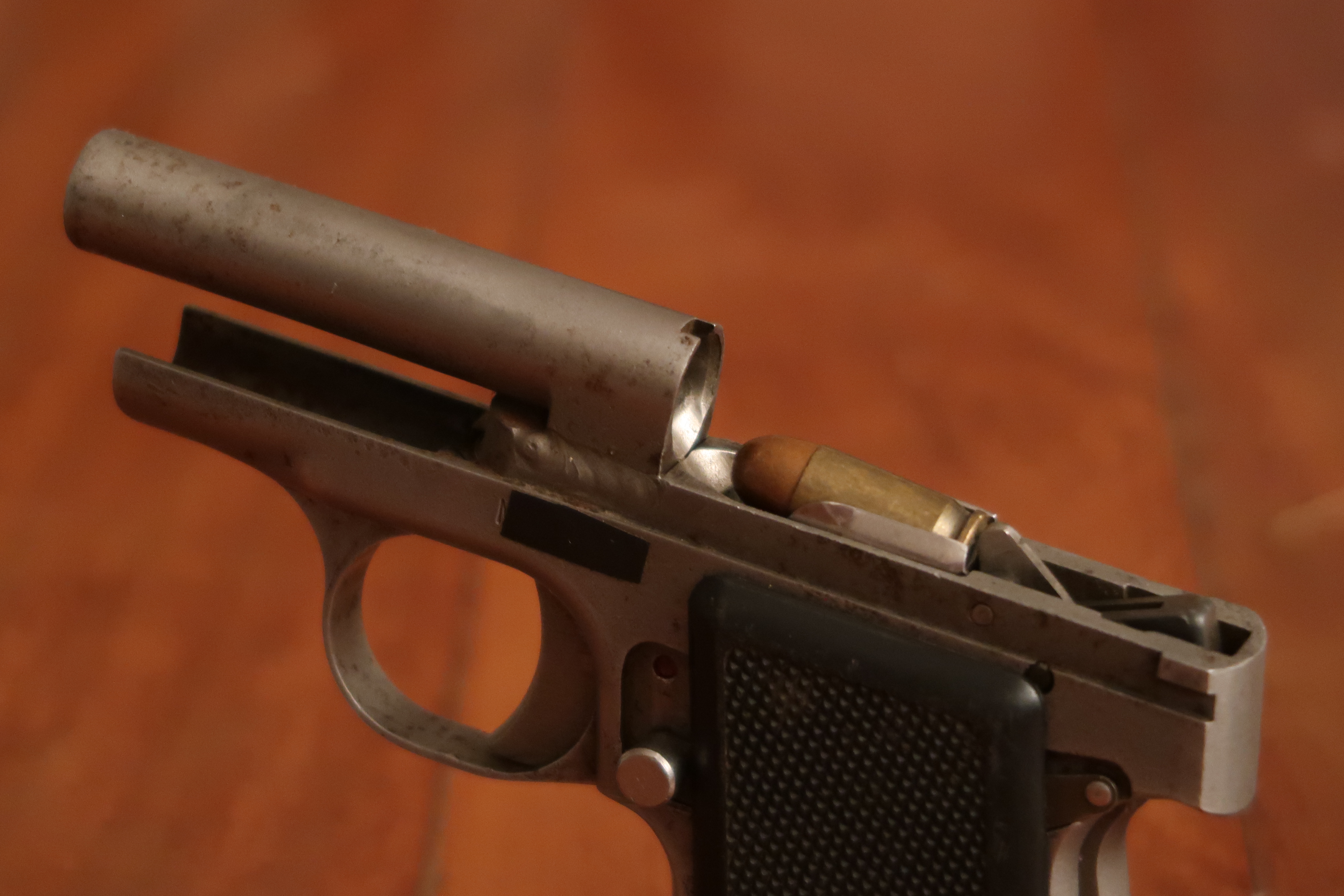 - AMT Backup II, la face arrière du canon une munition en chambre.