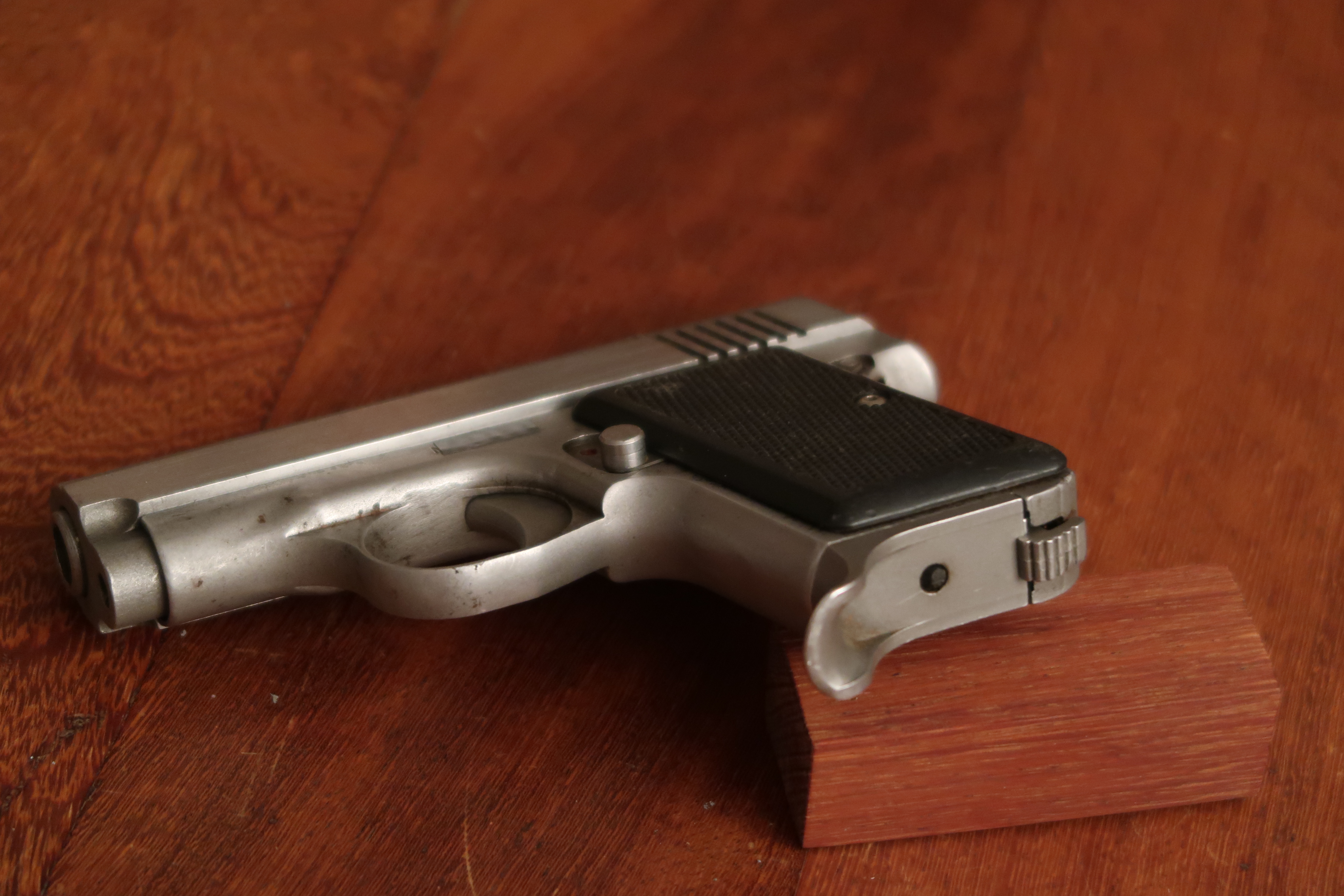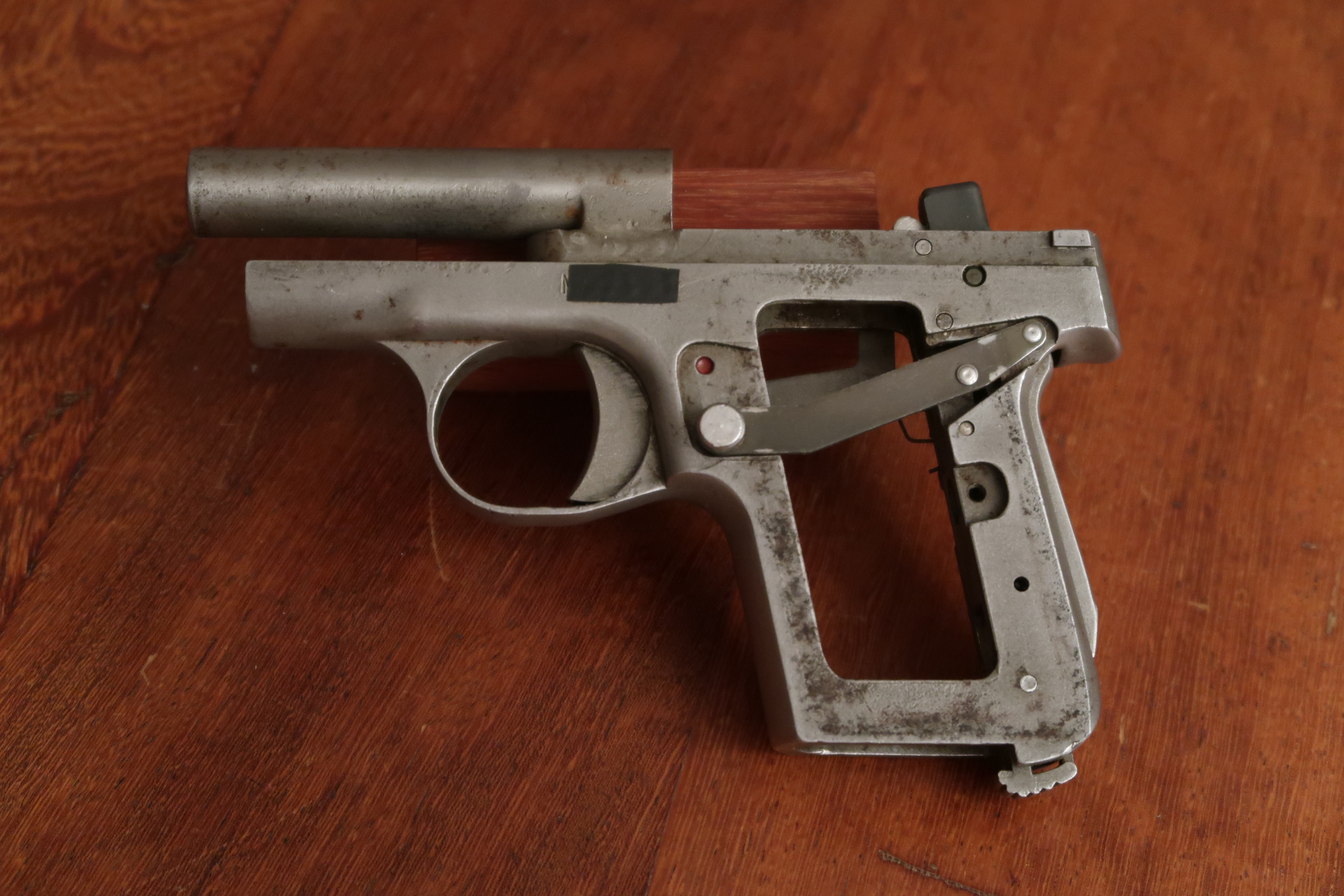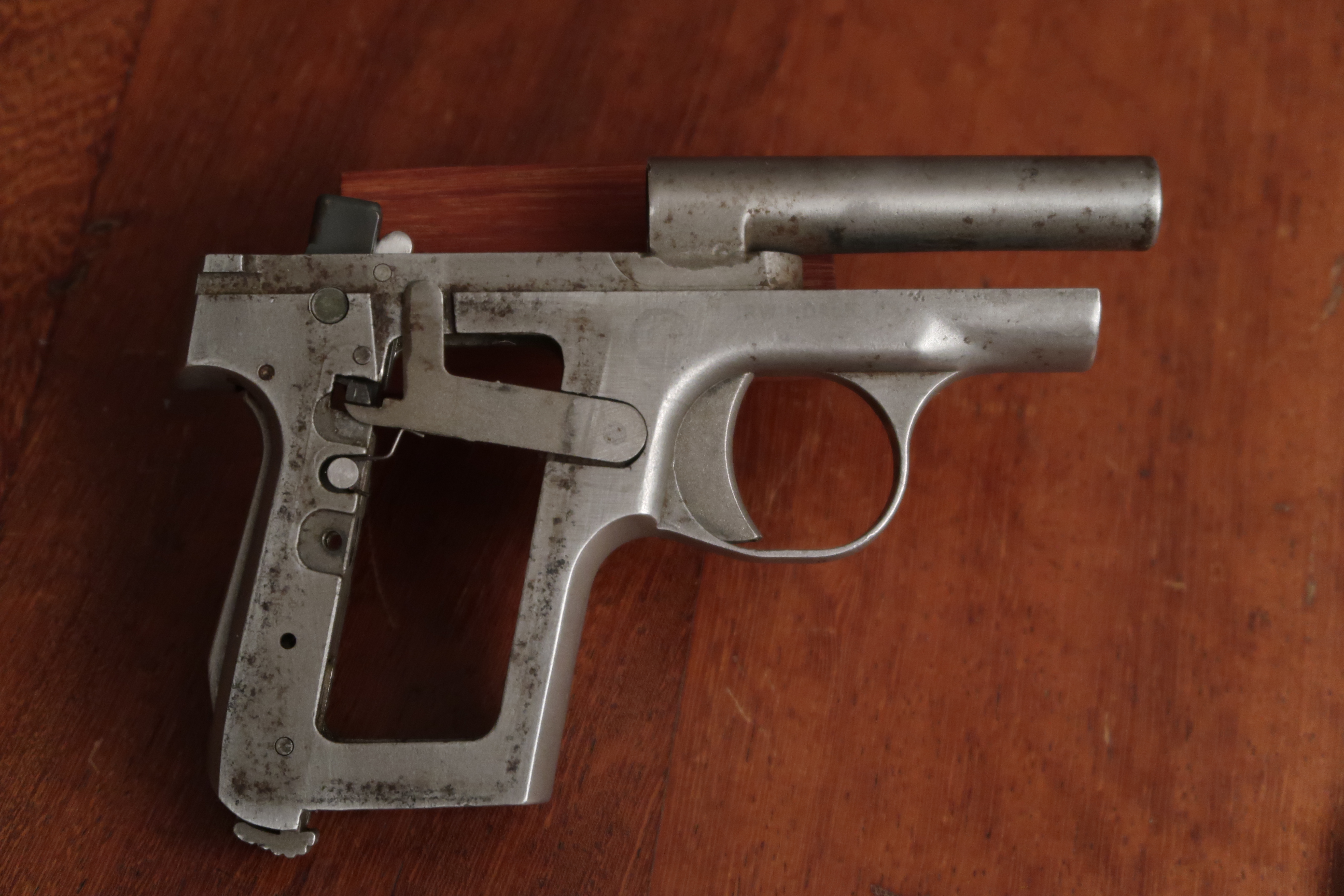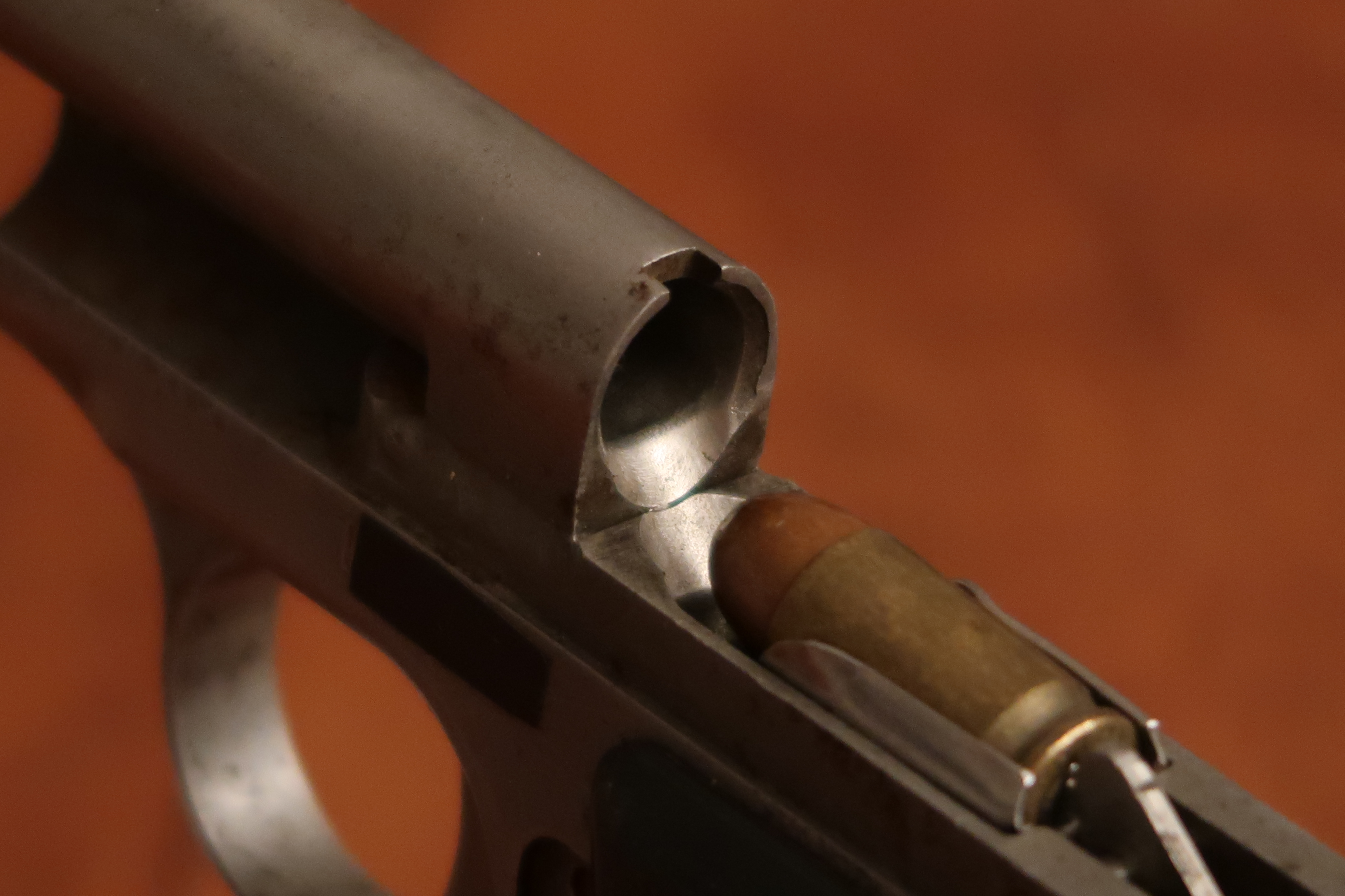 - AMT Backup II, la face arrière du canon une munition en chambre.