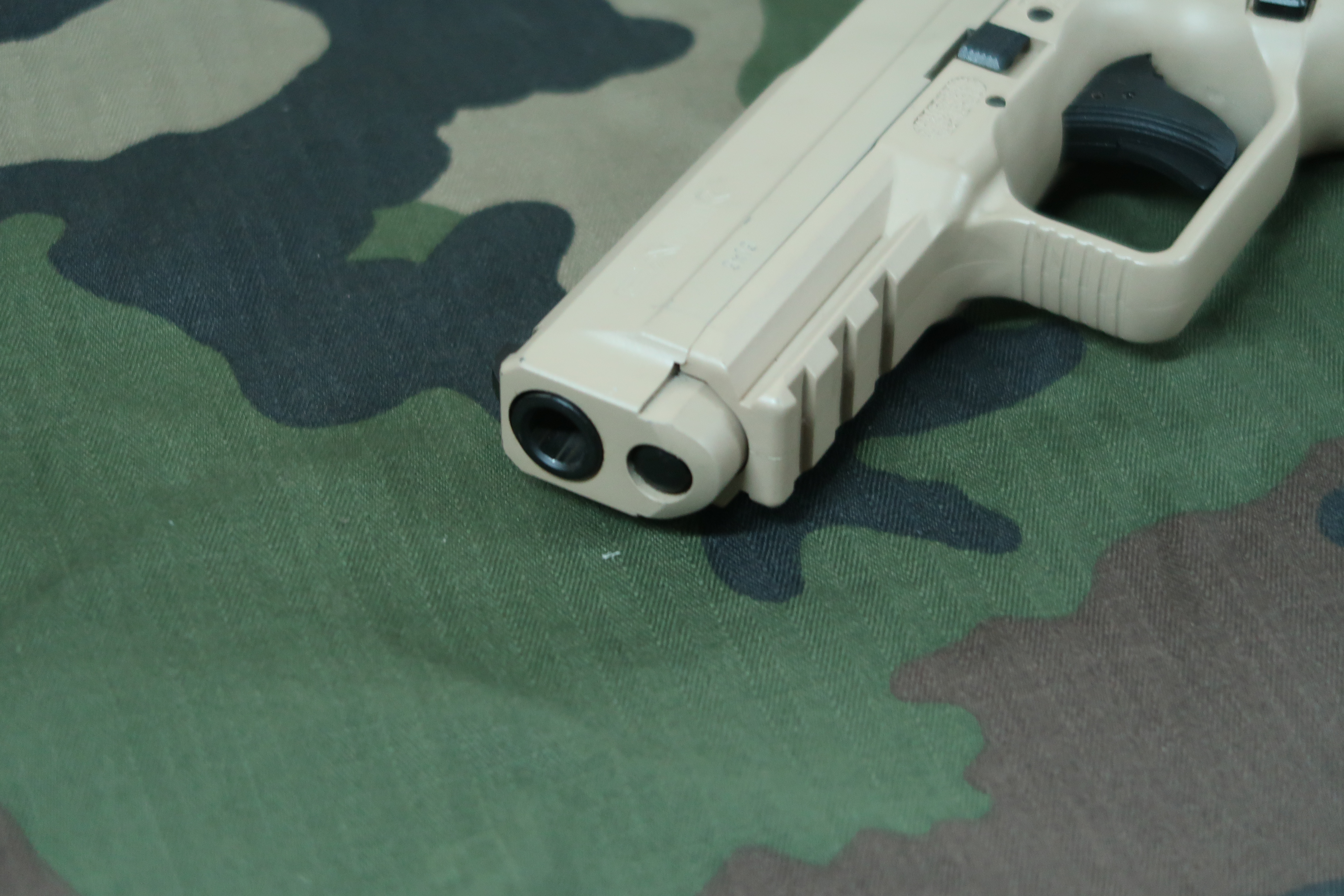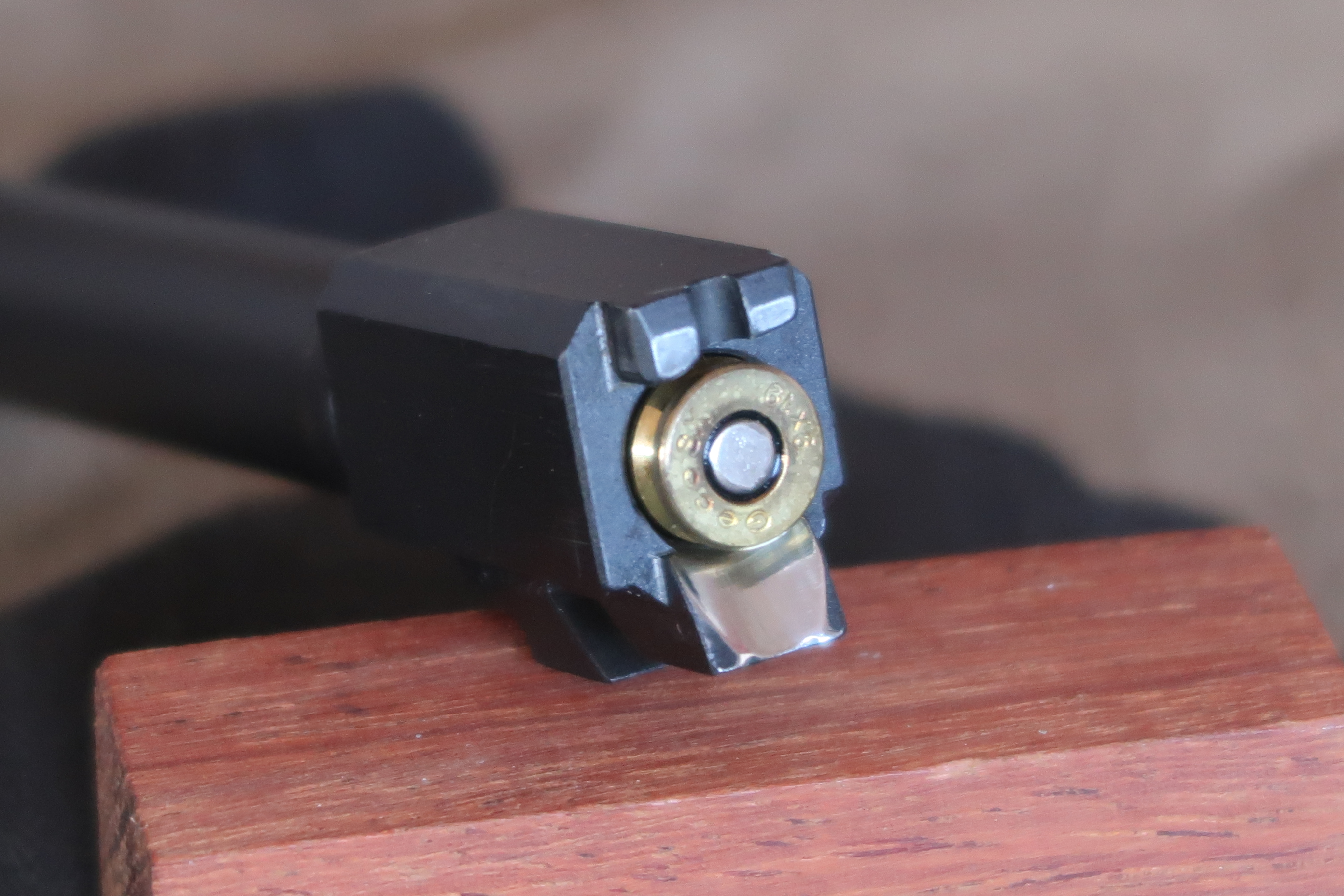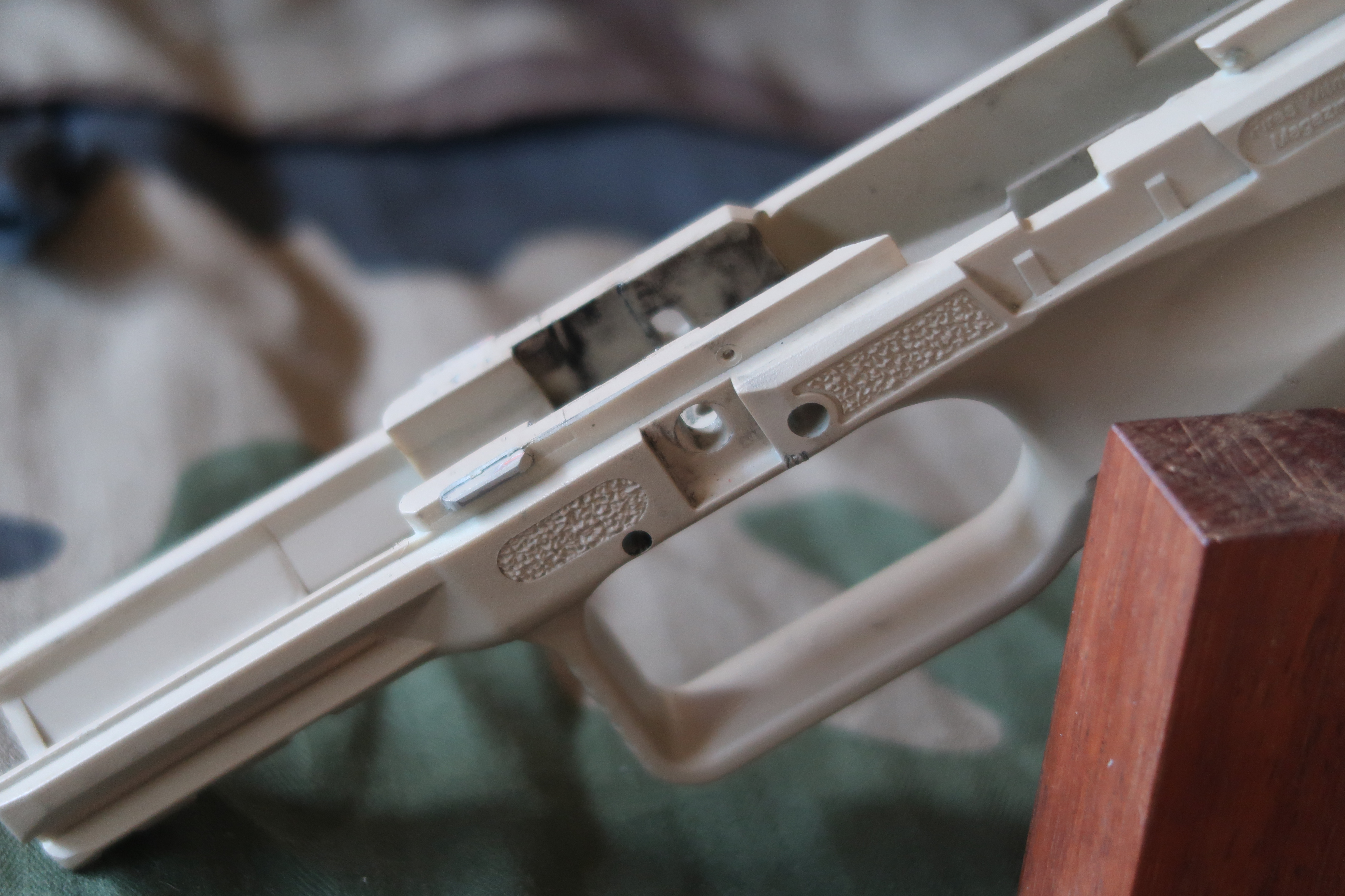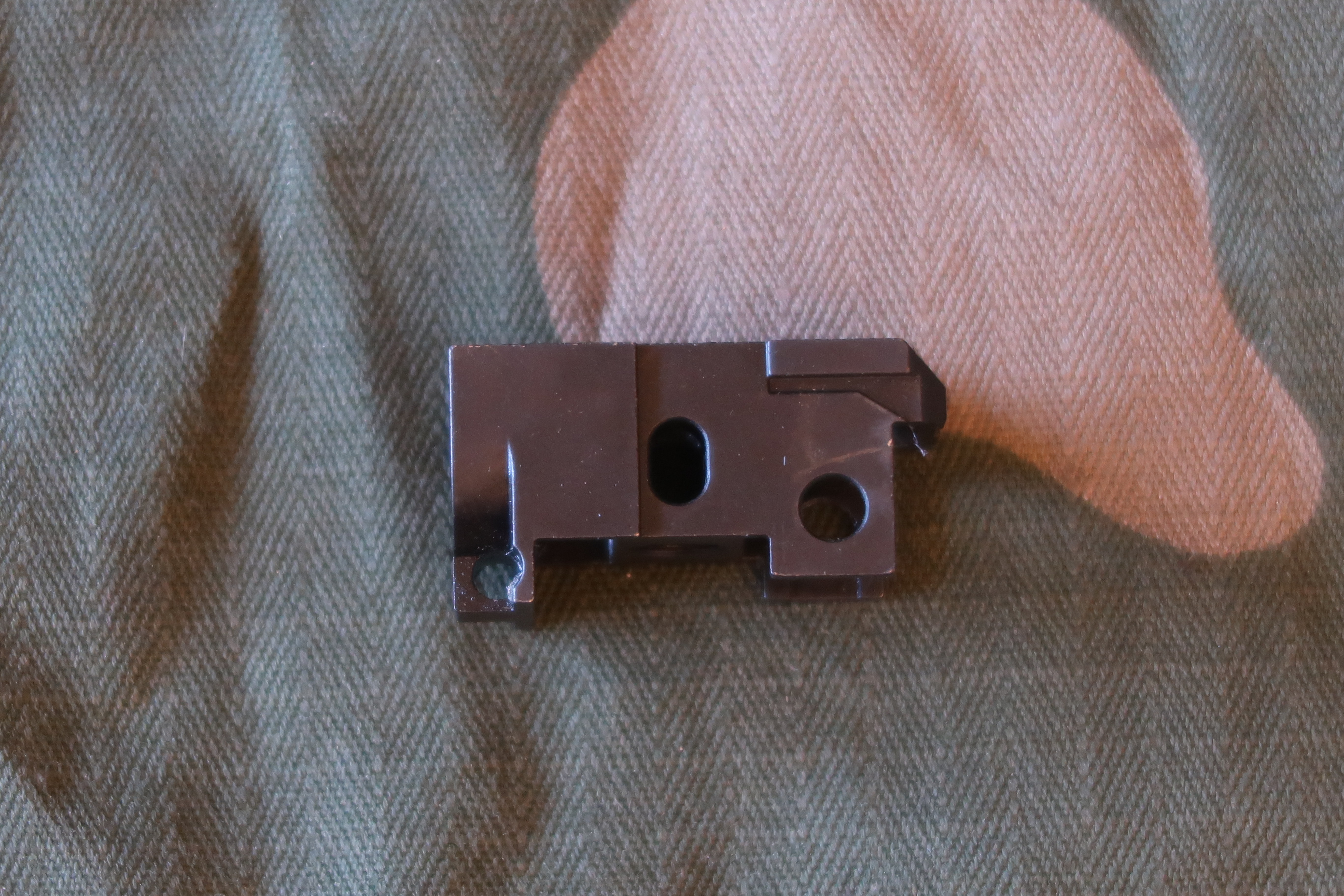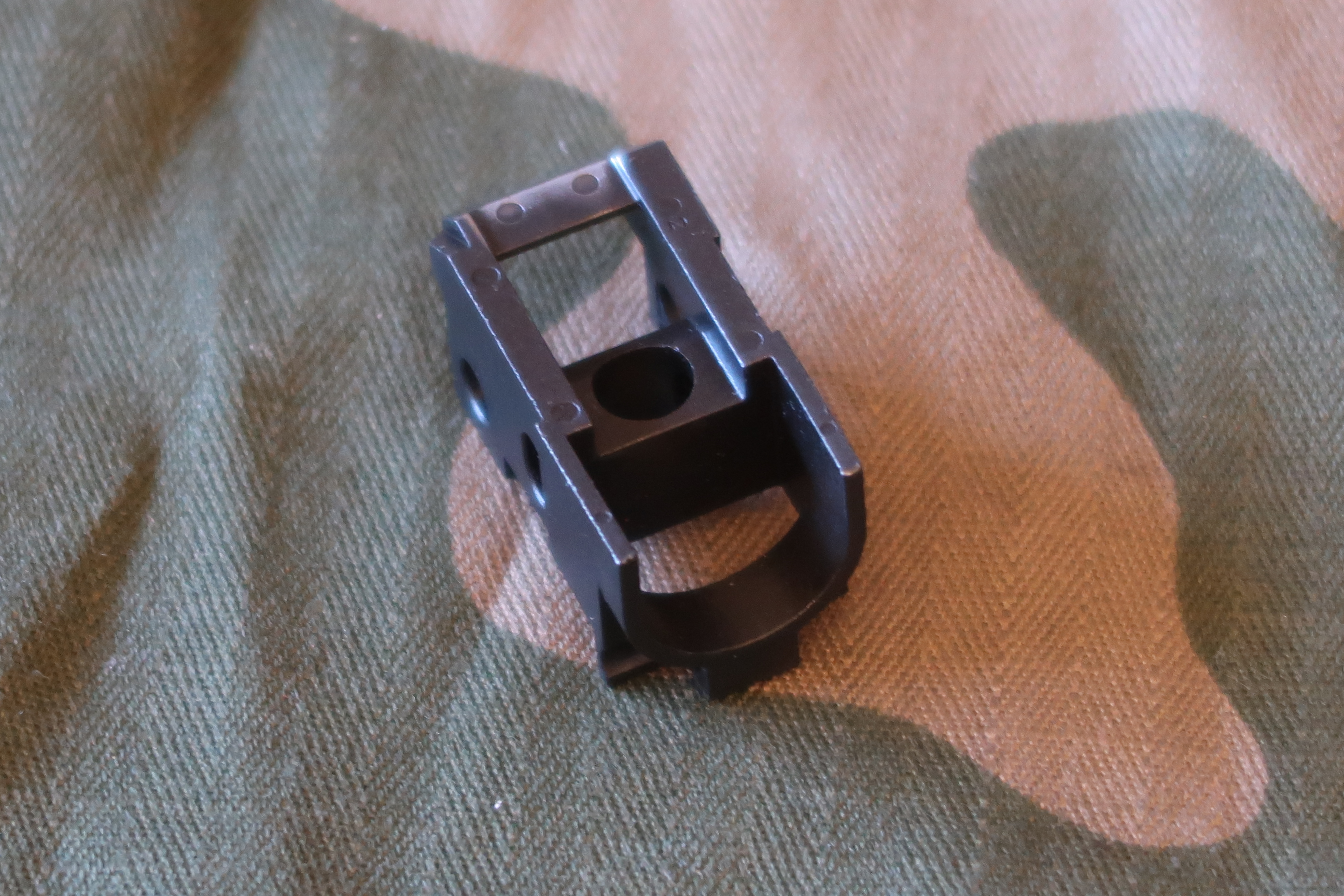 Le bloc support de canon est une pièce en acier. Elle est issue de micro-fusion. Cette pièce commande le verrouillage ou le déverrouillage du canon lorsque l’on manipule la culasse. C’est une partie majeure de l’arme, elle absorbe de nombreux chocs et vibrations. Sur les pistolets Glock, cette pièce se fissure. Il est fort probable qu’il en soit ainsi sur cette arme également. La vitesse de recul de la culasse, l’usure du ressort récupérateur, le chargement des munitions sont directement liés à cet effet.