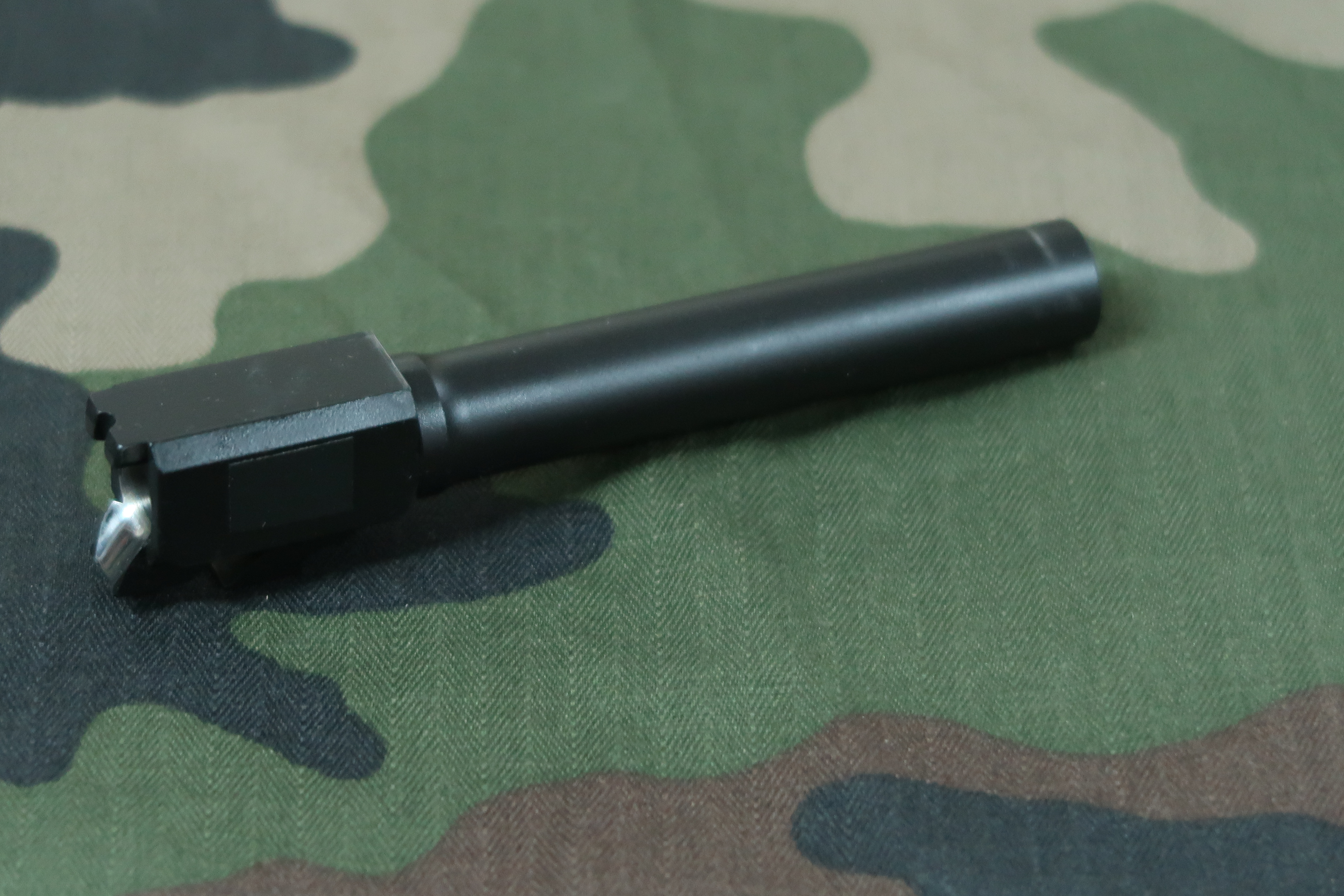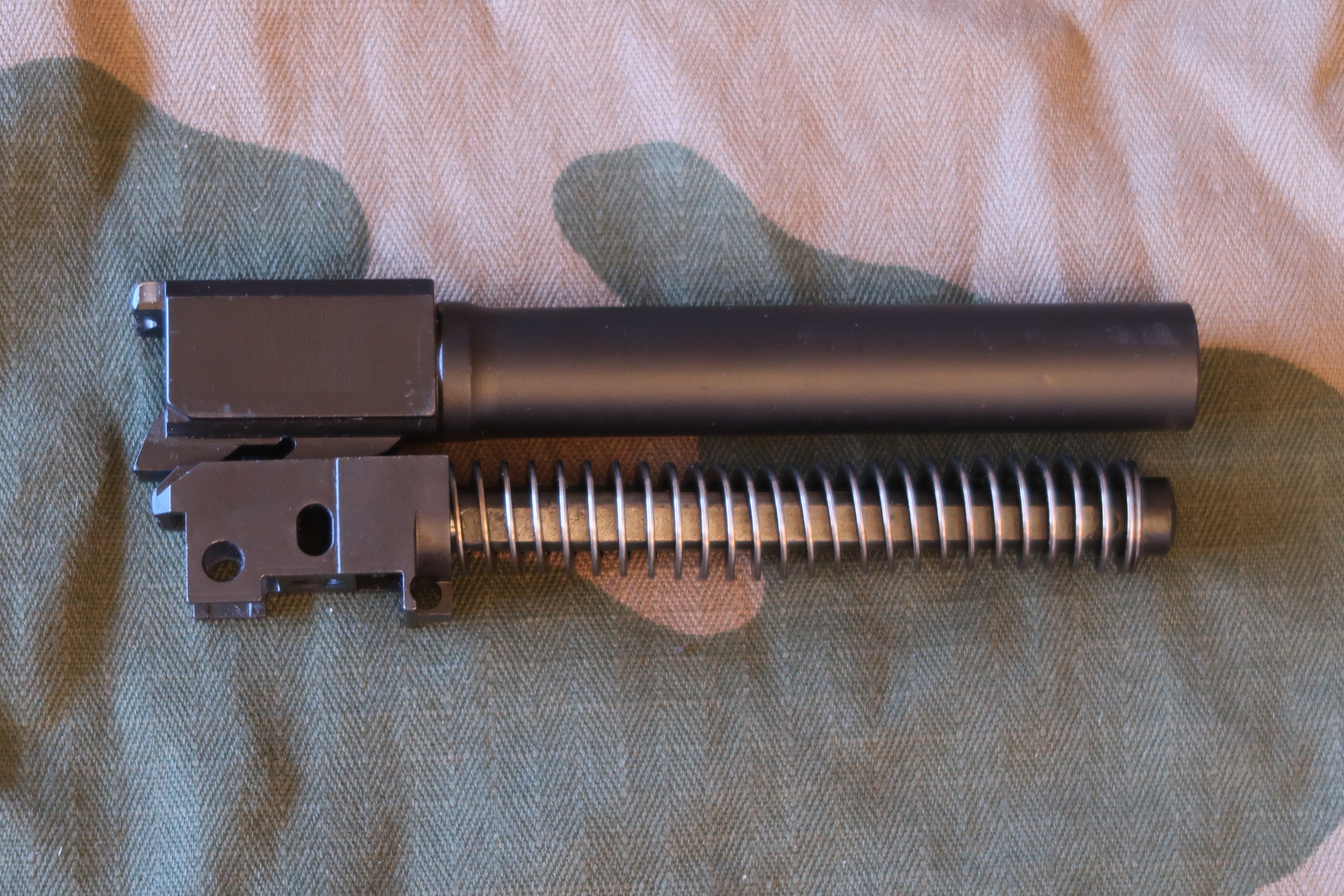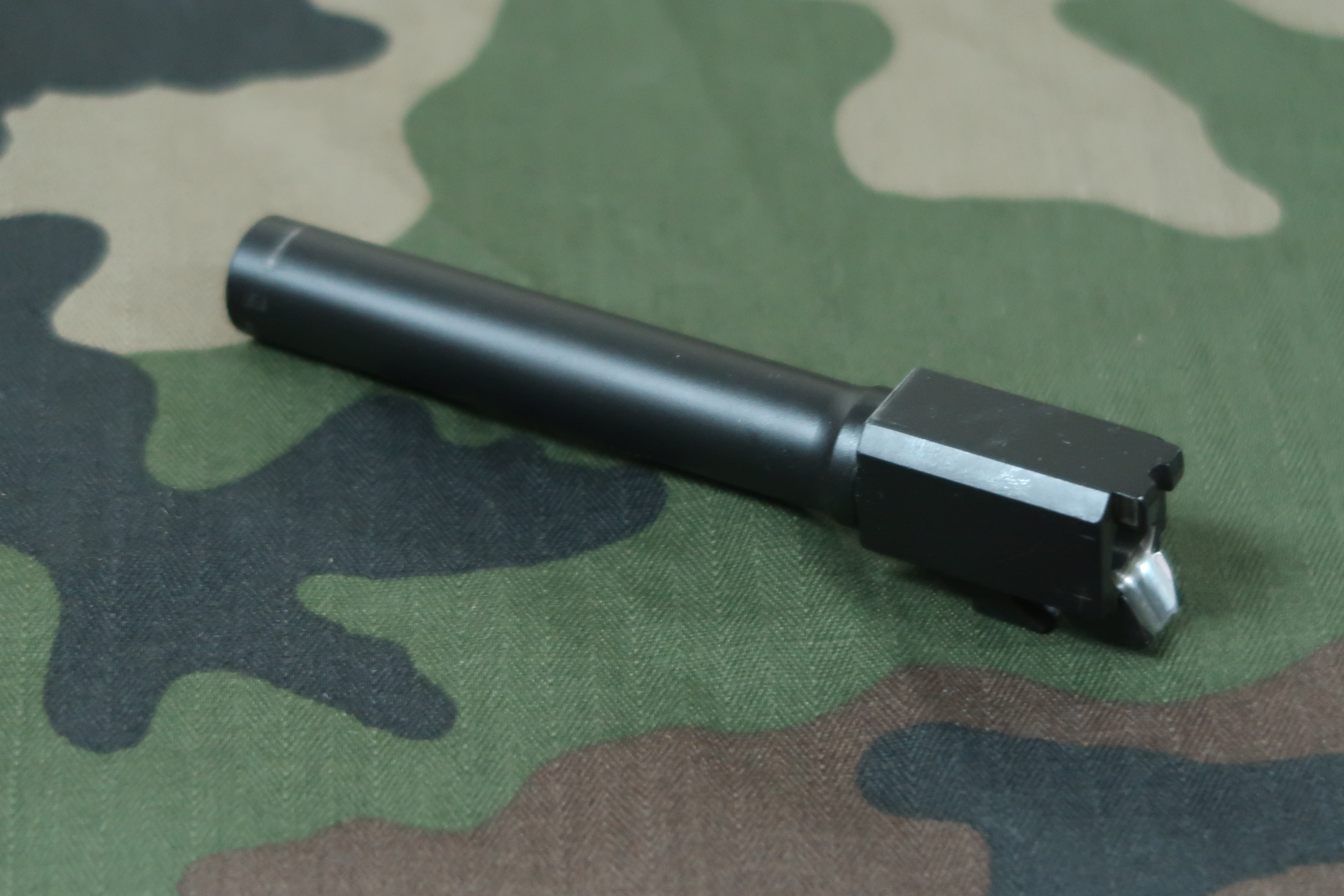 Le canon est en acier. Il mesure : 113,6 mm de longueur total. Il a une forme classique pour un canon de pistolet automatique en 9 mm. Il s’agit d’un système Colt sans biellette mais avec utilisation de pans inclinés. La surface de verrouillage semble avoir moins de surface que sur un Glock (notamment en hauteur).