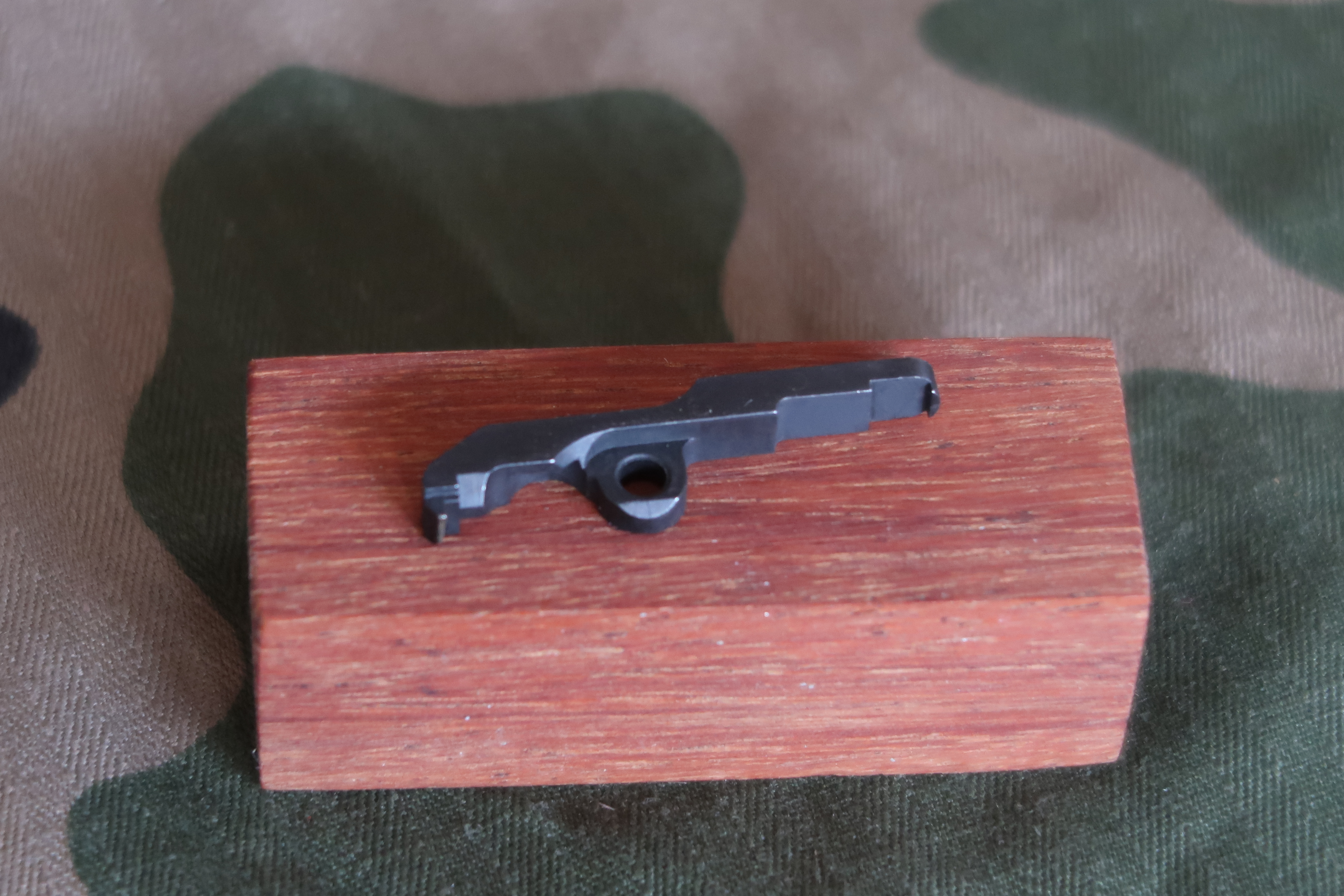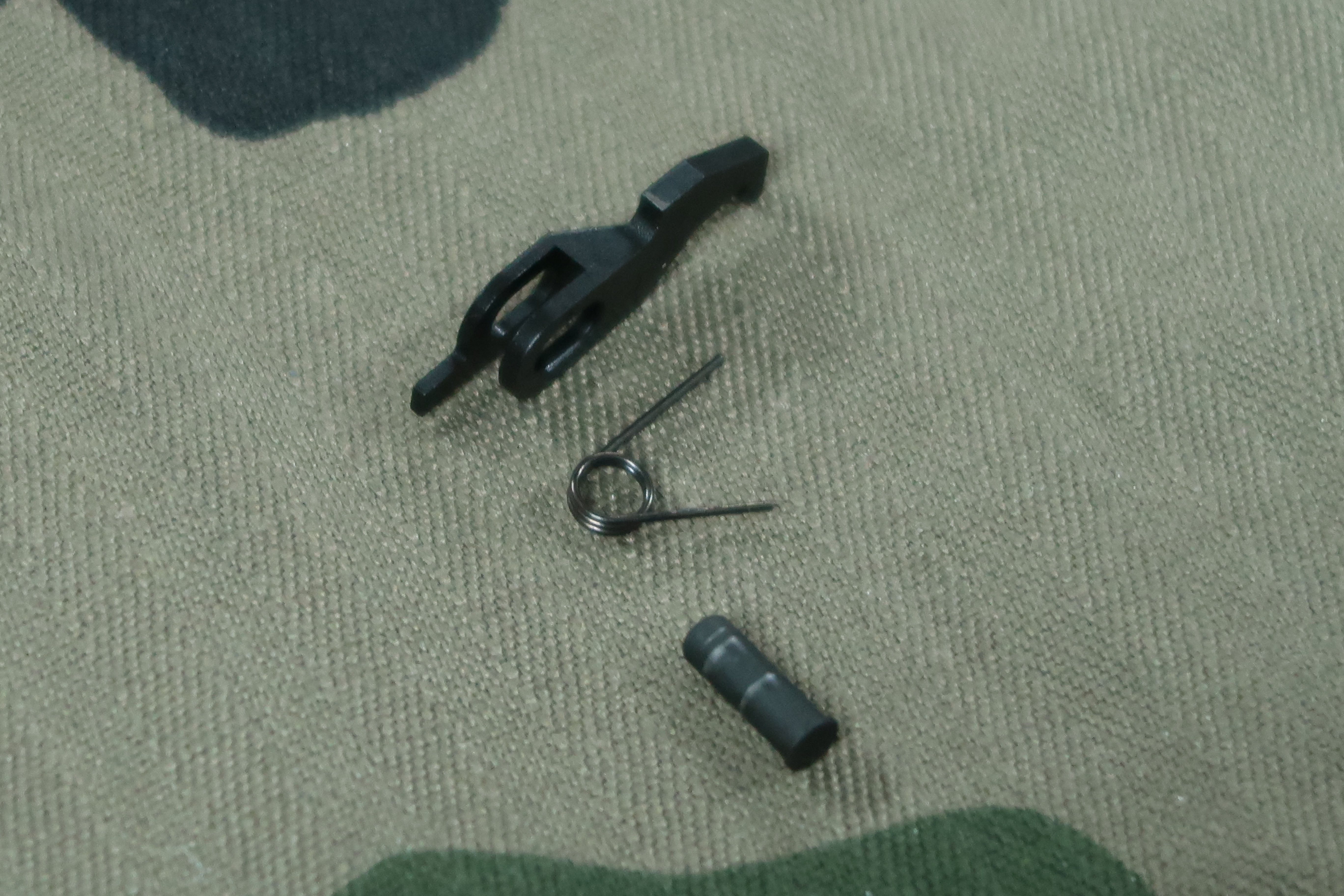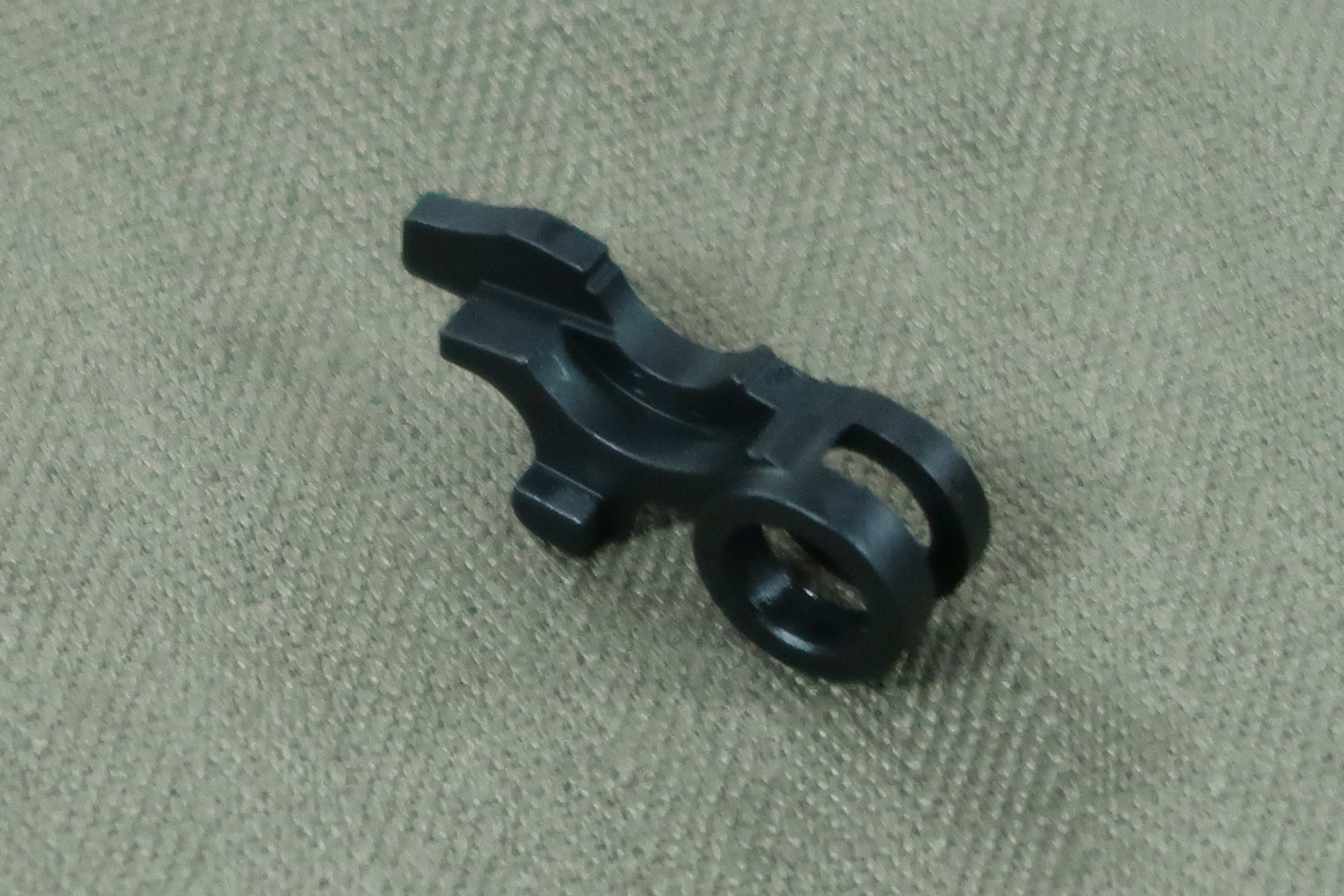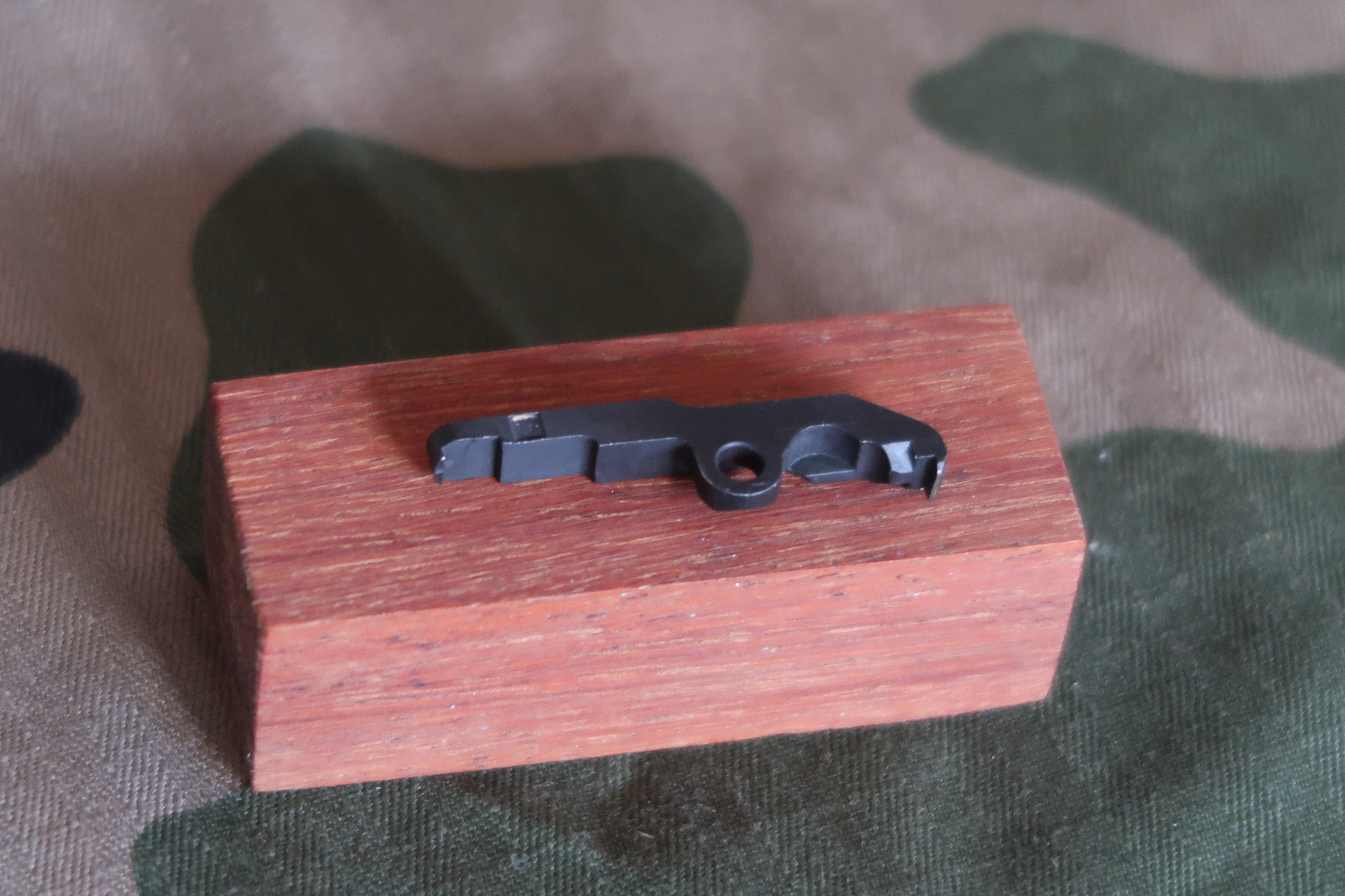 La gâchette est une pièce de micro-fusion. C’est sur cette pièce que vient s’arrêter le percuteur au retour de la culasse.