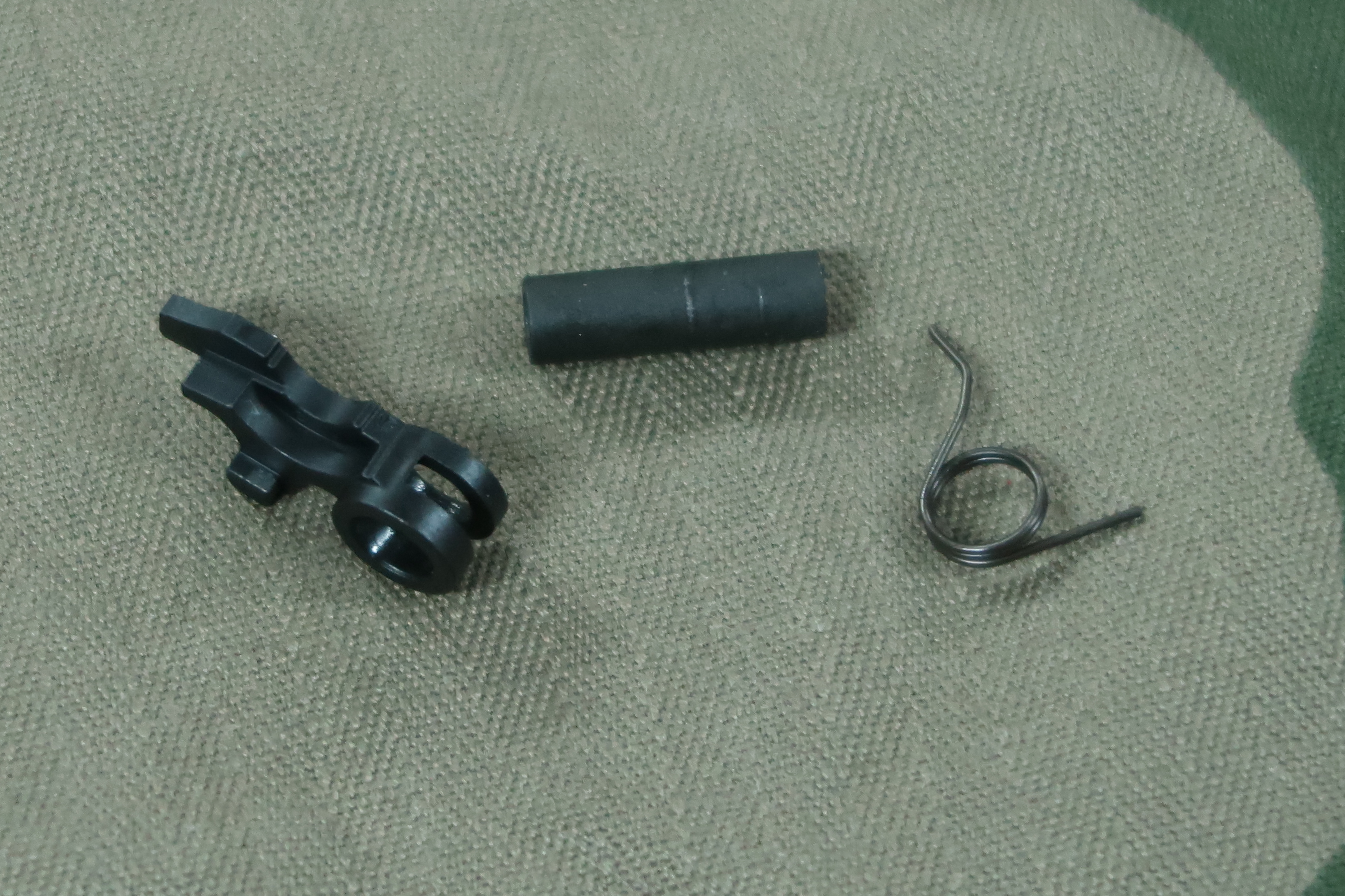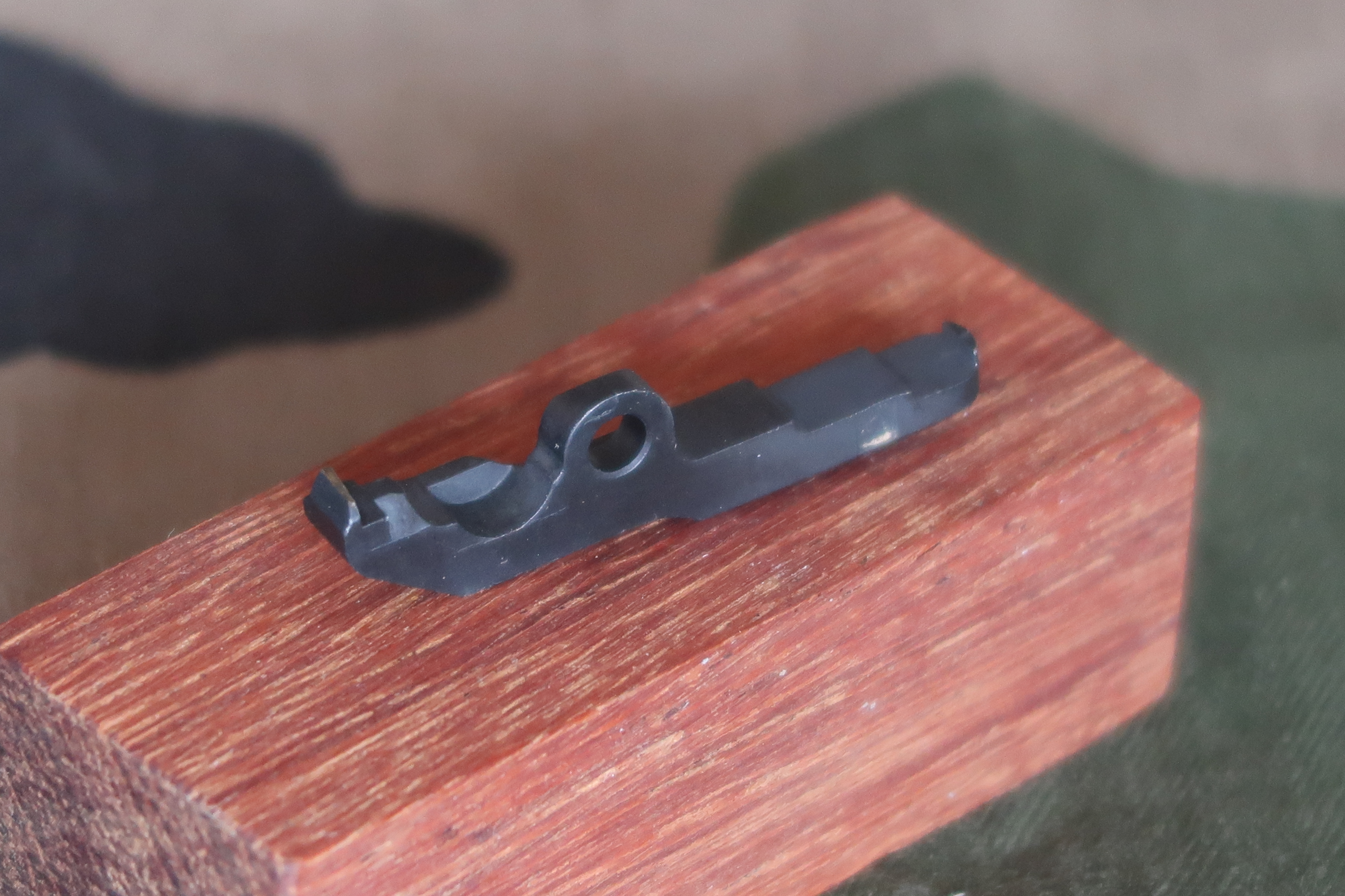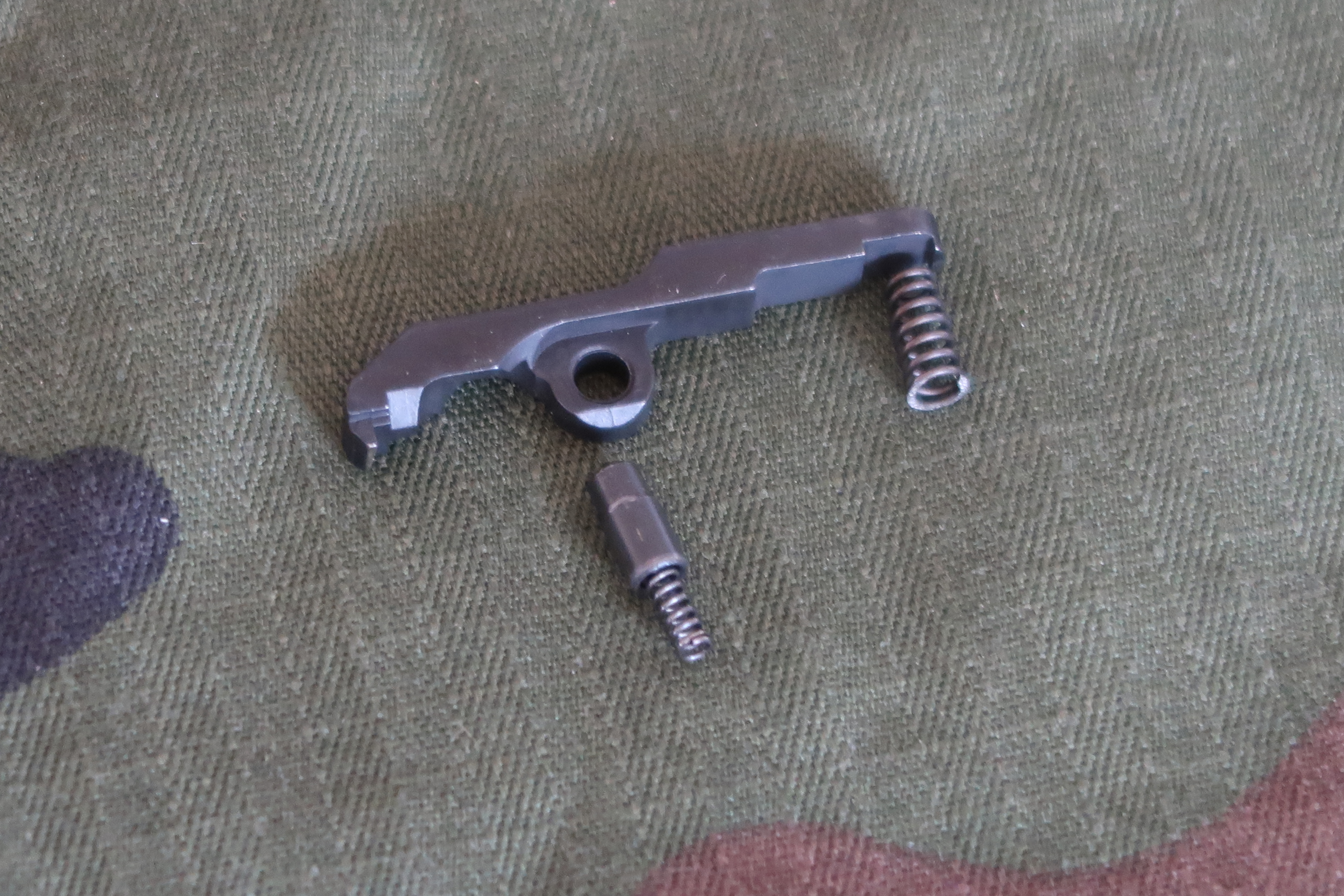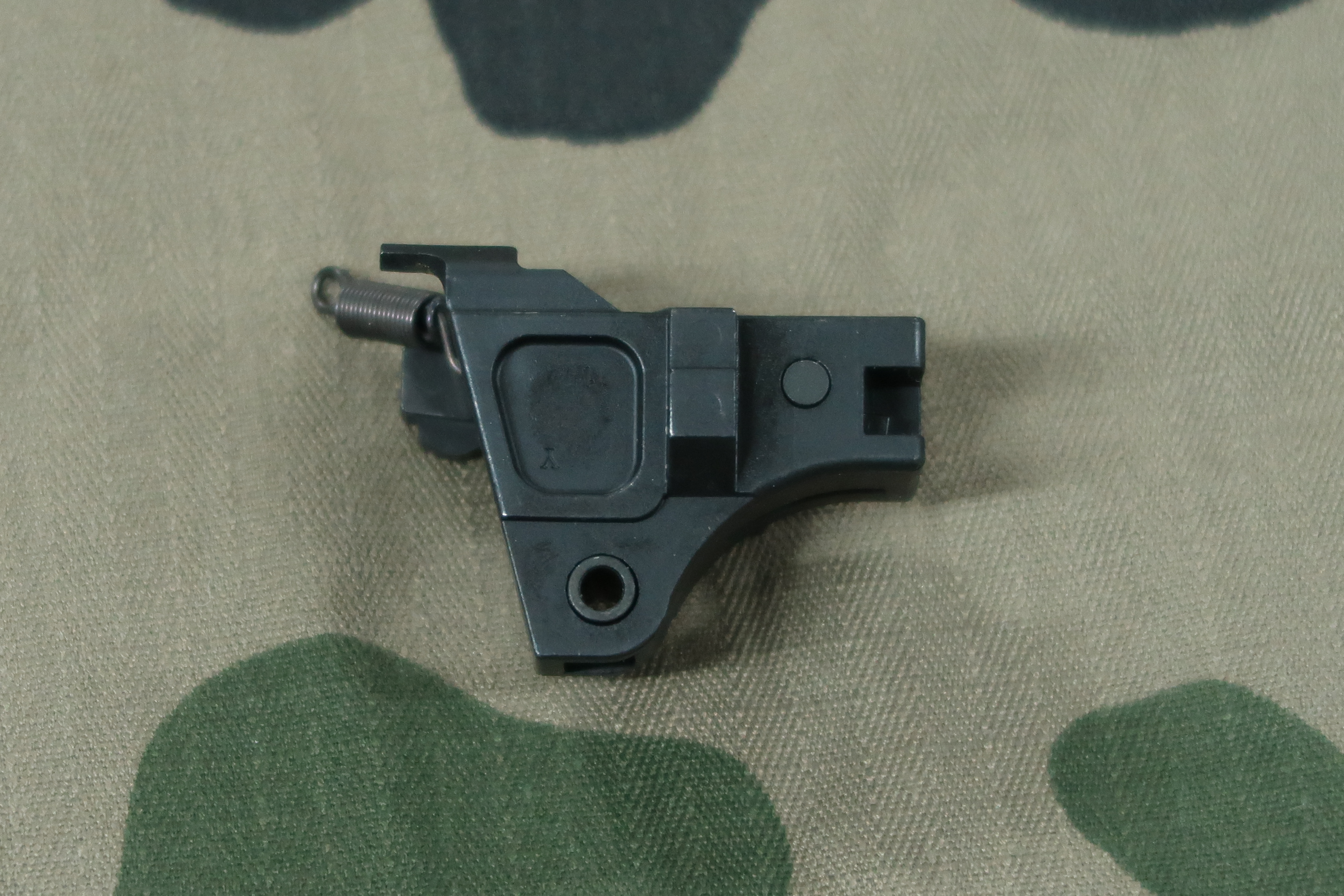 La gâchette est une pièce de micro-fusion. C’est sur cette pièce que vient s’arrêter le percuteur au retour de la culasse.