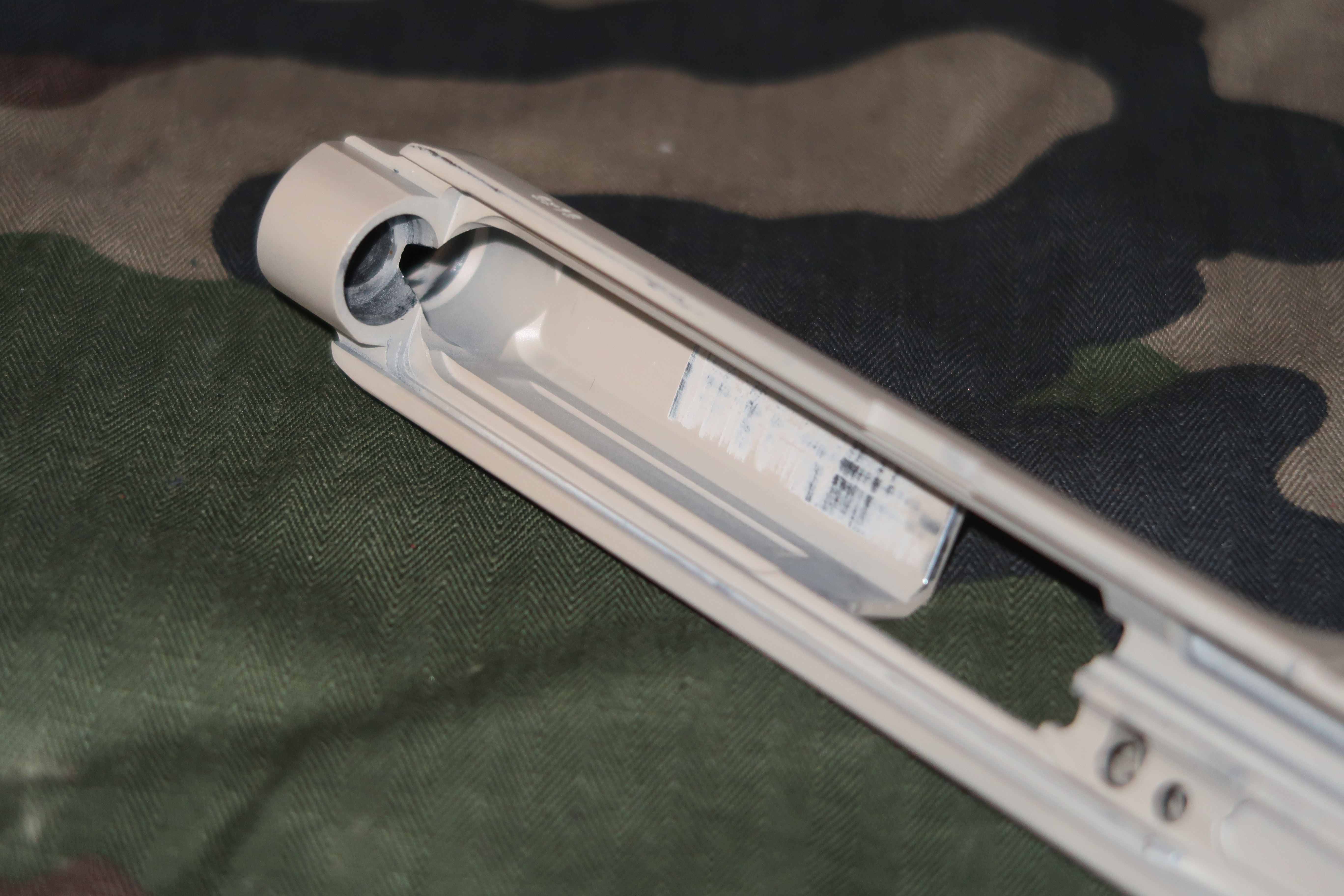 La rampe d’alimentation est très propre, elle semble chromée. L’âme du canon aussi.