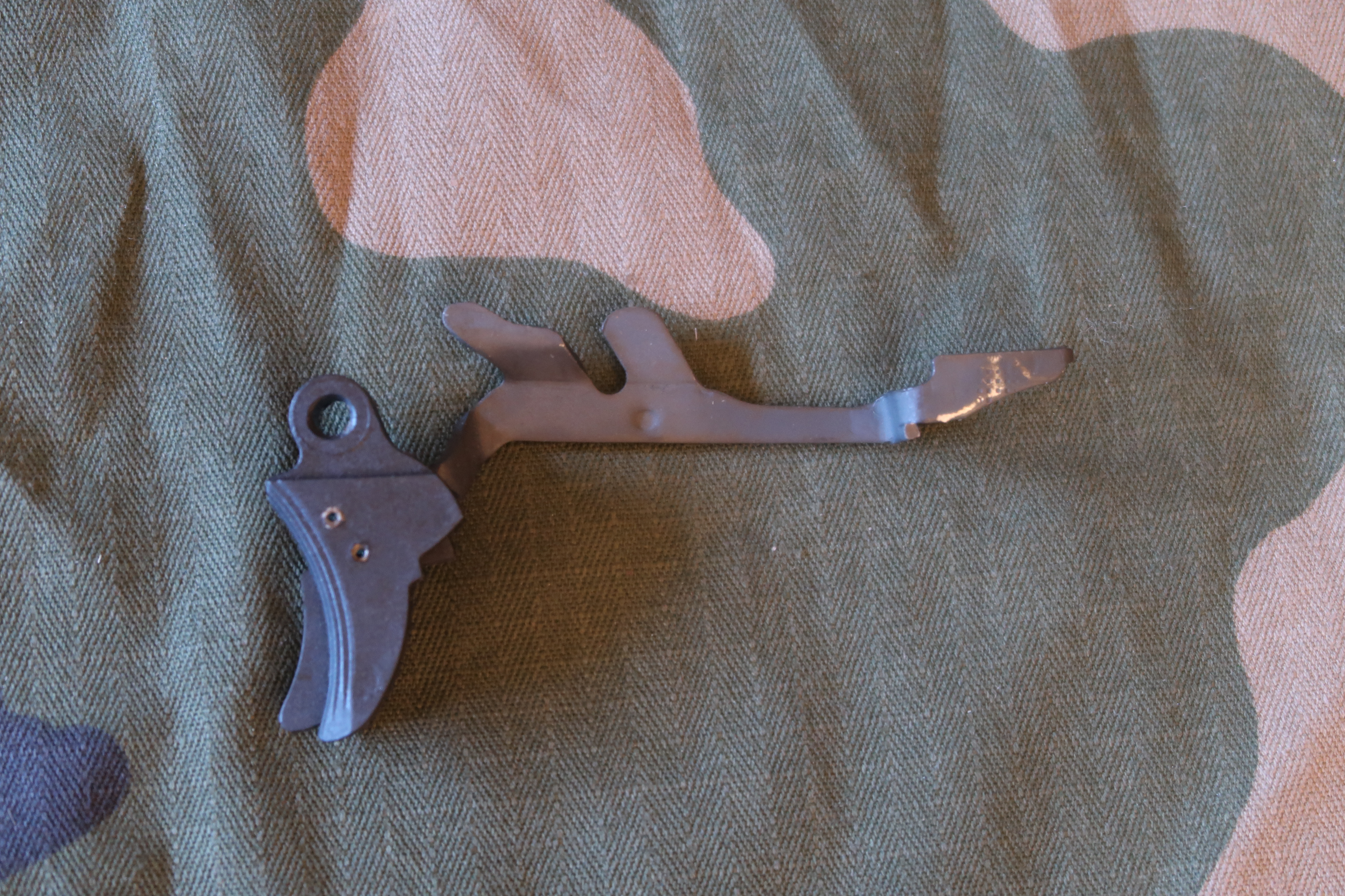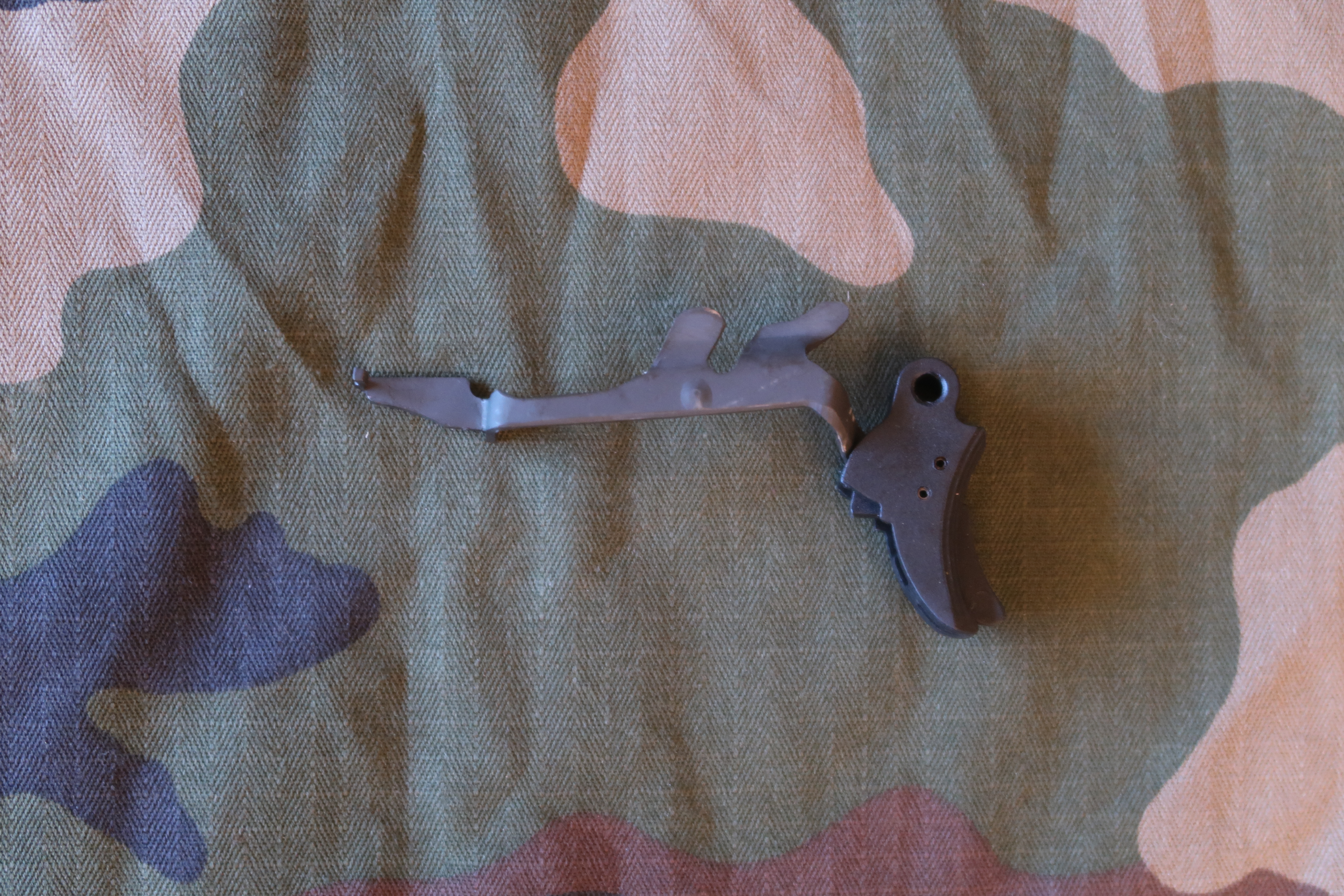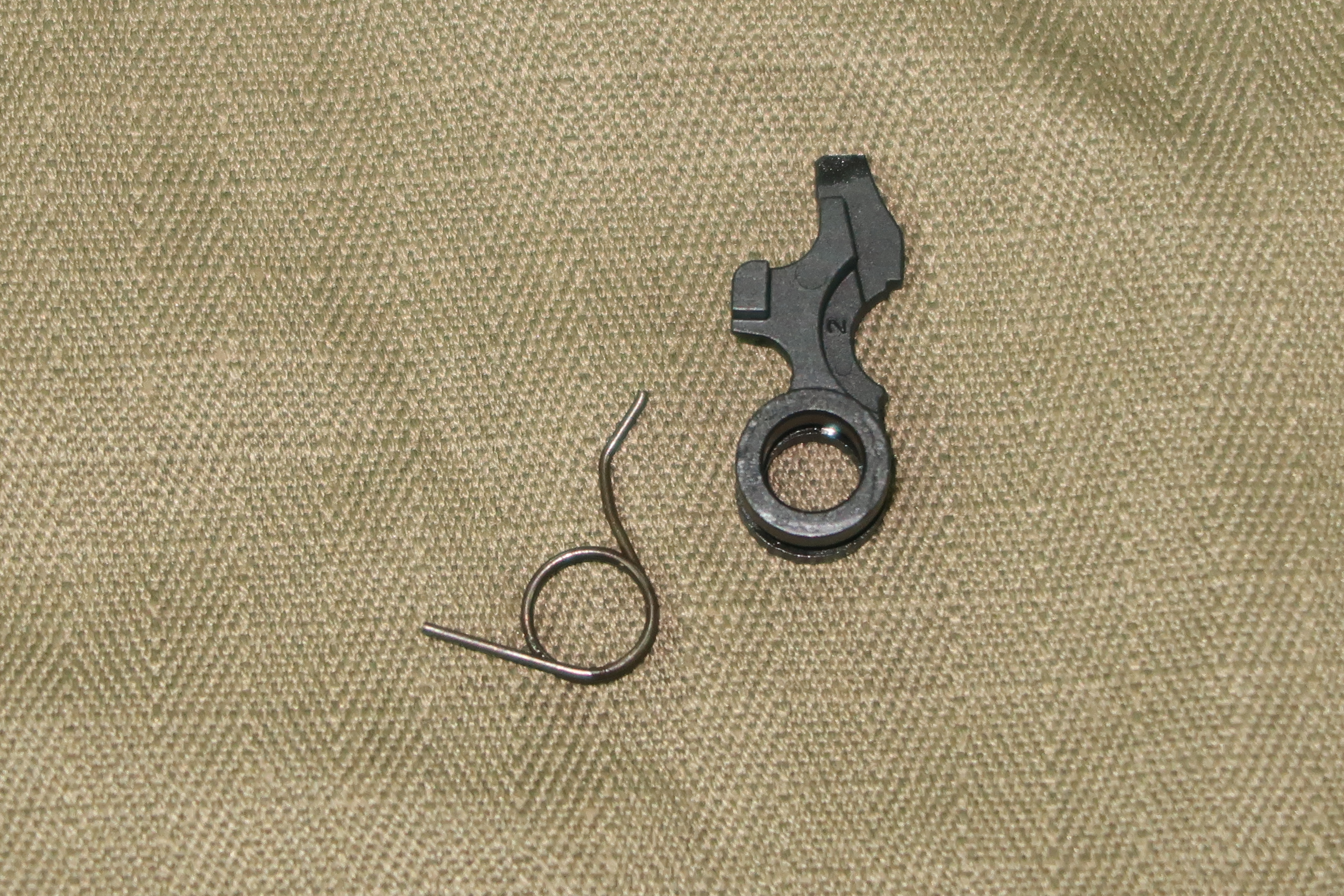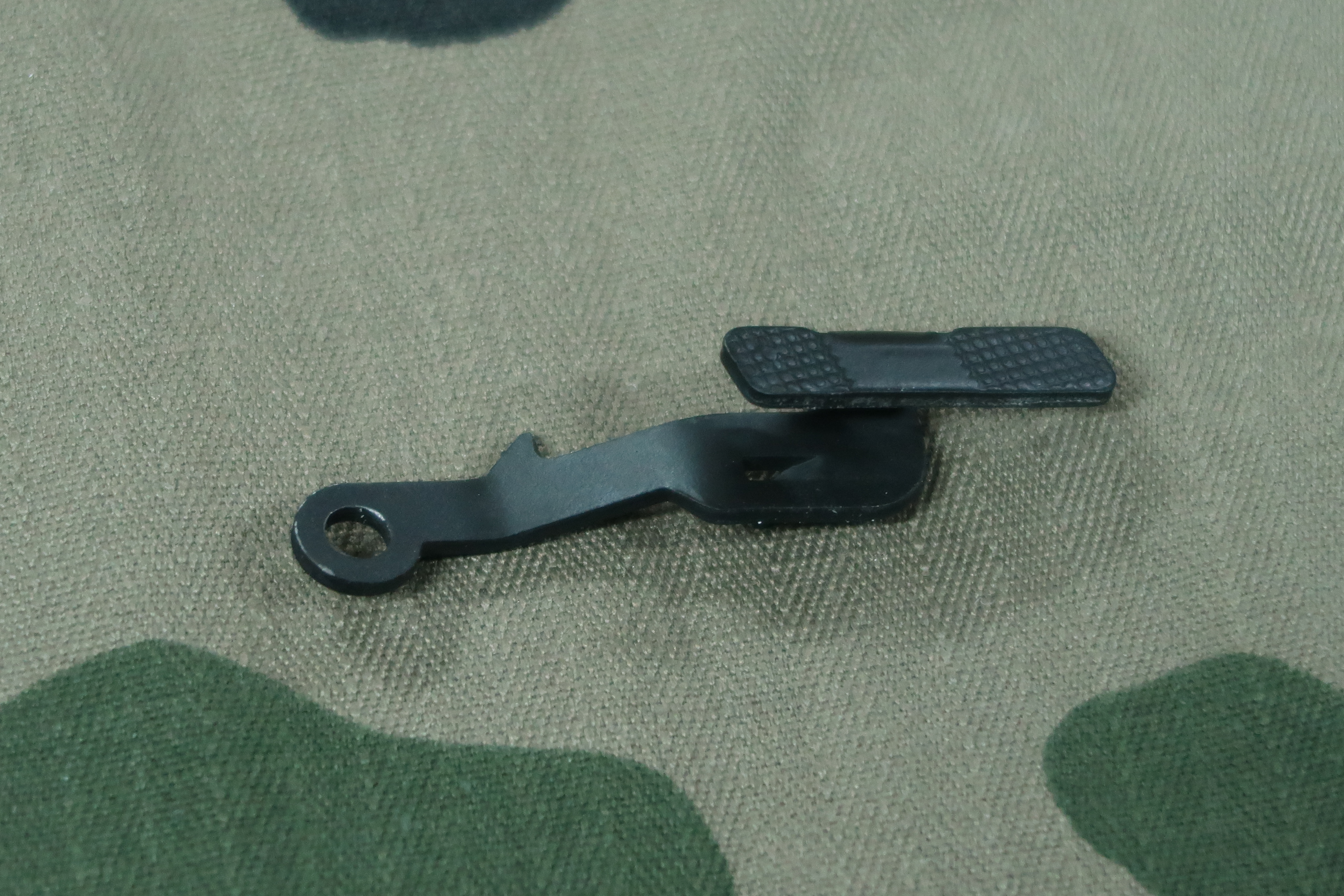 Le levier de gâchette est une pièce de micro-fusion. Cette pièce empêche la gâchette de s’abaisser. Lorsque le tireur presse la queue de détente, c’est sur cette pièce que la barrette séparateur agit pour libérer la gâchette.