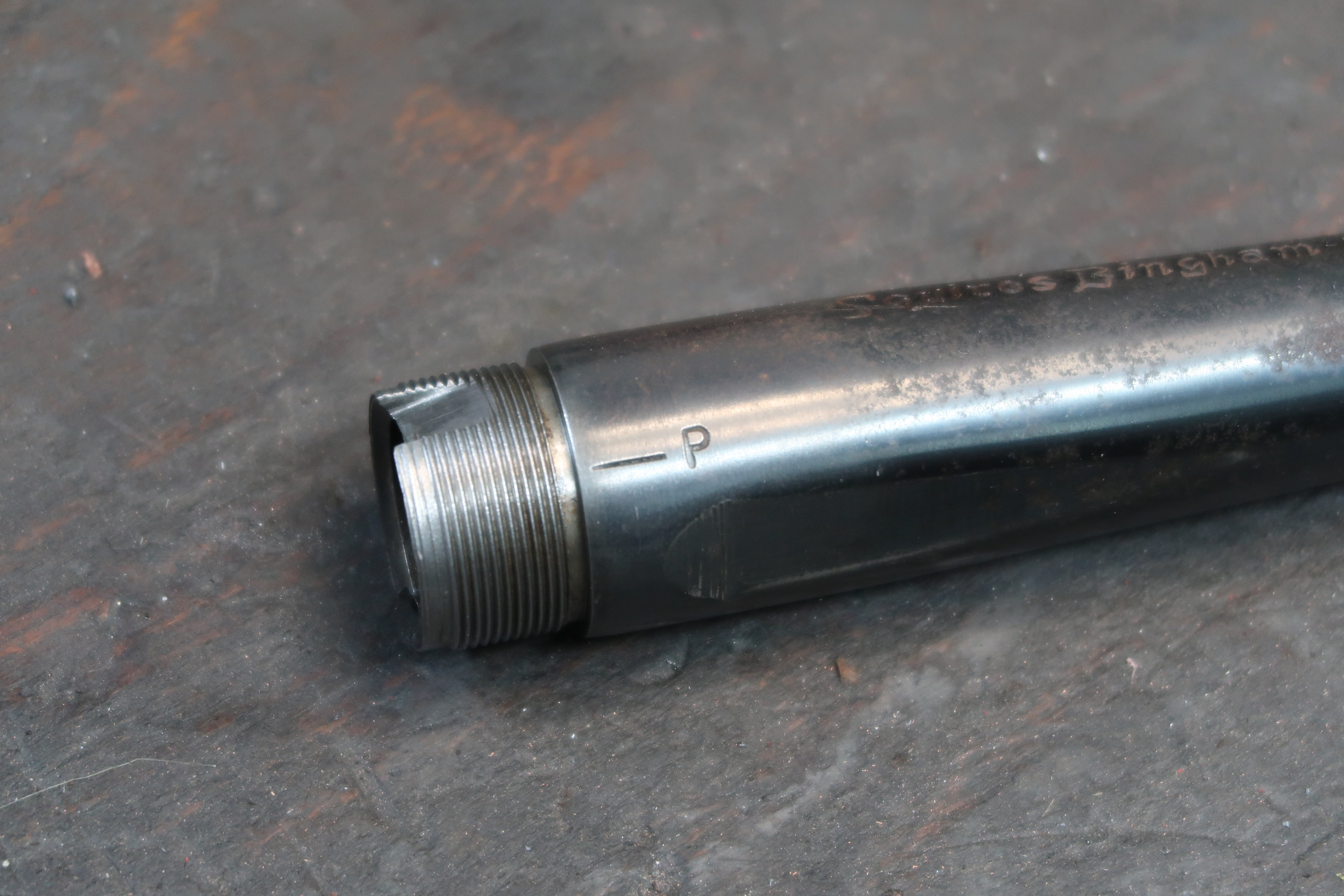Un méplat existe sur la génératrice inférieure du canon. C’est très bien, il va nous servir pour immobiliser fermement le canon sur un point rigide lors du démontage.