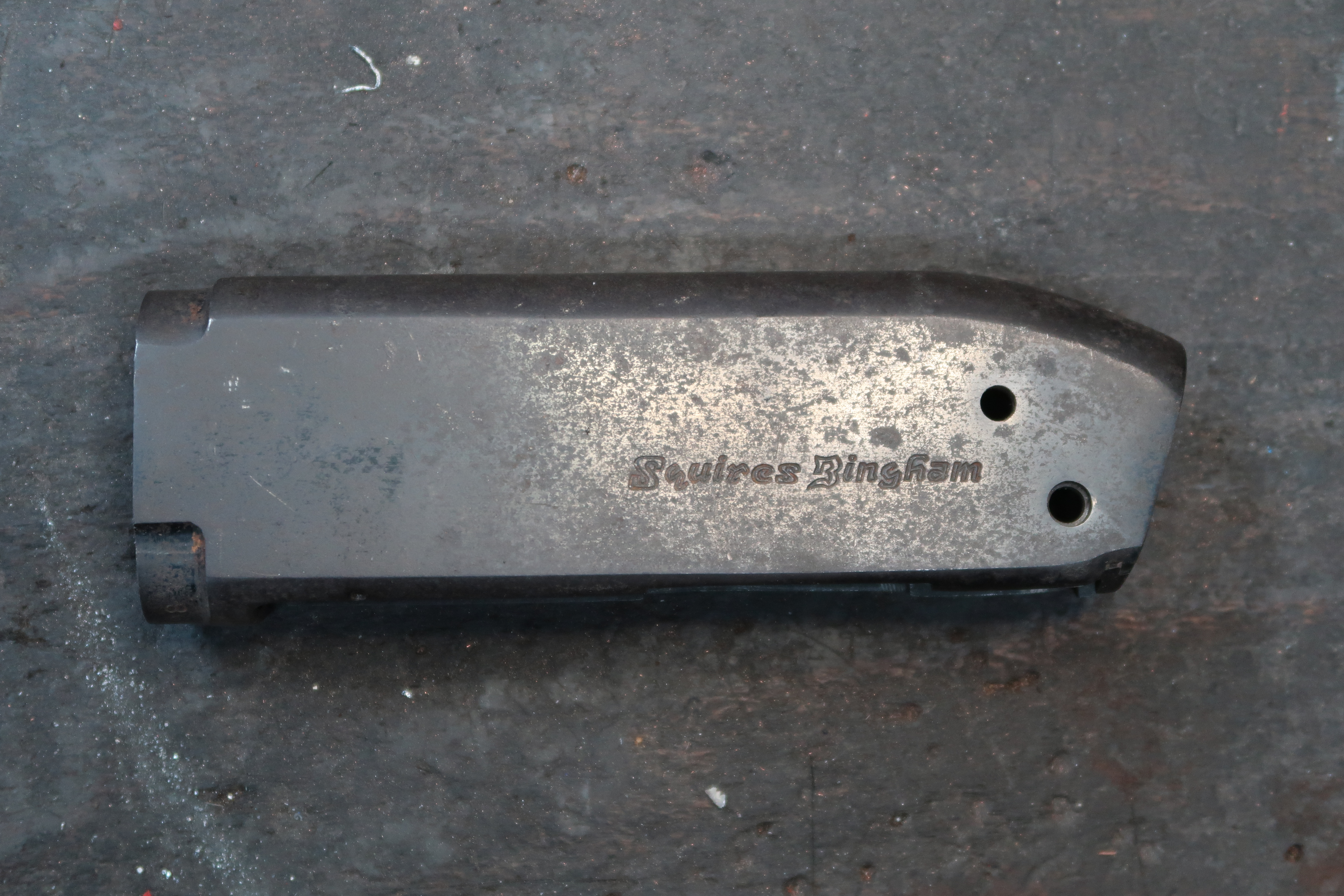 La face arrière d’une carcasse de fusil à pompe Squire Bingham.