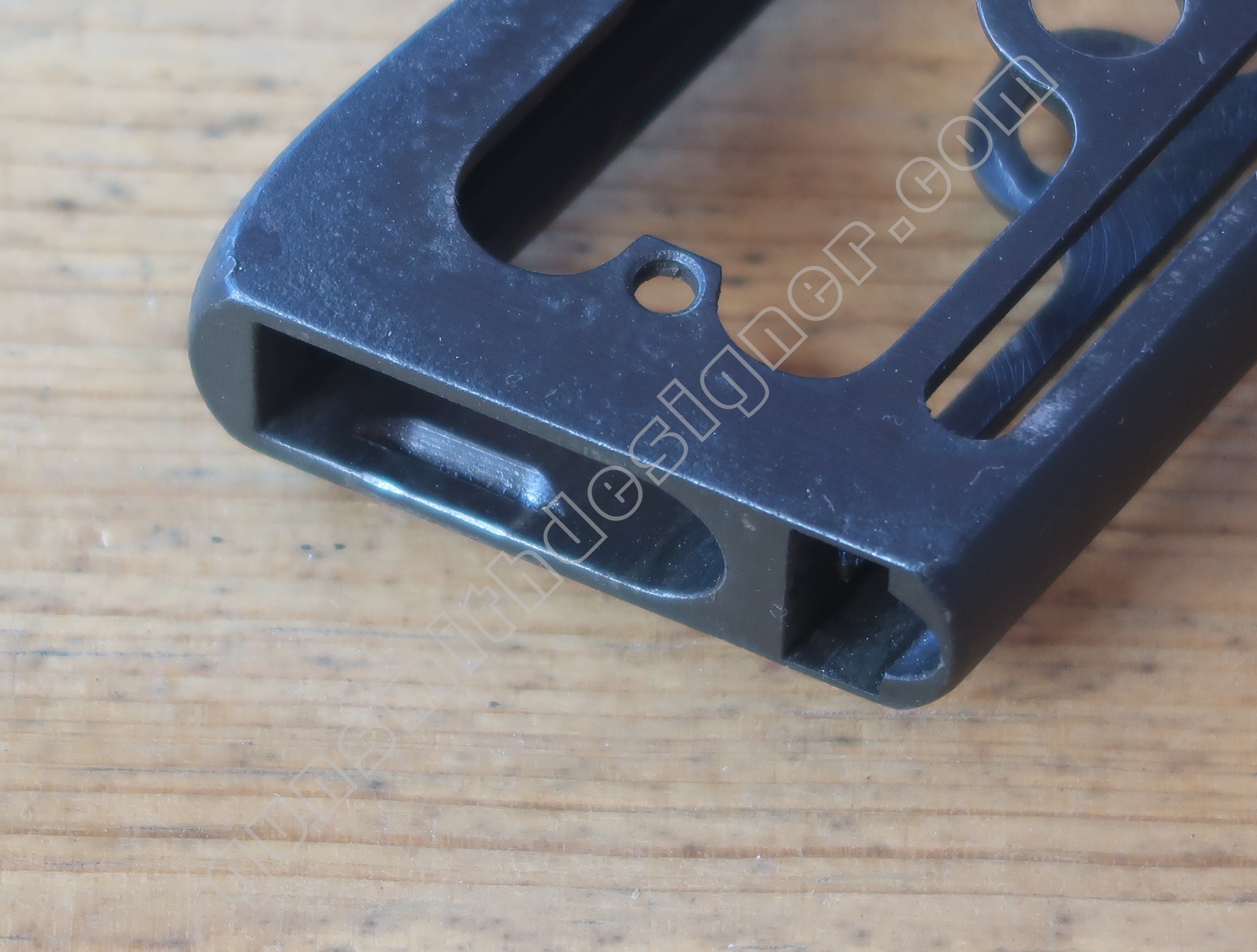 Le pontet est formé par l’usinage d’un trou oblong de dimensions : 24 mm x 36,2 mm.