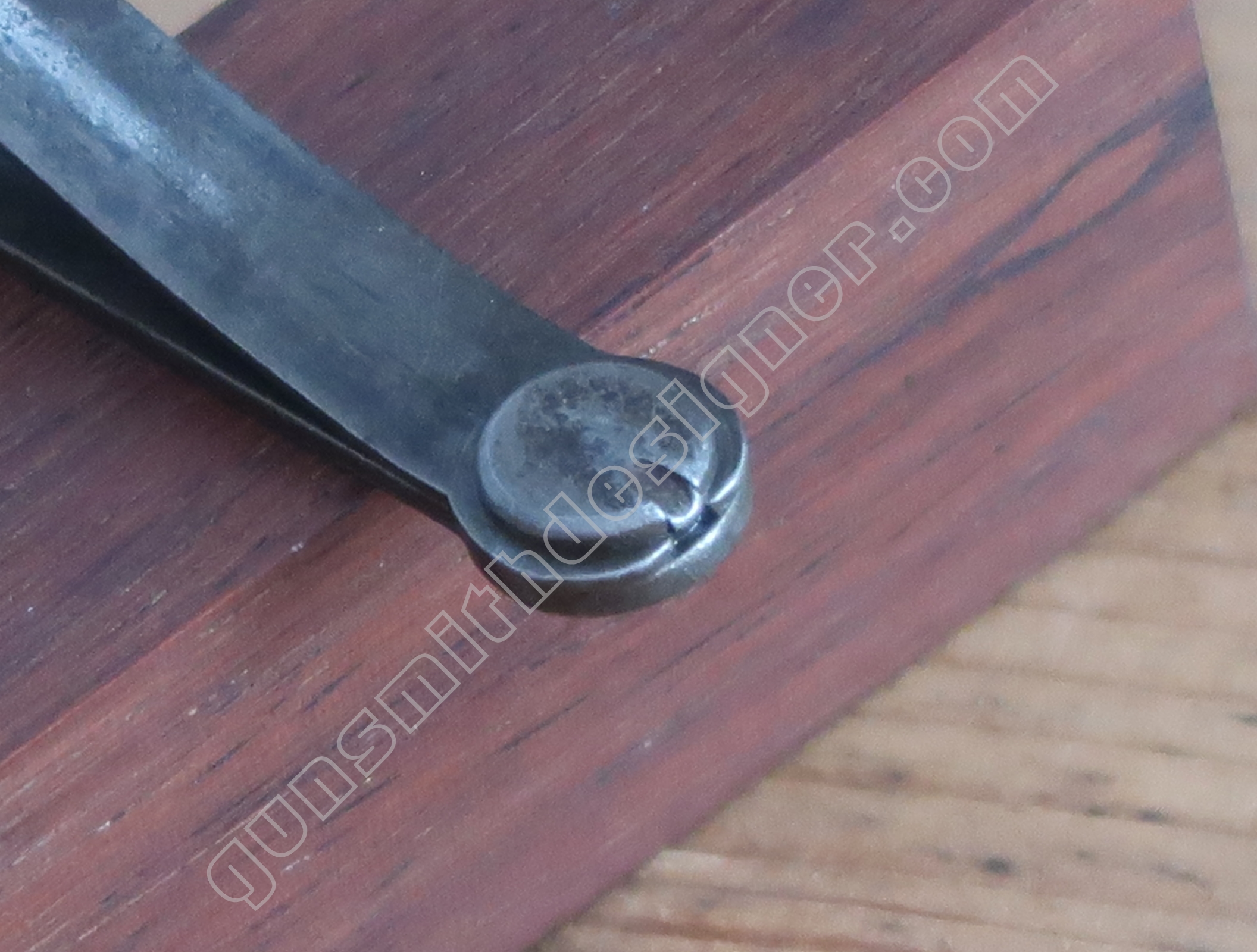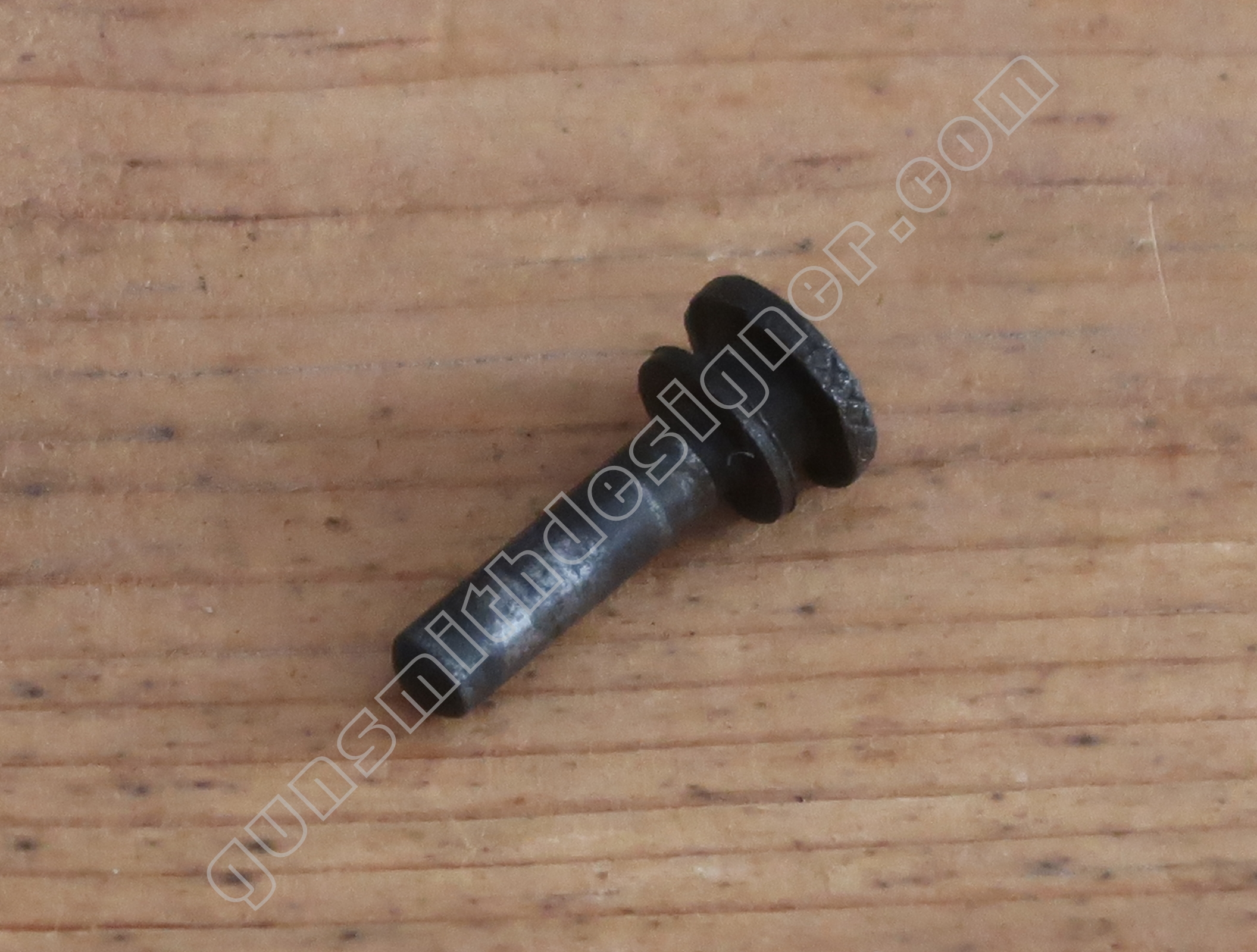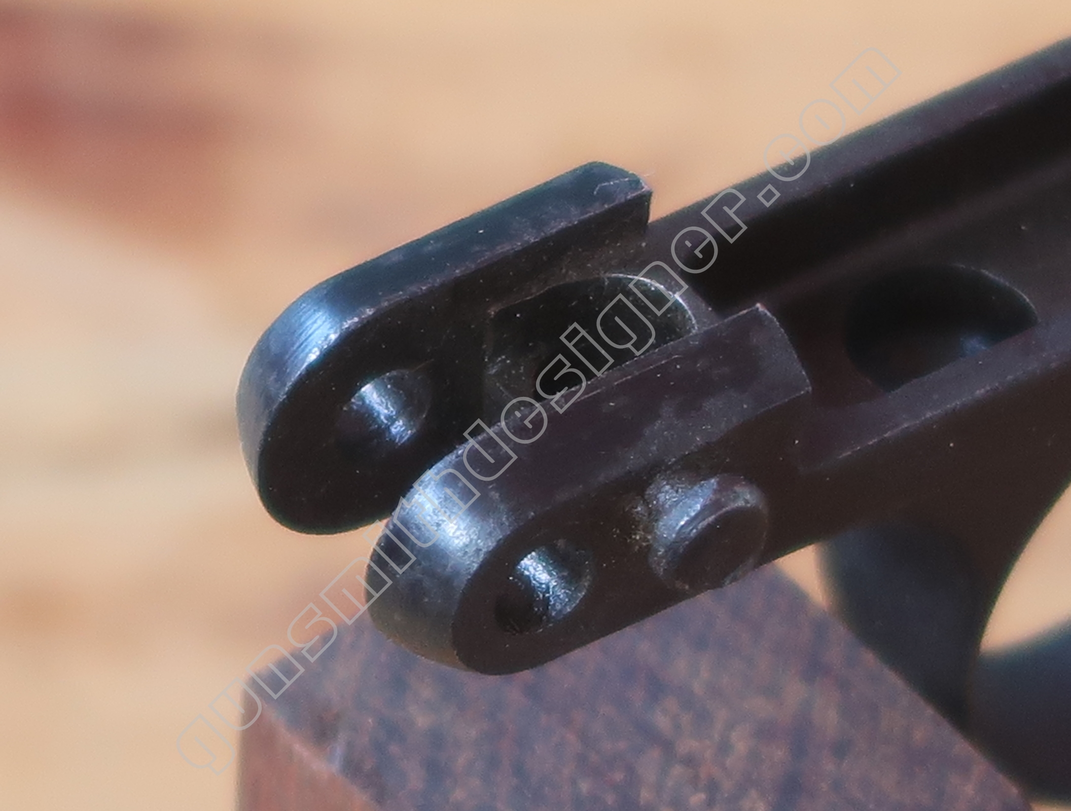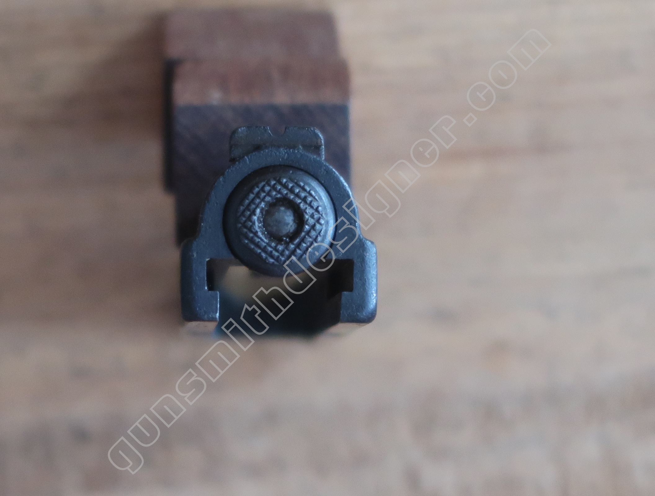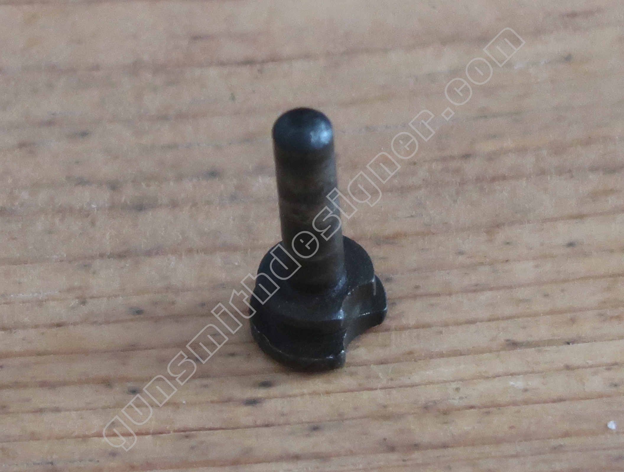 Au même endroit mais sur la face droite de la carcasse, il existe la butée de la gâchette. Il s’agit de la butée avant.