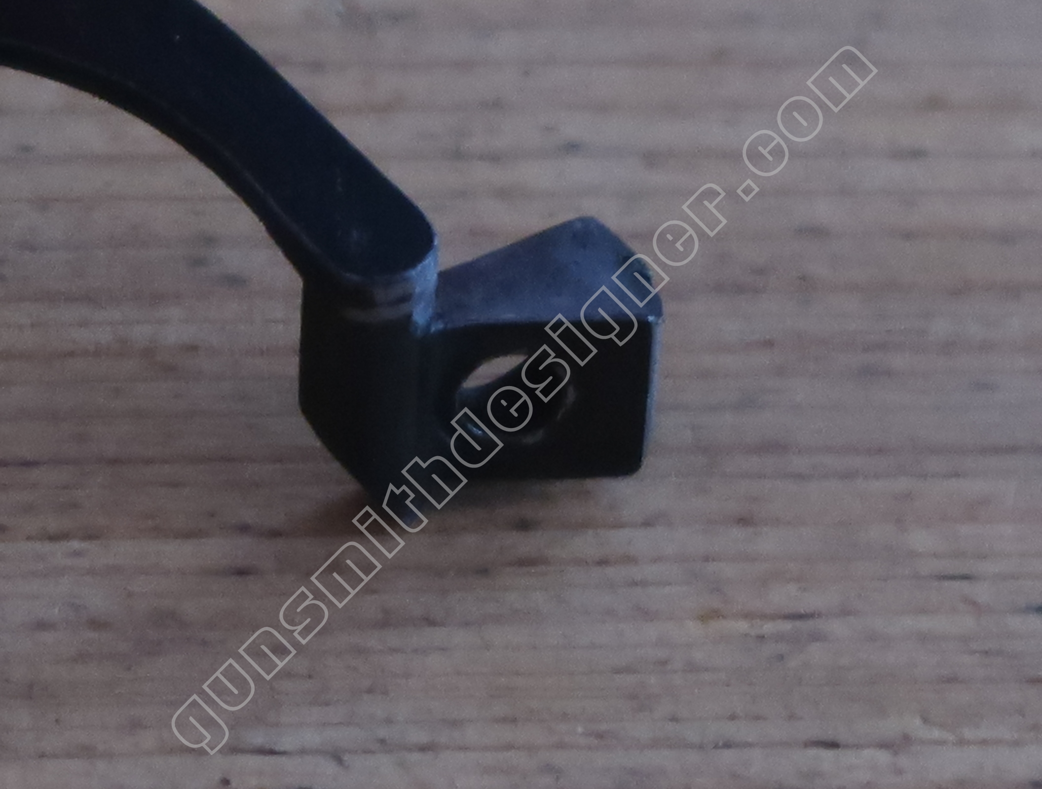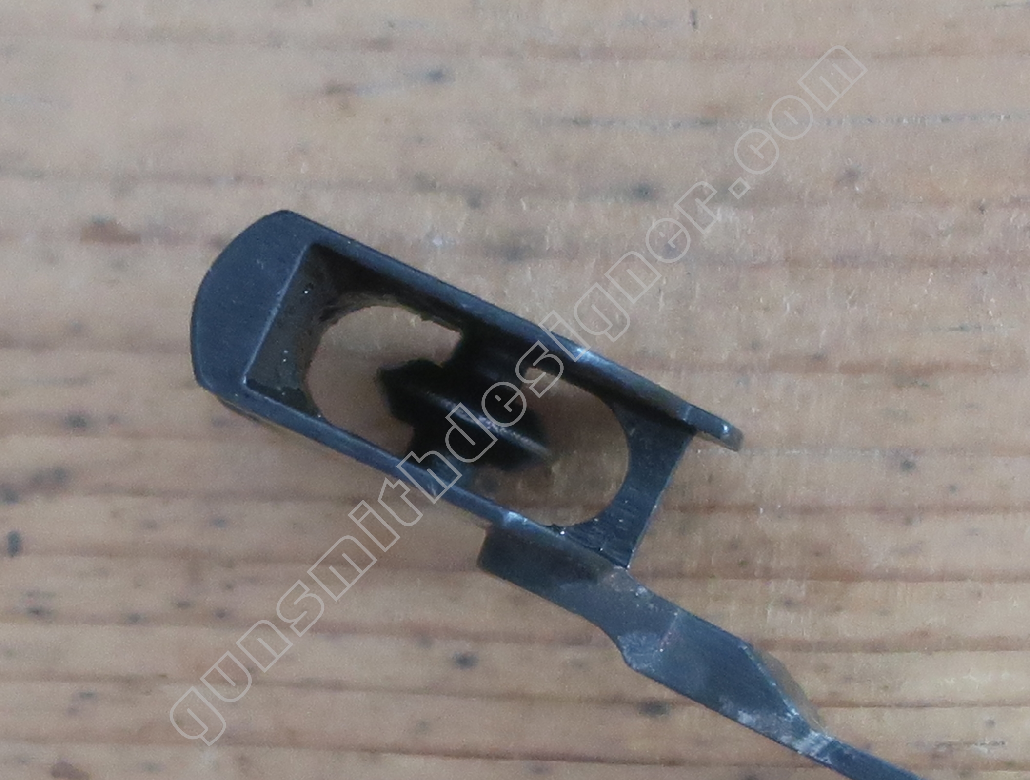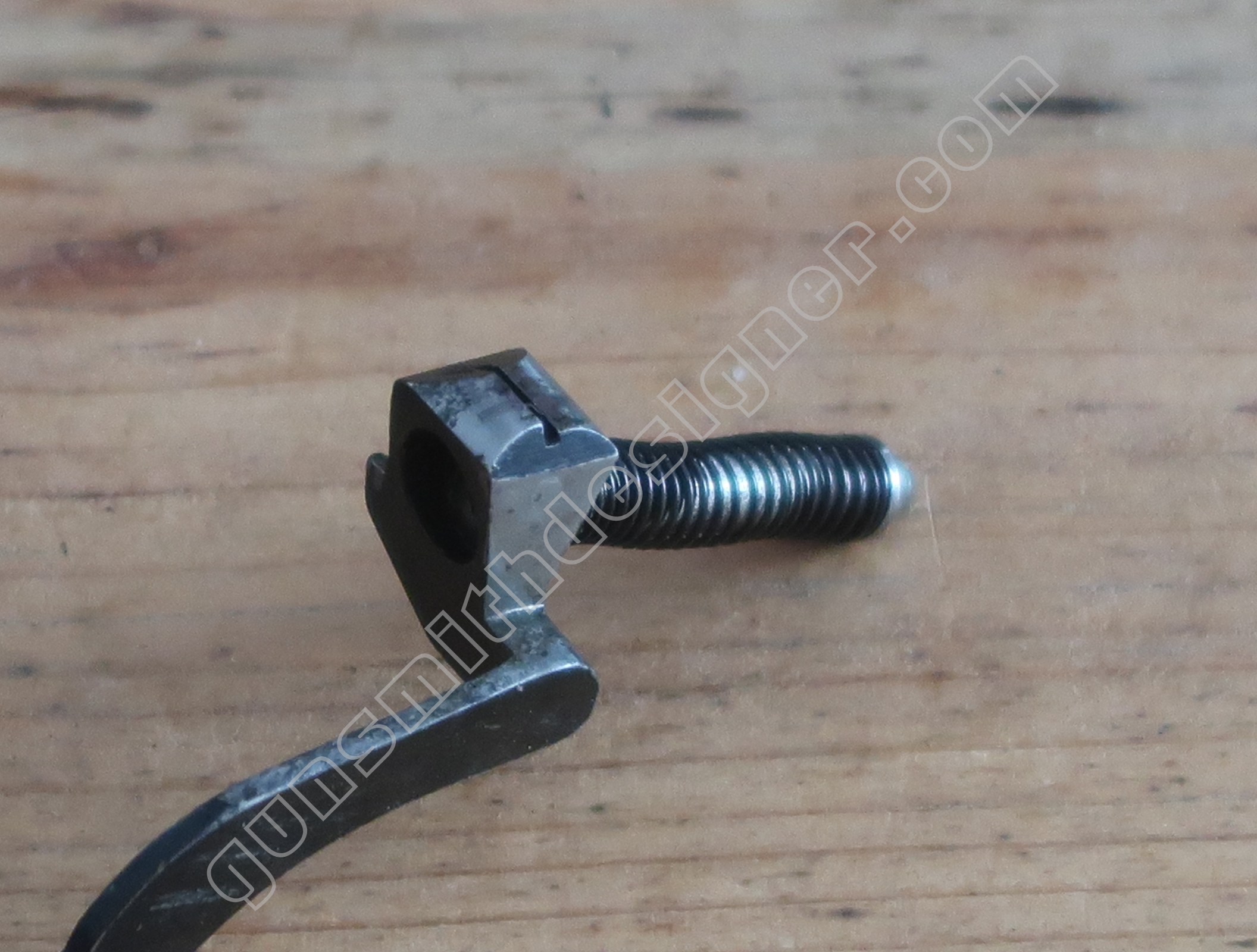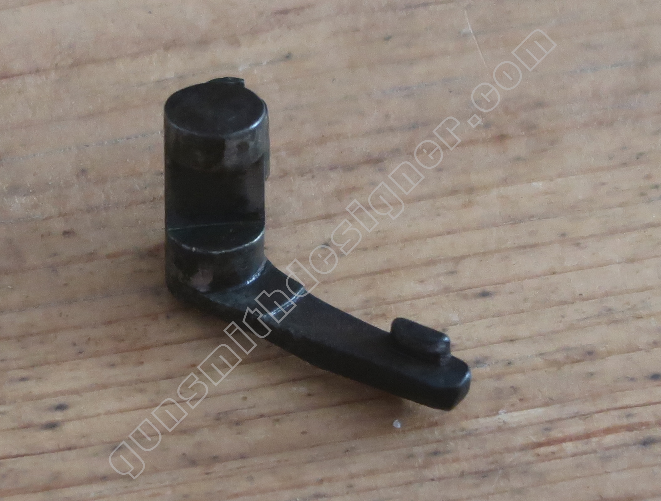 Comme nous l’avons déjà indiqué, la gâchette et la queue de détente ne font qu’une seule et même pièce. La butée avant et la hauteur de la gâchette sont commandées par des usinages sur la carcasse.