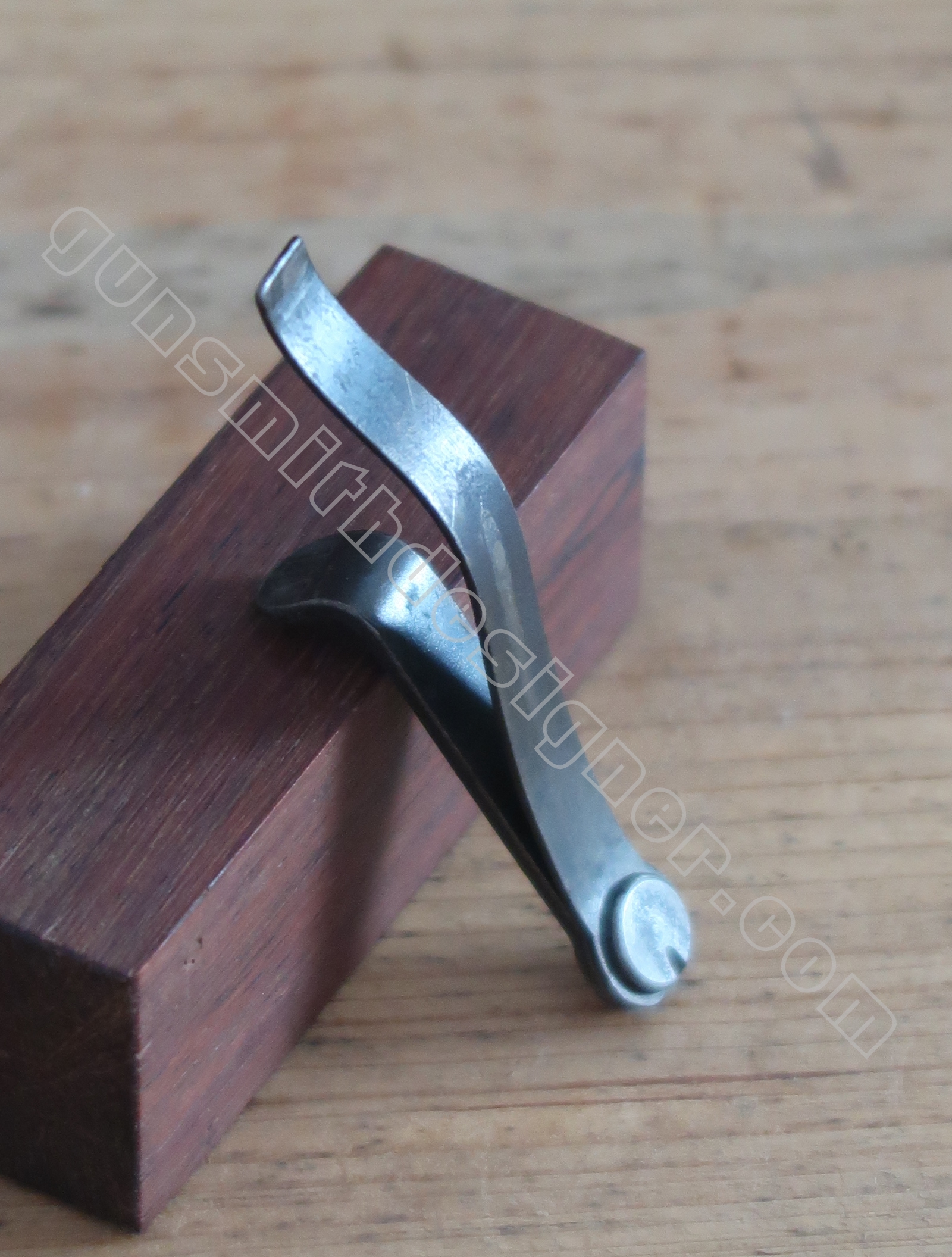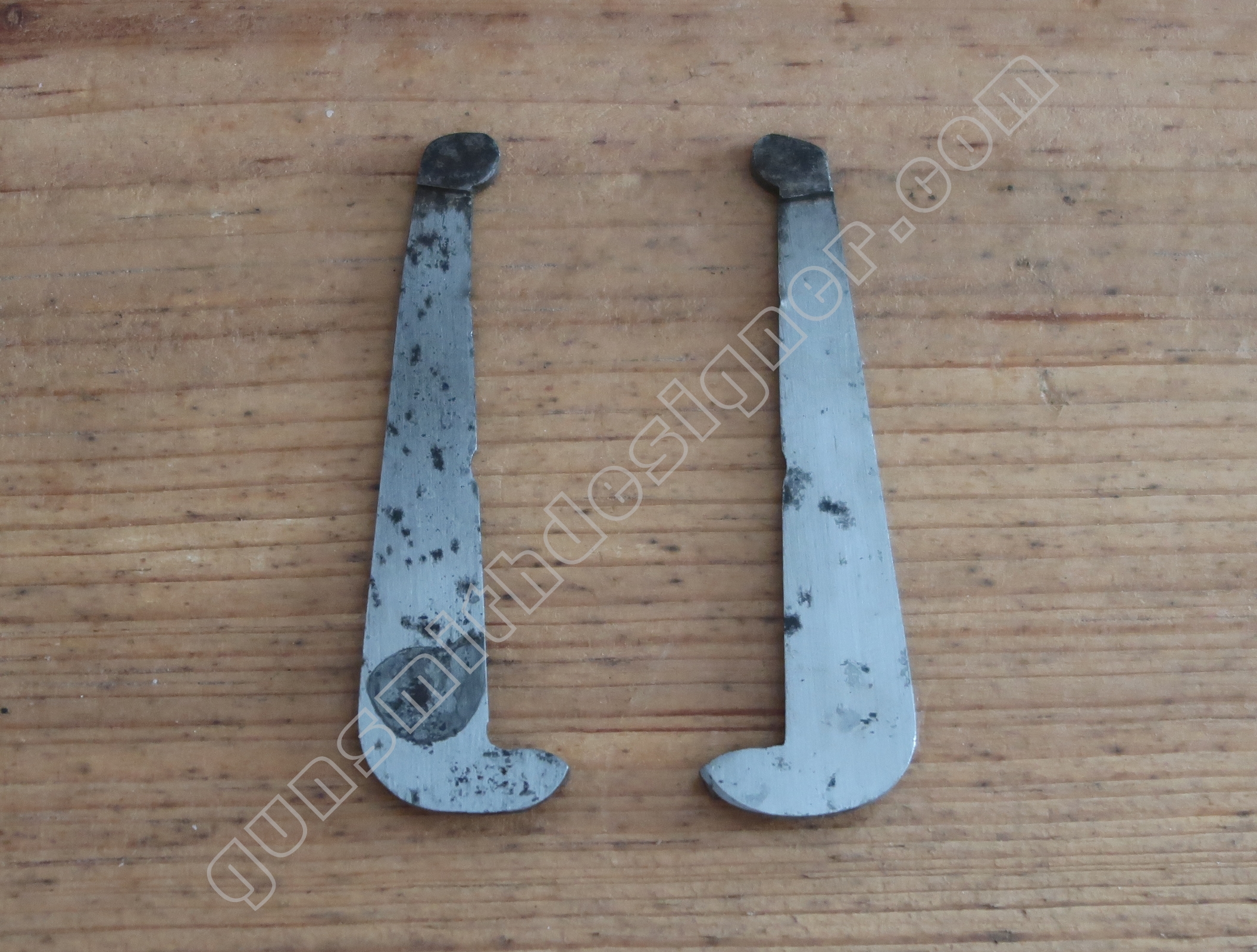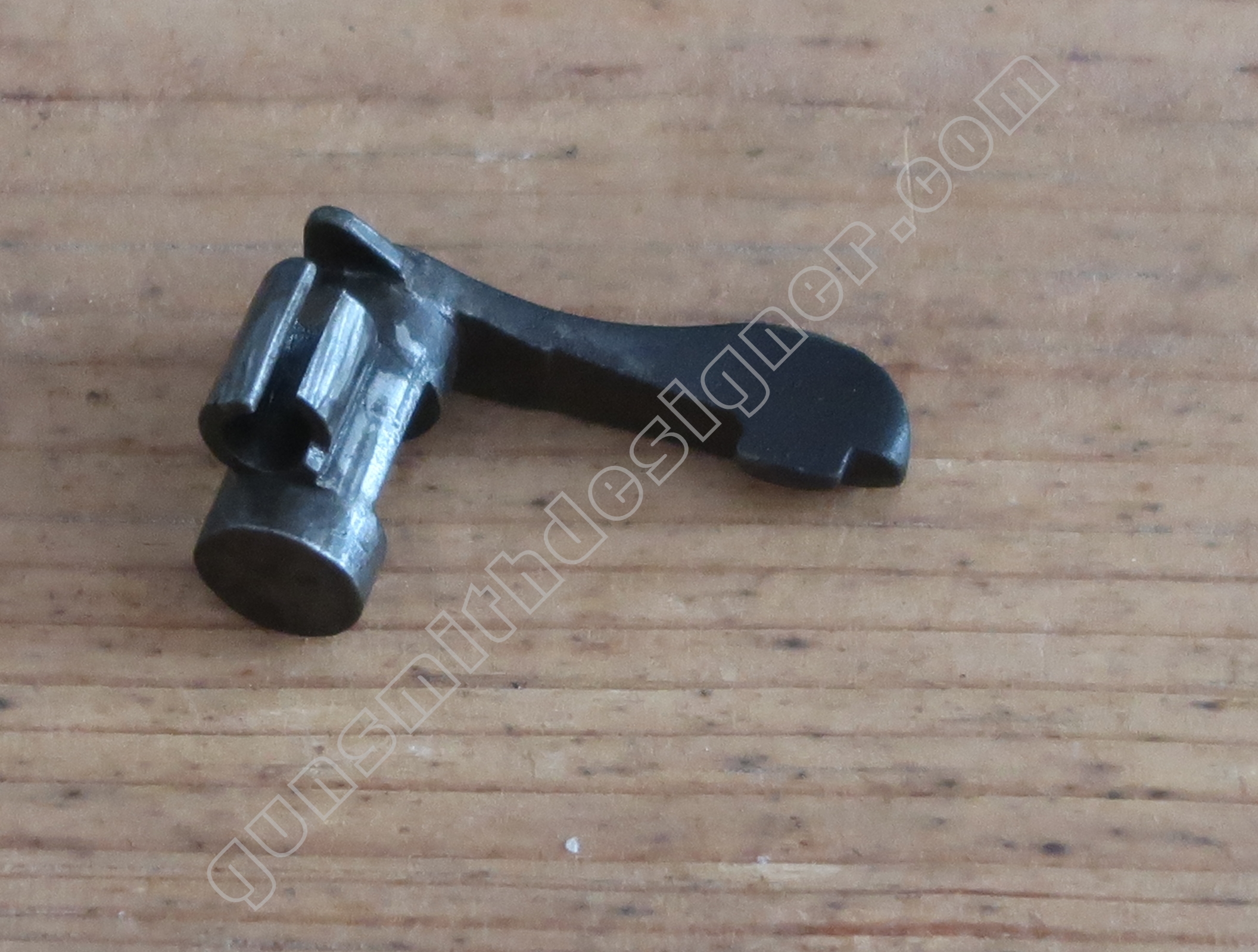 La queue de détente est en acier. C’est une pièce complexe. On pourrait imaginer que cette dernière soit formée à partir de plusieurs pièces soudées. Ca ne semble pas être le cas. Il serait intéressant de se plonger dans les archives de Manufrance pour tenter de préciser les méthodes et moyens de production usités.