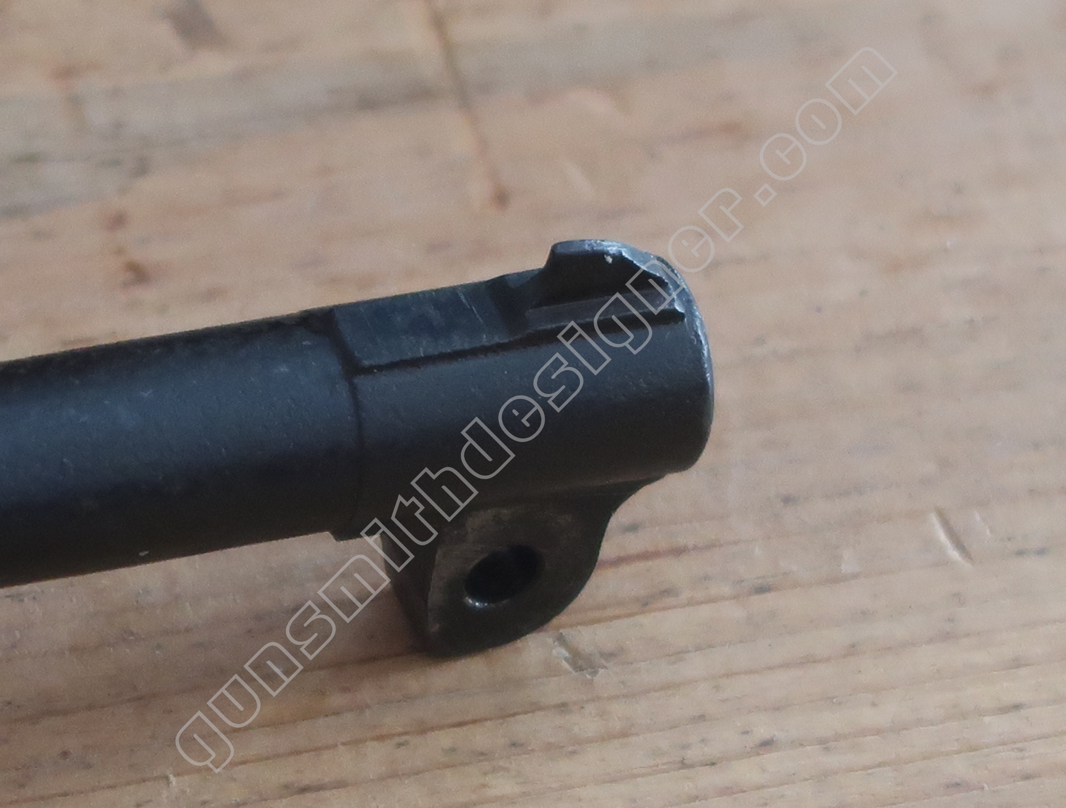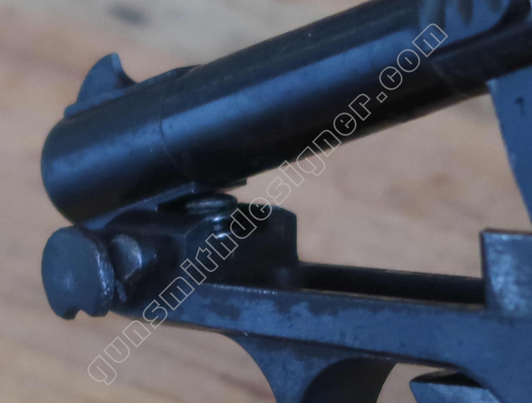 Deux excroissances existent sous le canon. Une à l’avant du canon sert de pivot au canon, elle a une largeur de 7,3 mm. Une à l’arrière qui sert à immobiliser le canon verrouillé en position basse, elle a une largeur inégale car le profile est conique, la partie haute est la plus large.