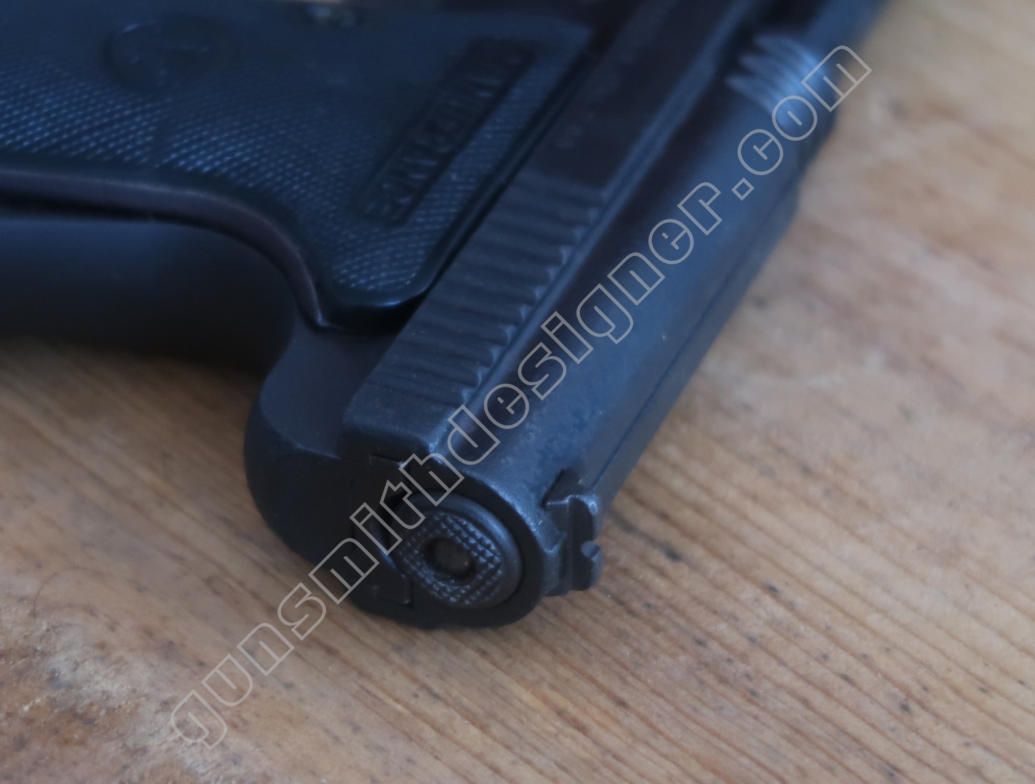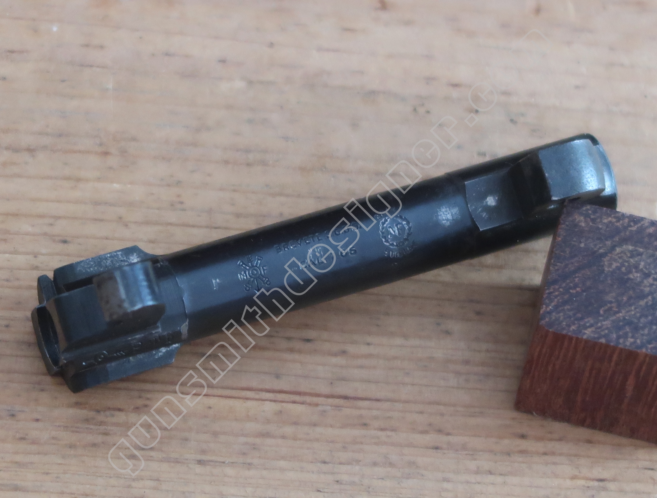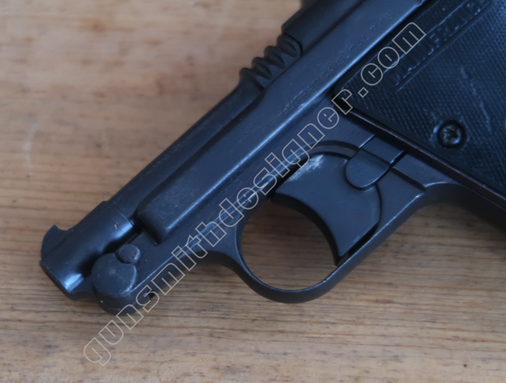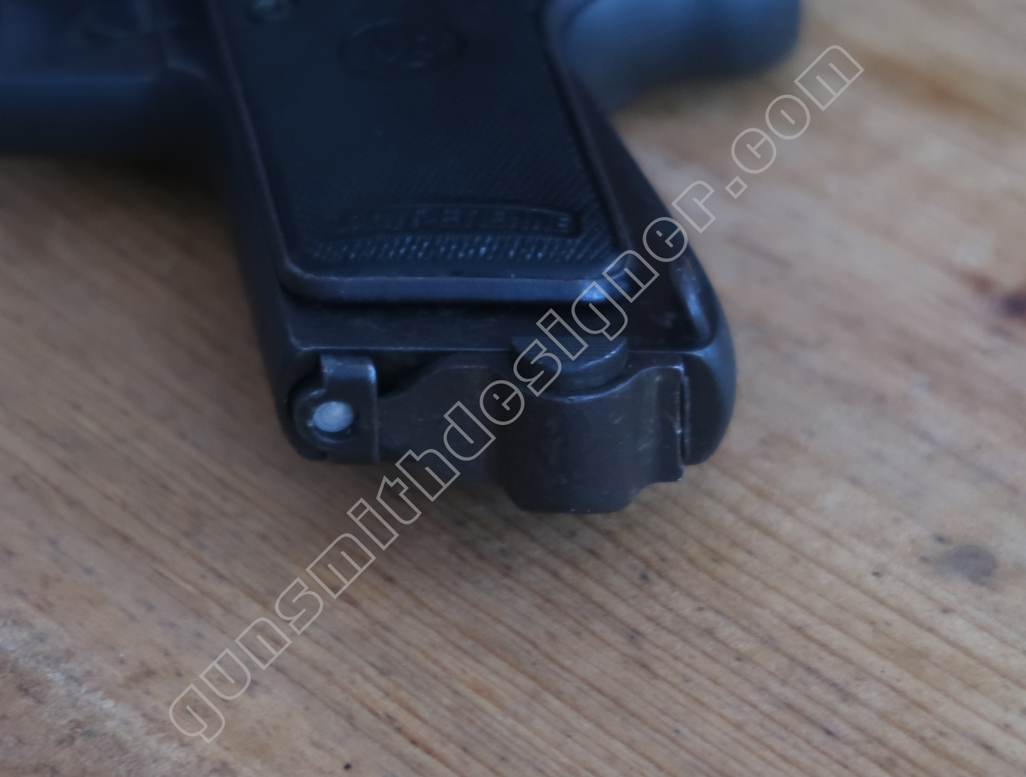 C’est une des parties les plus intéressante de cette arme…enfin selon moi ! Elle demanderait à elle seule un article à part entière. C’est un dérivé de son petit frère en 6,35 mm, les mêmes principes ont été réutilisés ici.