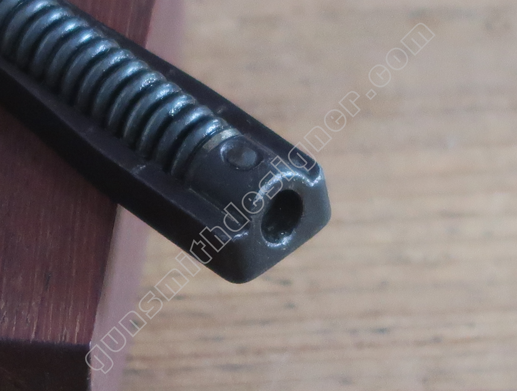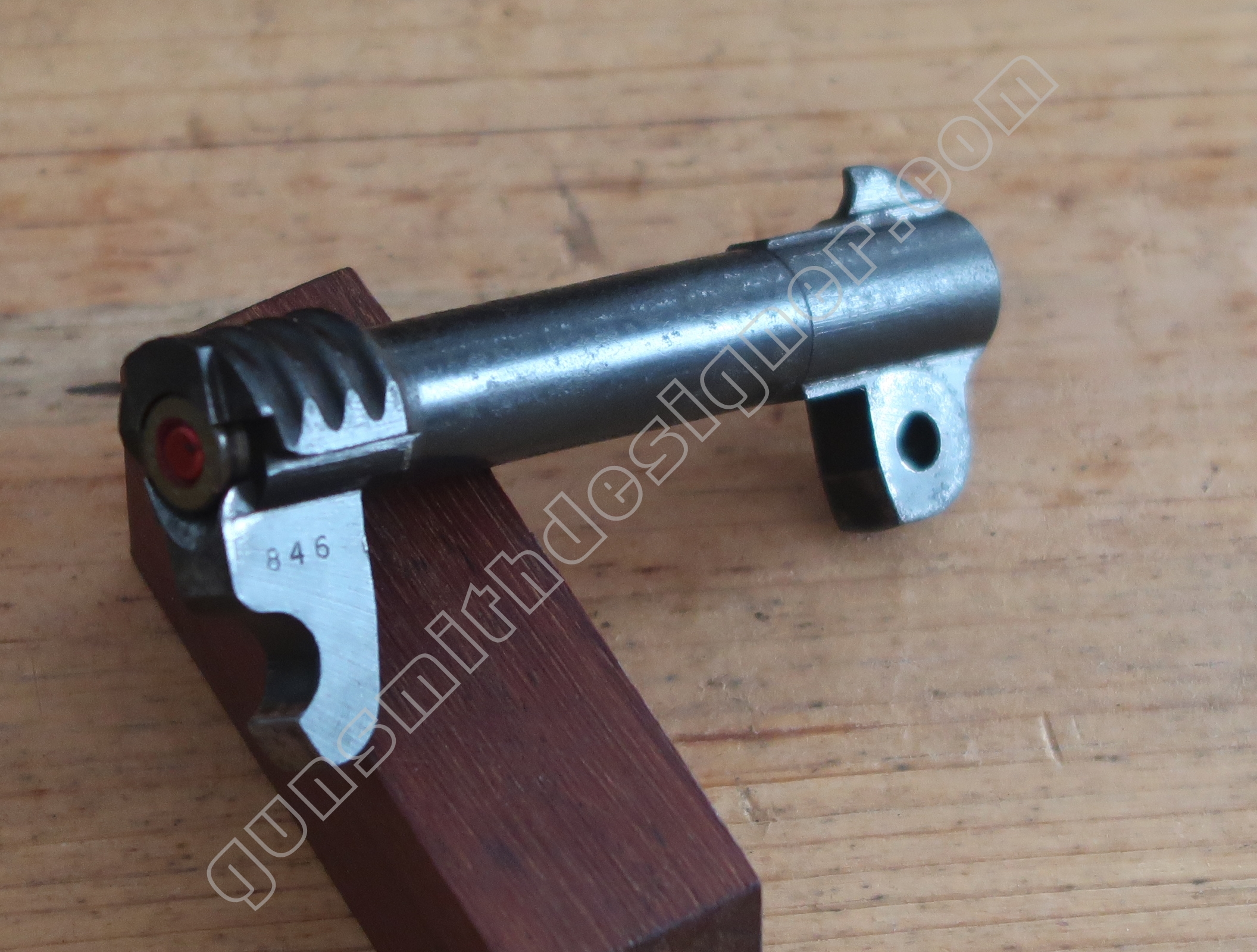 Le logement du percuteur est une succession de forage de divers diamètres. Un pour le canal de percuteur, un pour le logement du ressort de rebondissement, un pour le logement du ressort de percussion, un pour le logement du bouchon arrière. La profondeur de ces forages ont une grande importance car de ça dépendent certaines fonctionnalités de l’arme.