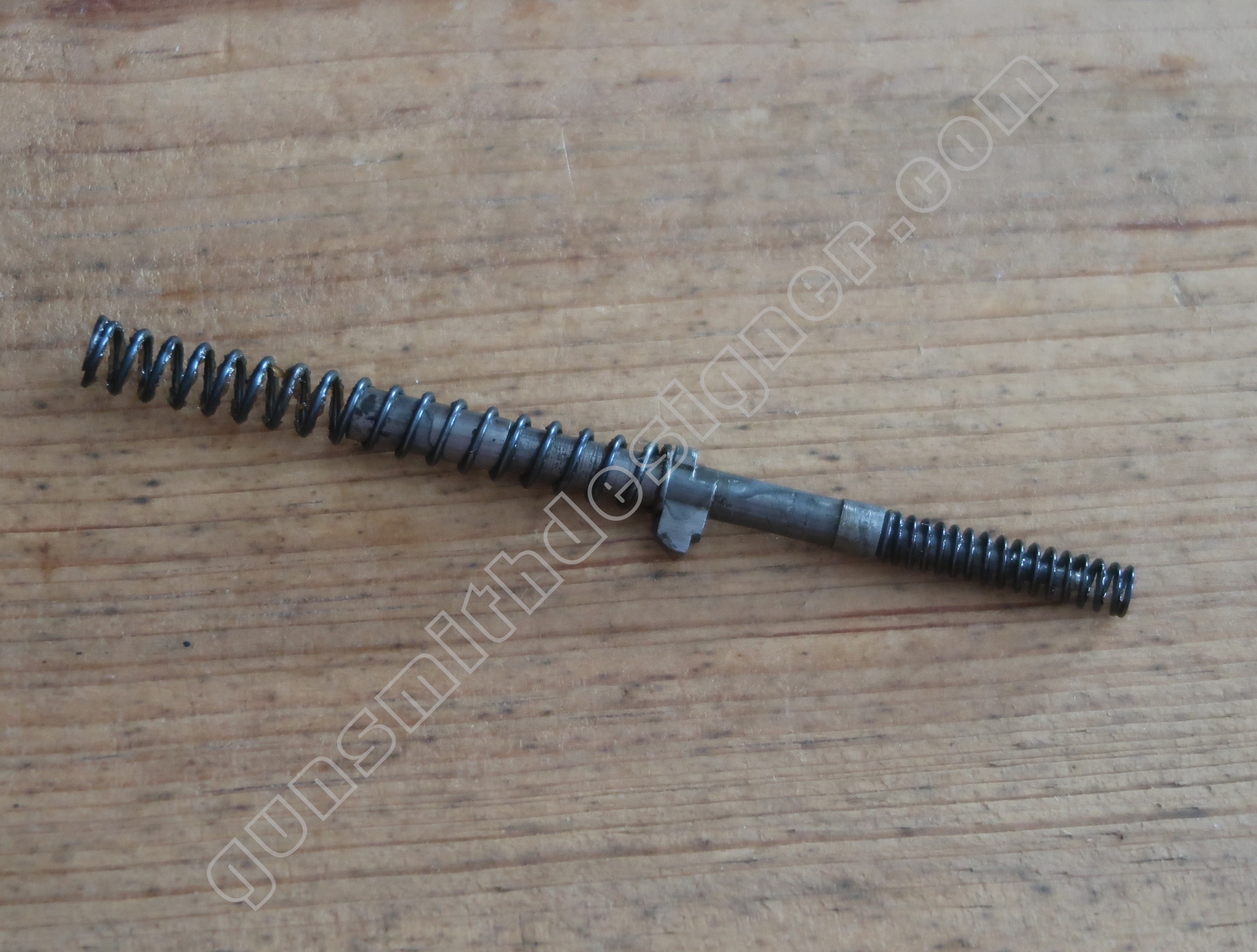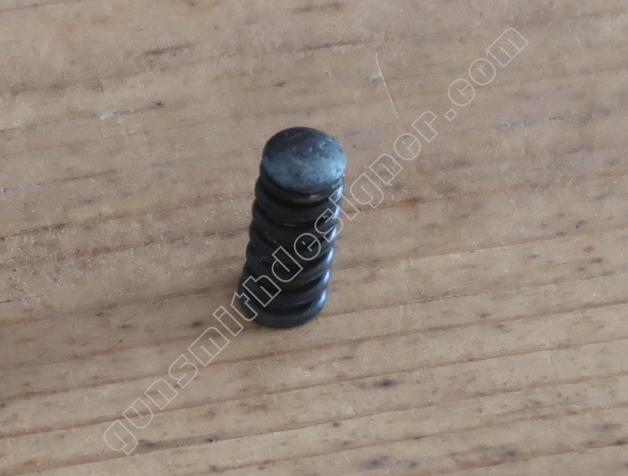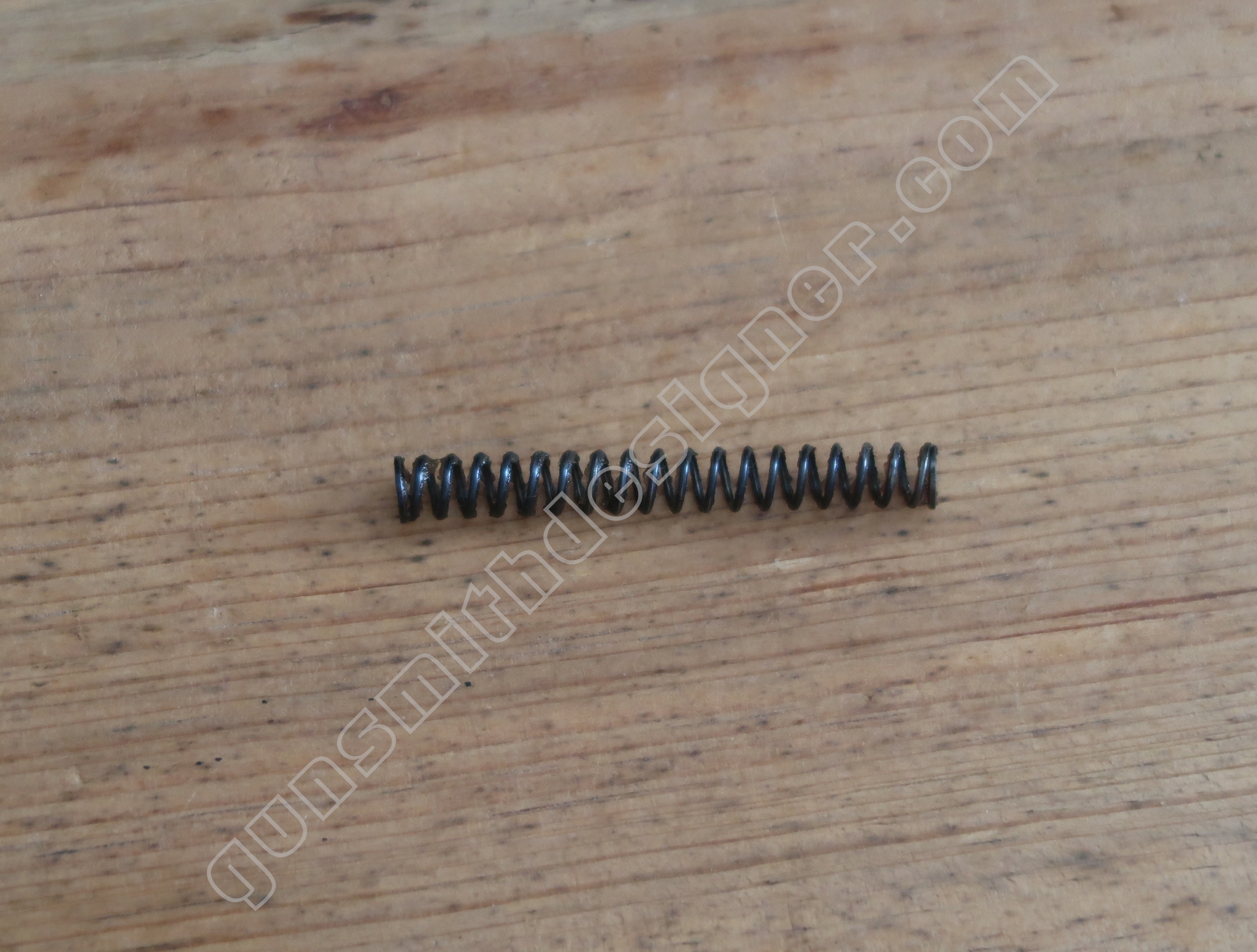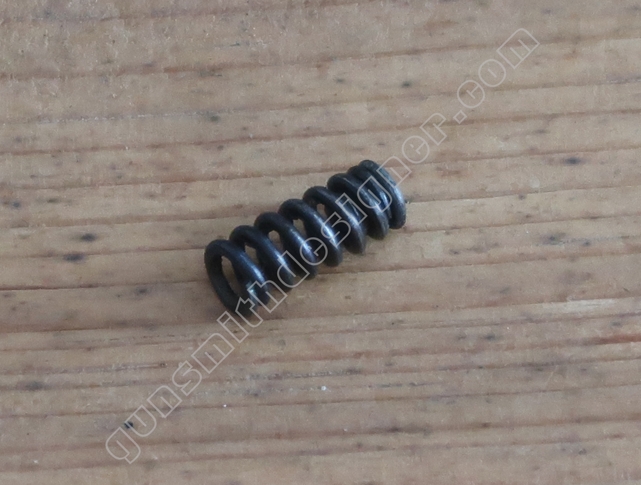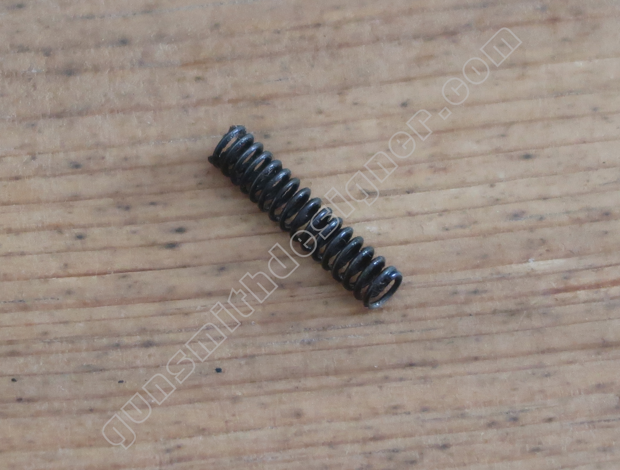Le ressort de rebondissement du percuteur est utile pour que la pointe du percuteur ne fasse pas saillie en permanence dans la cuvette de tir. La longueur du ressort est : 23 mm. Le diamètre extérieur est : 4,9 mm. Le diamètre de fil est : 0,6 mm.