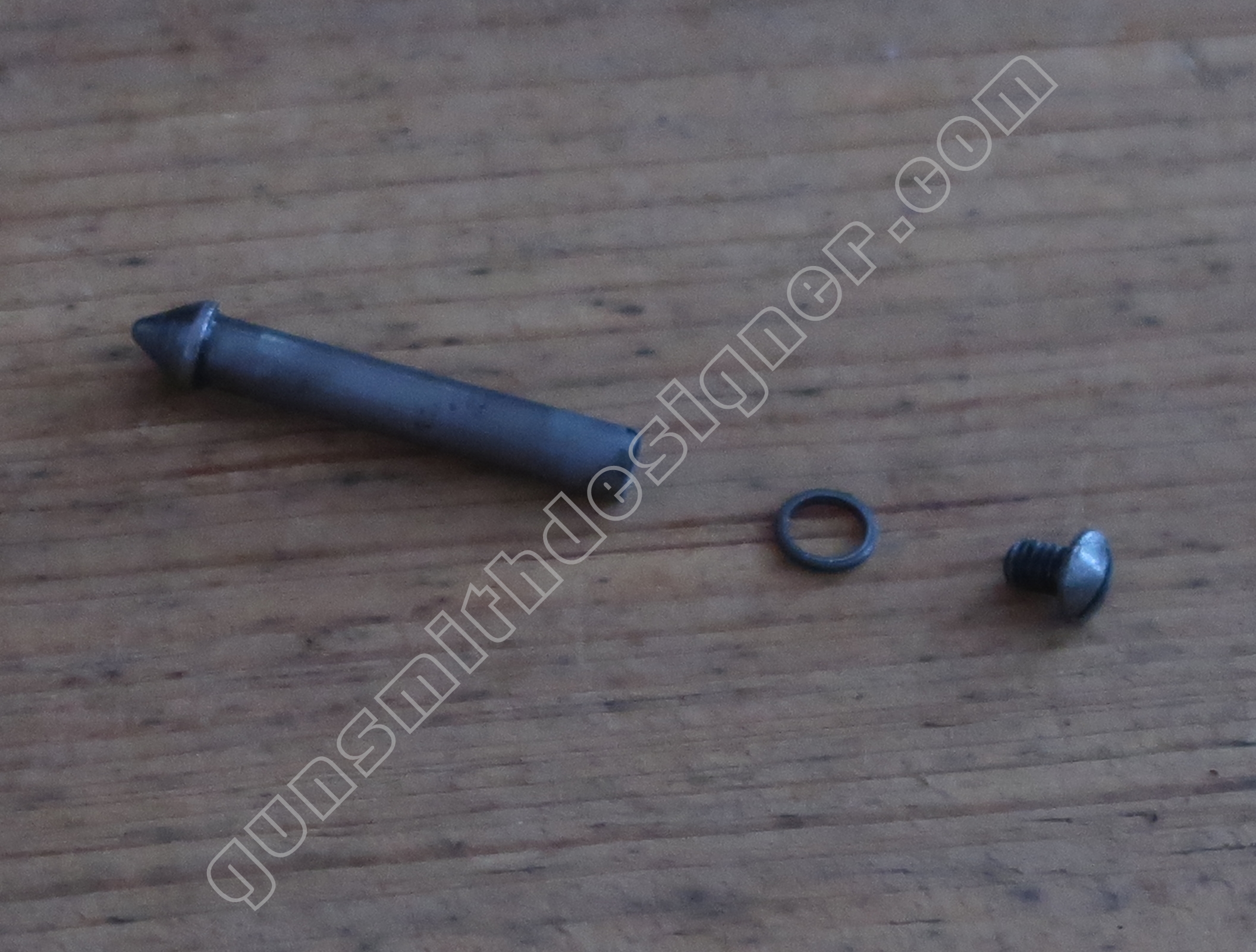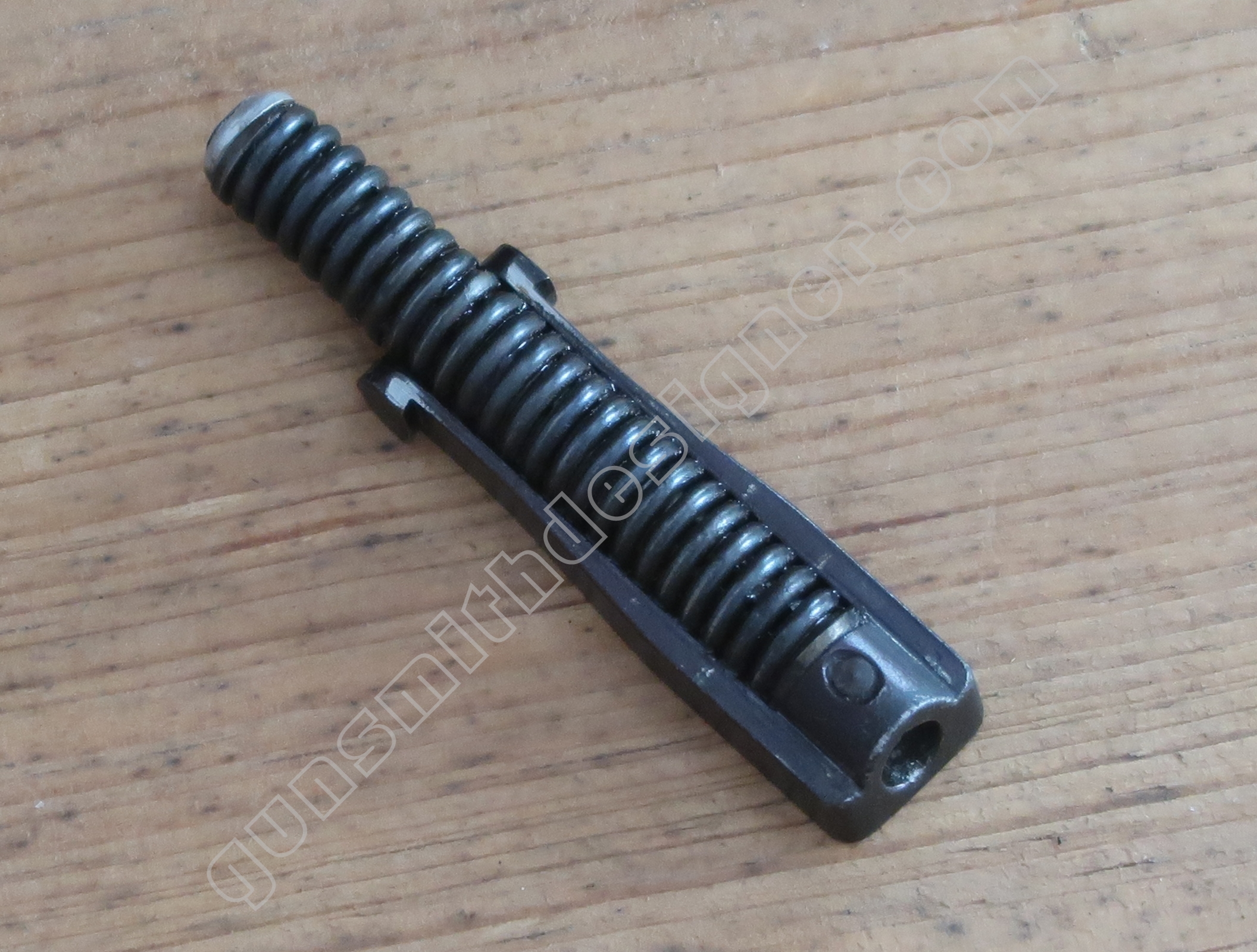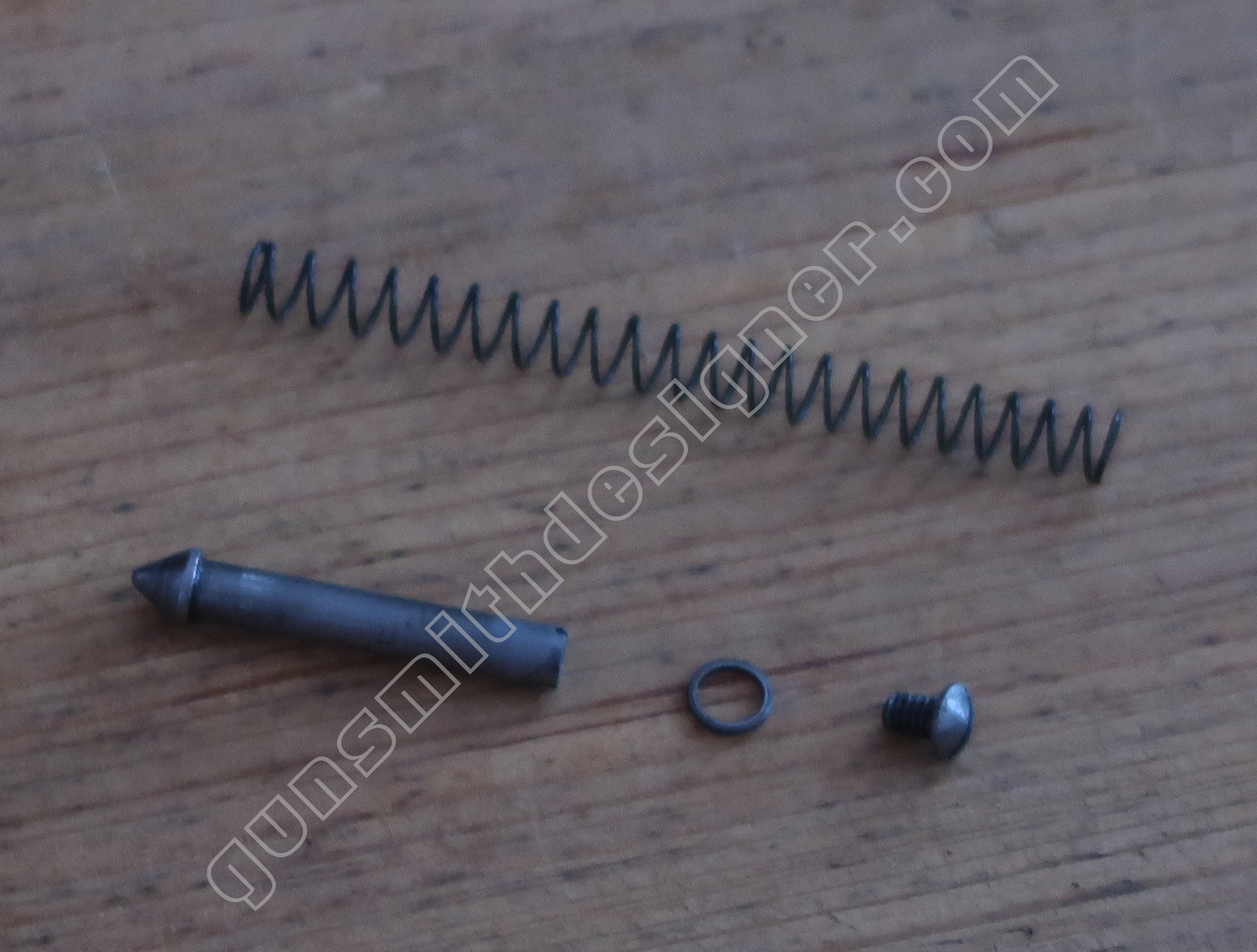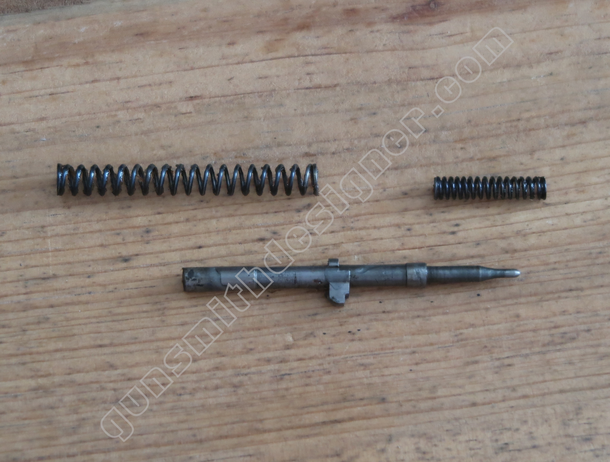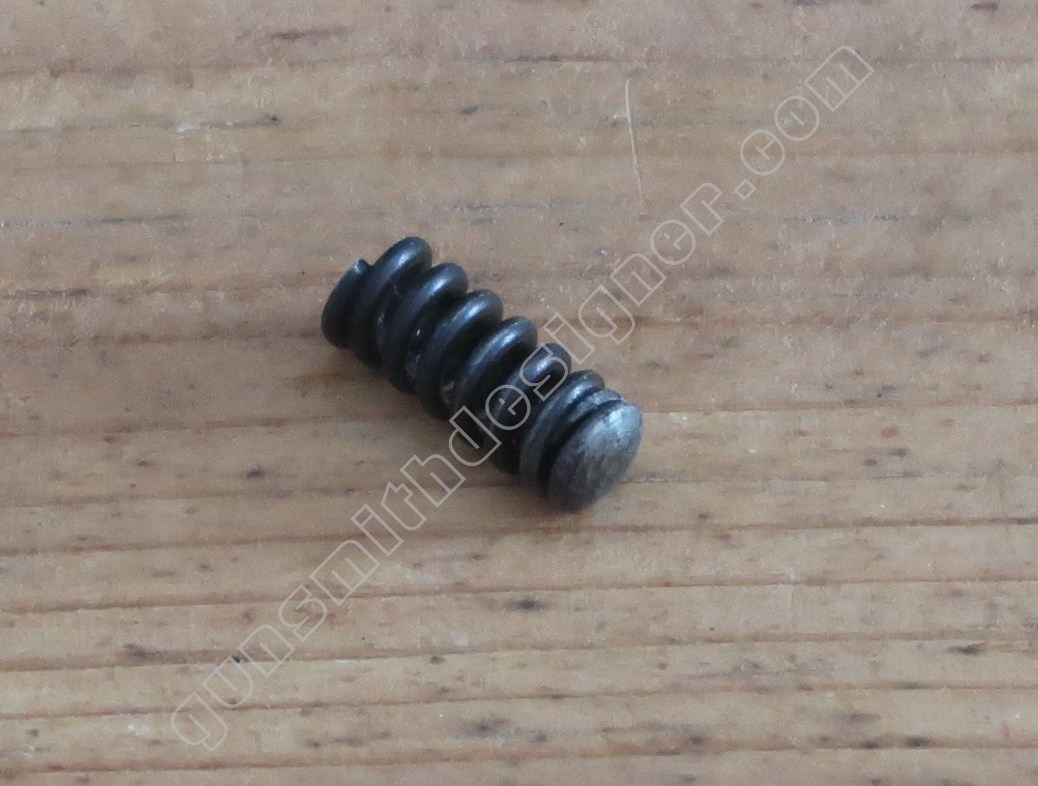 Le ressort de rebondissement du percuteur est utile pour que la pointe du percuteur ne fasse pas saillie en permanence dans la cuvette de tir. La longueur du ressort est : 23 mm. Le diamètre extérieur est : 4,9 mm. Le diamètre de fil est : 0,6 mm.