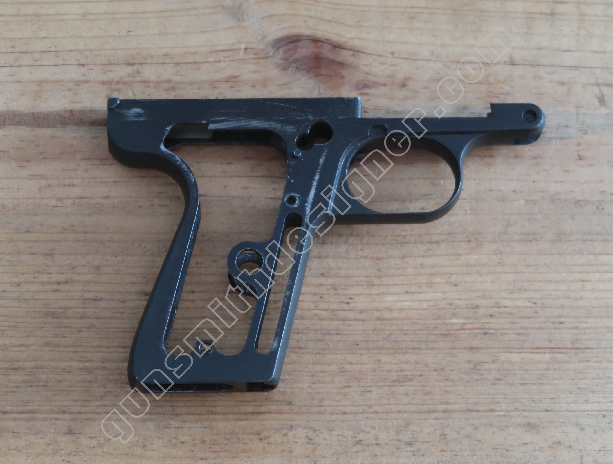 La carcasse nue est en acier. Elle entre dans un bloc capable de dimension : 146 mm x 96,5 mm x 15 mm (sans les tenons de guidage de la culasse inclus à l’éjecteur) , 17,9 mm (si l’on inclus les tenons). La pièce pèse : 196 grammes.