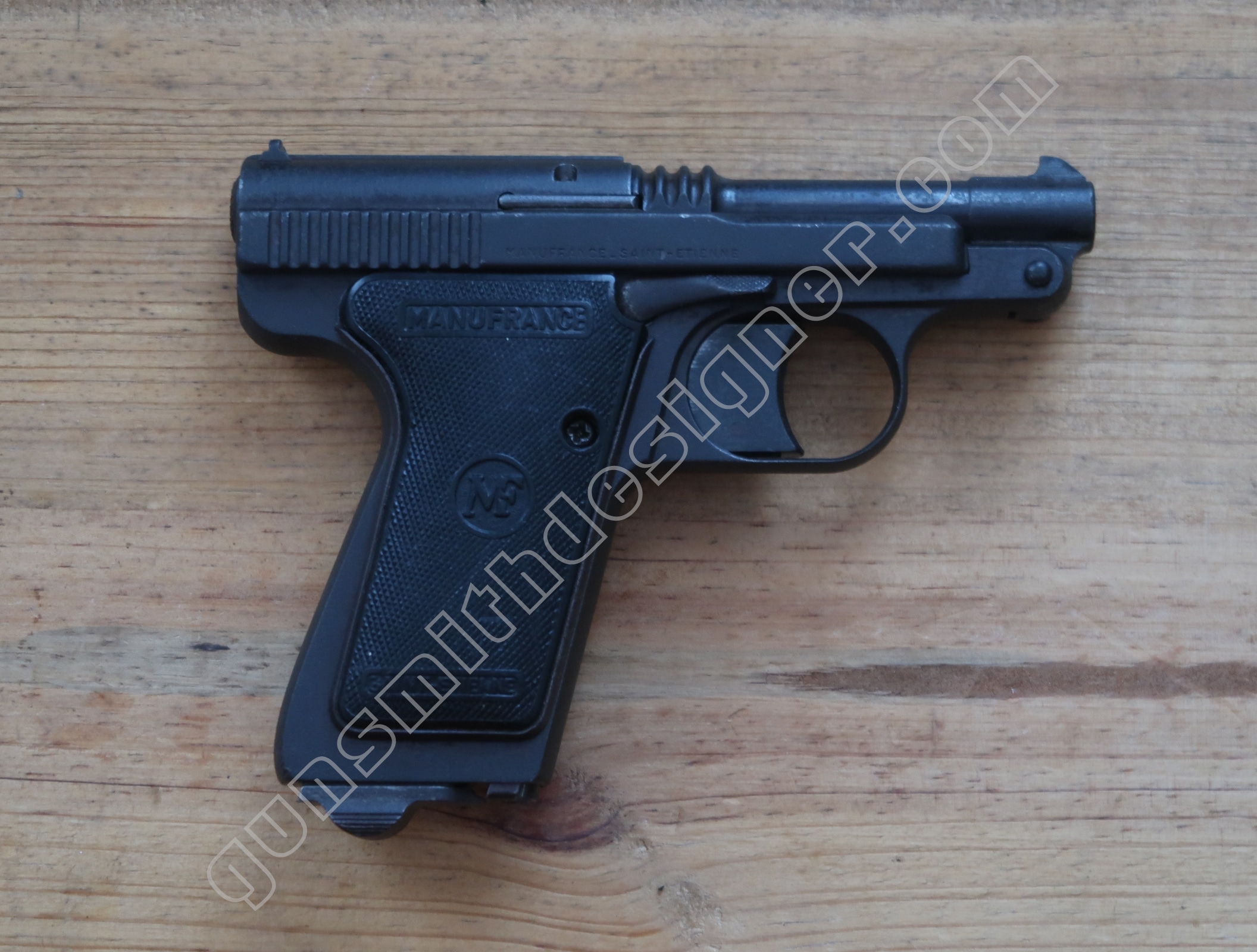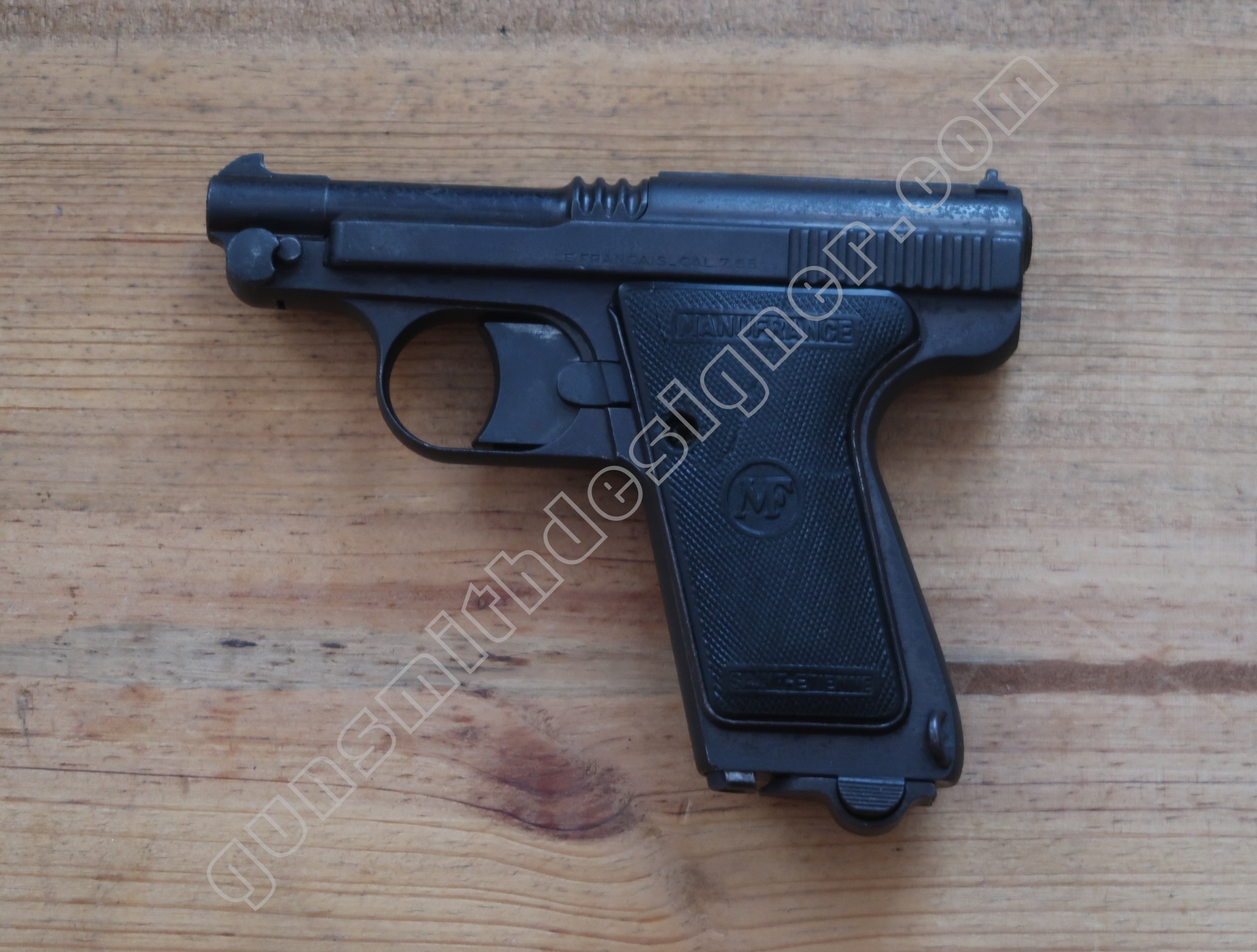 Une fois encore les hasards de la vie m’ont apportés une arme que je souhaitais vous présenter depuis un certain temps. Celle-ci a une place particulière pour moi pour au moins deux raisons. Primo : je suis un fan de Manufrance, secundo : cette arme est pour moi un des ancêtres du pistolet Glock (pas pour son système de verrouillage car il n’y en a pas mais pour son mécanisme de détente et de percussion). Nous nous réunirons, aujourd’hui, autour du pistolet Manufrance Le Français en 7,65 mm.