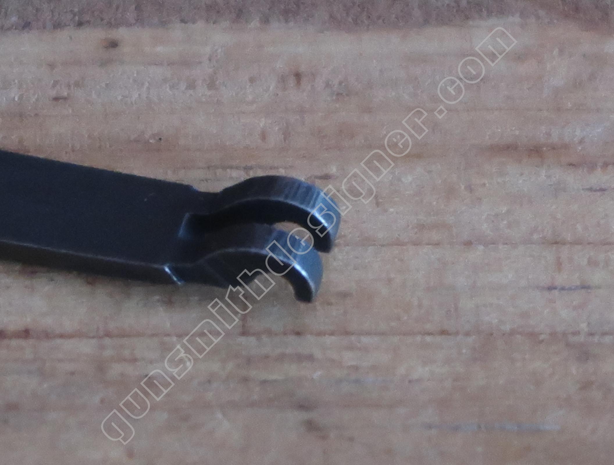 Une surface est particulièrement importante. On la voit sur une des photos ci-dessous, c’est la seule surface qui ne possède pas de bronzage. C’est elle qui est au contacte du marteau et qui participe au verrouillage.