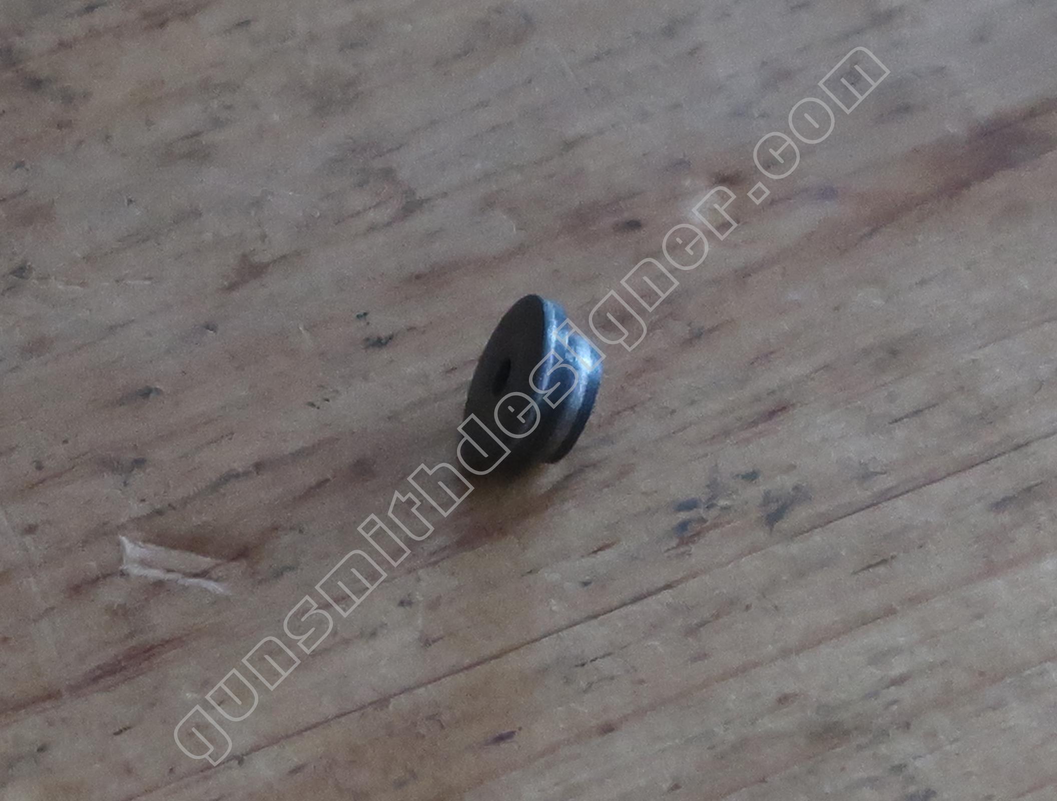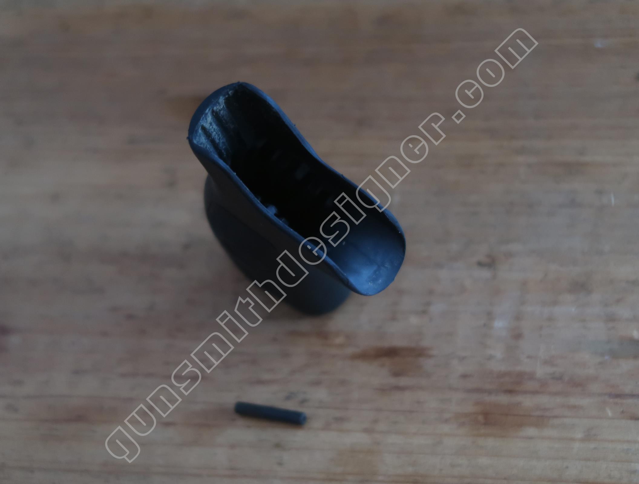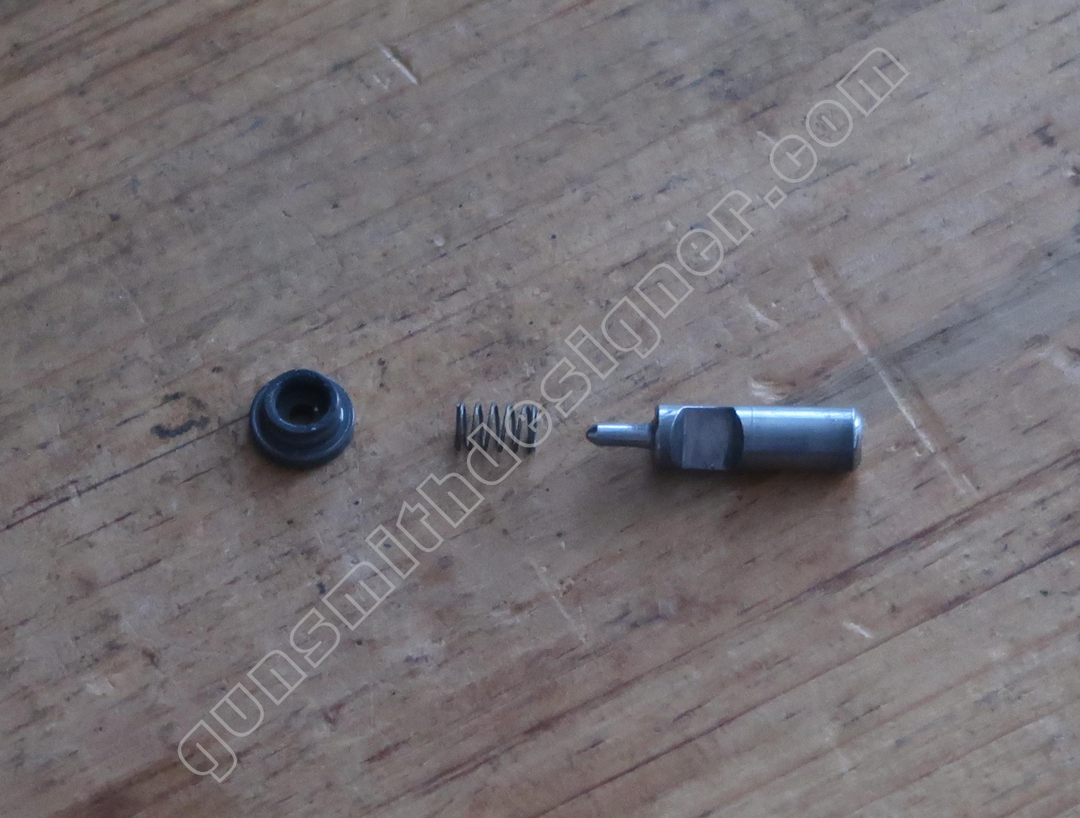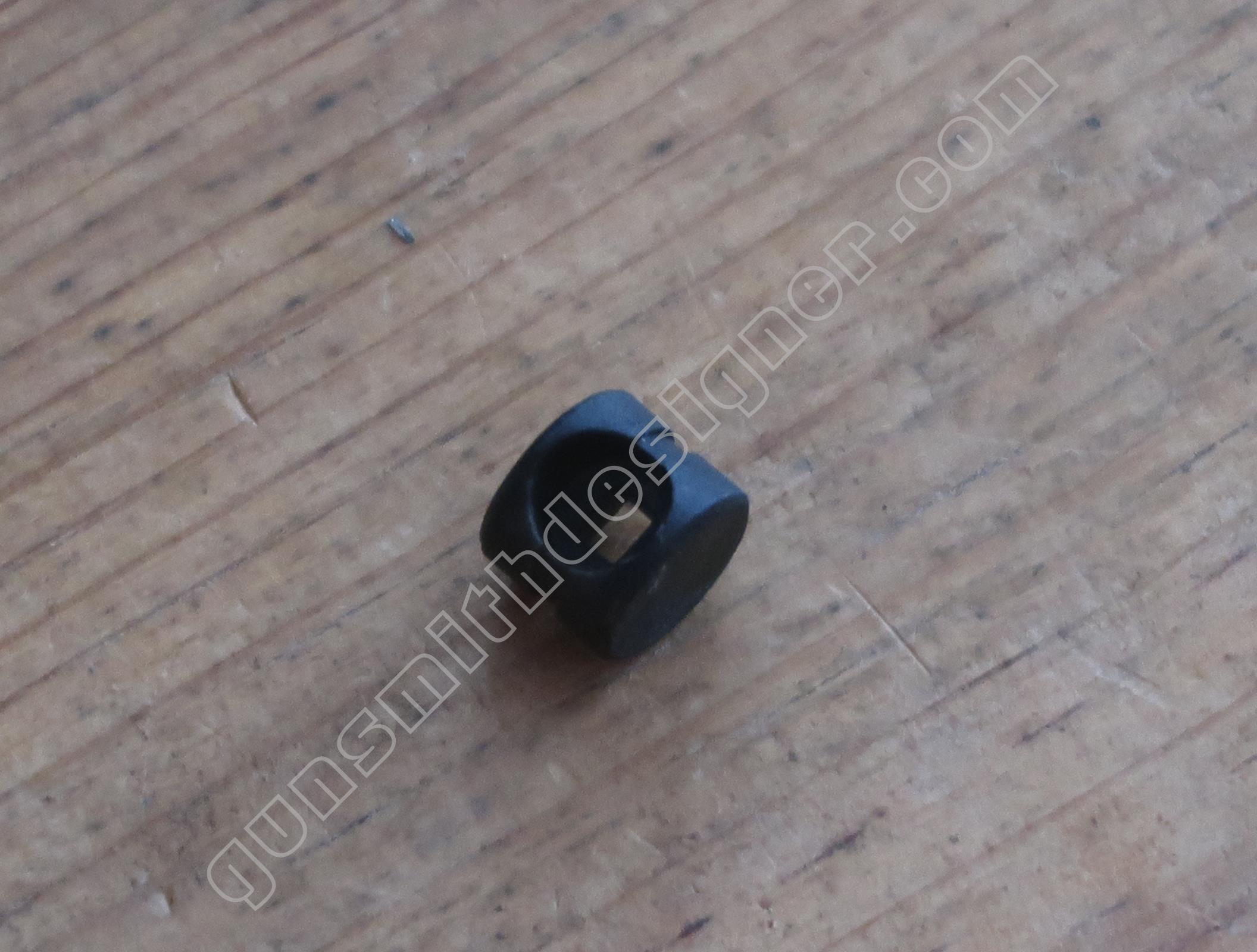 La butée du ressort de marteau est un petit cylindre en plastique moulé de 9,6 mm de diamètre. Il prend place dans le bas de la poignée.