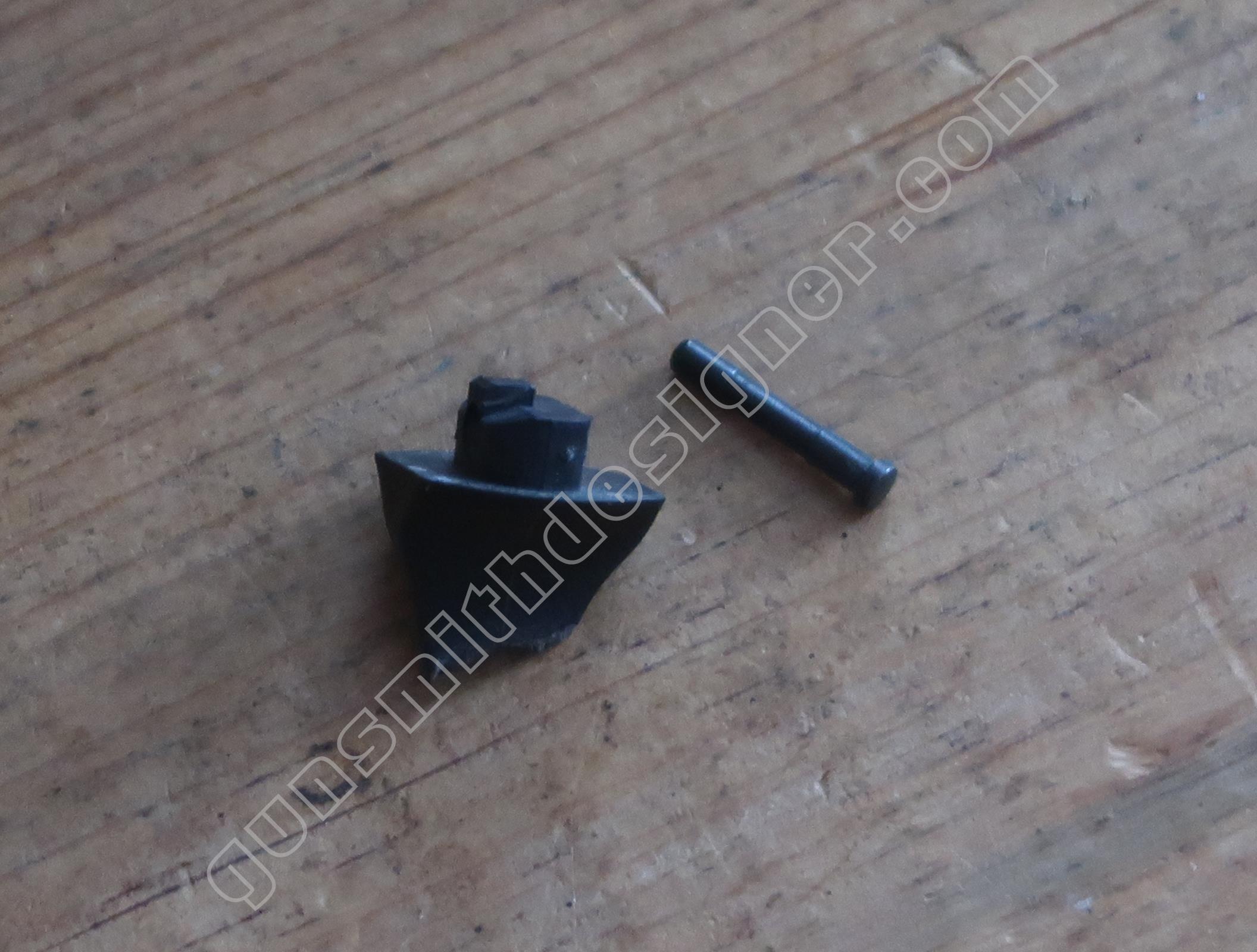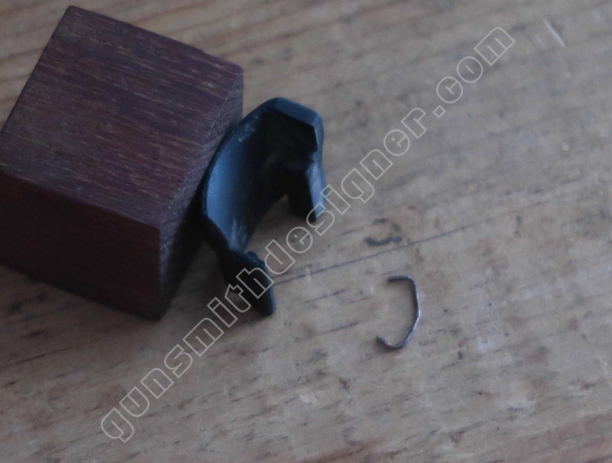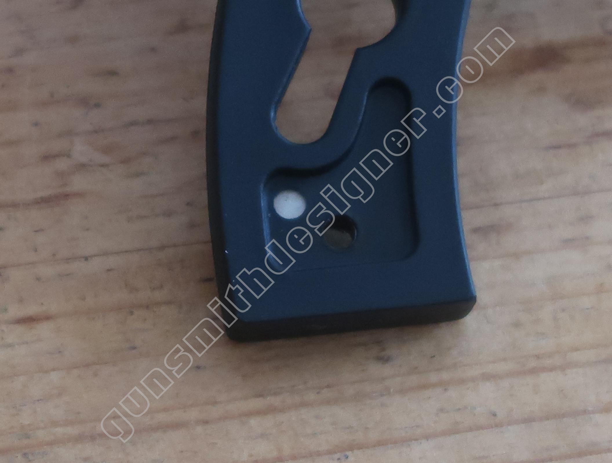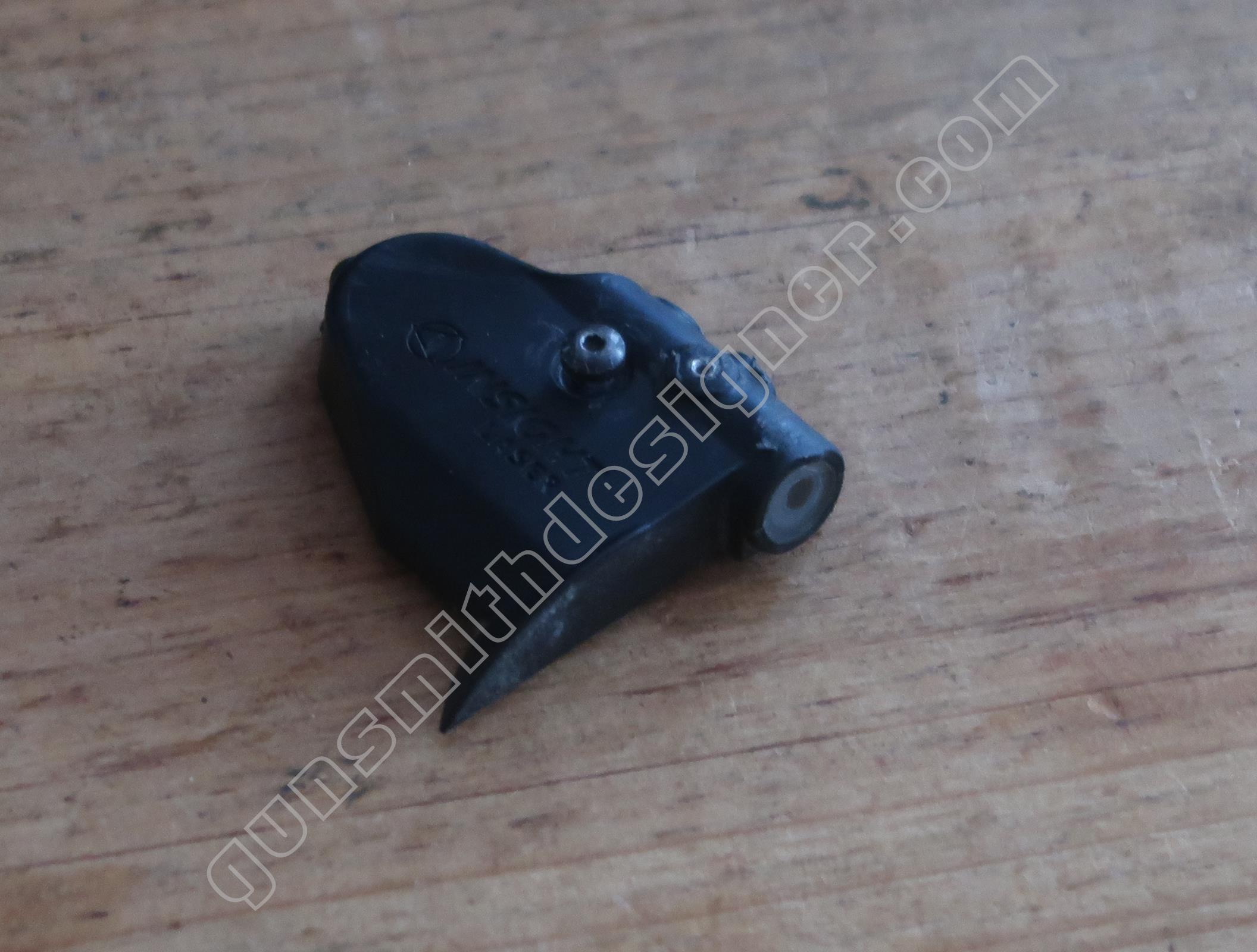 La butée du ressort de marteau est un petit cylindre en plastique moulé de 9,6 mm de diamètre. Il prend place dans le bas de la poignée.