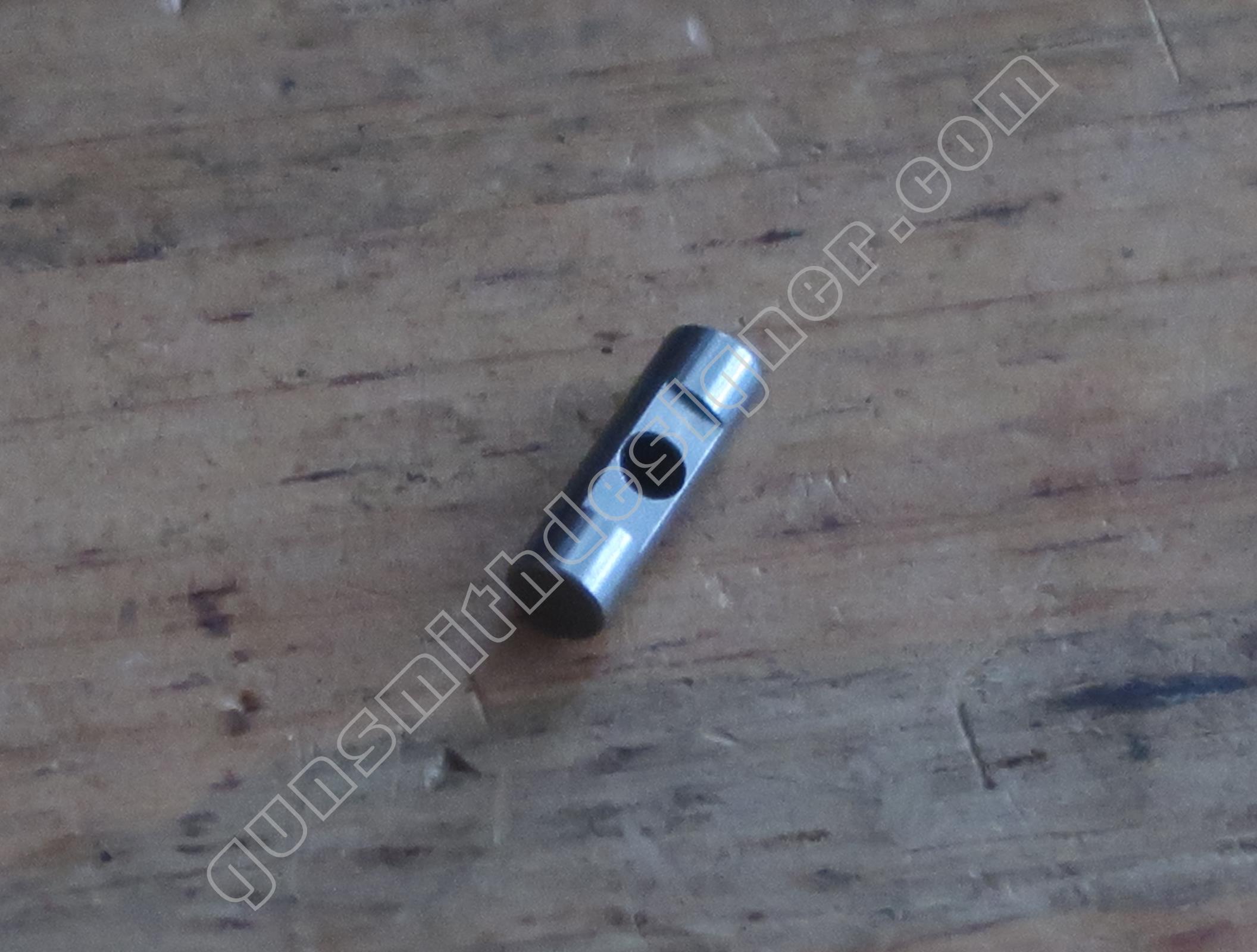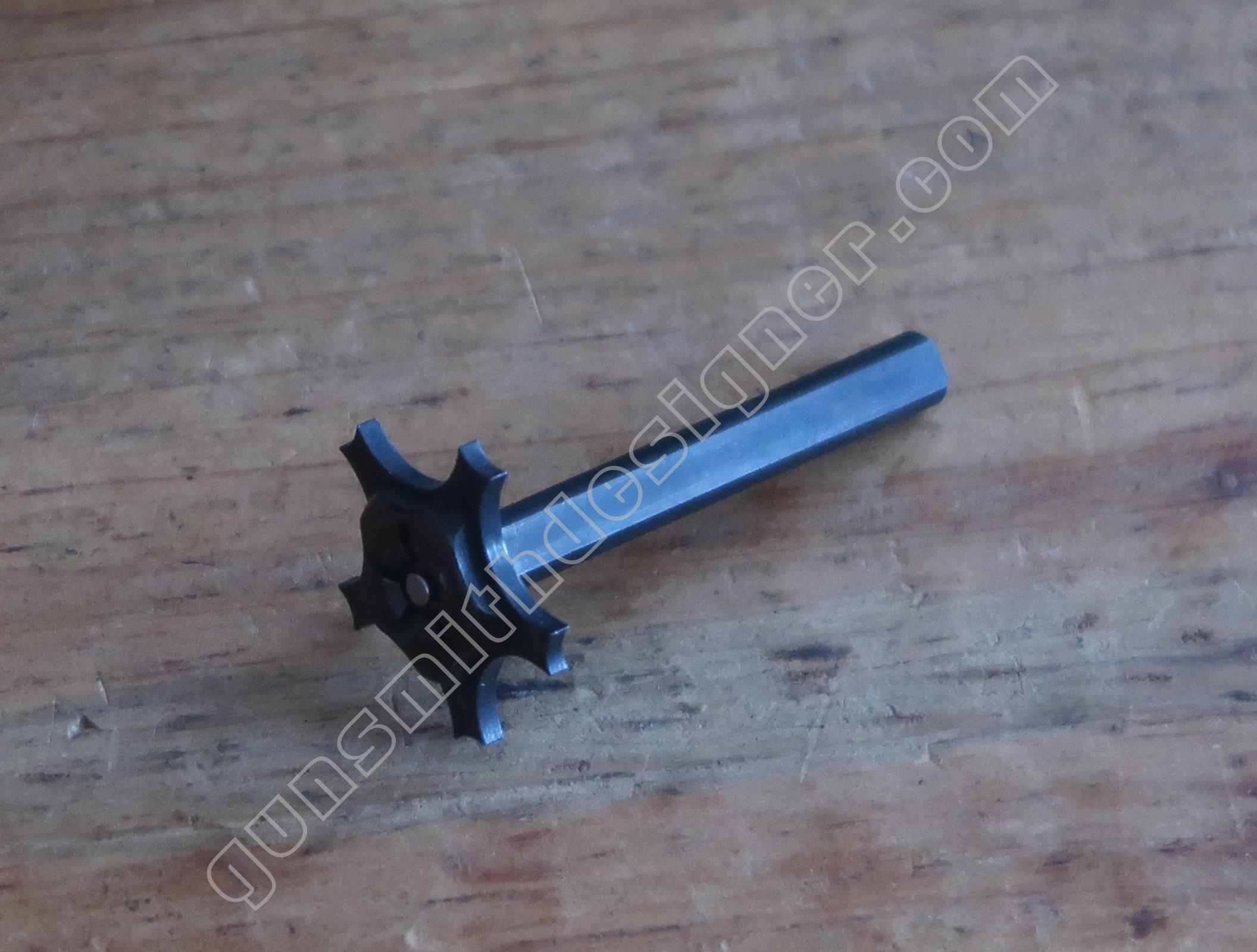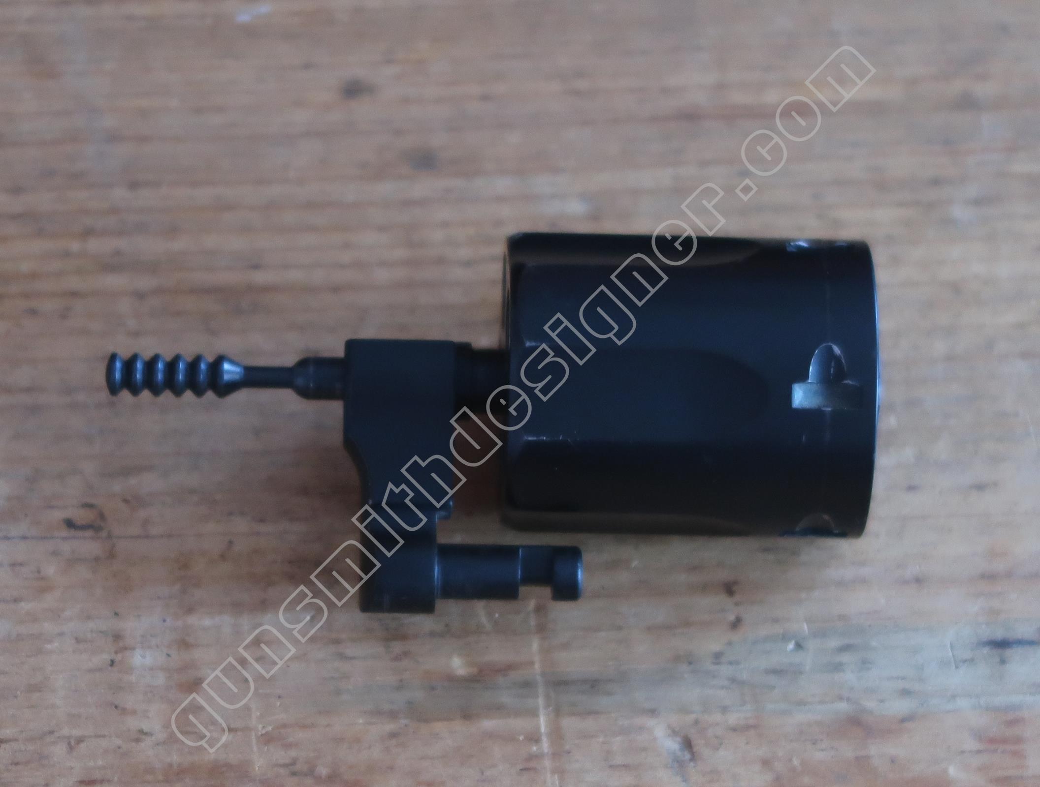 Le verrou/moteur de la rotation du barillet est un cylindre en acier obtenu par micro-fusion. C’est un élément peu courant sur un revolver. D’ordinaire, le verrou n’assure pas la rotation du barillet.