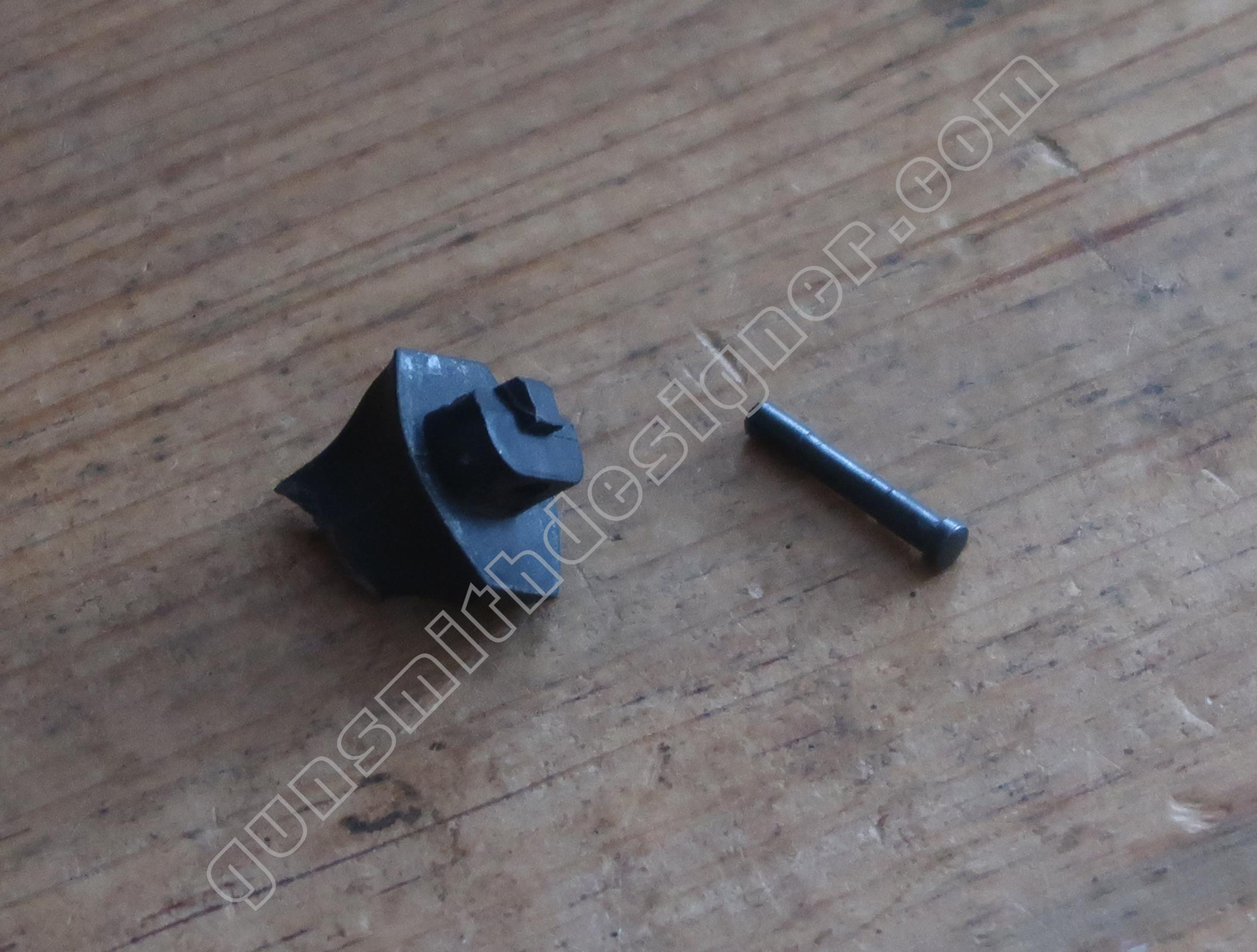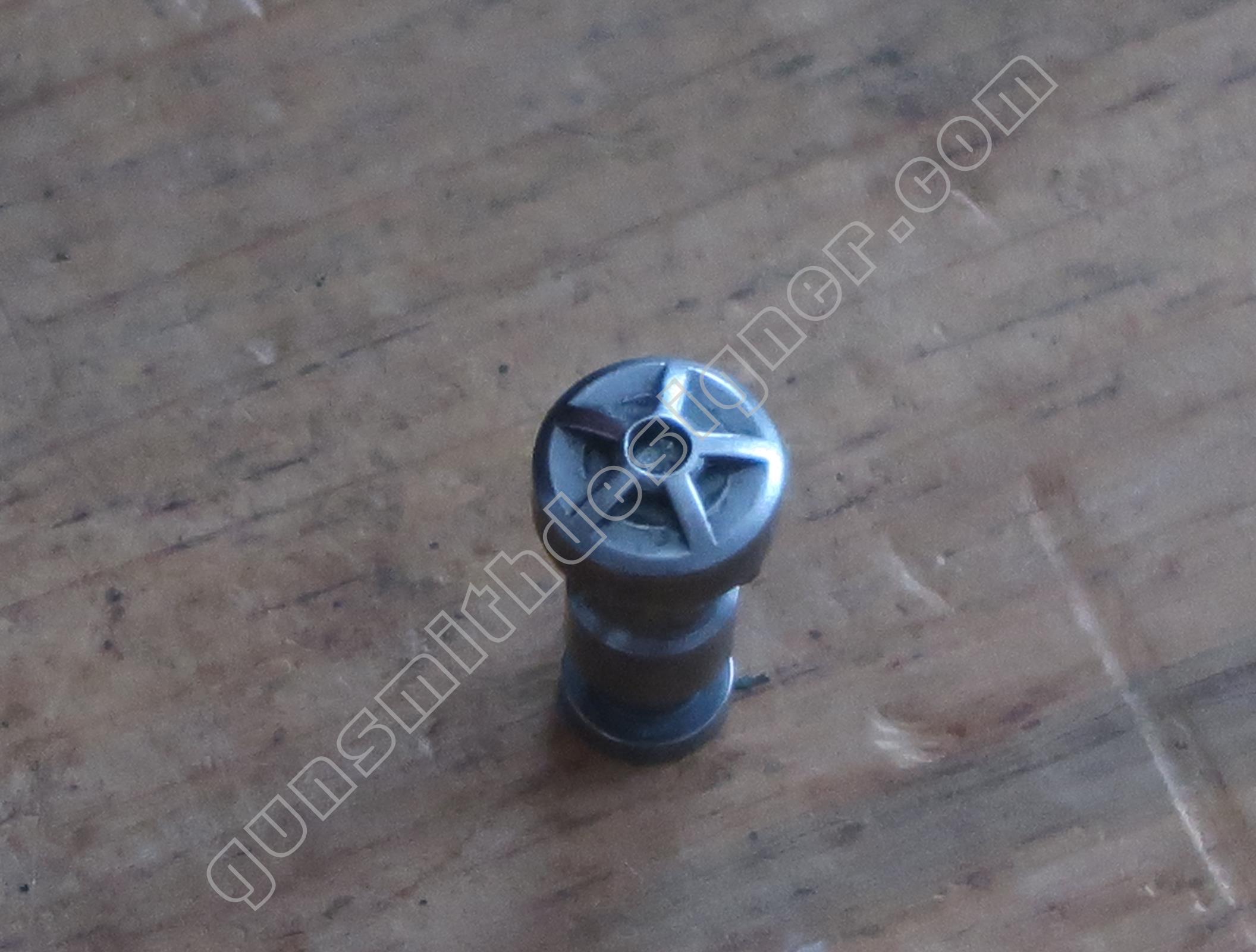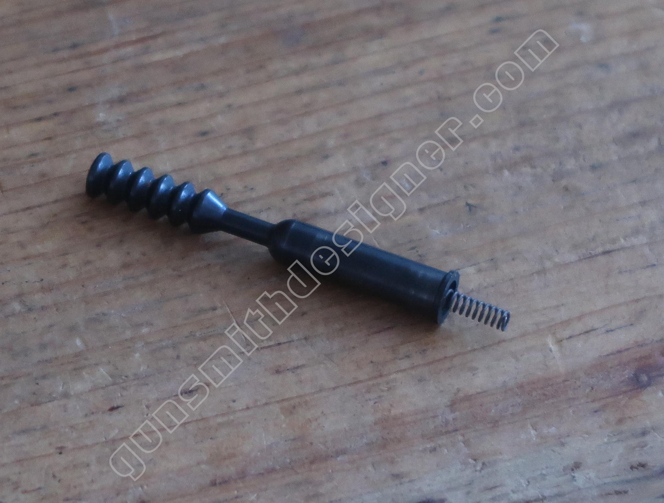 Le bouchon du percuteur est monté à la presse (ou à l’aide d’un gros chasse-goupille) sur la carcasse. On peut l’extraire en le poussant depuis l’intérieur du logement du percuteur.