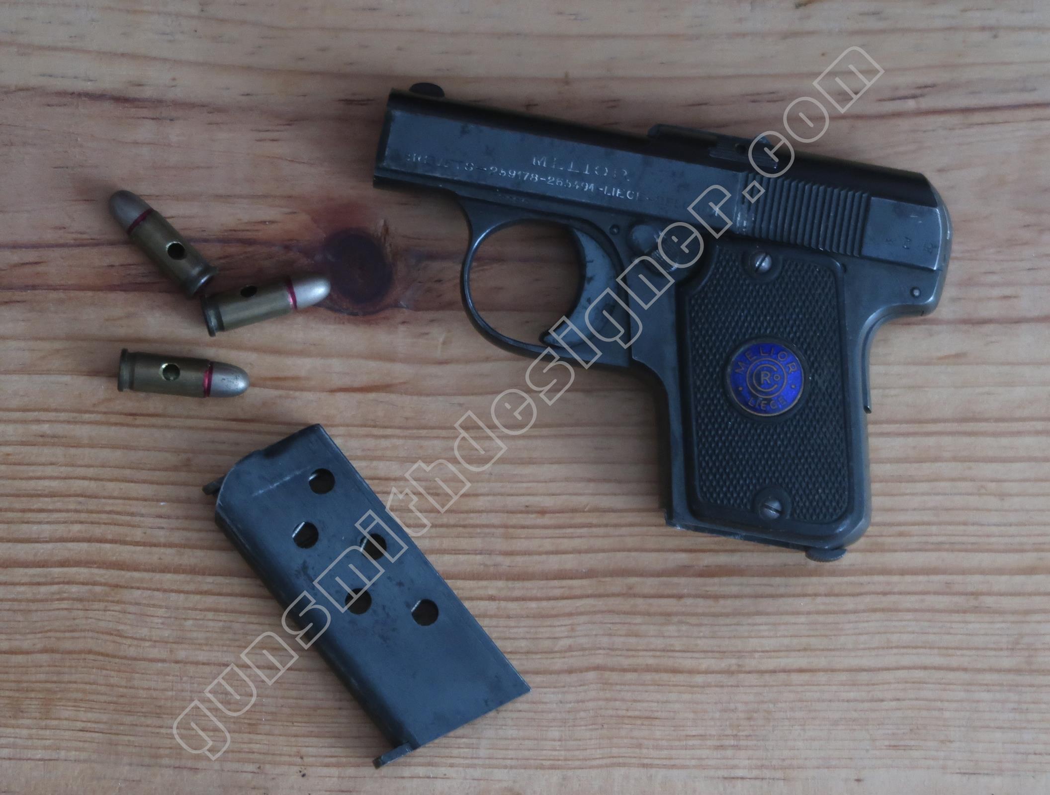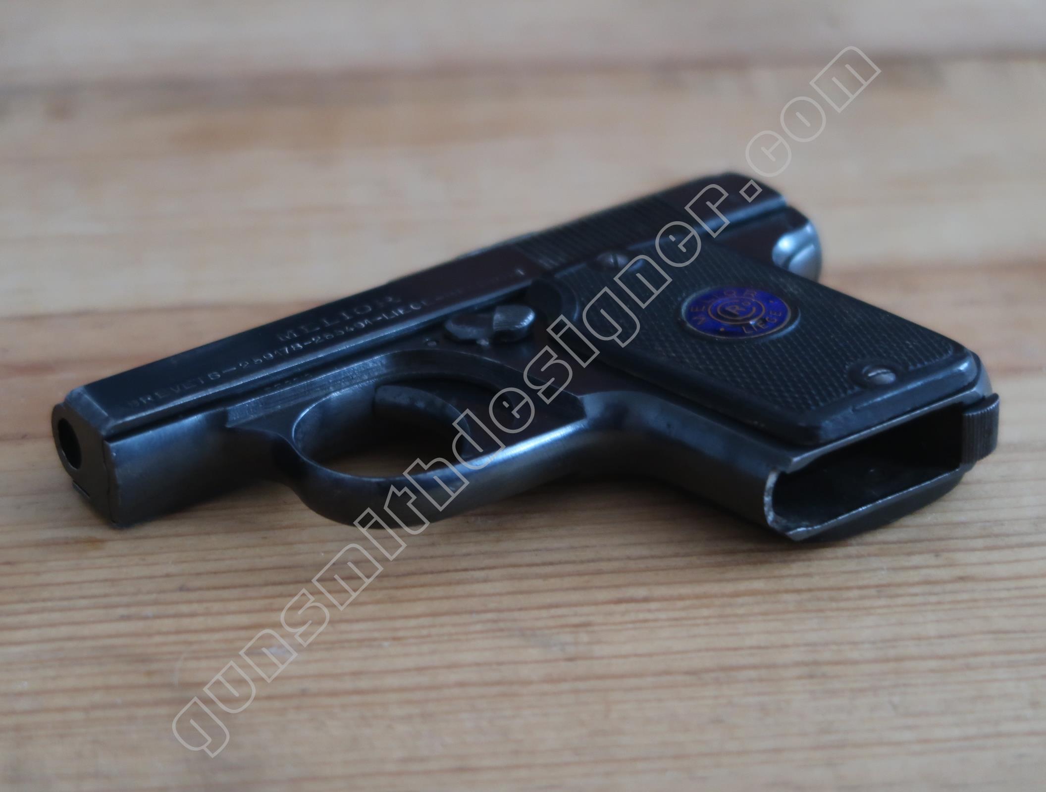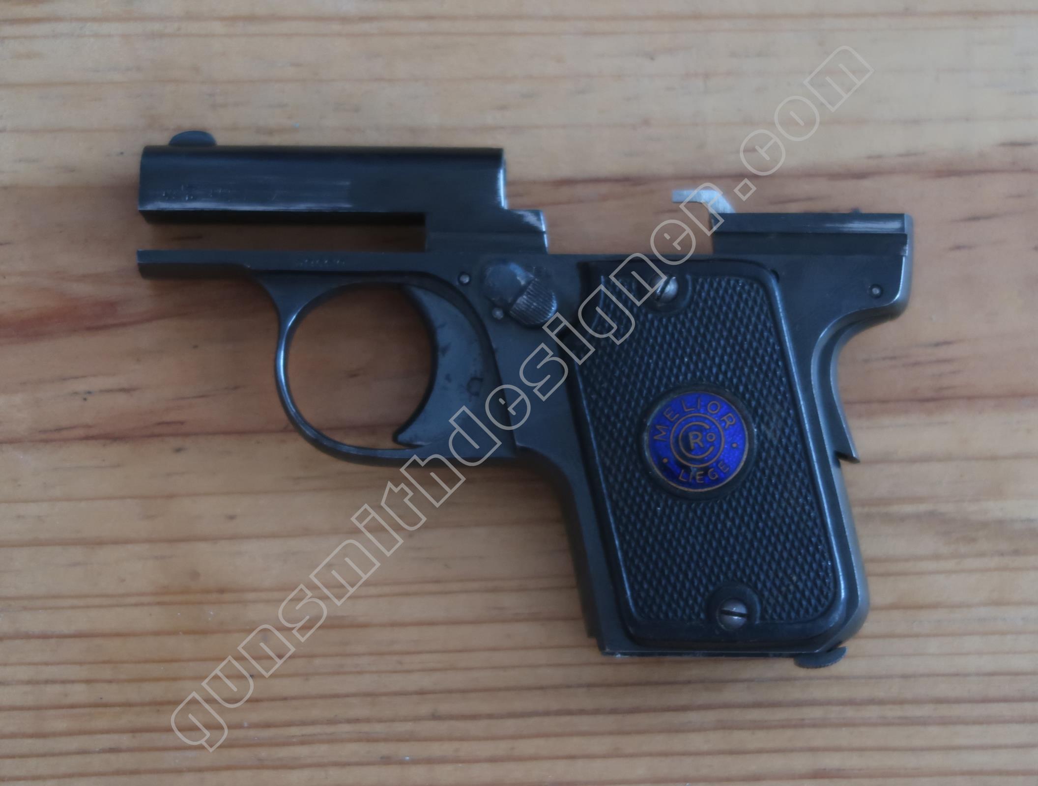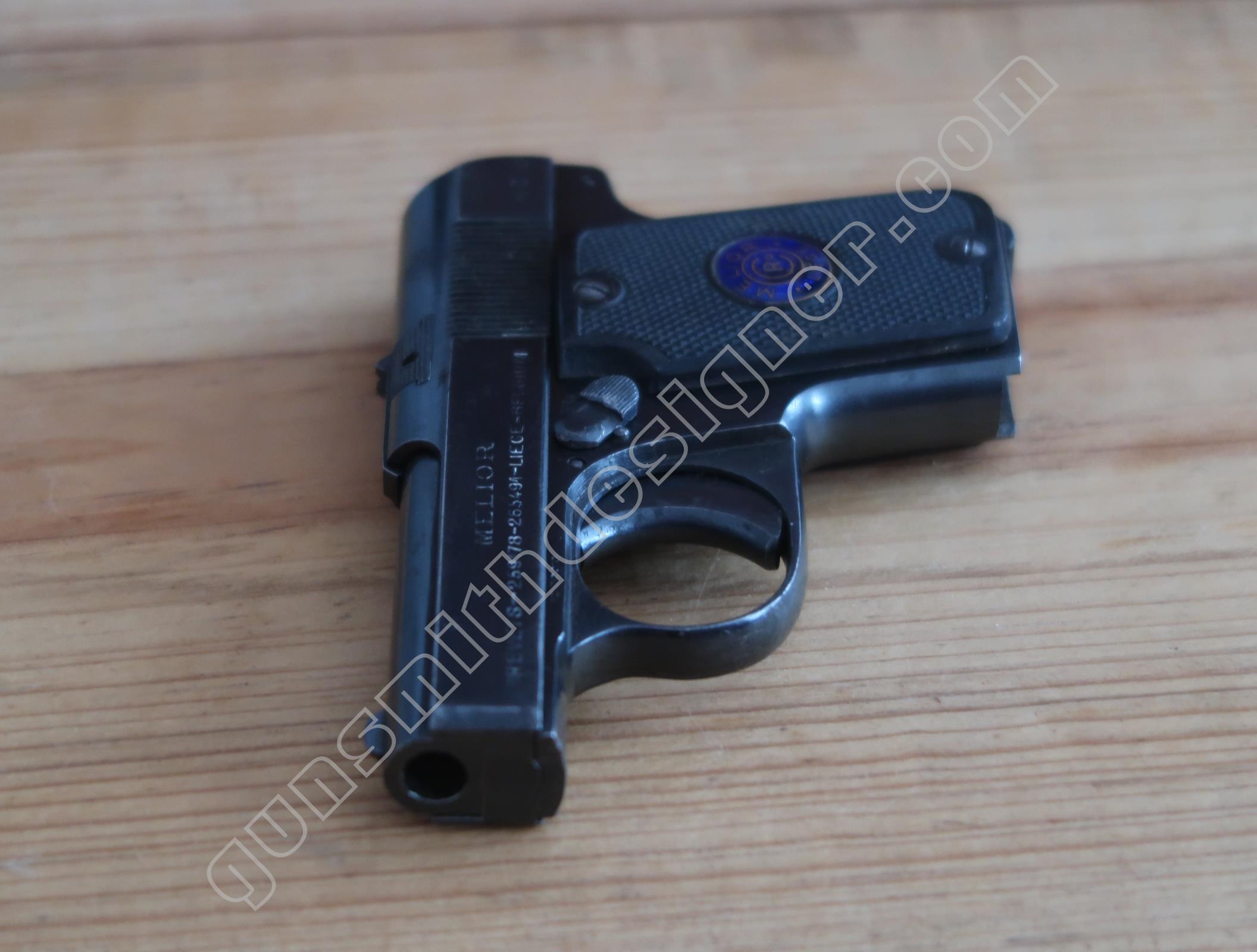 Depuis longtemps, je voulais vous présenter un pistolet automatique à la conception particulière. Il s’agit du pistolet Mélior. C’est une version en 6,35 mm qui sera détaillée ici.