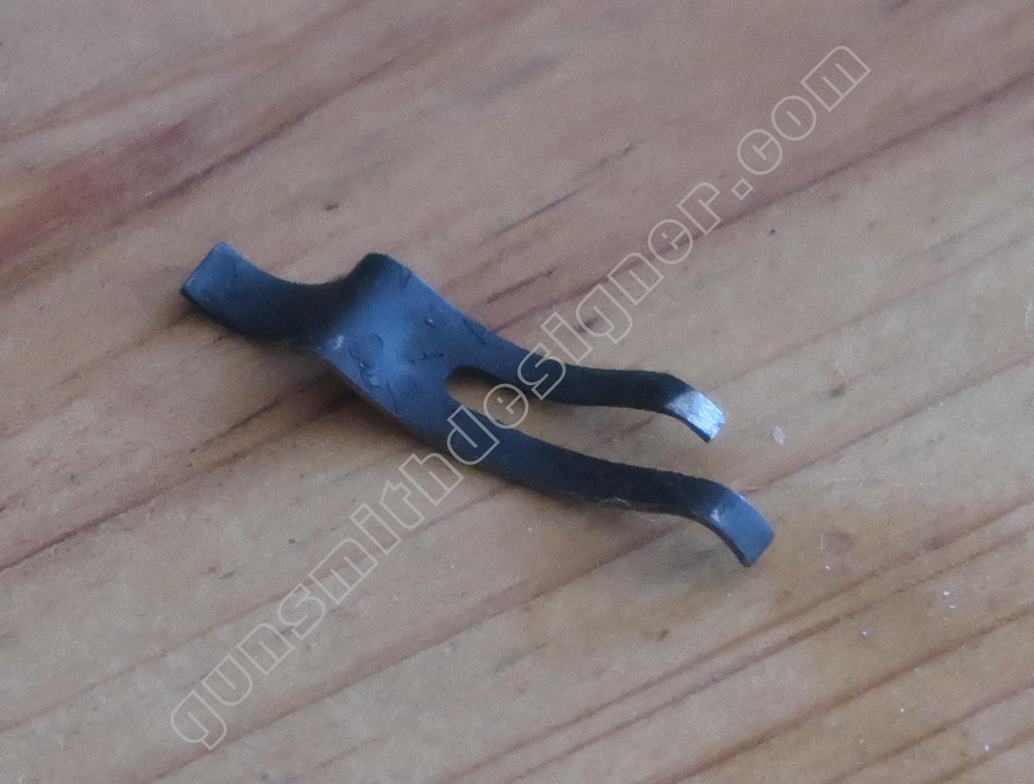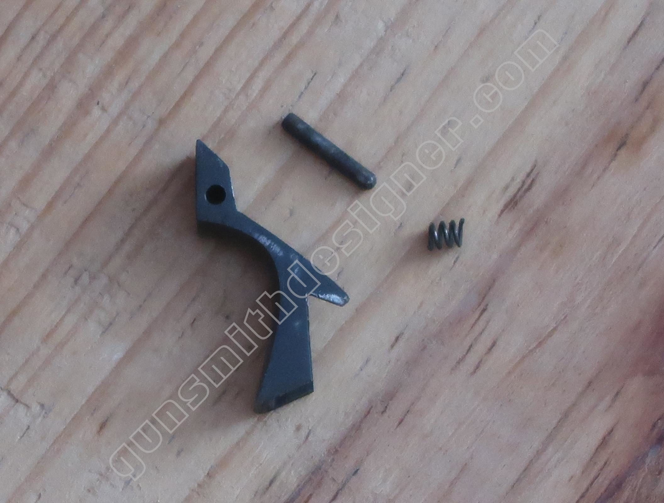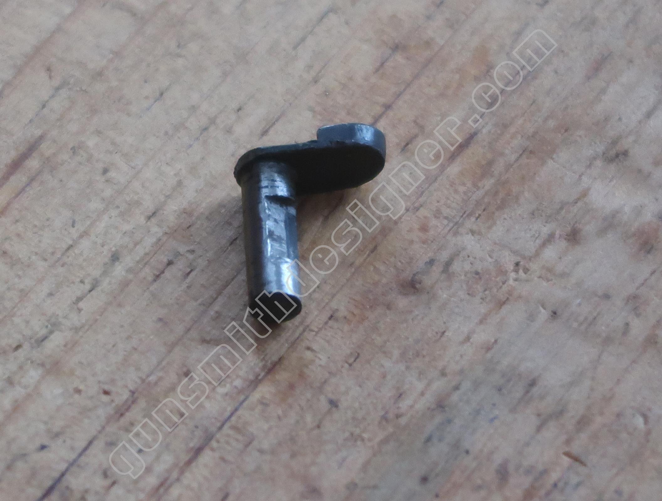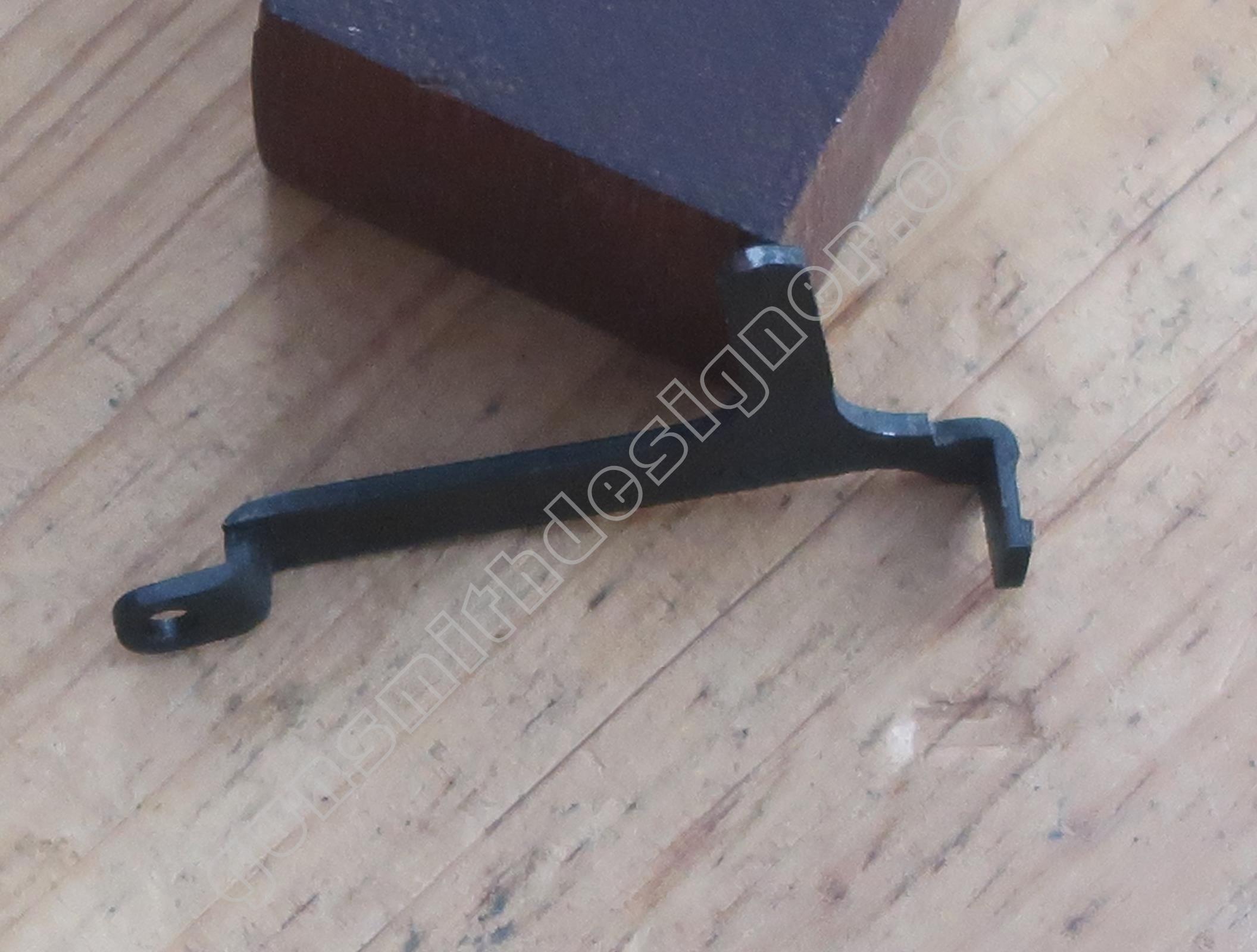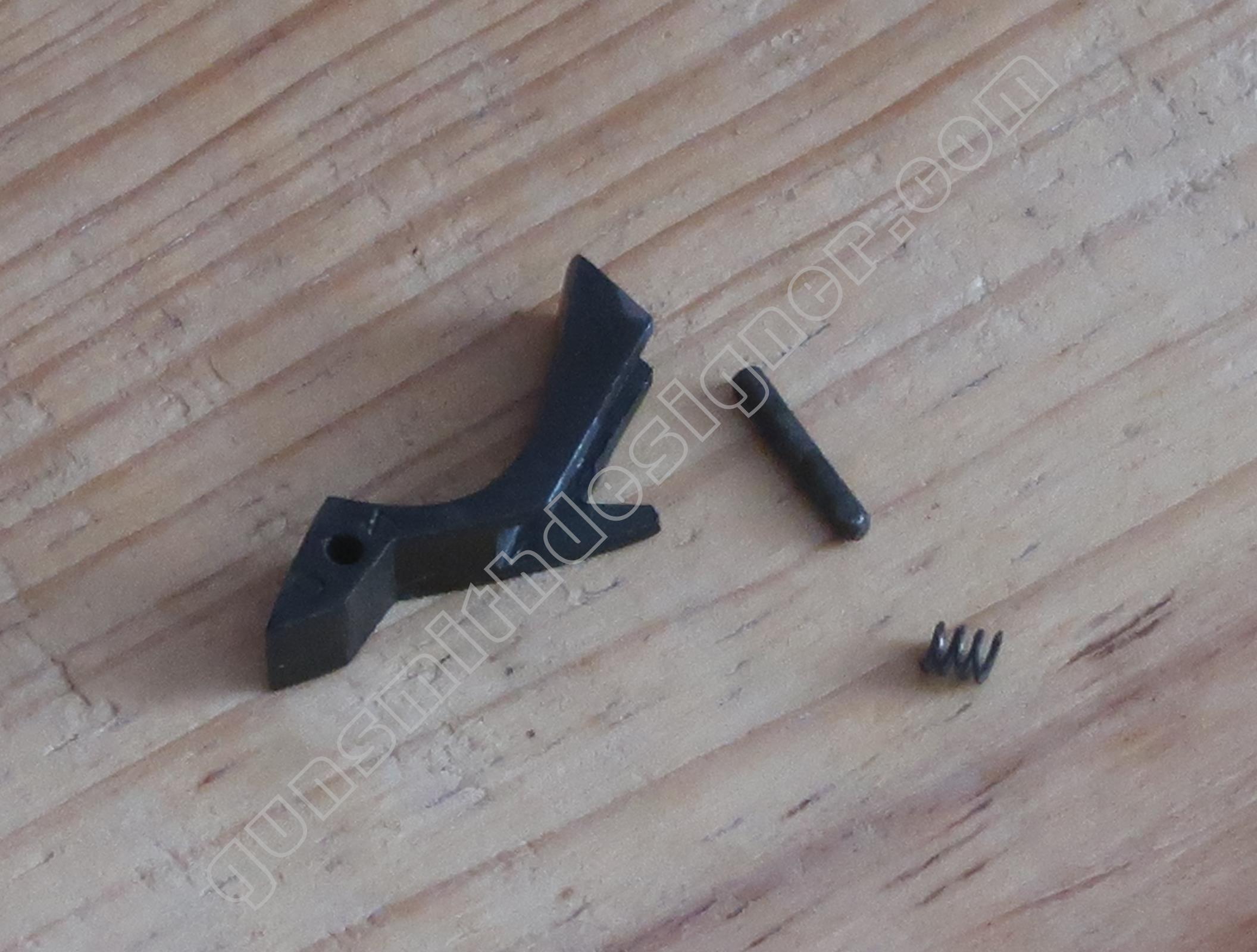 La pédale de sureté est en acier. Elle pivote autour d’un axe de 1,9 mm en acier. Un petit morceau de ressort la ramène à sa position initiale.