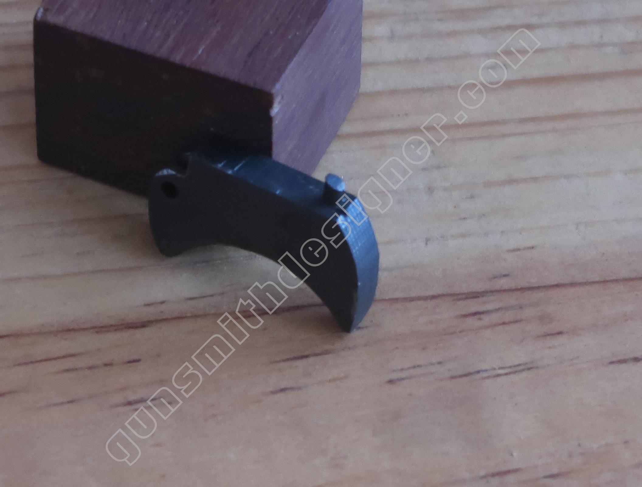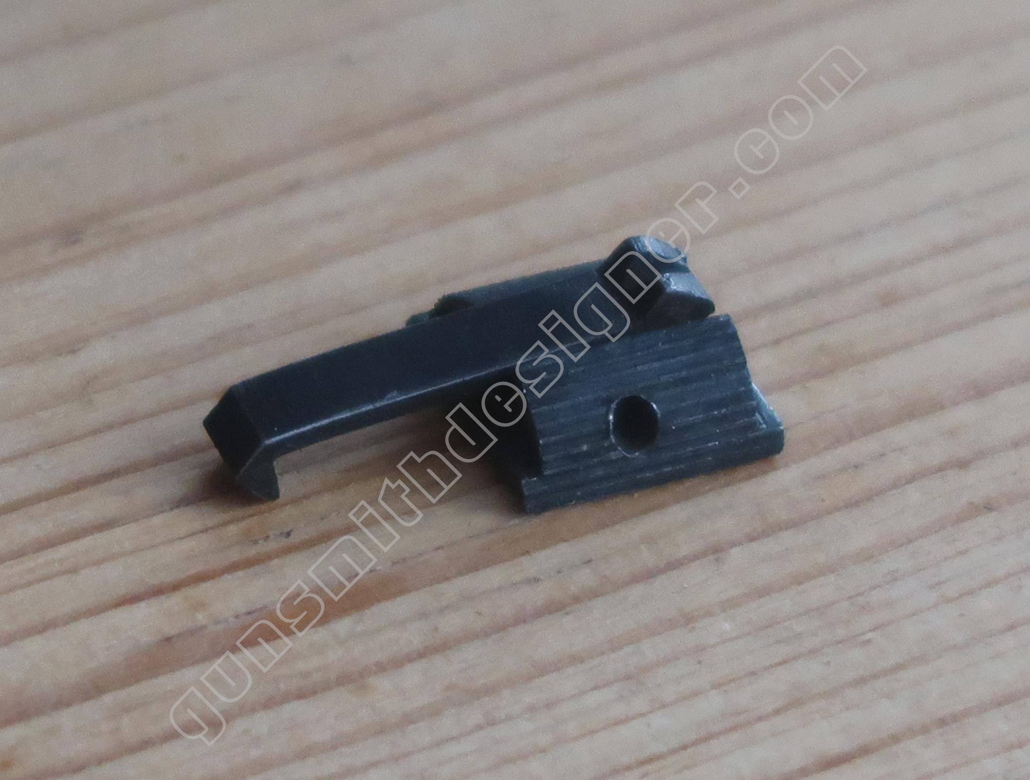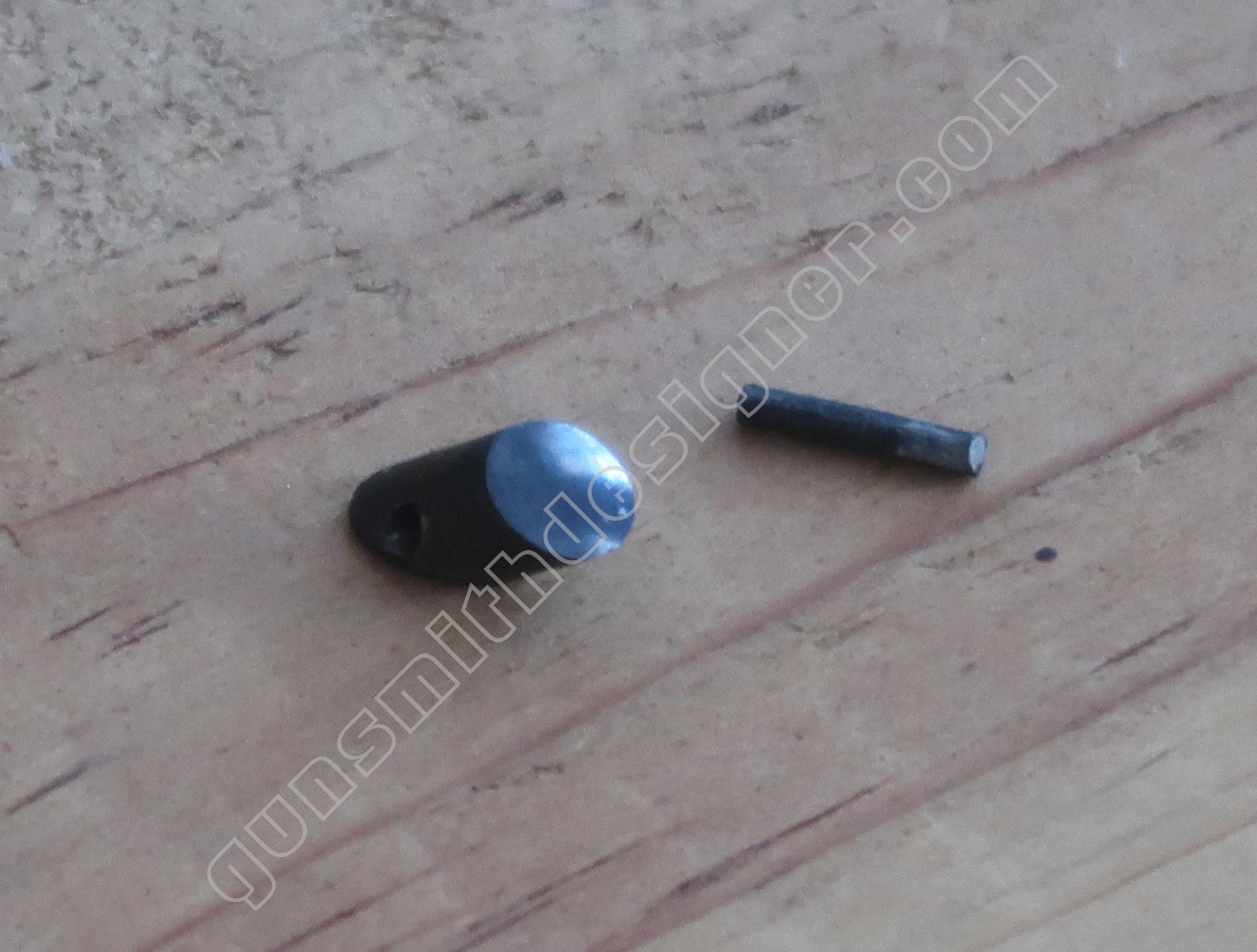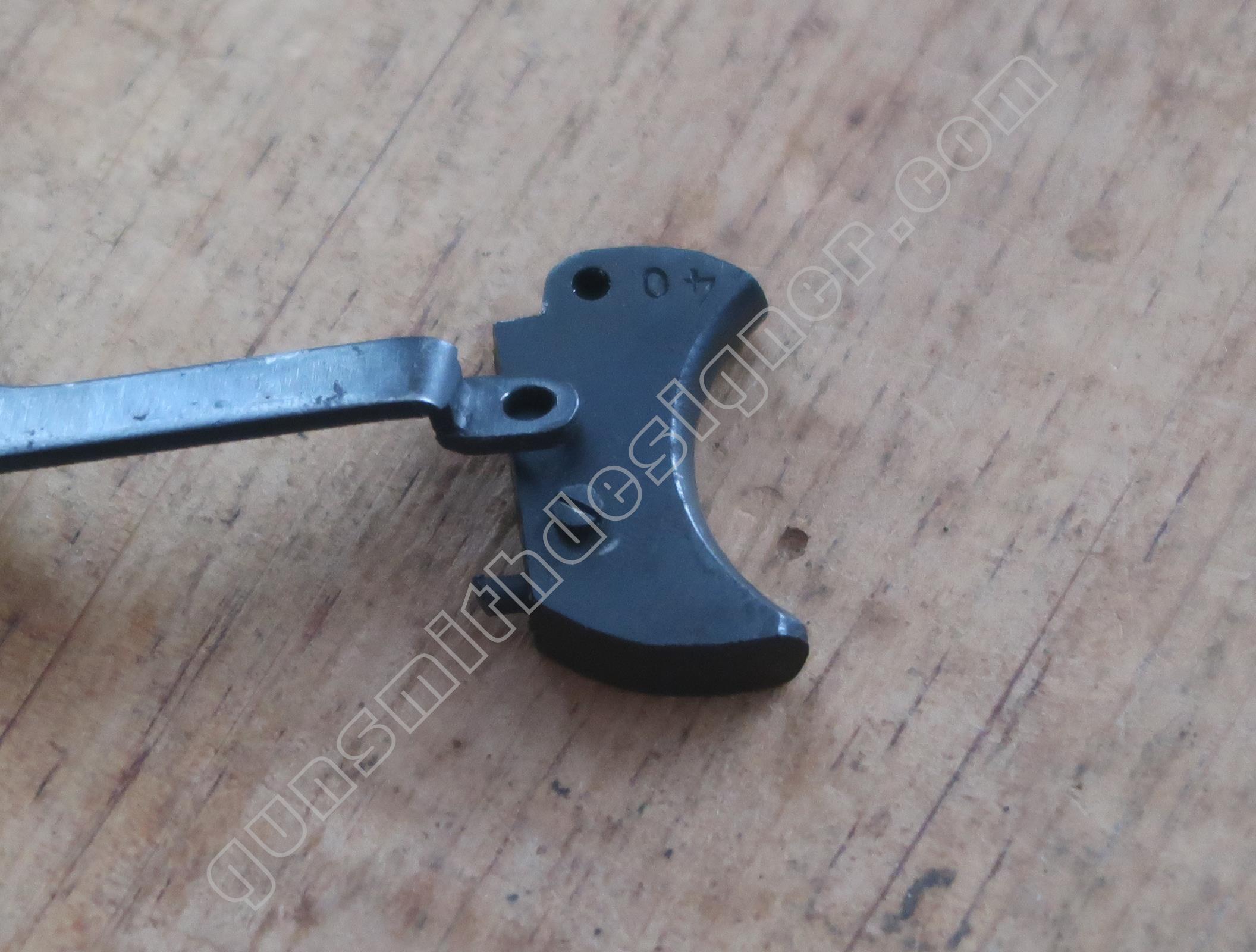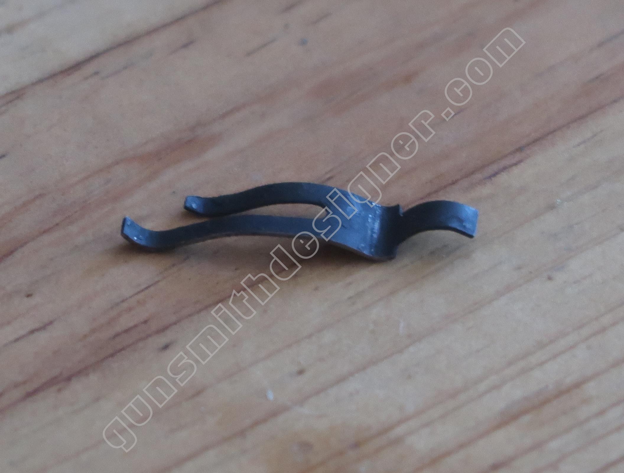 La pédale de sureté est en acier. Elle pivote autour d’un axe de 1,9 mm en acier. Un petit morceau de ressort la ramène à sa position initiale.