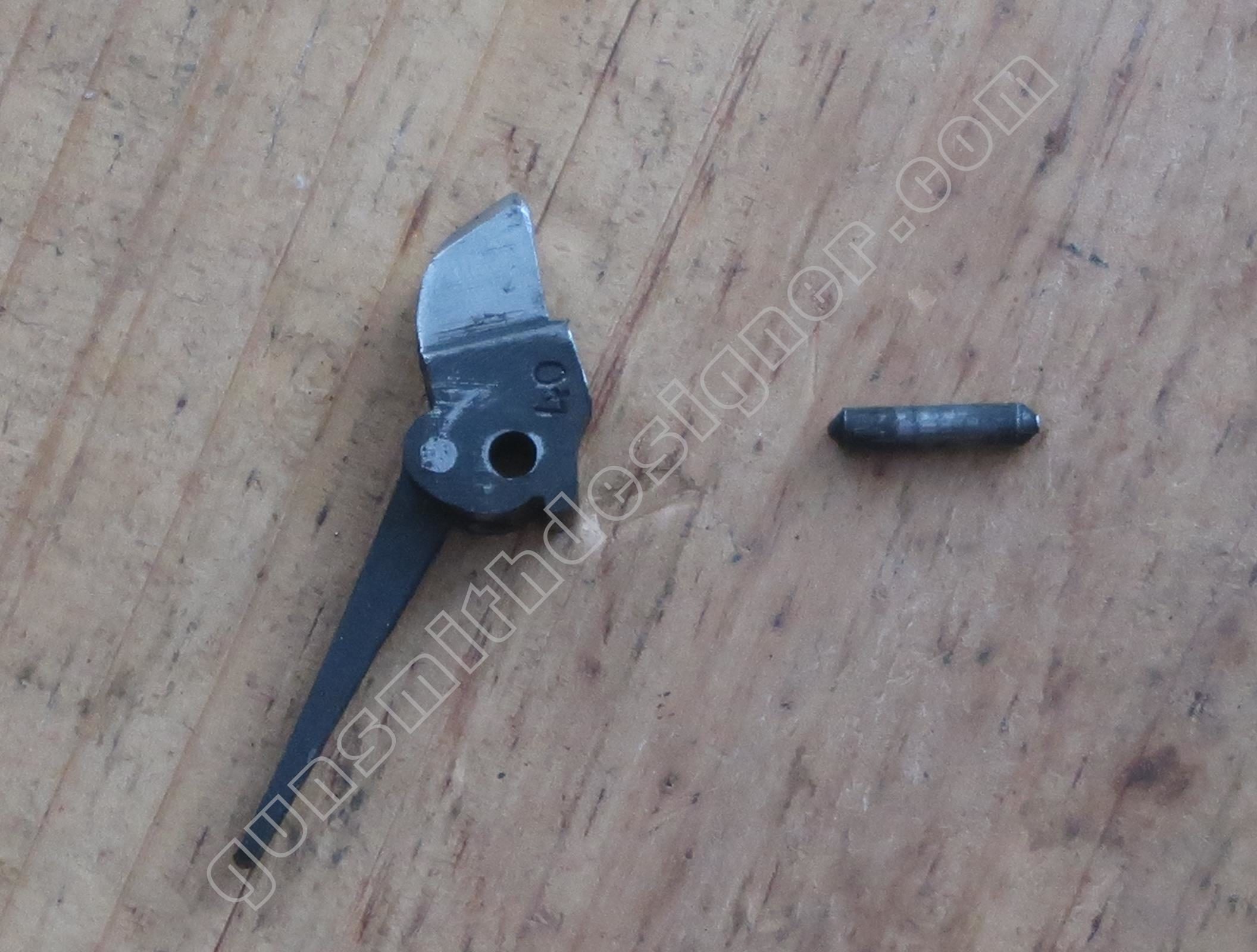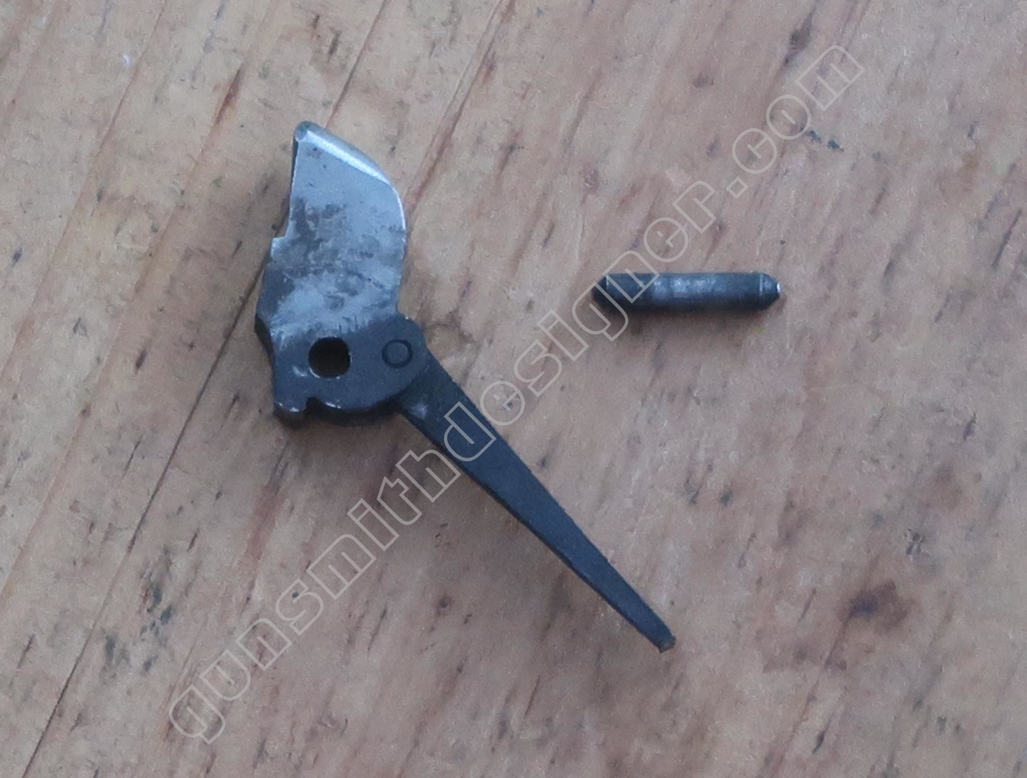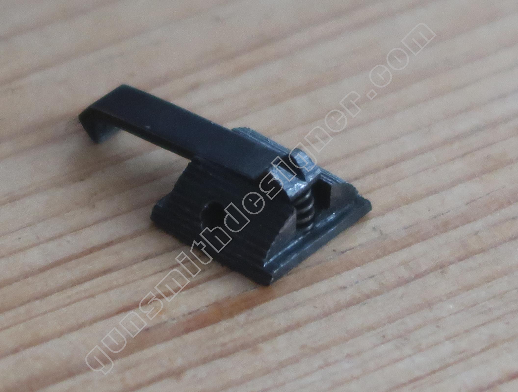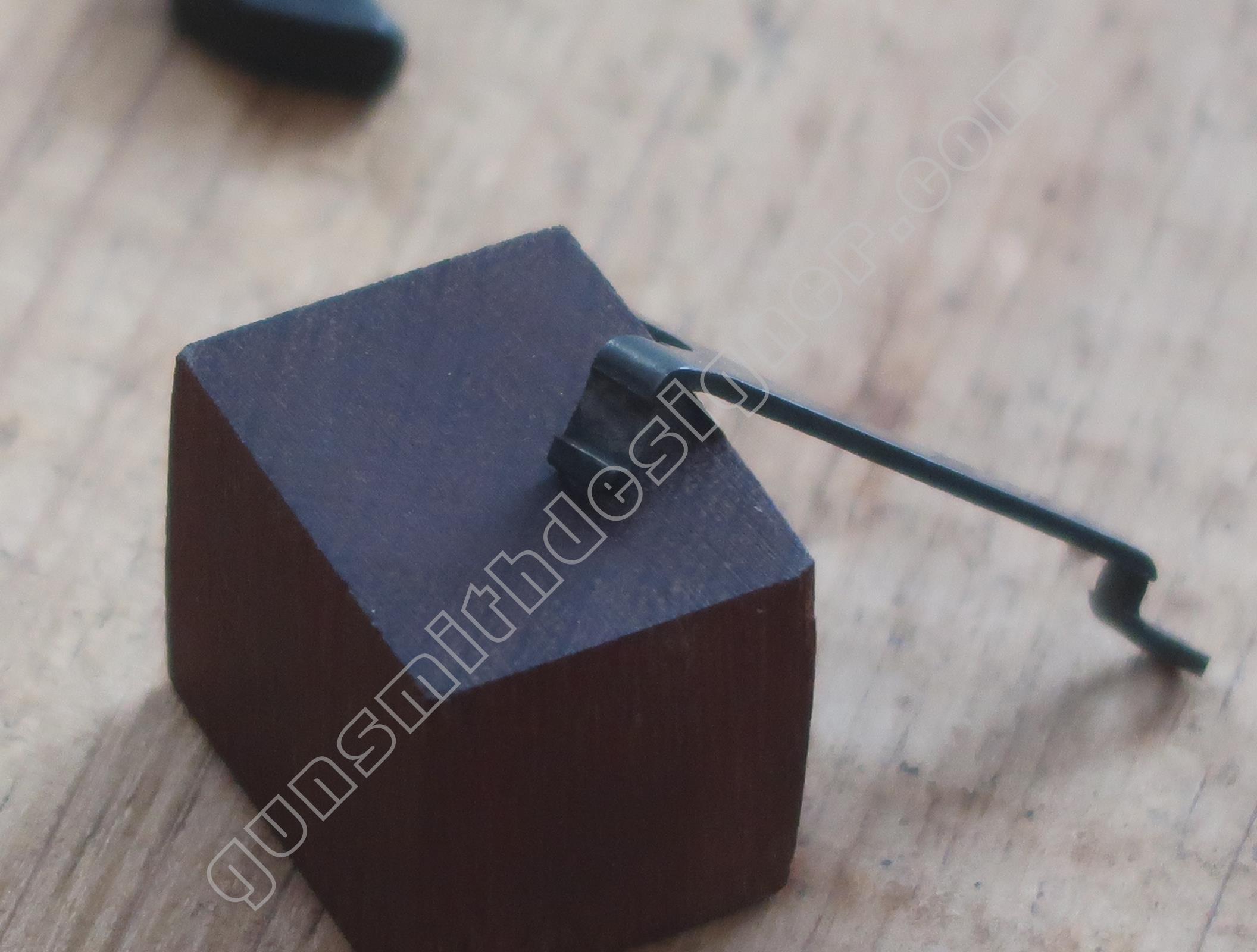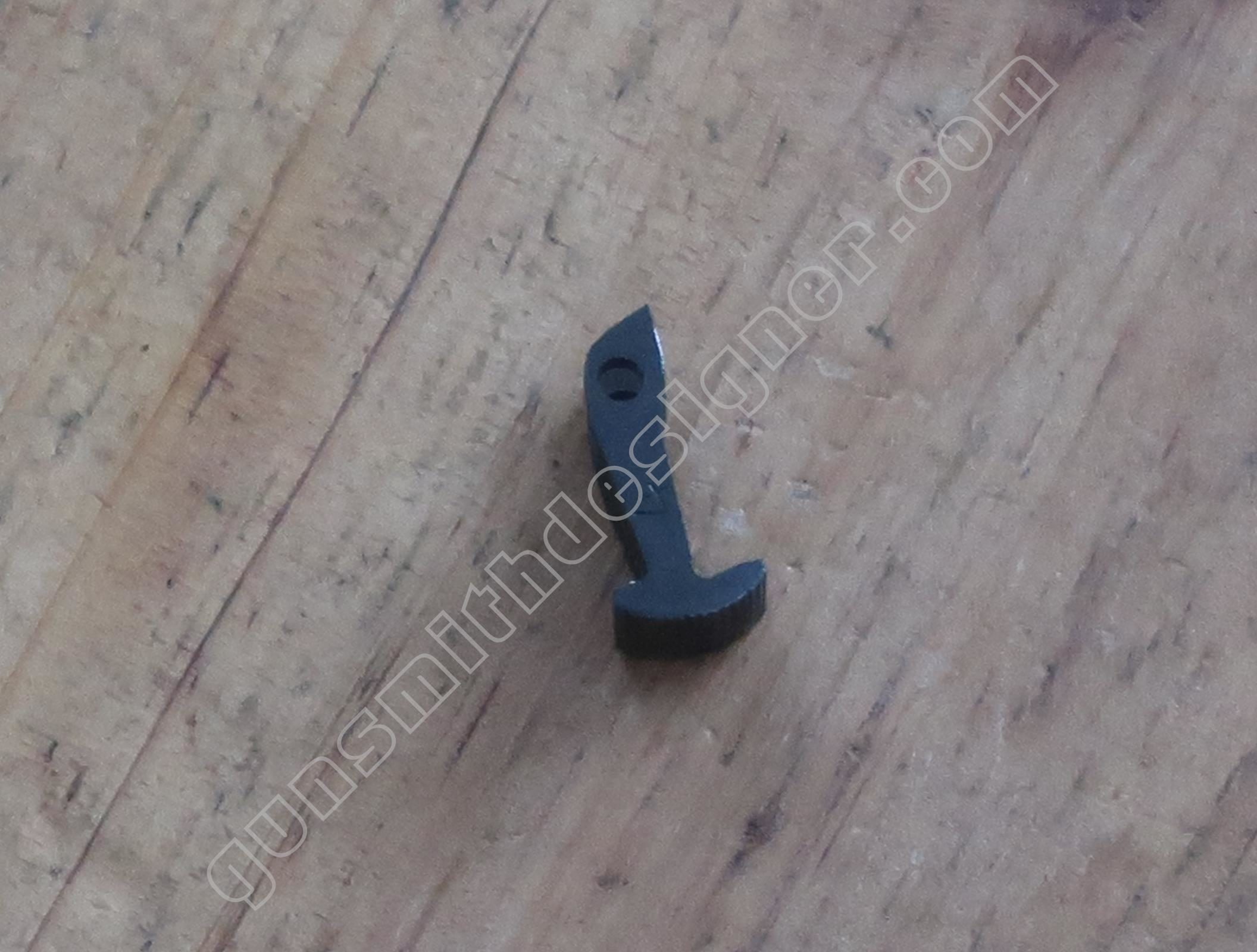 La pédale de sureté est en acier. Elle pivote autour d’un axe de 1,9 mm en acier. Un petit morceau de ressort la ramène à sa position initiale.
