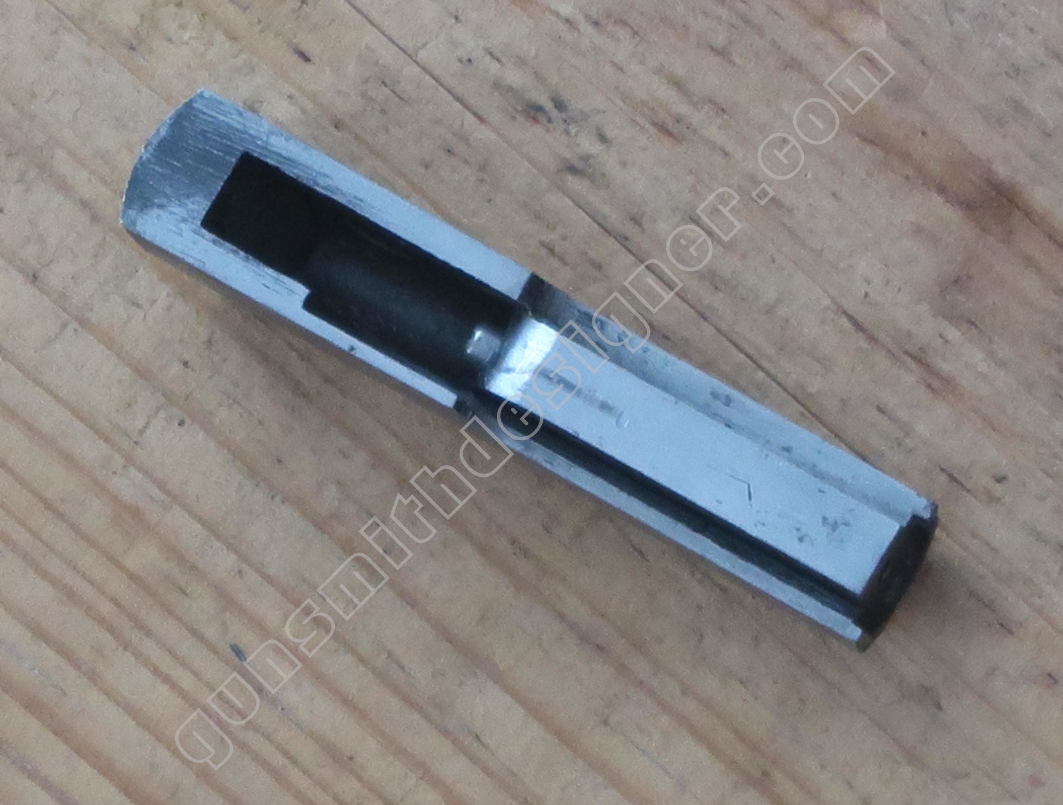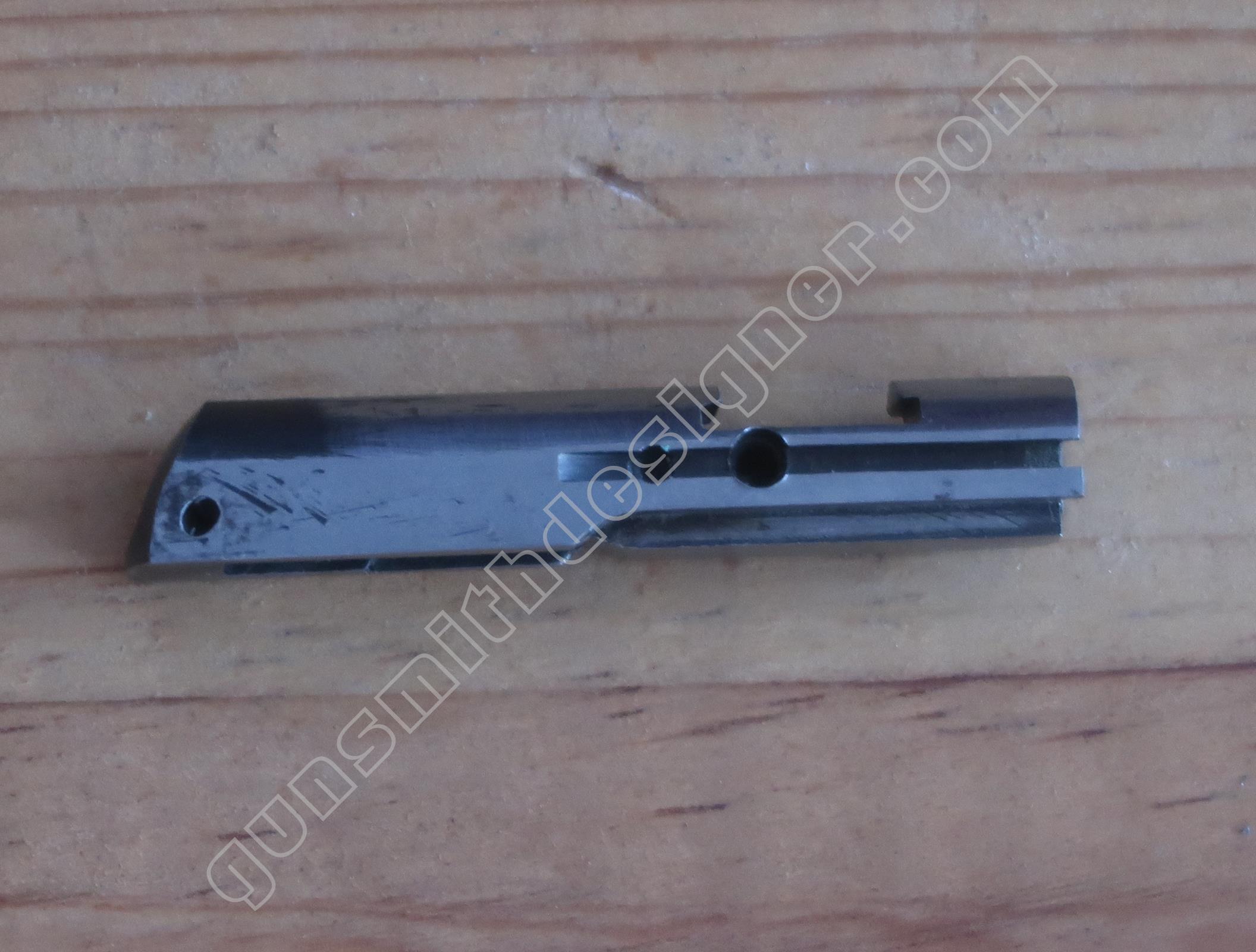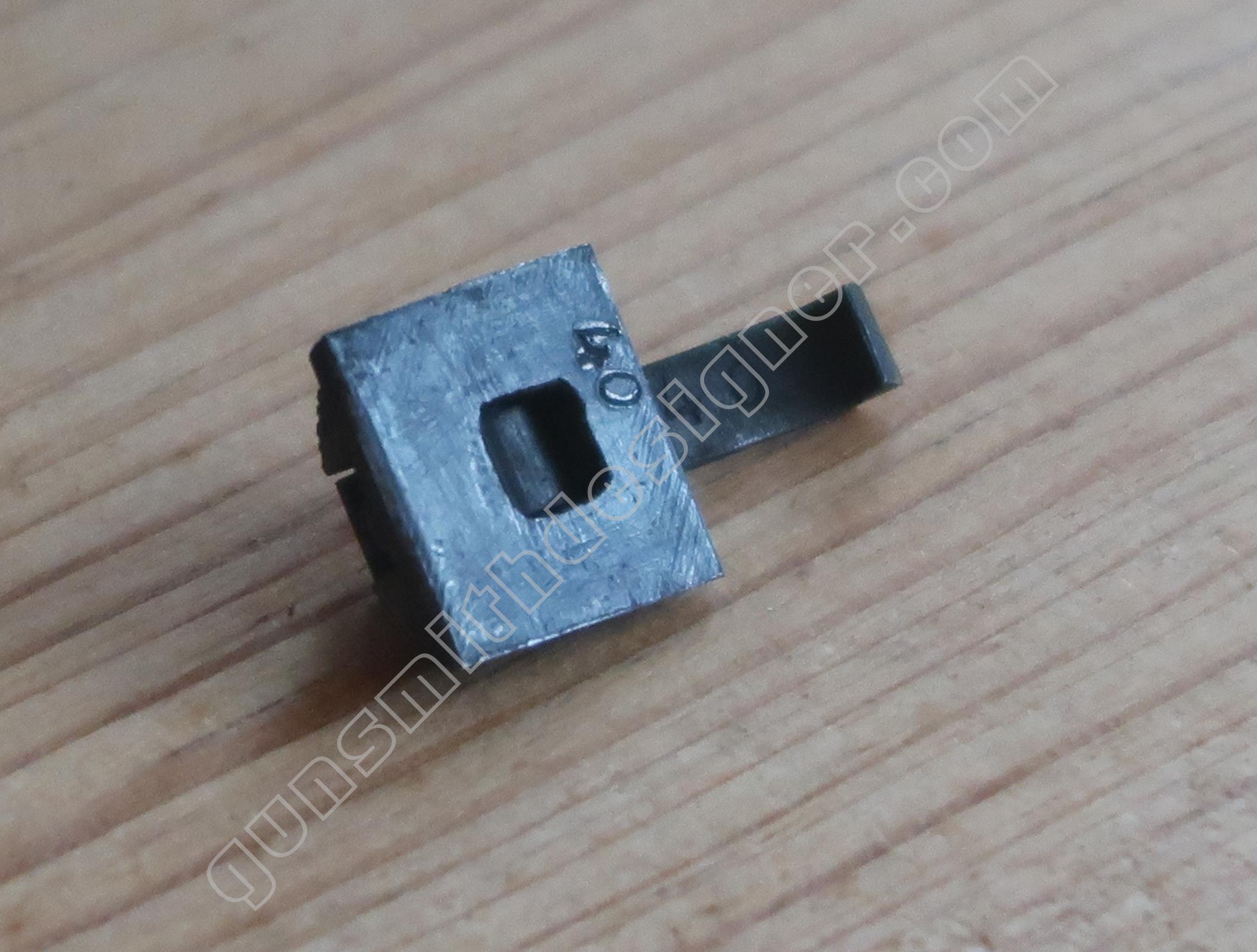 La cuvette de tir est tenue sur le corps de la culasse par une clavette en T. Le bloc capable est : 10 mm x 9,5 mm x 53,6 mm. La pièce pèse : 23 grammes.