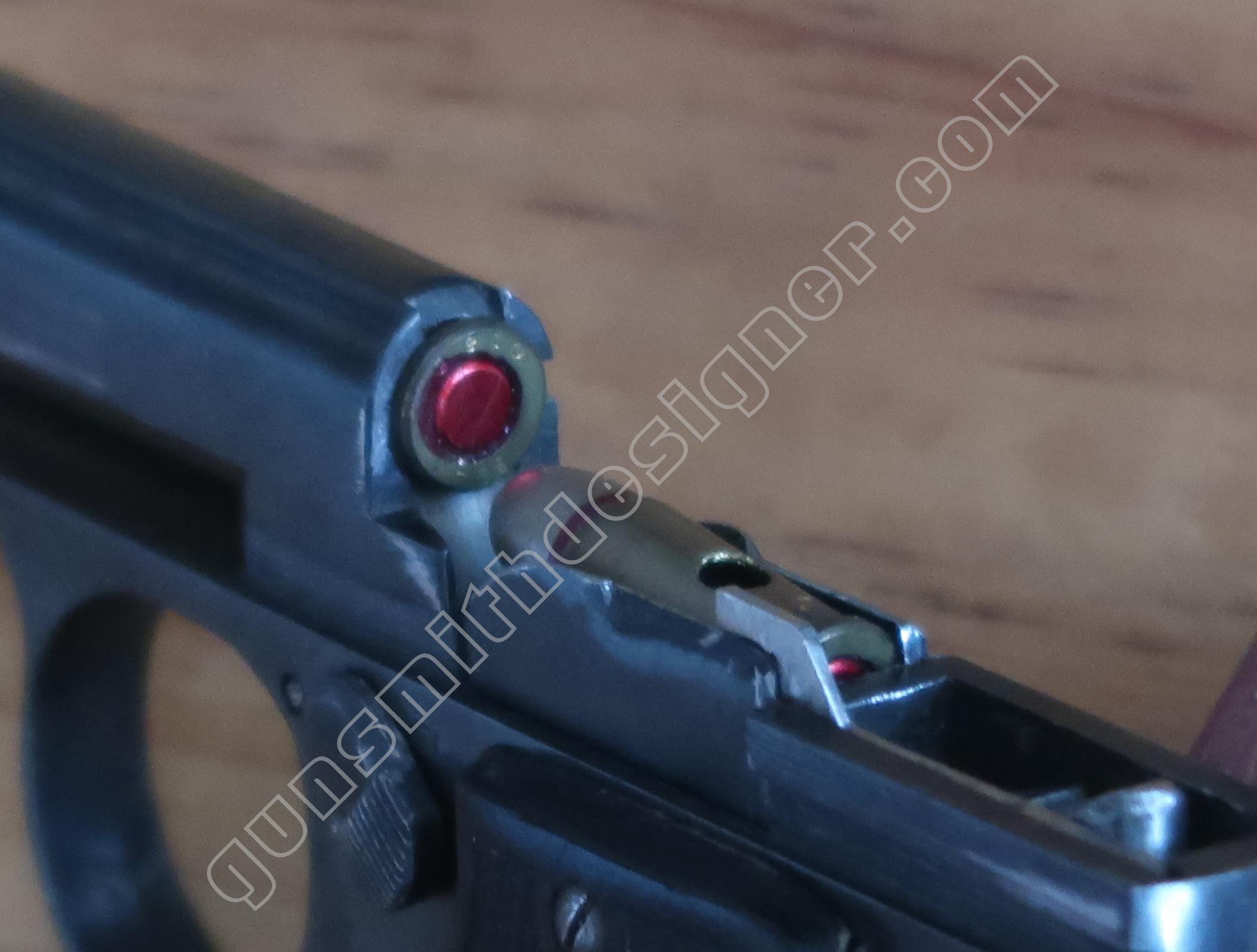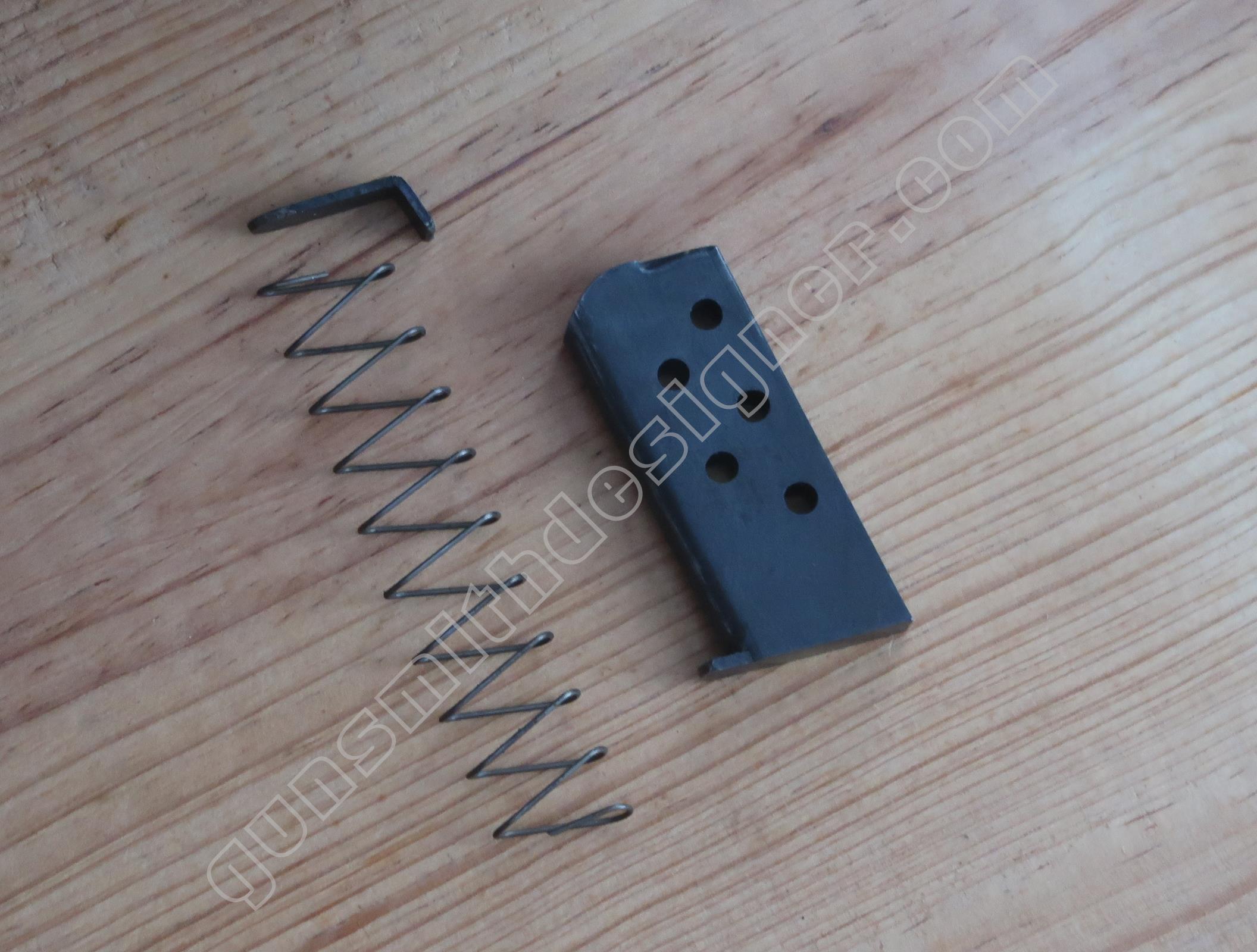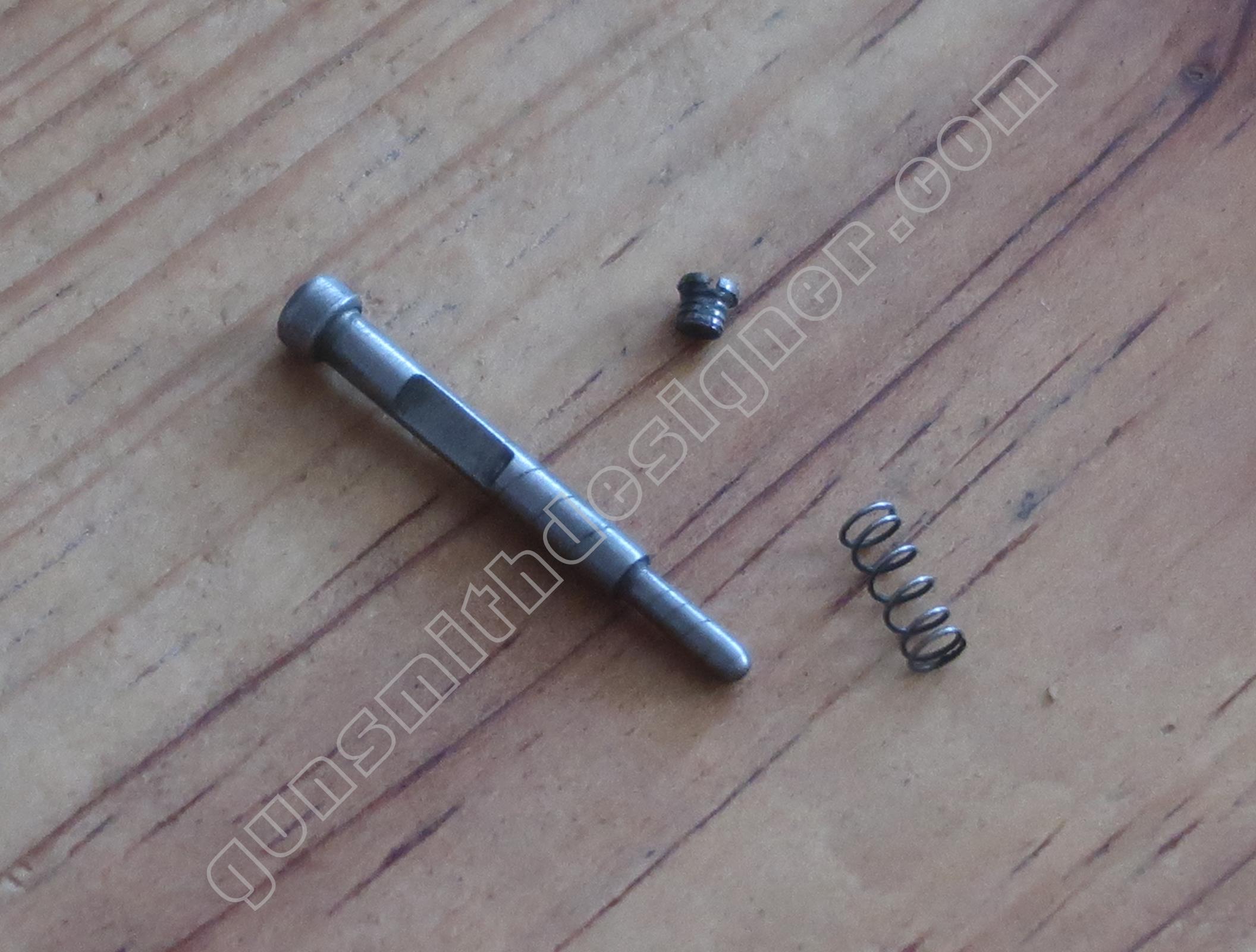 Le ressort de percuteur mesure 8 mm de long, le diamètre externe est : 3 mm, le diamètre de fil : 0,3 mm. Il prend place à l’avant du percuteur.