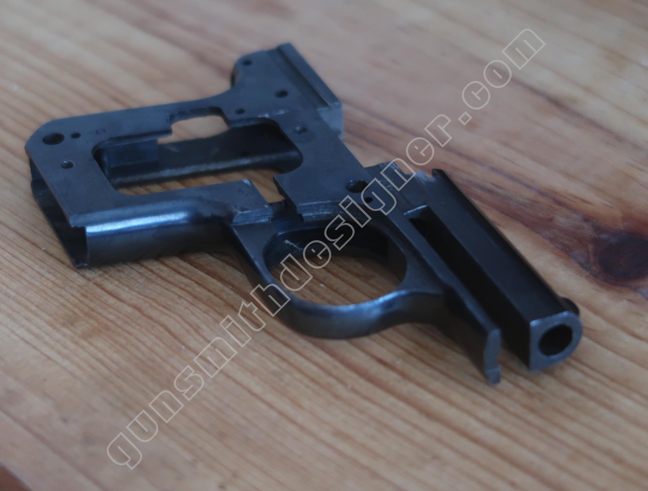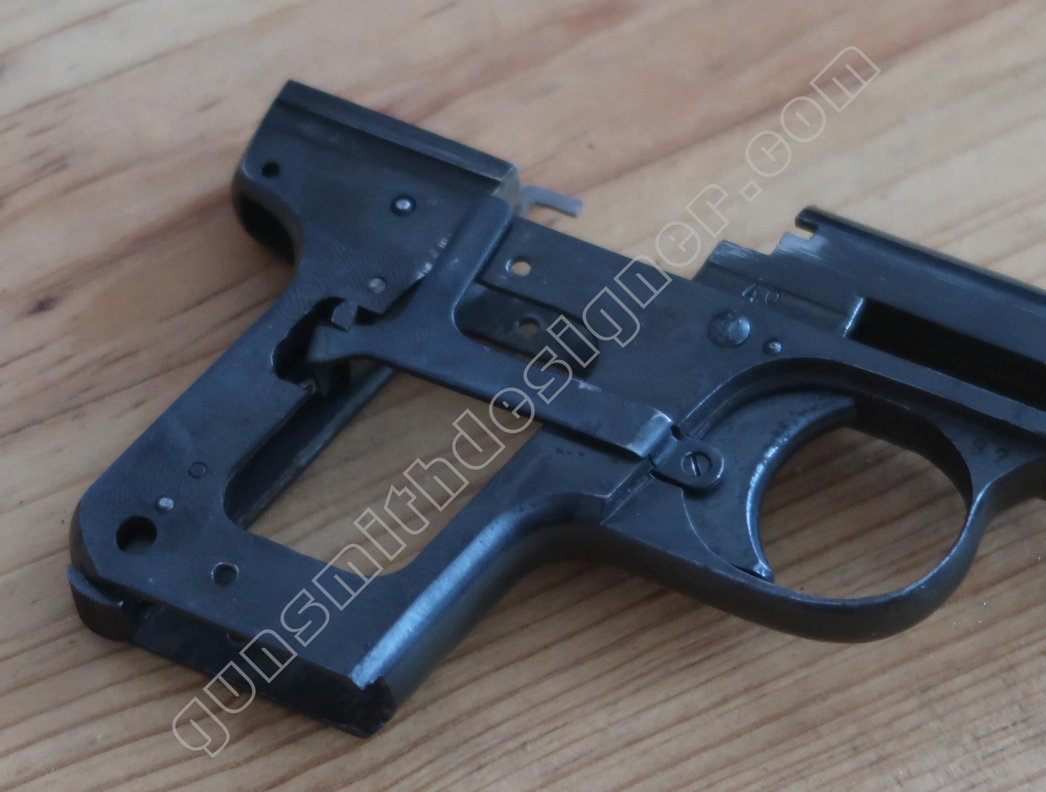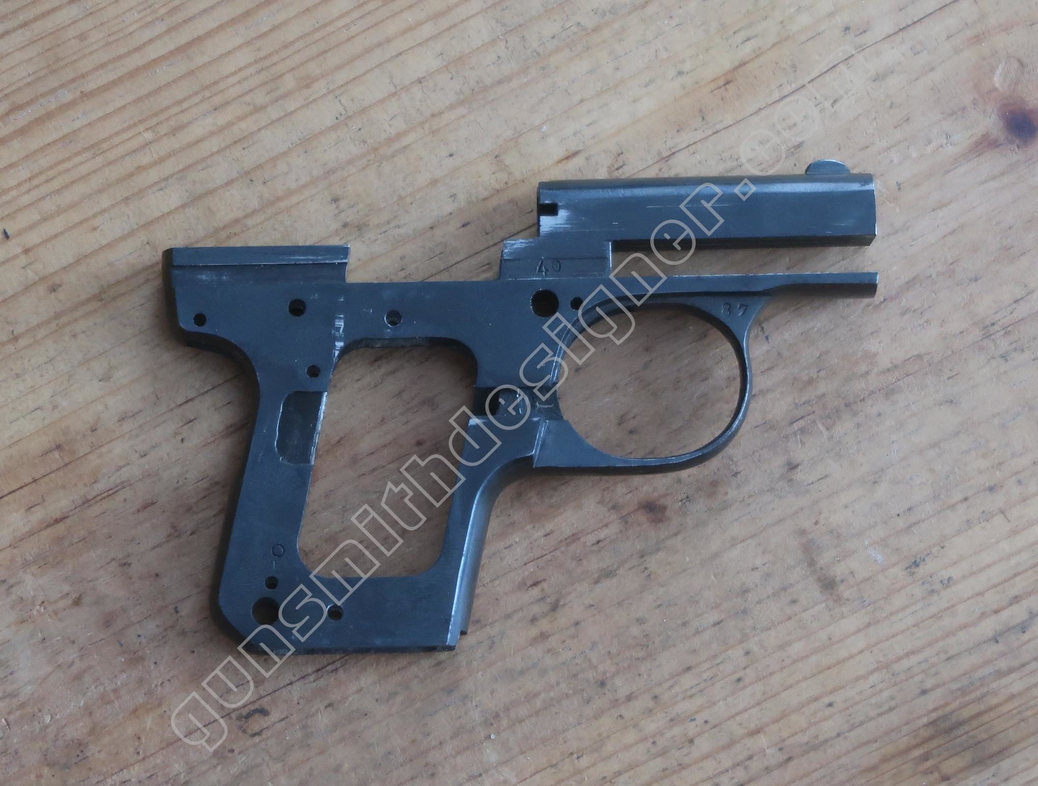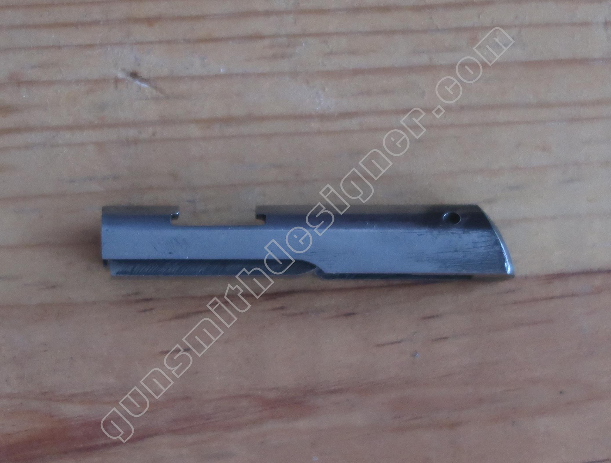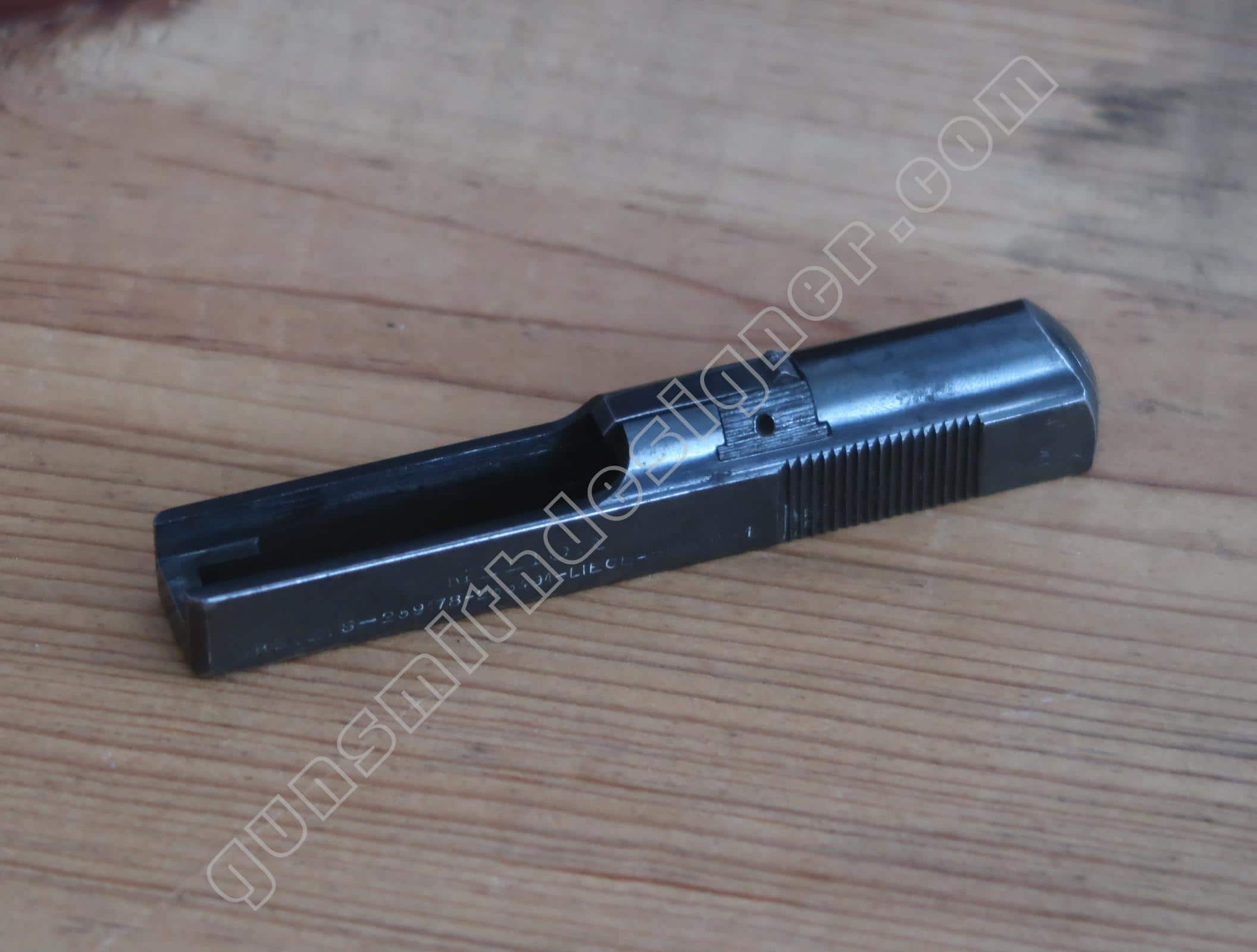 Le corps de culasse est la pièce centrale sur laquelle se montent les autres pièces de la culasse. C’est une pièce très bien réalisée et finie. Le bloc capable de la pièce est : 100,3 mm x 17,7 mm x 14,9 mm. Le poids de cette pièce est : 46 grammes.